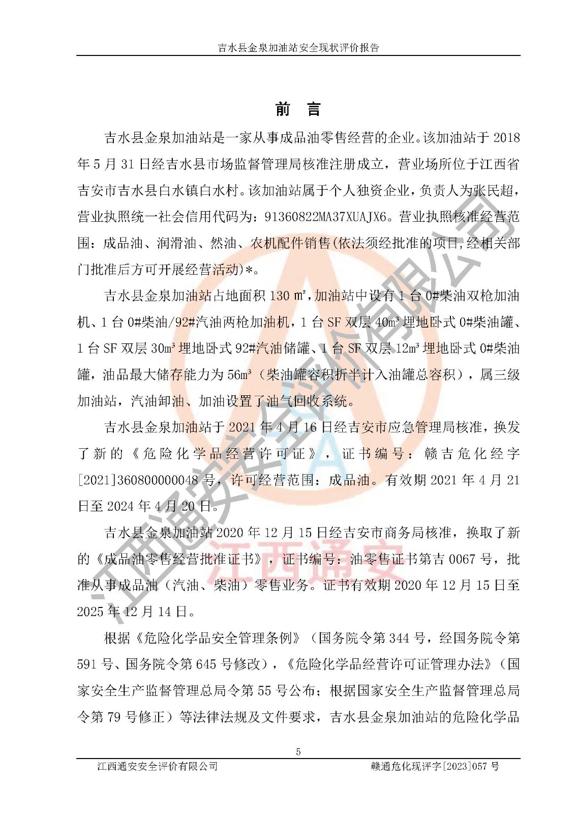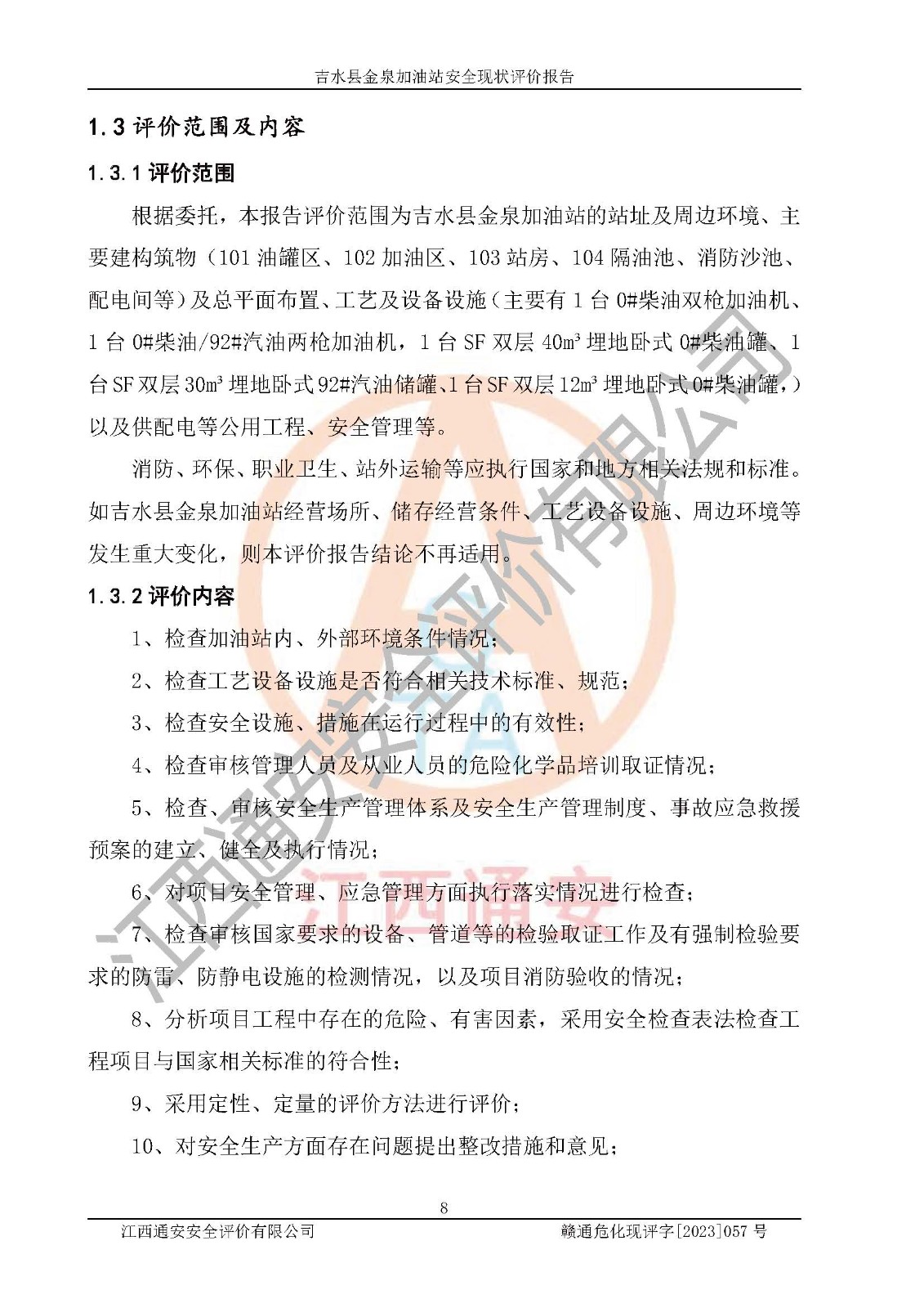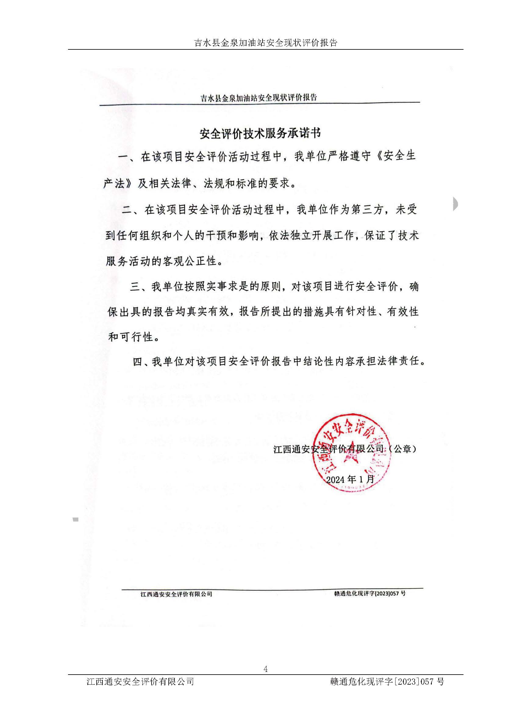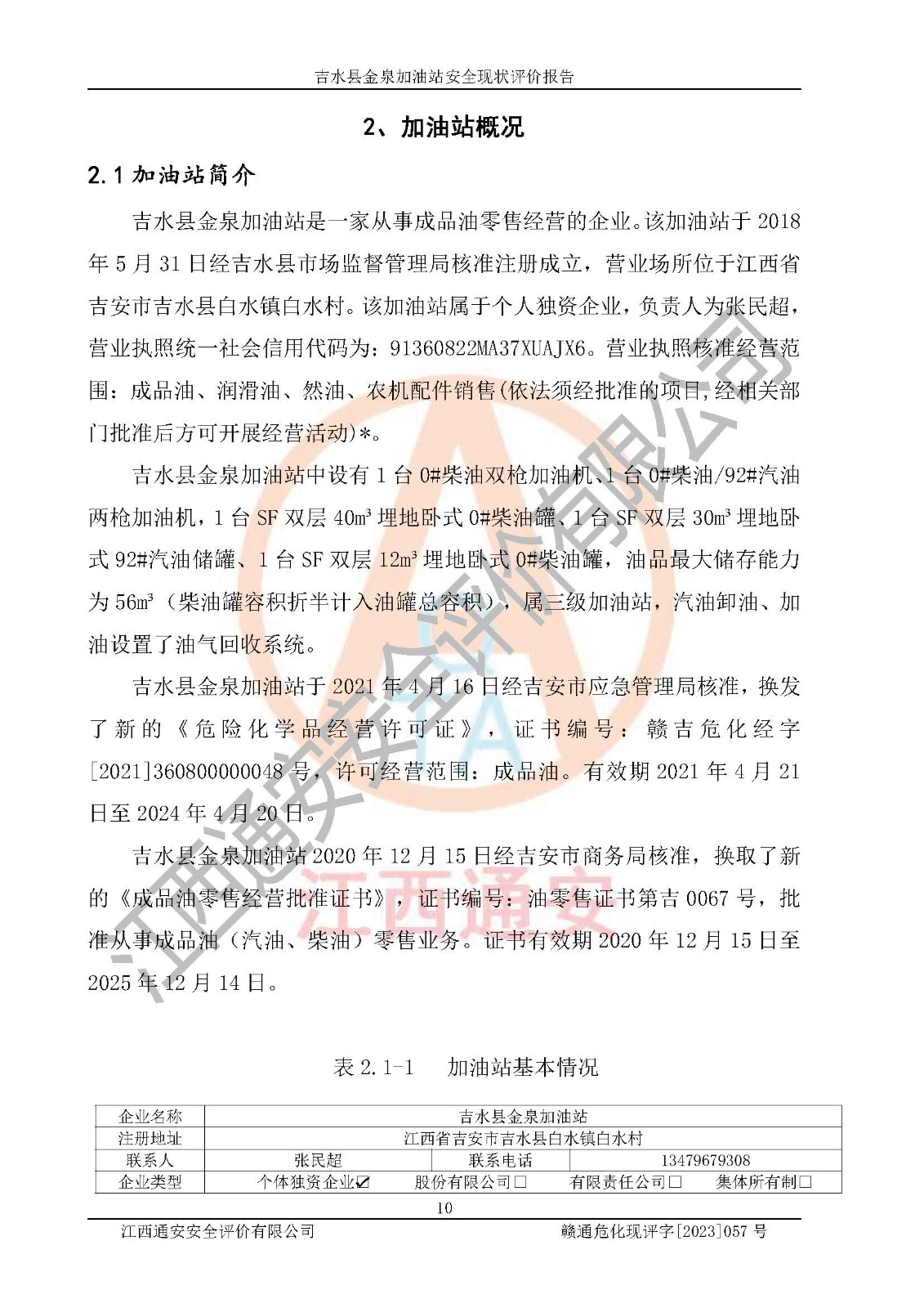評(píng)價(jià)報(bào)告名稱 | 吉水縣金泉加油站安全現(xiàn)狀評(píng)價(jià)報(bào)告 | |||