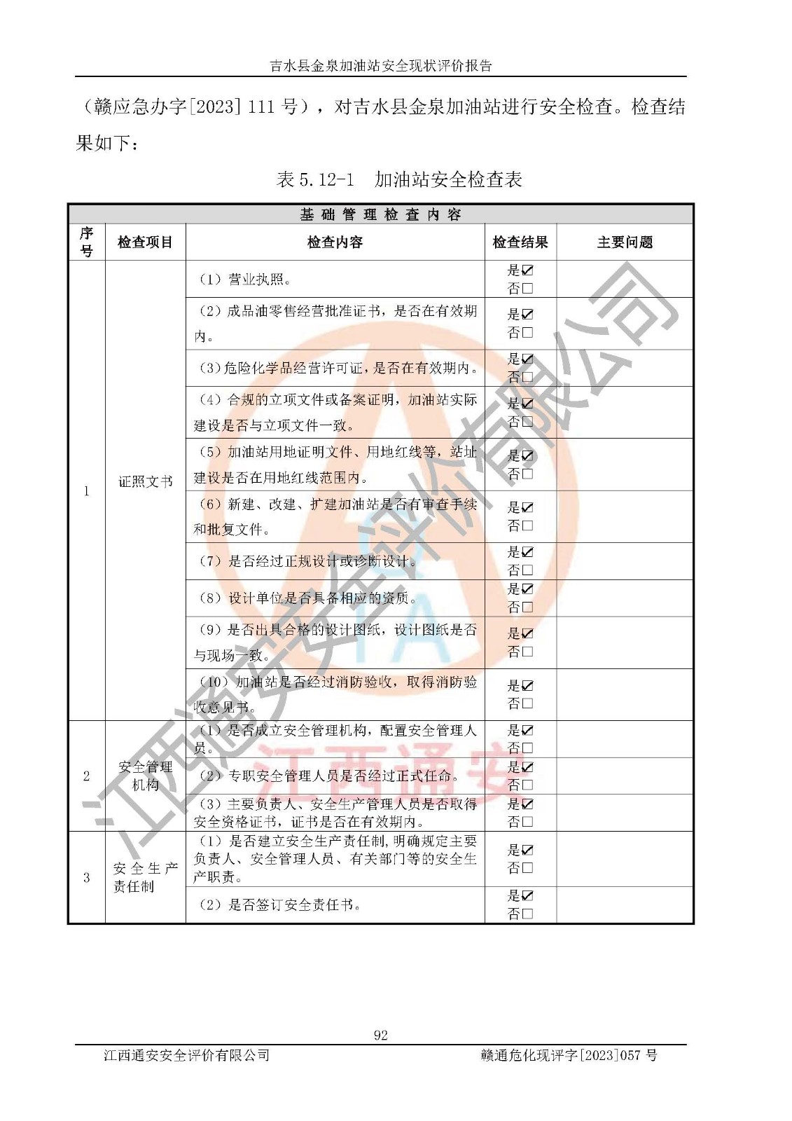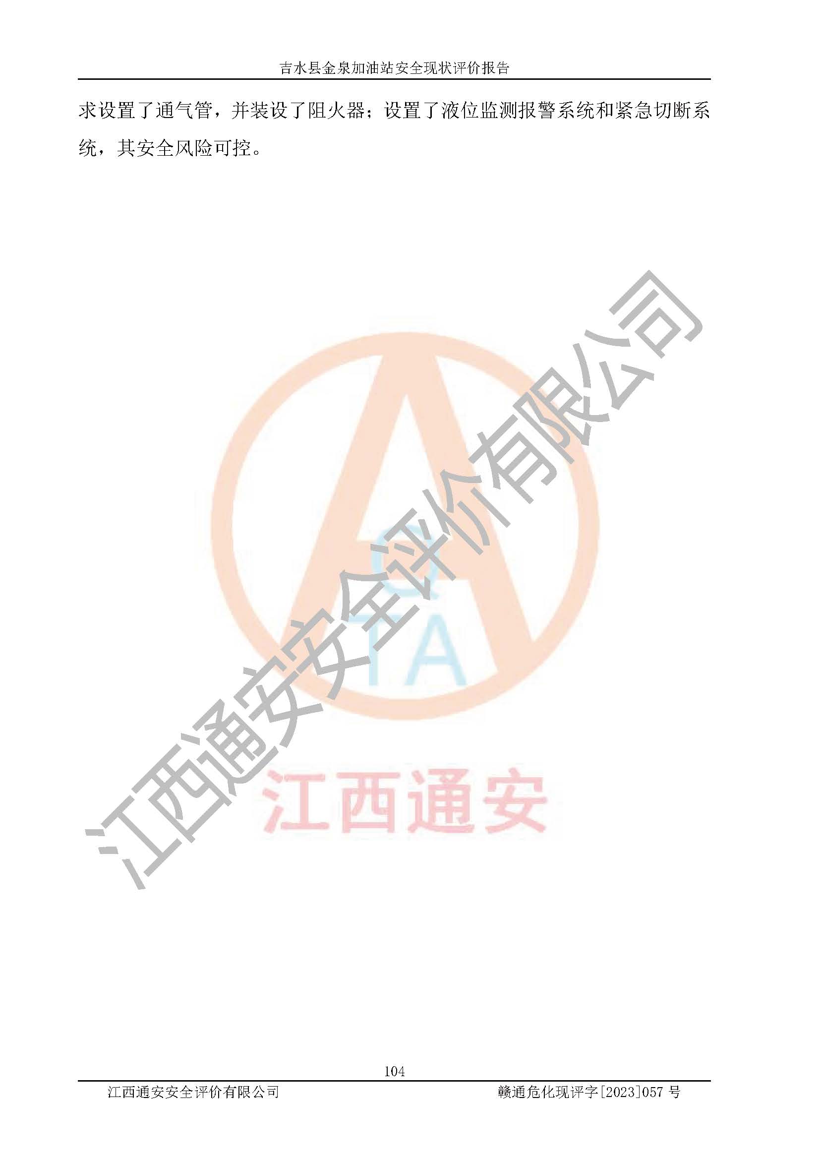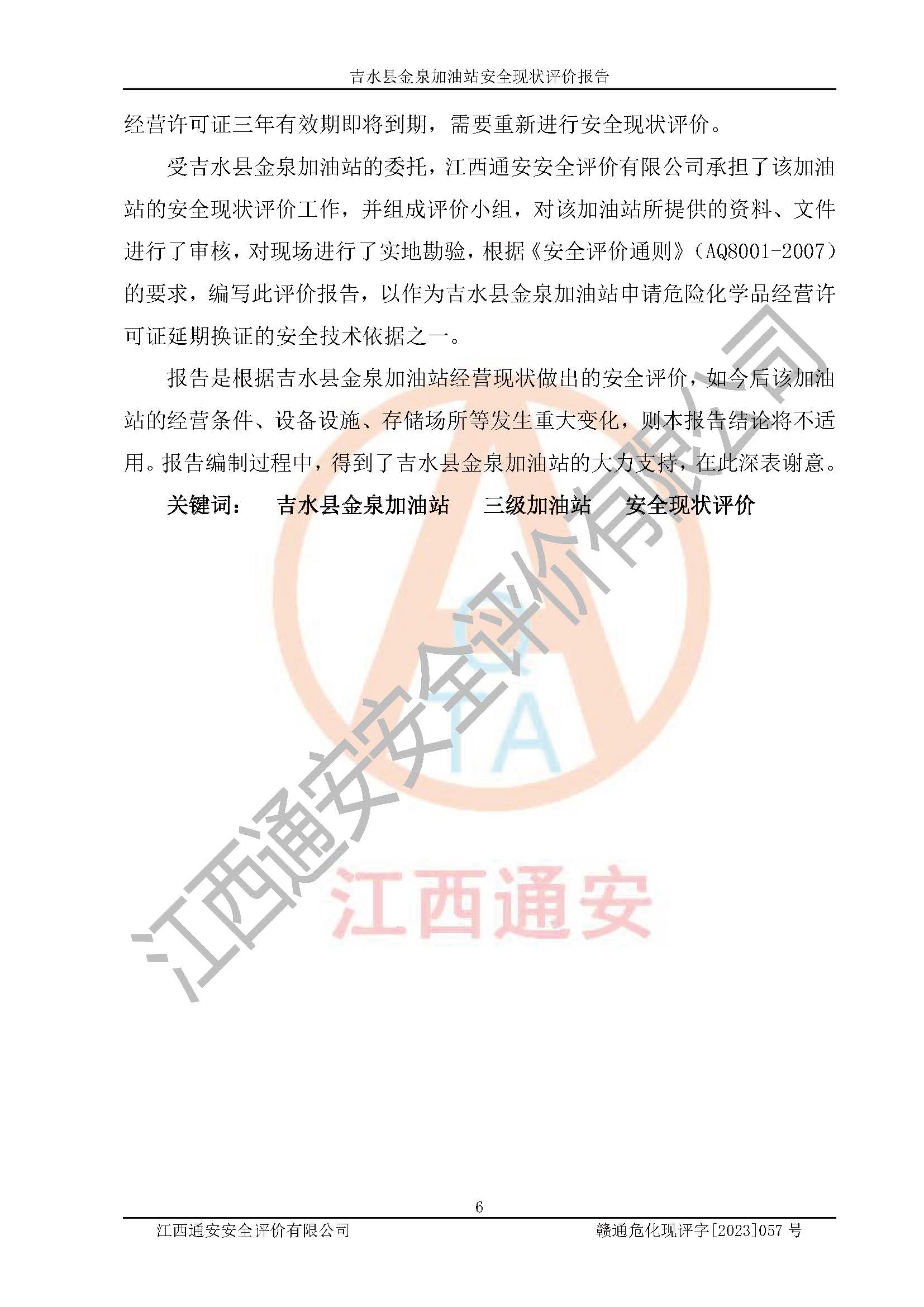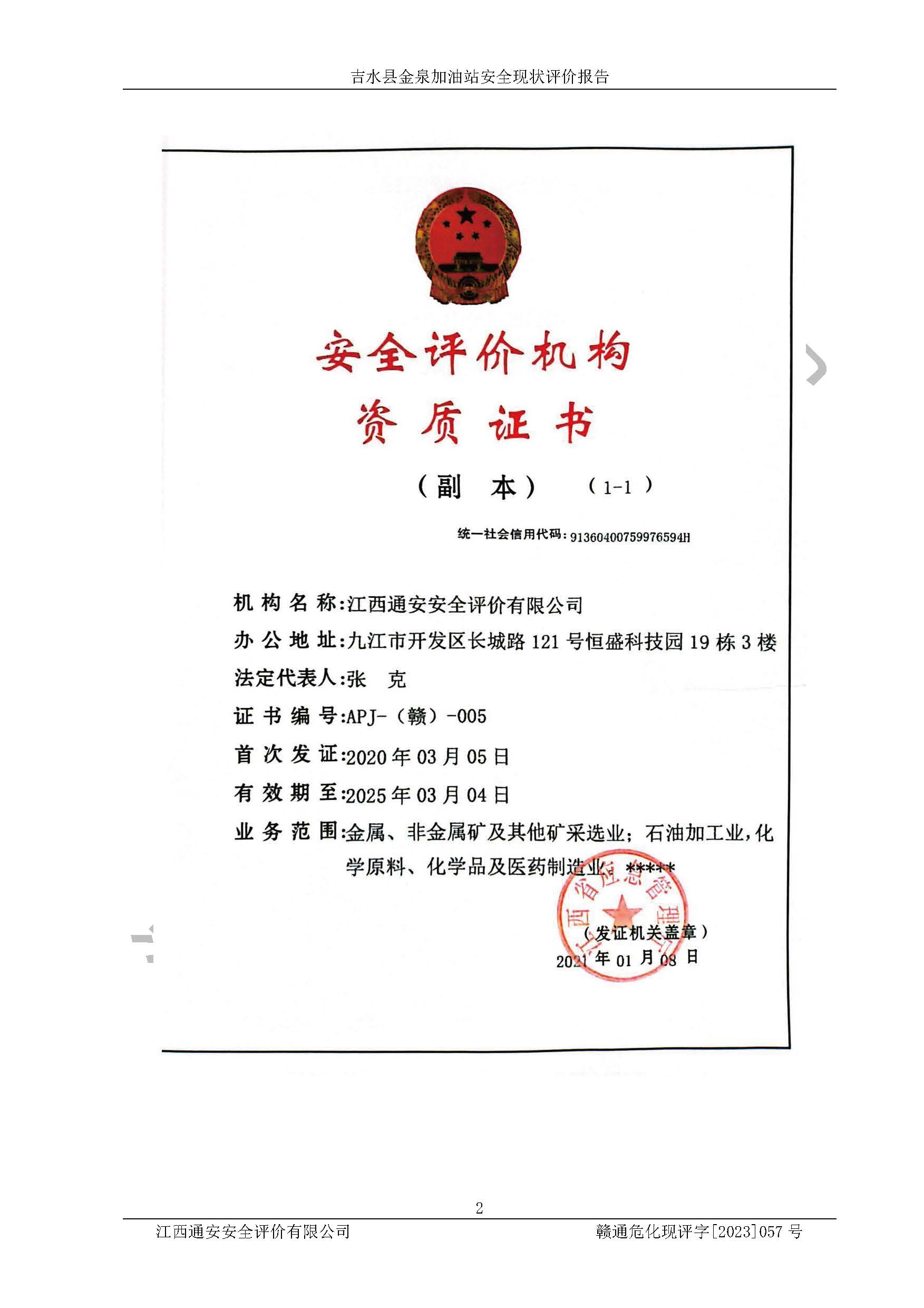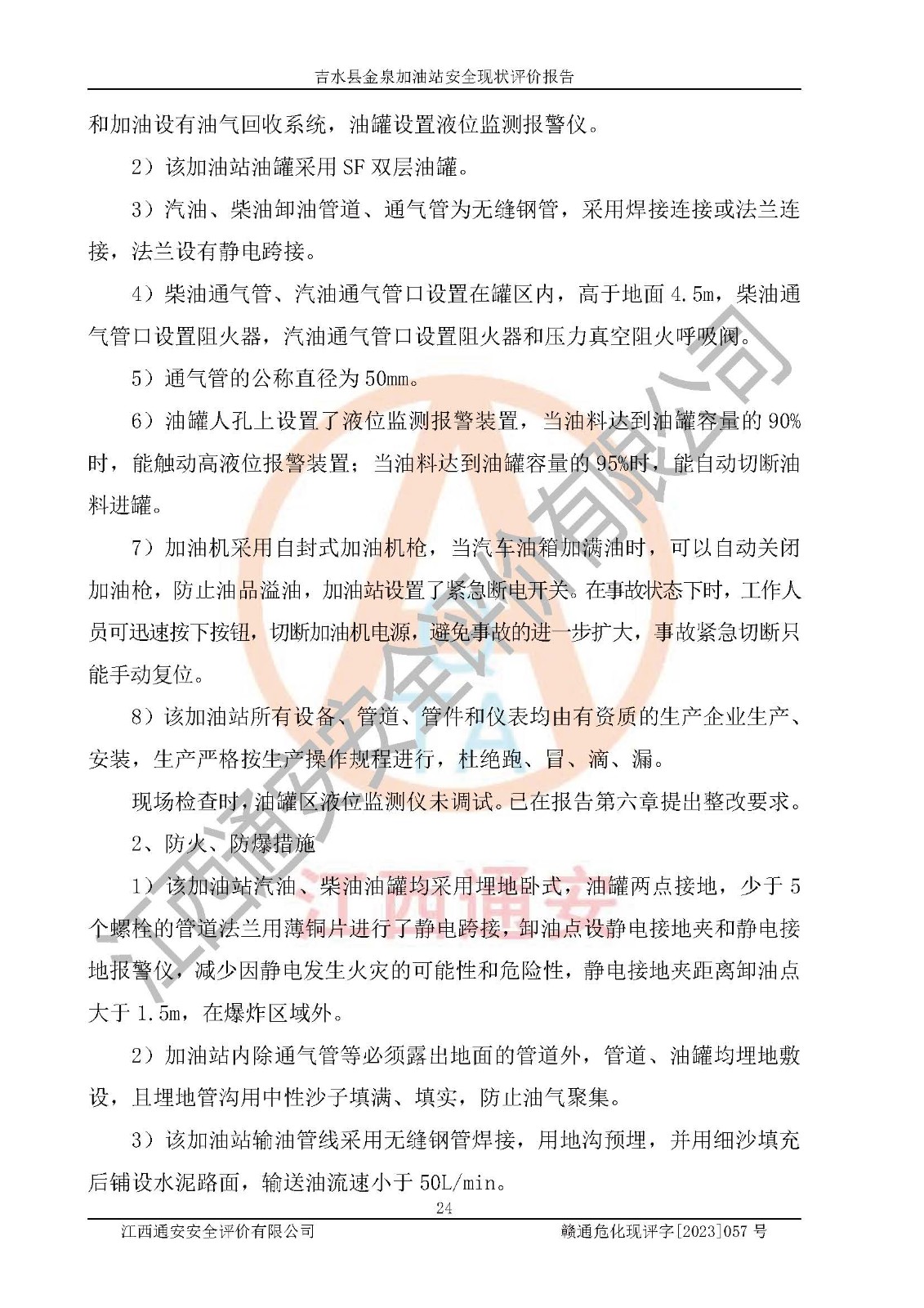 評(píng)價(jià)報(bào)告名稱 | 吉水縣金泉加油站安全現(xiàn)狀評(píng)價(jià)報(bào)告 | |||