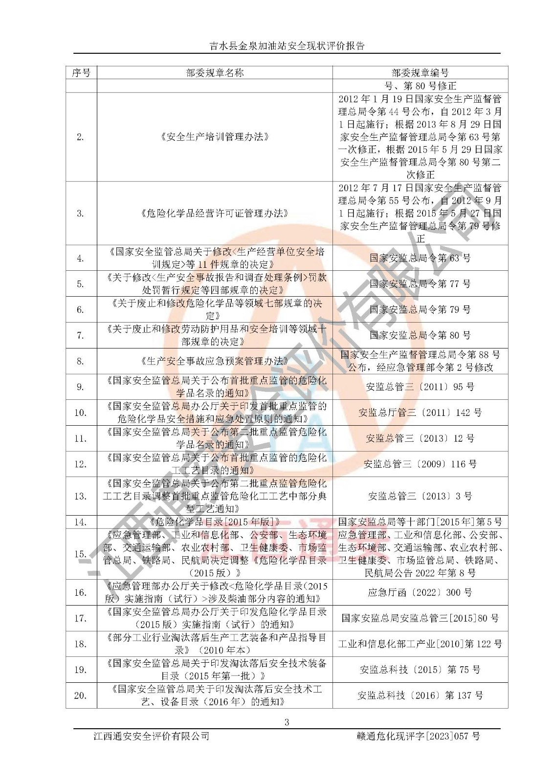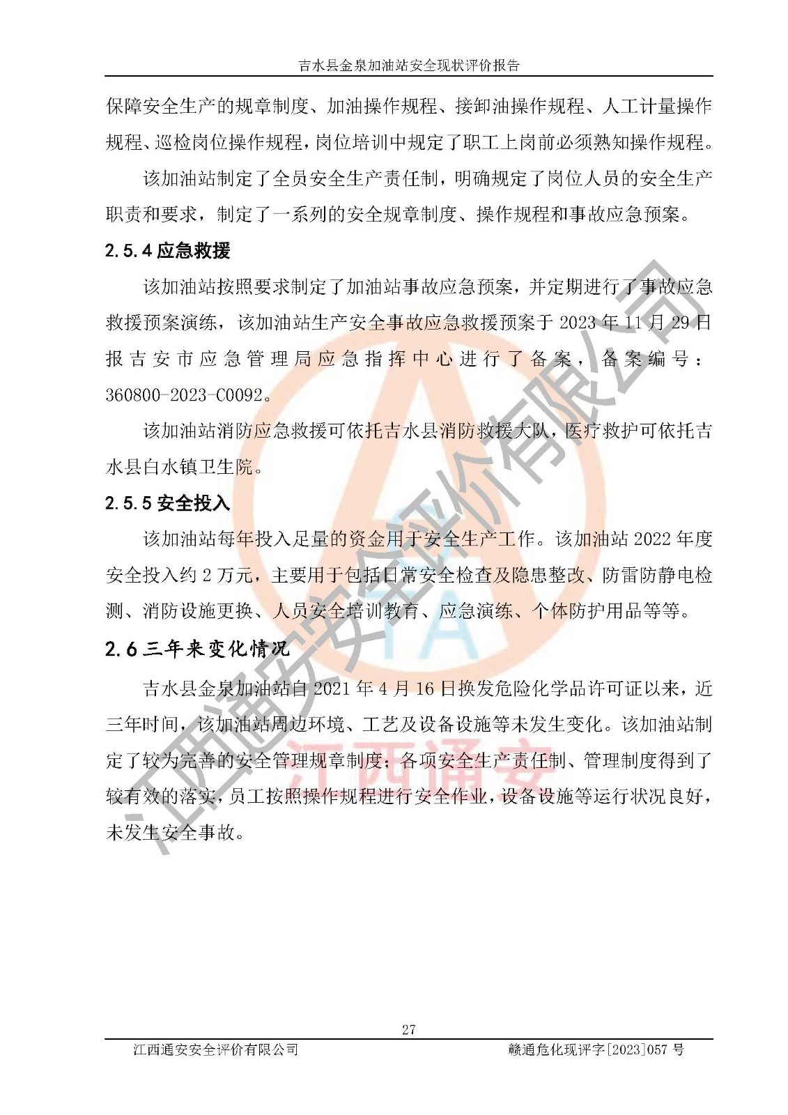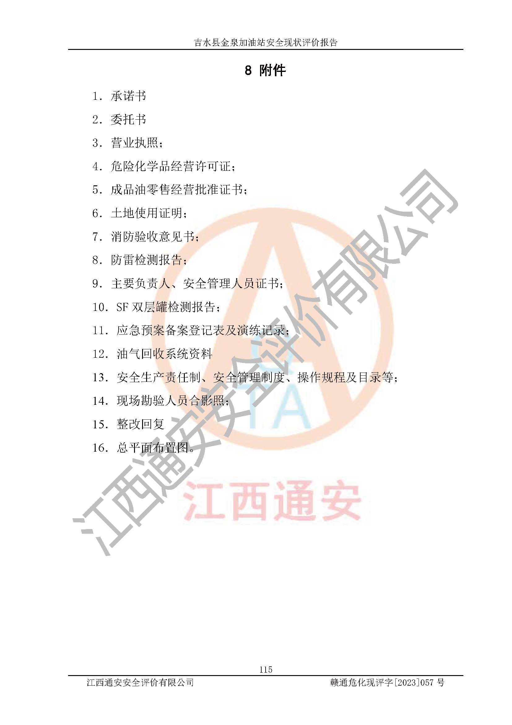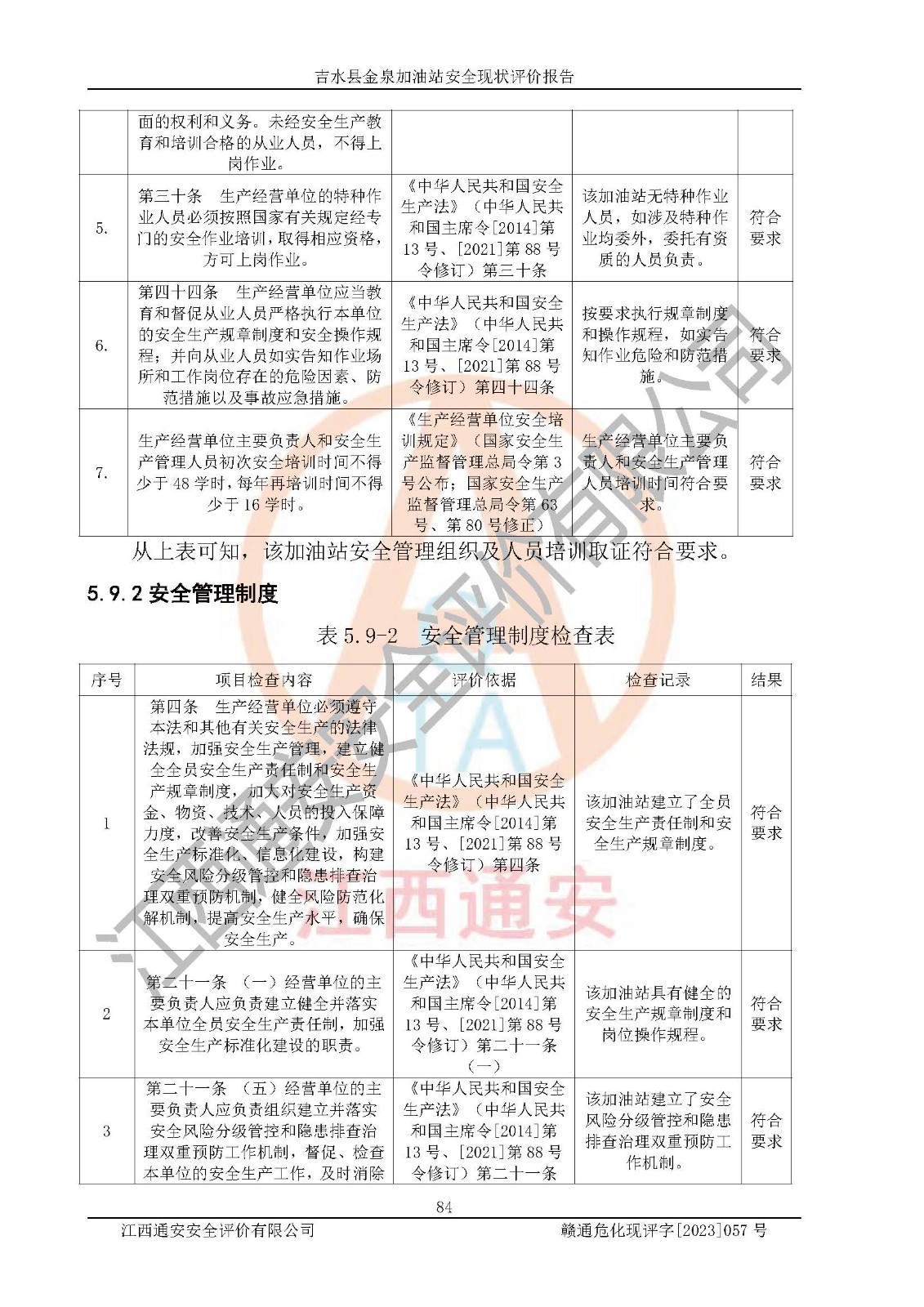 評(píng)價(jià)報(bào)告名稱 | 吉水縣金泉加油站安全現(xiàn)狀評(píng)價(jià)報(bào)告 | |||