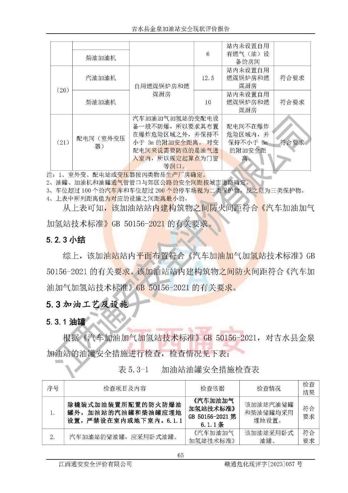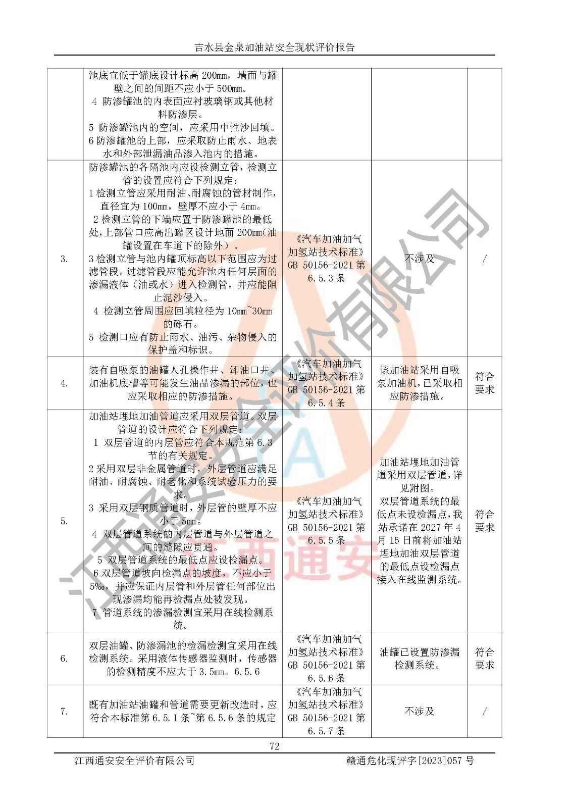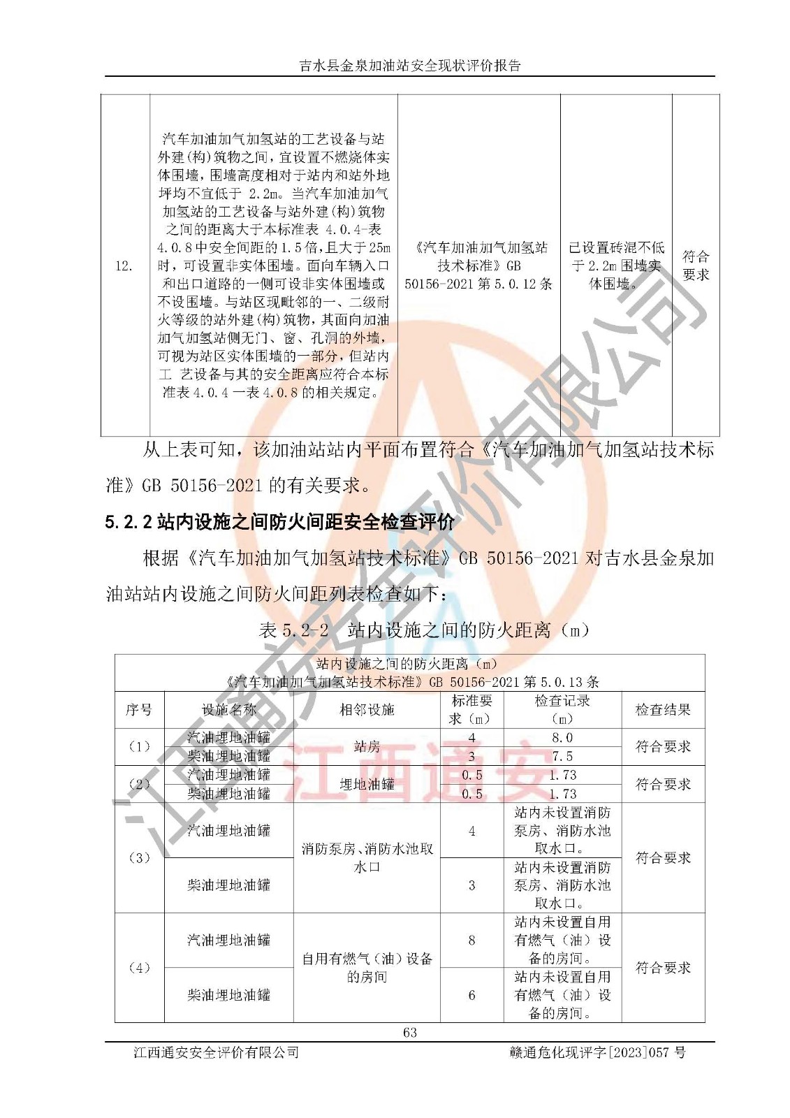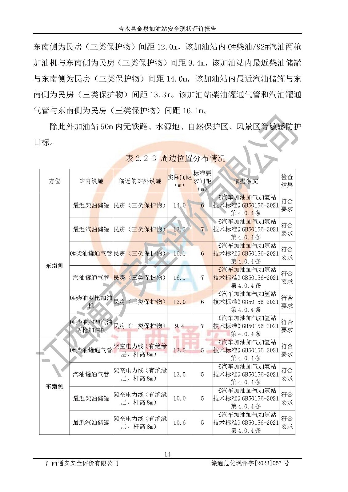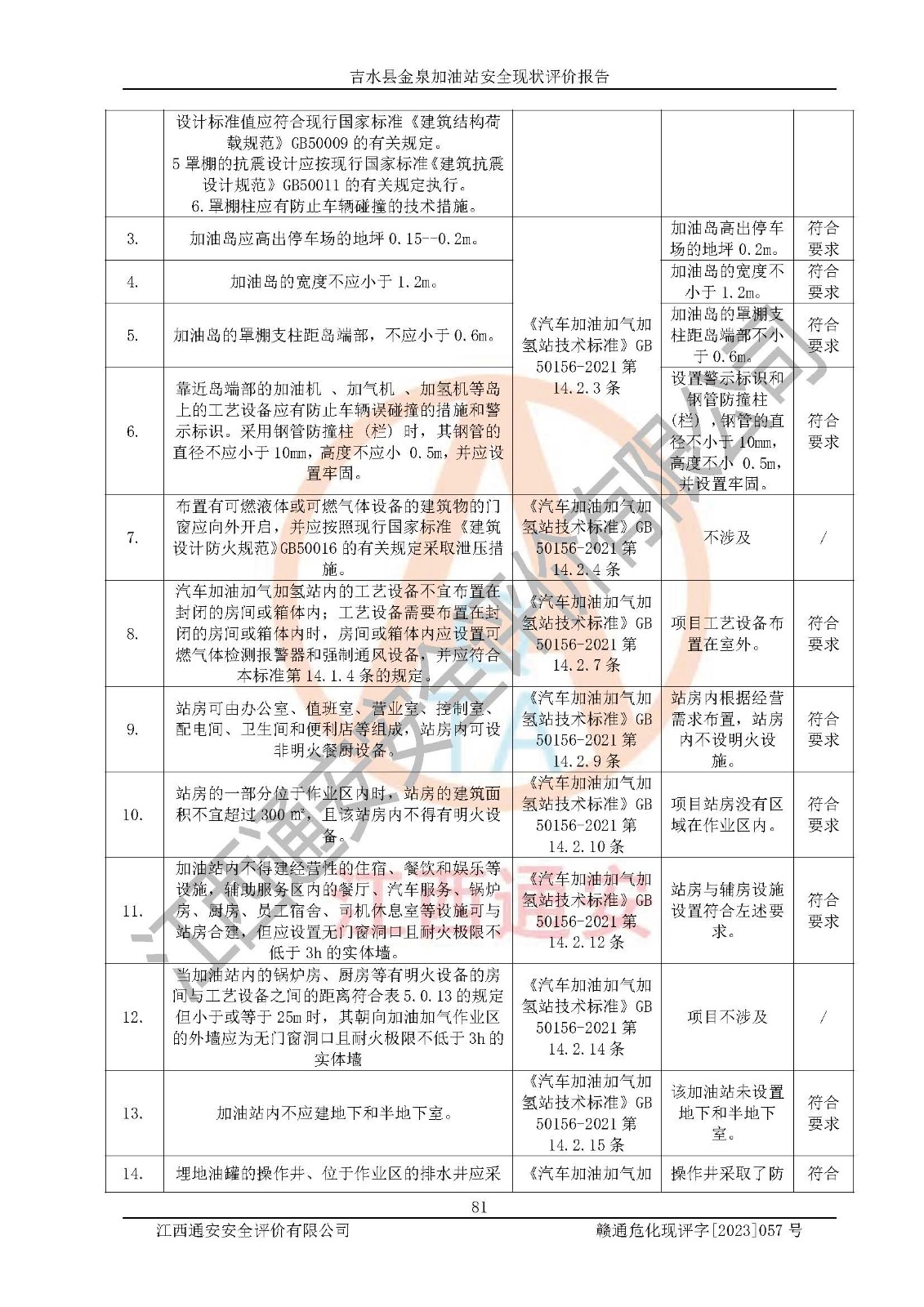 評(píng)價(jià)結(jié)論 | 吉水縣金泉加油站符合《汽車(chē)加油加氣加氫站技術(shù)標(biāo)準(zhǔn)》GB50156-2021等標(biāo)準(zhǔn)規(guī)范的要求,安全風(fēng)險(xiǎn)可控,滿足危險(xiǎn)化學(xué)品經(jīng)營(yíng)的安全條件。 | |||