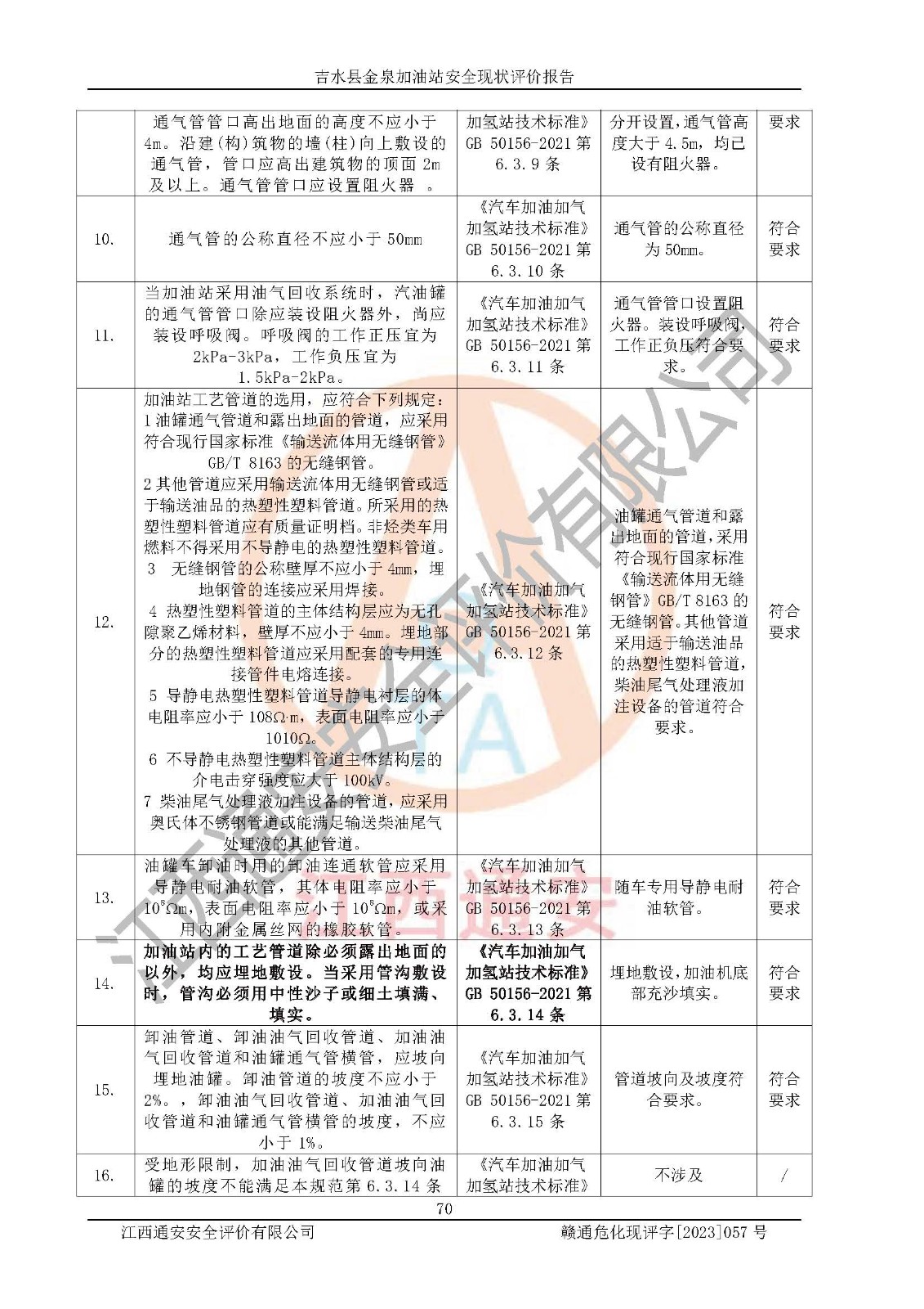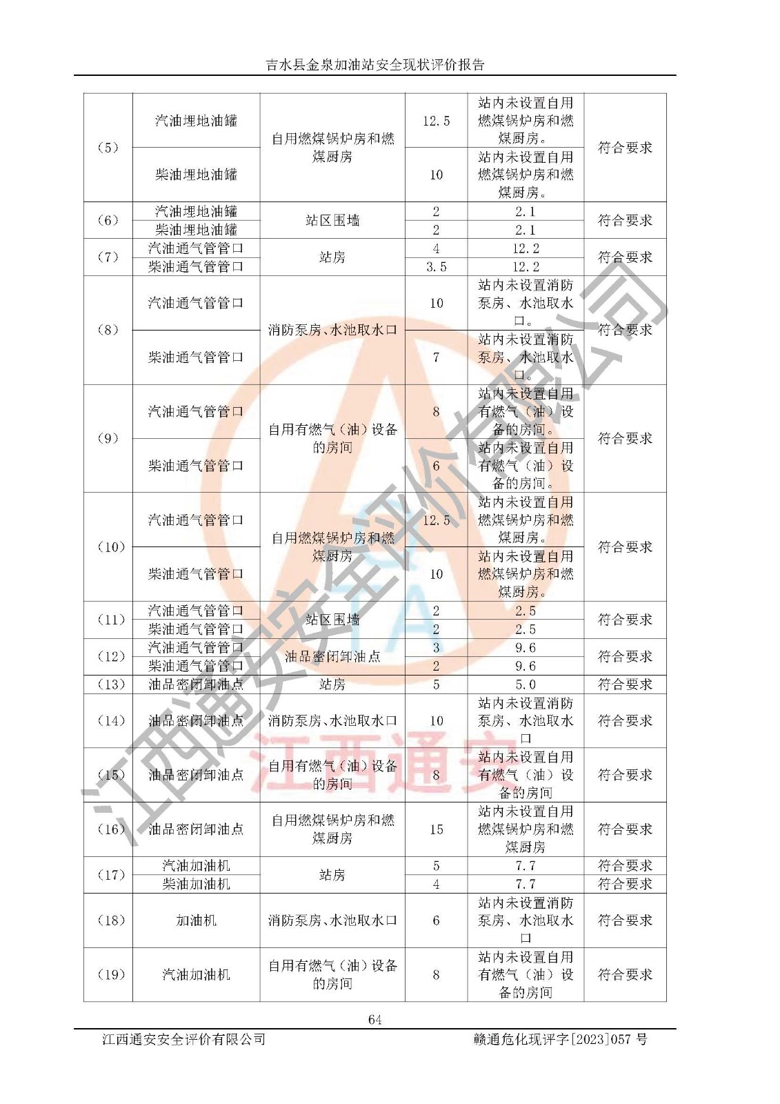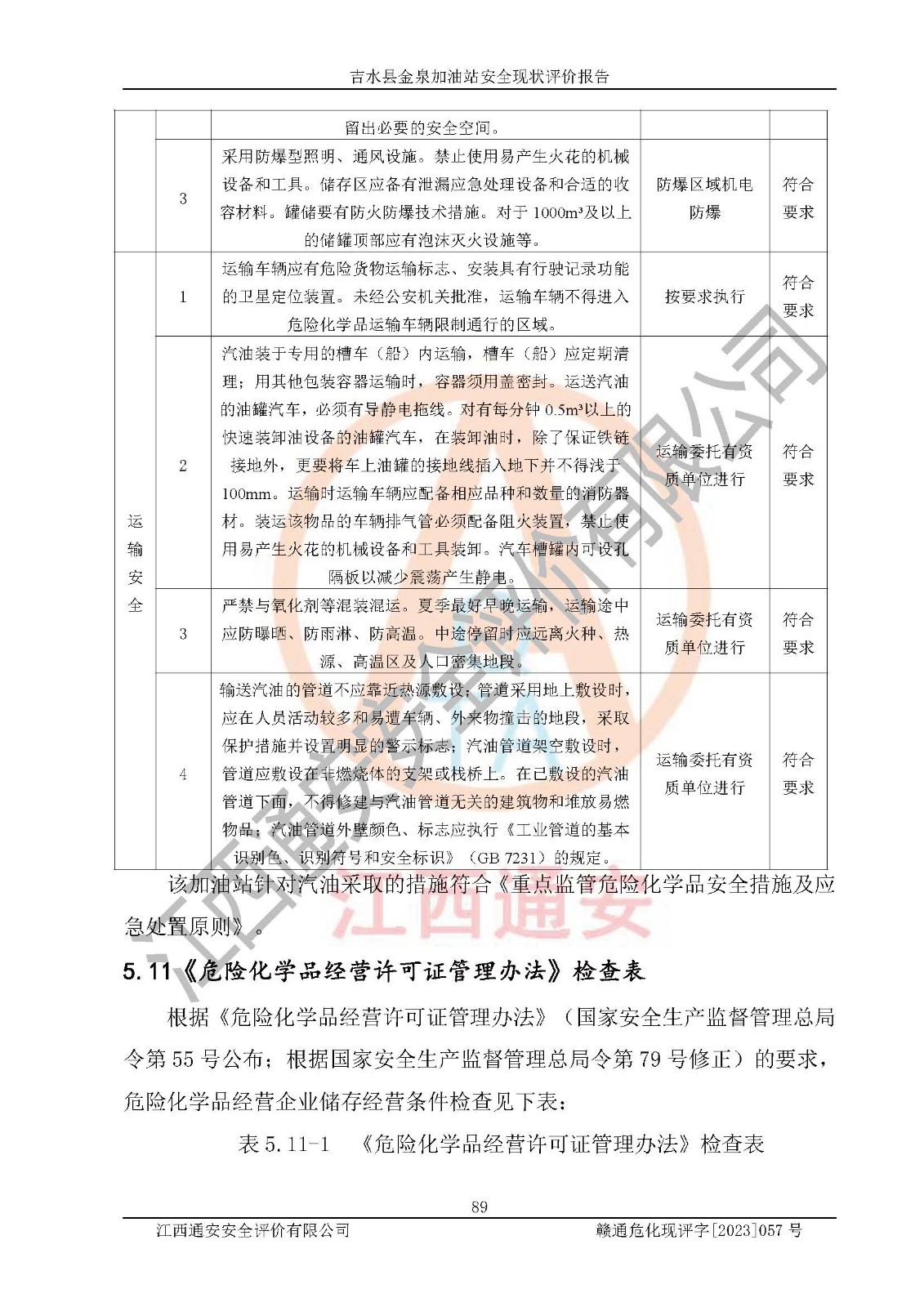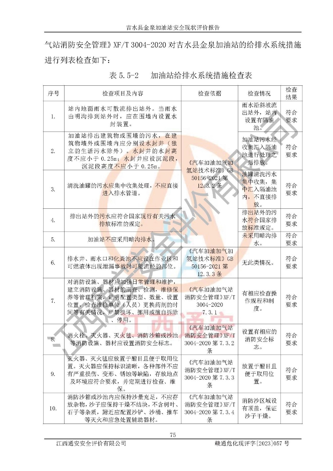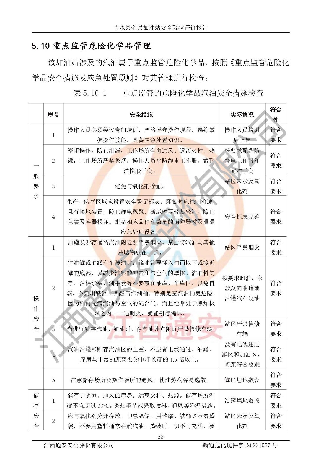 評(píng)價(jià)結(jié)論 | 吉水縣金泉加油站符合《汽車(chē)加油加氣加氫站技術(shù)標(biāo)準(zhǔn)》GB50156-2021等標(biāo)準(zhǔn)規(guī)范的要求,安全風(fēng)險(xiǎn)可控,滿足危險(xiǎn)化學(xué)品經(jīng)營(yíng)的安全條件。 | |||