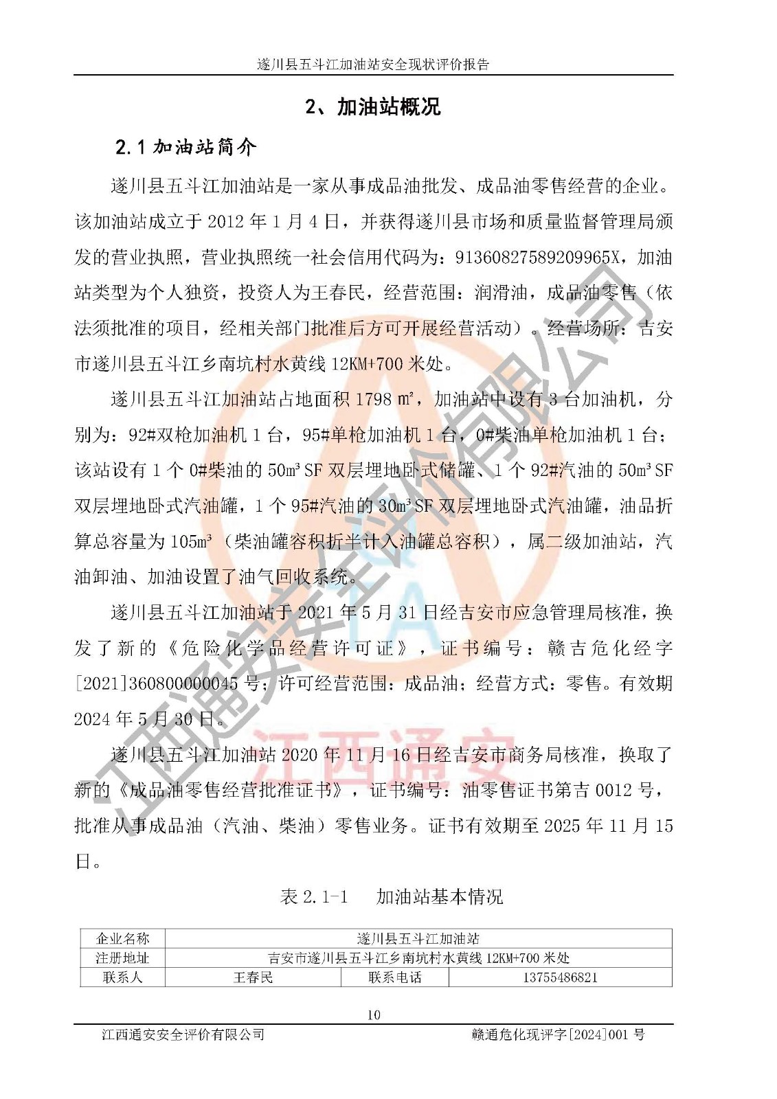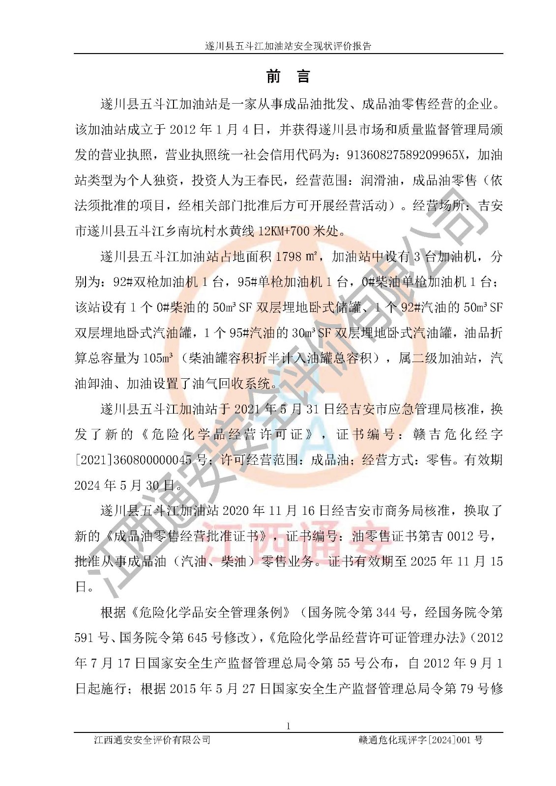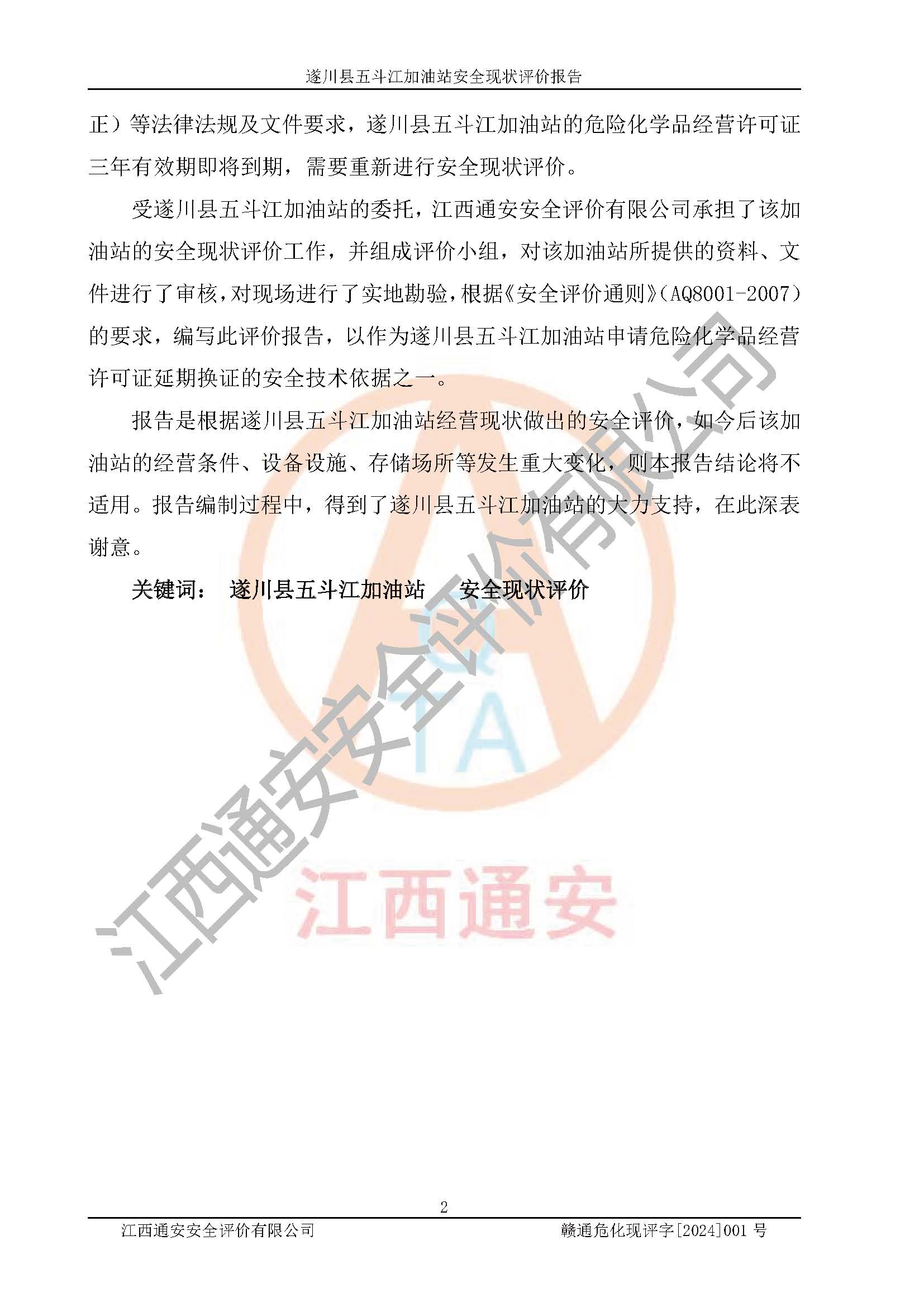 評價報告名稱 | 遂川縣五斗江加油站在役生產(chǎn)裝置安全現(xiàn)狀評價報告 | |||
