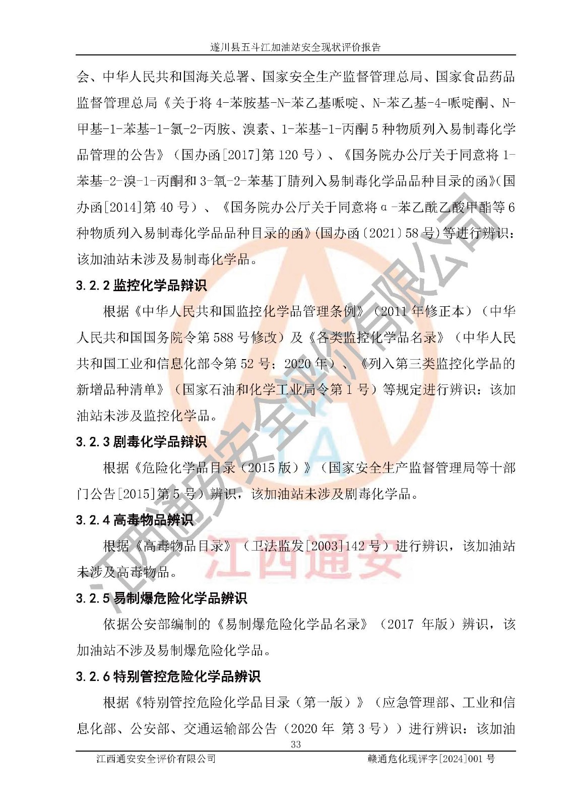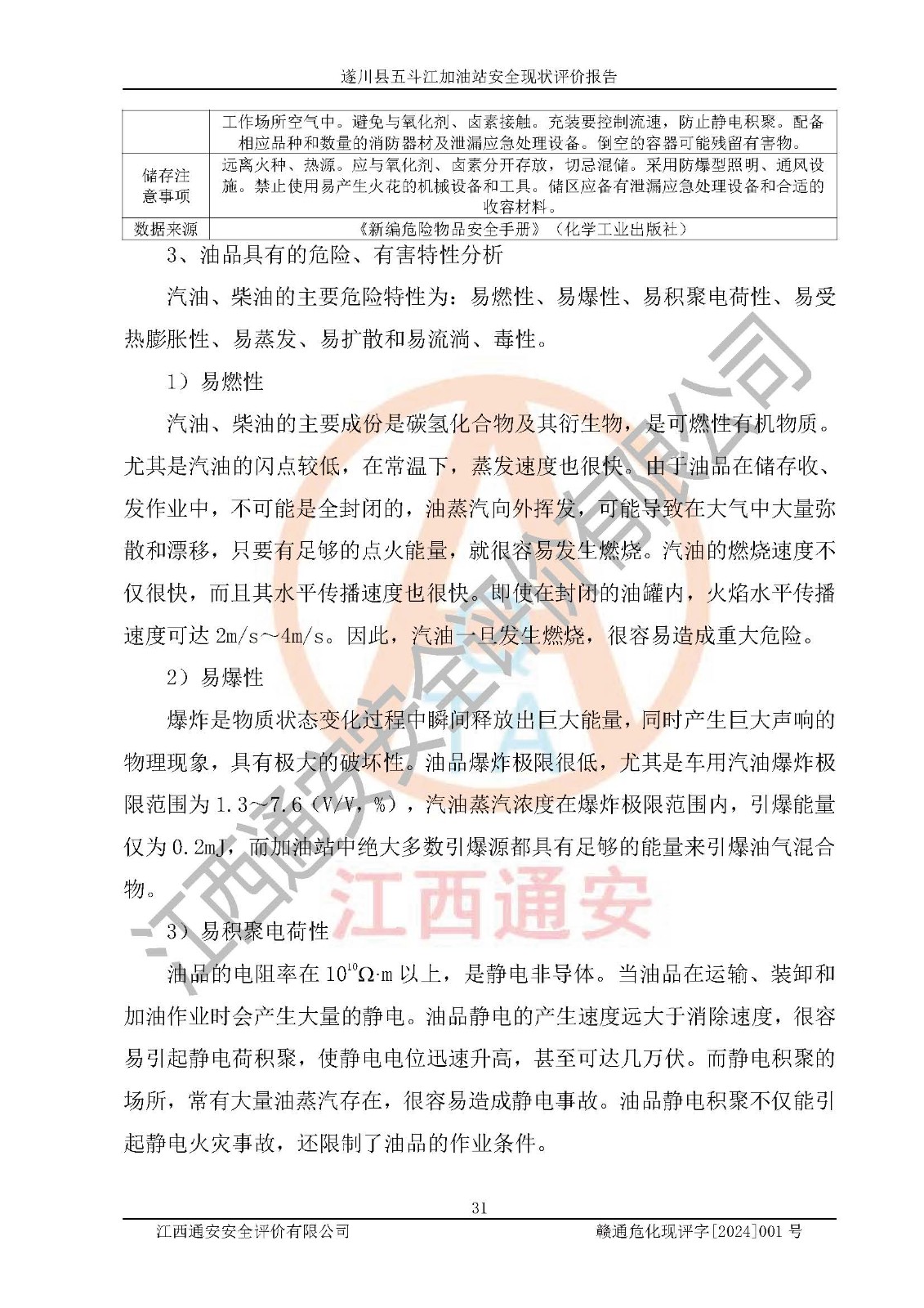 項目簡介 | 遂川縣五斗江加油站是一家從事成品油批發(fā)、成品油零售經(jīng)營的企業(yè)。該加油站成立于2012年1月4日,并獲得遂川縣市場和質量監(jiān)督管理局頒發(fā)的營業(yè)執(zhí)照,營業(yè)執(zhí)照統(tǒng)一社會信用代碼為:91360827589209965X,加油站類型為個人獨資,投資人為王春民,經(jīng)營范圍:潤滑油,成品油零售(依法須批準的項目,經(jīng)相關部門批準后方可開展經(jīng)營活動)。經(jīng)營場所:吉安市遂川縣五斗江鄉(xiāng)南坑村水黃線12KM+700米處。 遂川縣五斗江加油站占地面積1798㎡,加油站中設有3臺加油機,分別為:92#雙槍加油機1臺,95#單槍加油機1臺,0#柴油單槍加油機1臺;該站設有1個0#柴油的50m3SF雙層埋地臥式儲罐、1個92#汽油的50m3SF雙層埋地臥式汽油罐,1個95#汽油的30m3SF雙層埋地臥式汽油罐,油品折算總容量為105m3(柴油罐容積折半計入油罐總容積),屬二級加油站,汽油卸油、加油設置了油氣回收系統(tǒng)。 遂川縣五斗江加油站于2021年5月31日經(jīng)吉安市應急管理局核準,換發(fā)了新的《危險化學品經(jīng)營許可證》,證書編號:贛吉危化經(jīng)字[2021]360800000045號;許可經(jīng)營范圍:成品油;經(jīng)營方式:零售。**期2024年5月30日。 遂川縣五斗江加油站2020年11月16日經(jīng)吉安市商務局核準,換取了新的《成品油零售經(jīng)營批準證書》,證書編號:油零售證書第吉0012號,批準從事成品油(汽油、柴油)零售業(yè)務。證書**期至2025年11月15日。 根據(jù)《特別管控危險化學品目錄(**版)》(應急管理部、工業(yè)和信息化部、公安部、交通運輸部公告(2020年 第3號))進行辨識:該加油站經(jīng)營的汽油屬于特別管控危險化學品。 根據(jù)《**安全監(jiān)管總局關于公布首批重點監(jiān)管的危險化工工藝目錄的通知》(安監(jiān)總管三[2009] 116號)、《**安全監(jiān)管總局關于公布第二批重點監(jiān)管危險化工工藝目錄和調整首批重點監(jiān)管危險化工工藝中部分典型工藝的通知》(安監(jiān)總管三[2013] 3號)的規(guī)定進行辨識:項目不涉及重點監(jiān)管的危險化工工藝。 遂川縣五斗江加油站自2021年5月31日換發(fā)危險化學品許可證以來,近三年時間,該加油站周邊環(huán)境、工藝及設備設施等未發(fā)生變化。該加油站制定了較為完善的安全管理規(guī)章制度;各項安全生產(chǎn)責任制、管理制度得到了較**的落實,員工按照操作規(guī)程進行安全作業(yè),設備設施等運行狀況良好,未發(fā)生安全事故。 | |||