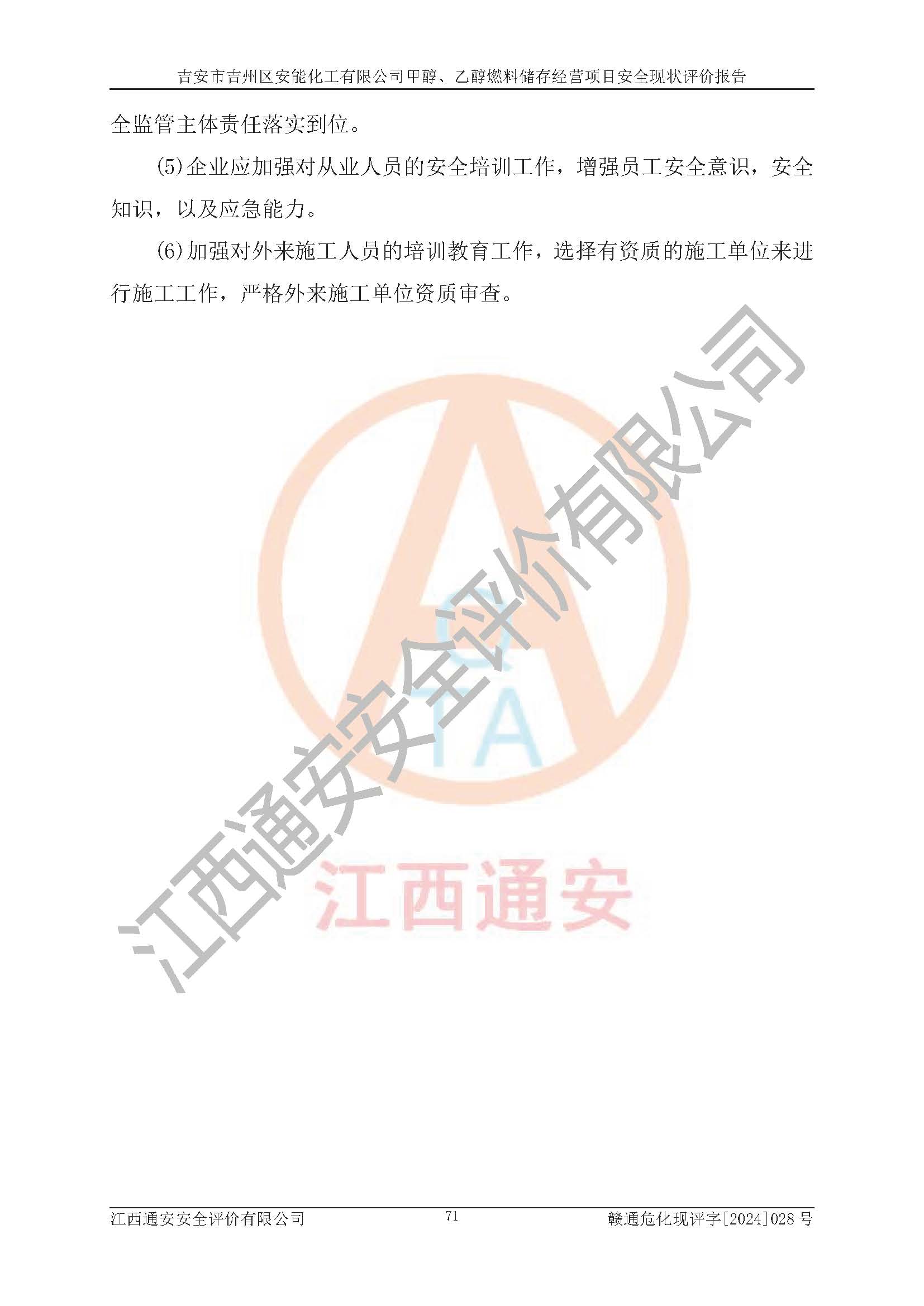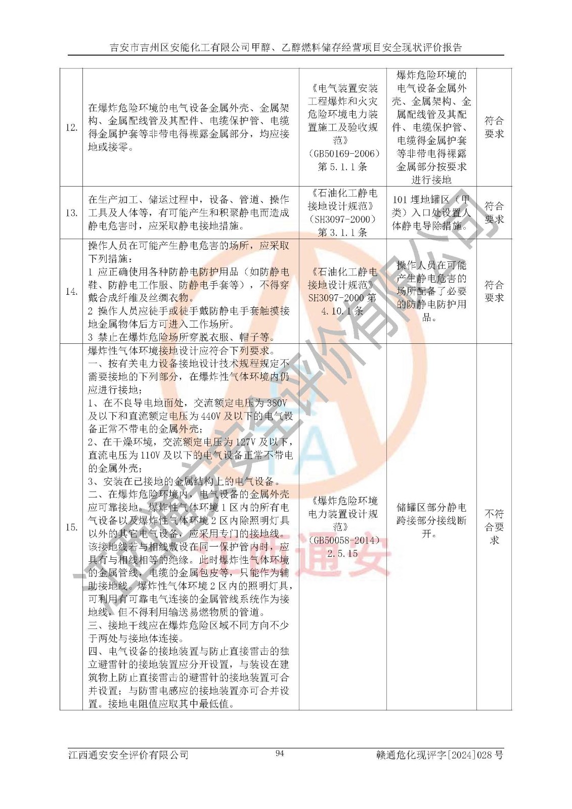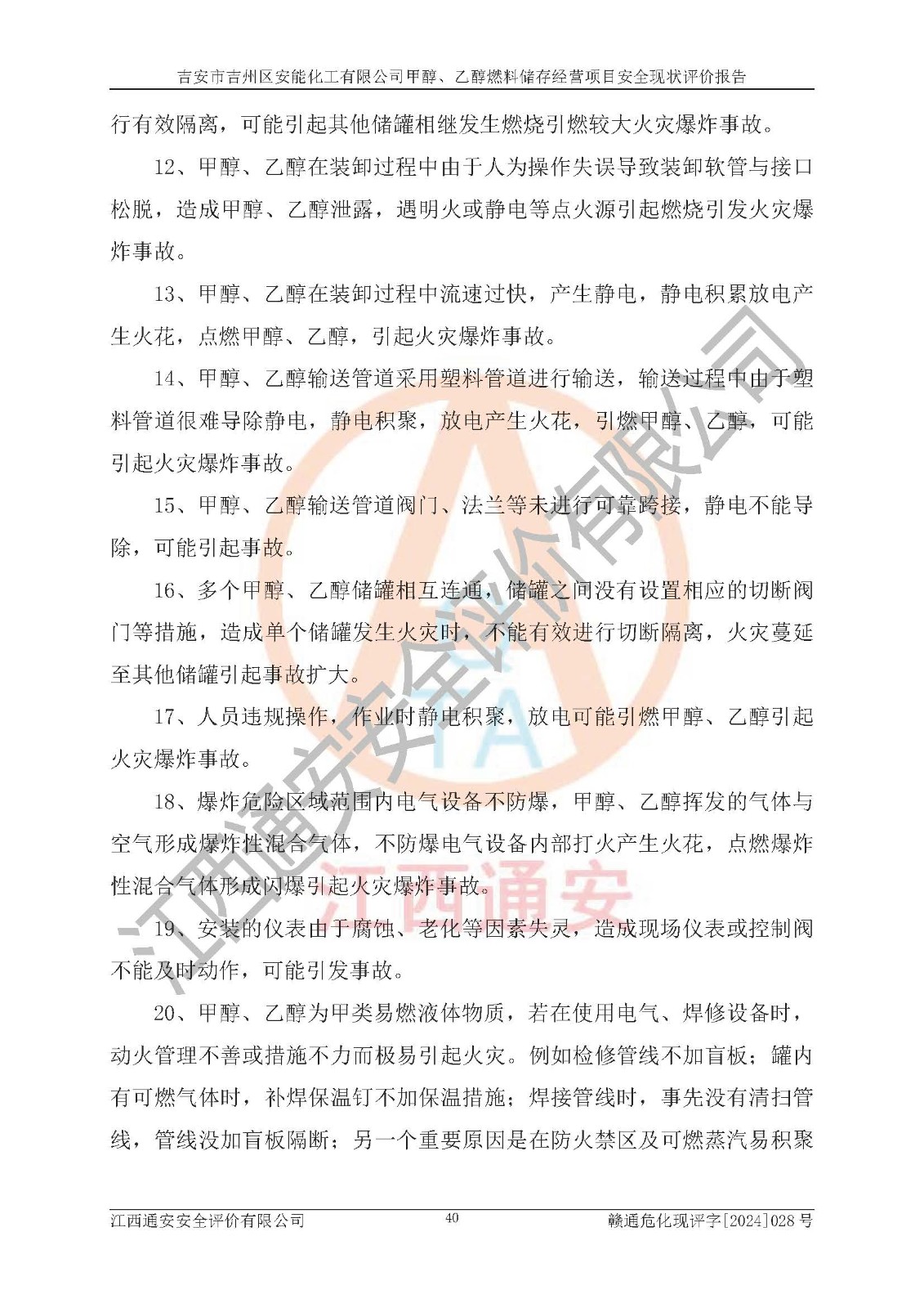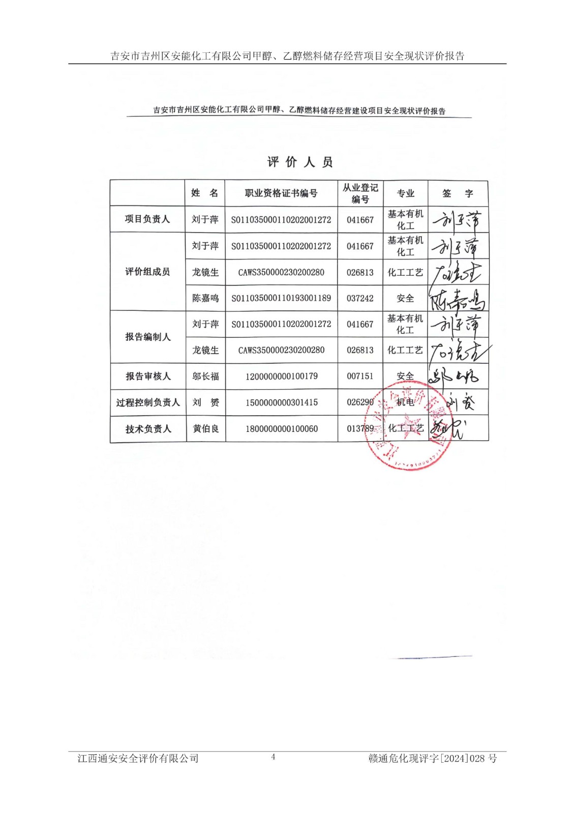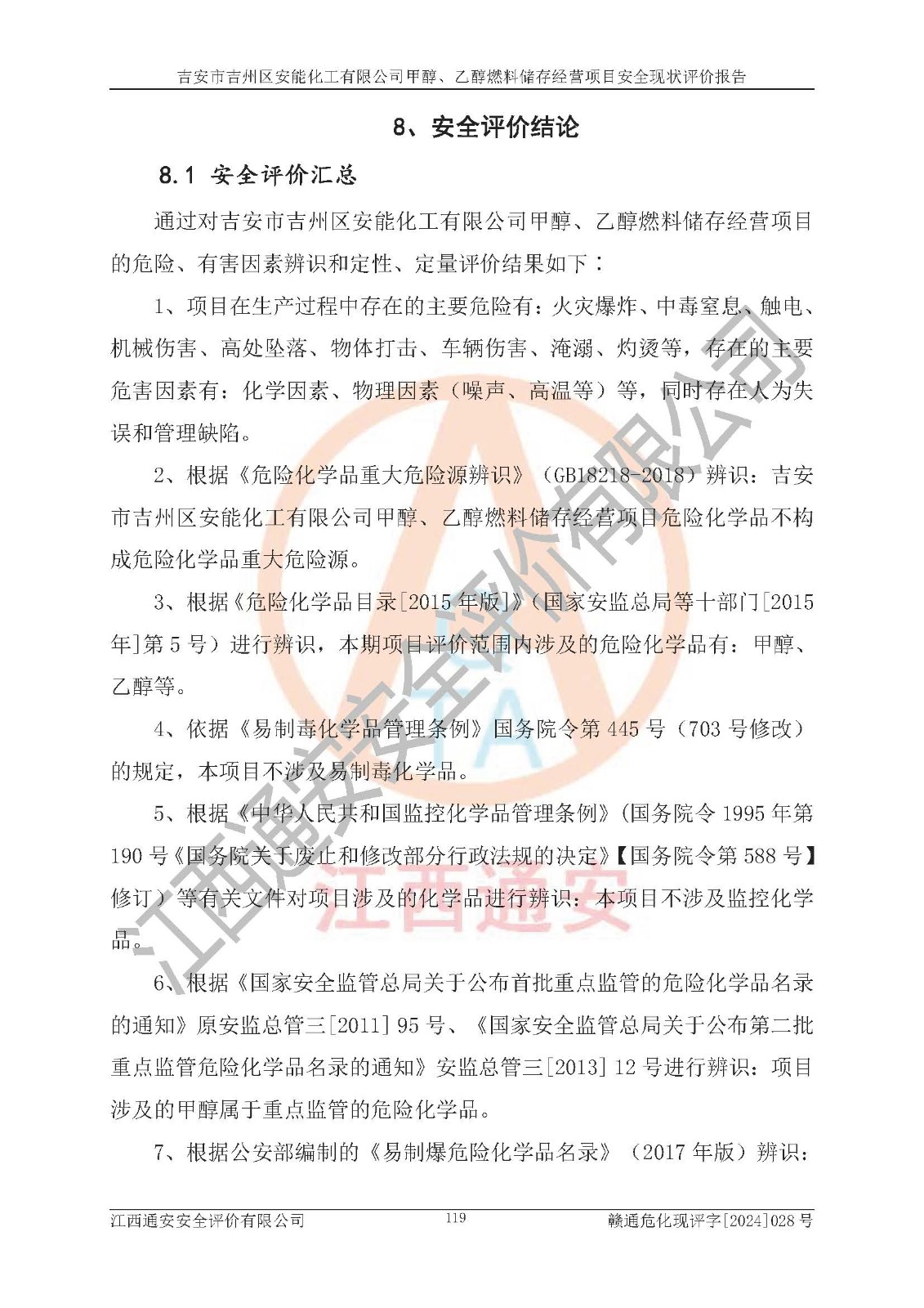 評價報告名稱 | 吉安市吉州區(qū)安能化工有限公司甲醇、乙醇燃料儲存經營項目安全現狀評價報告 | |||