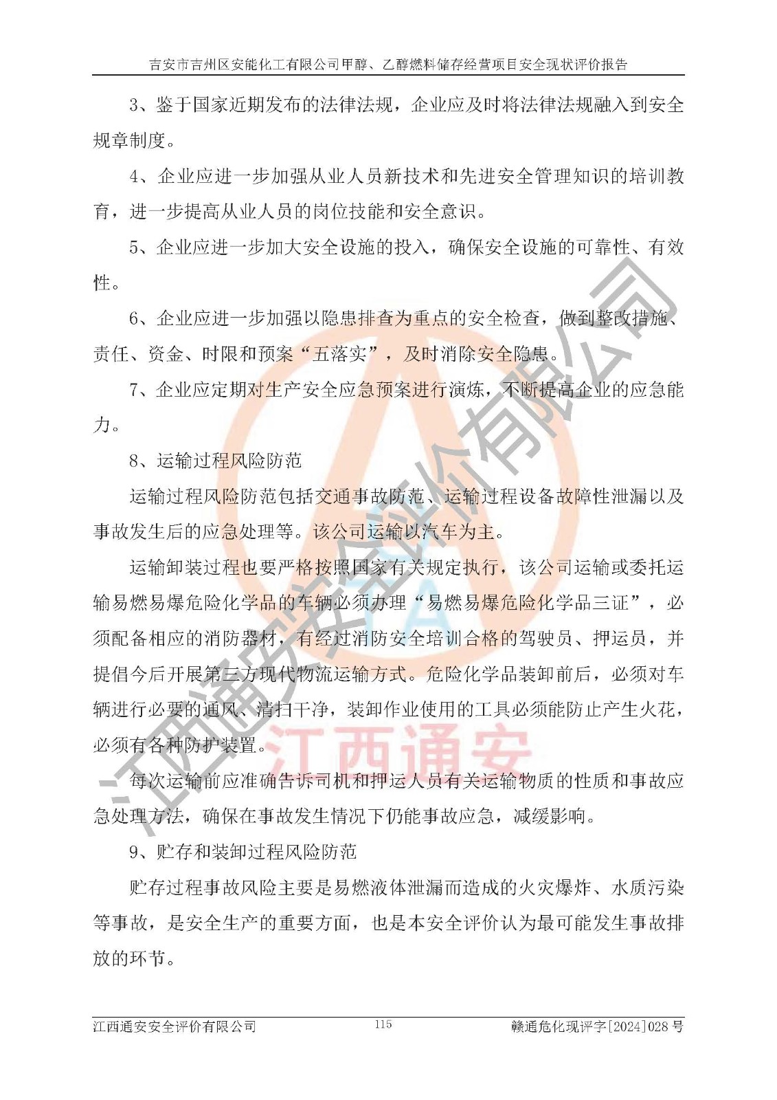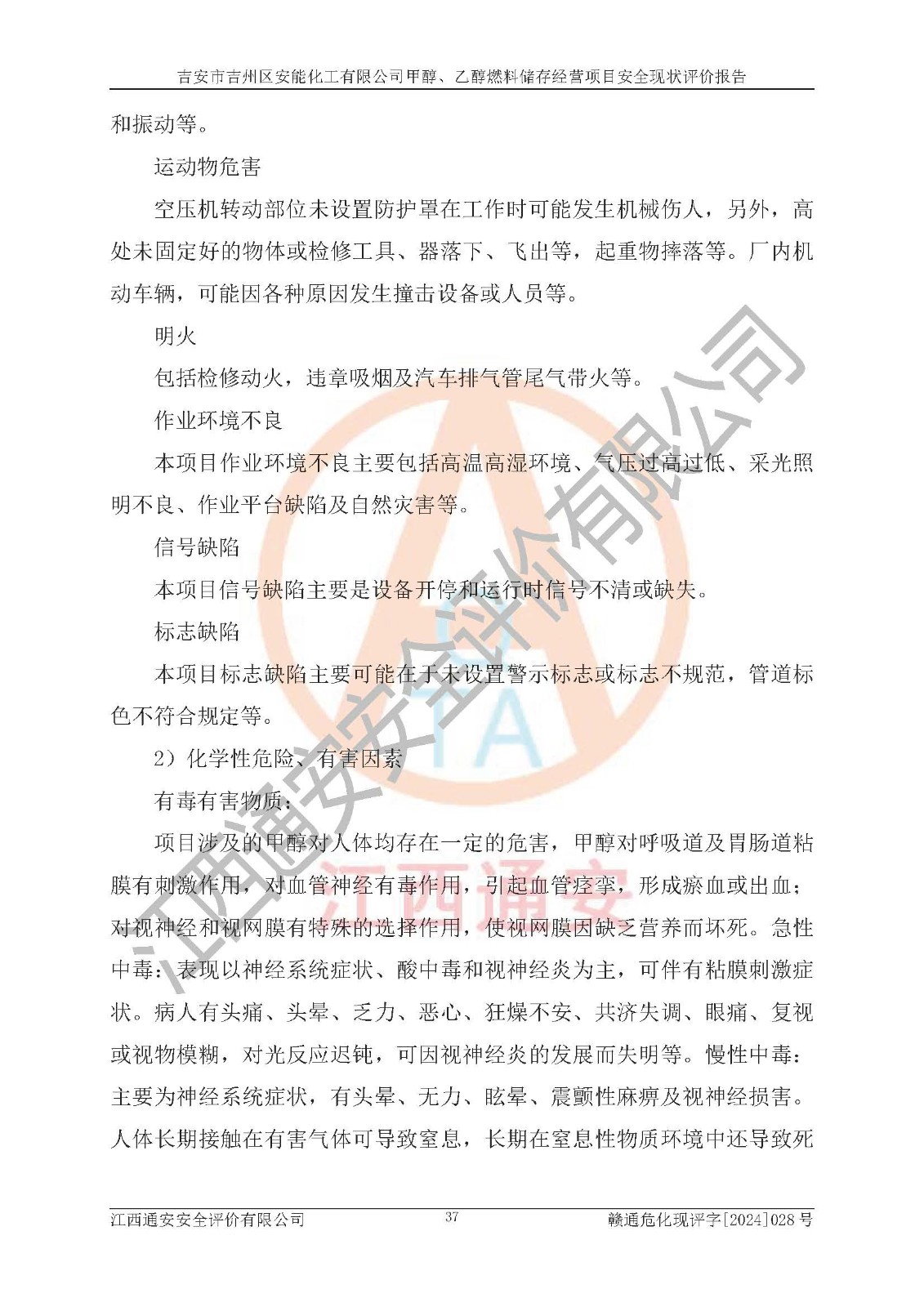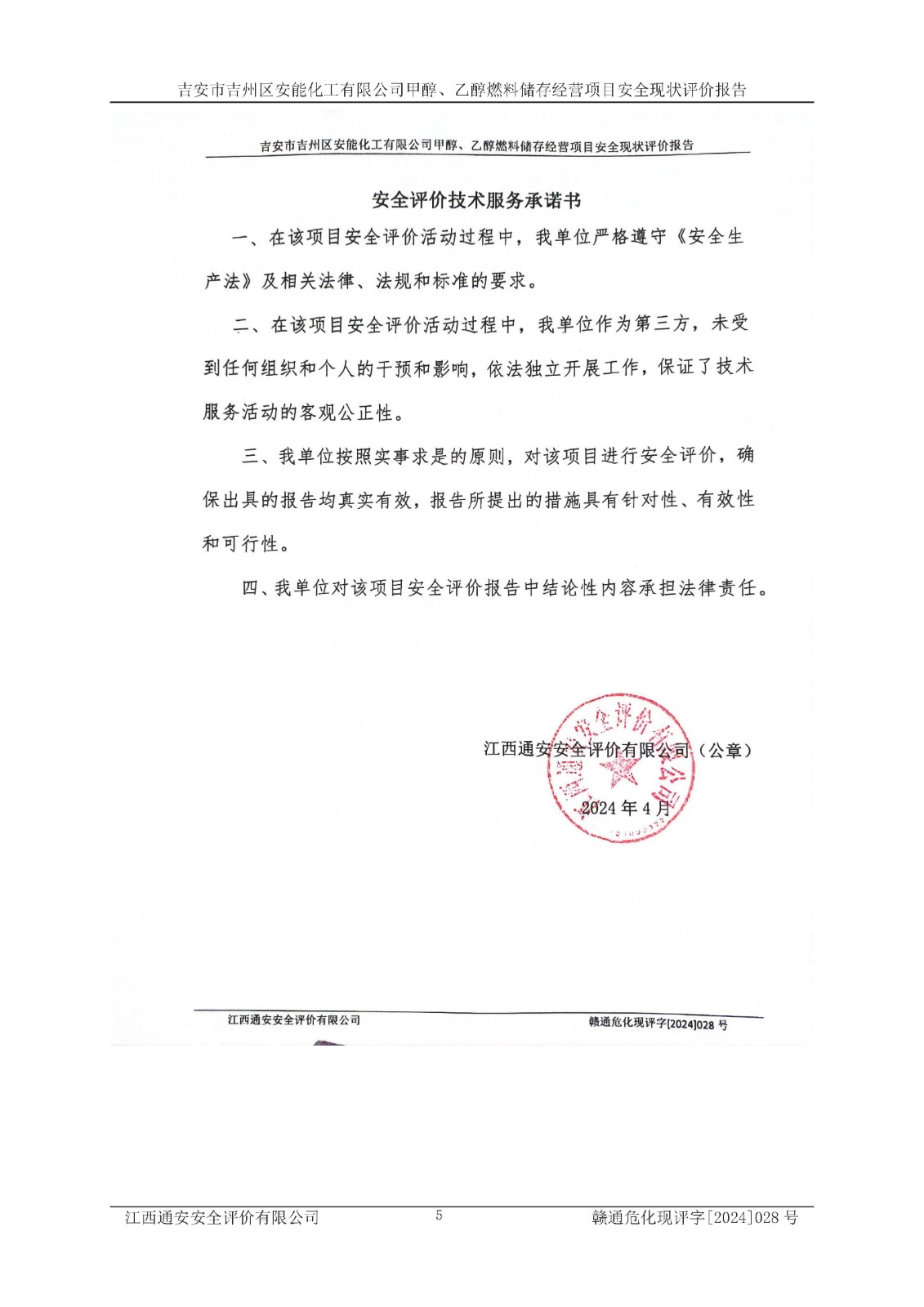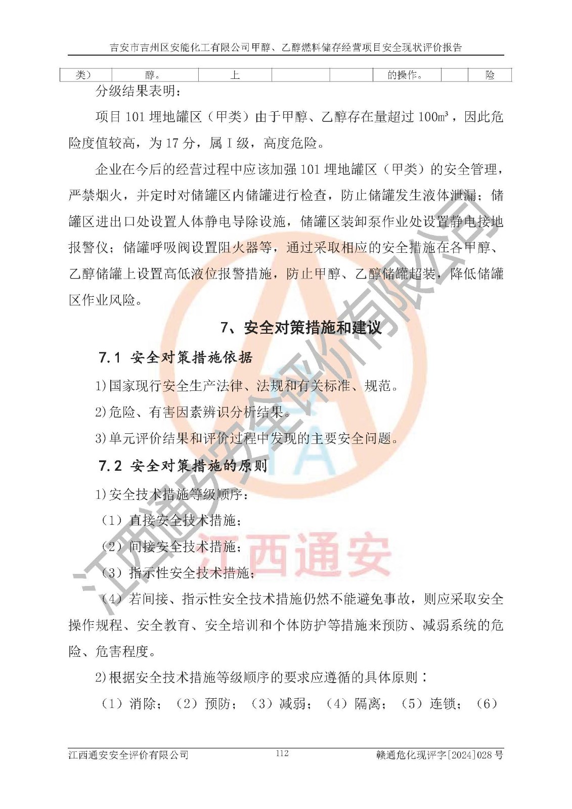 評價報告名稱 | 吉安市吉州區(qū)安能化工有限公司甲醇、乙醇燃料儲存經營項目安全現狀評價報告 | |||