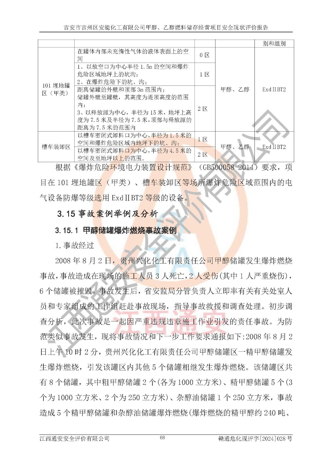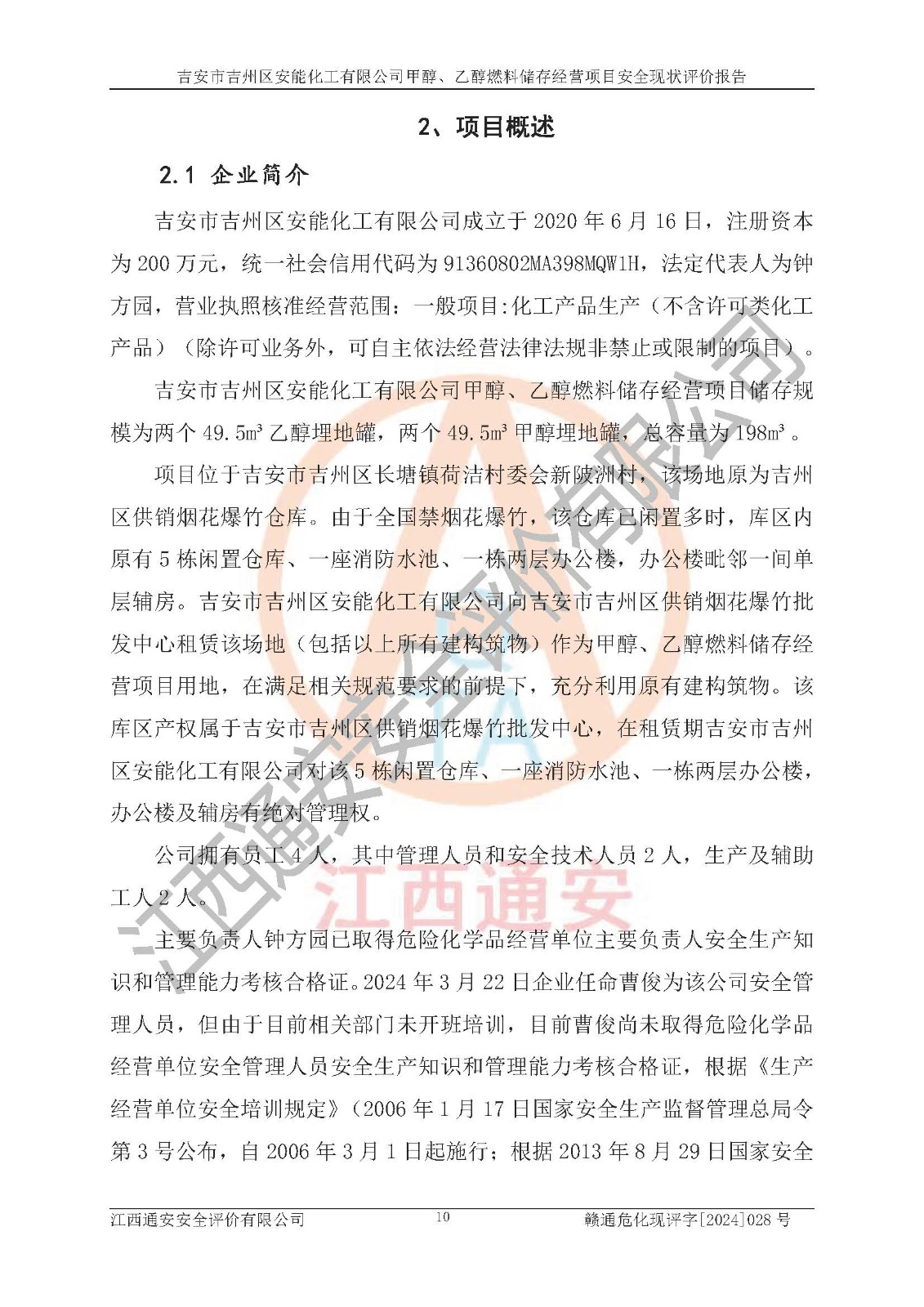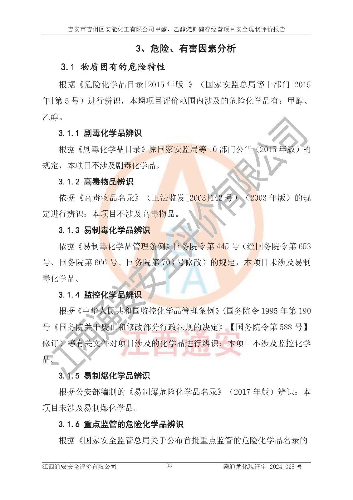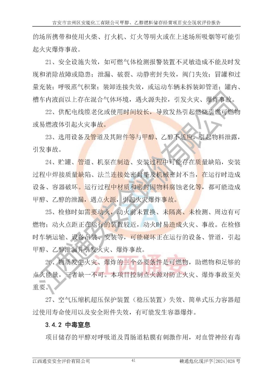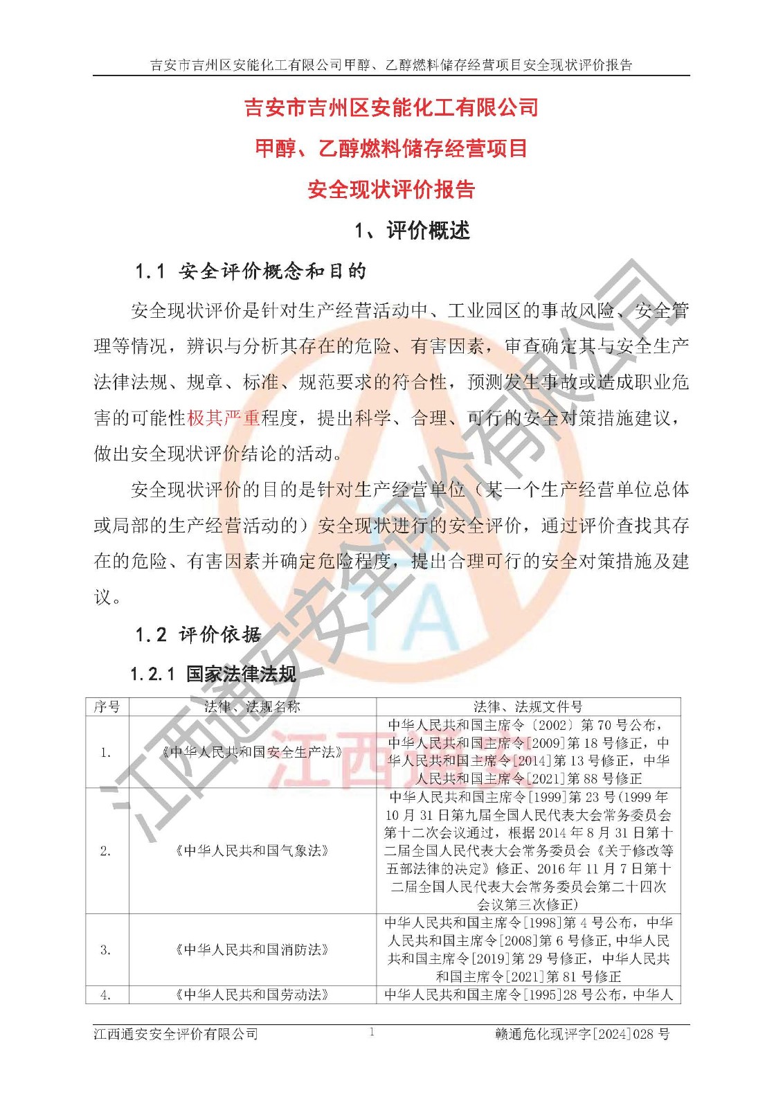 評價報告名稱 | 吉安市吉州區(qū)安能化工有限公司甲醇、乙醇燃料儲存經營項目安全現狀評價報告 | |||