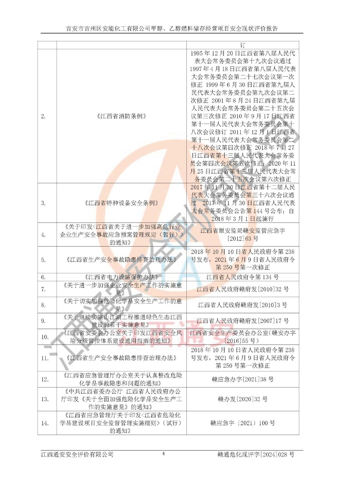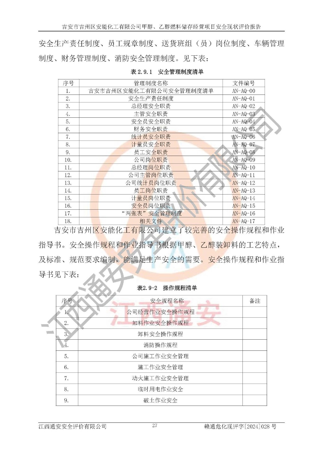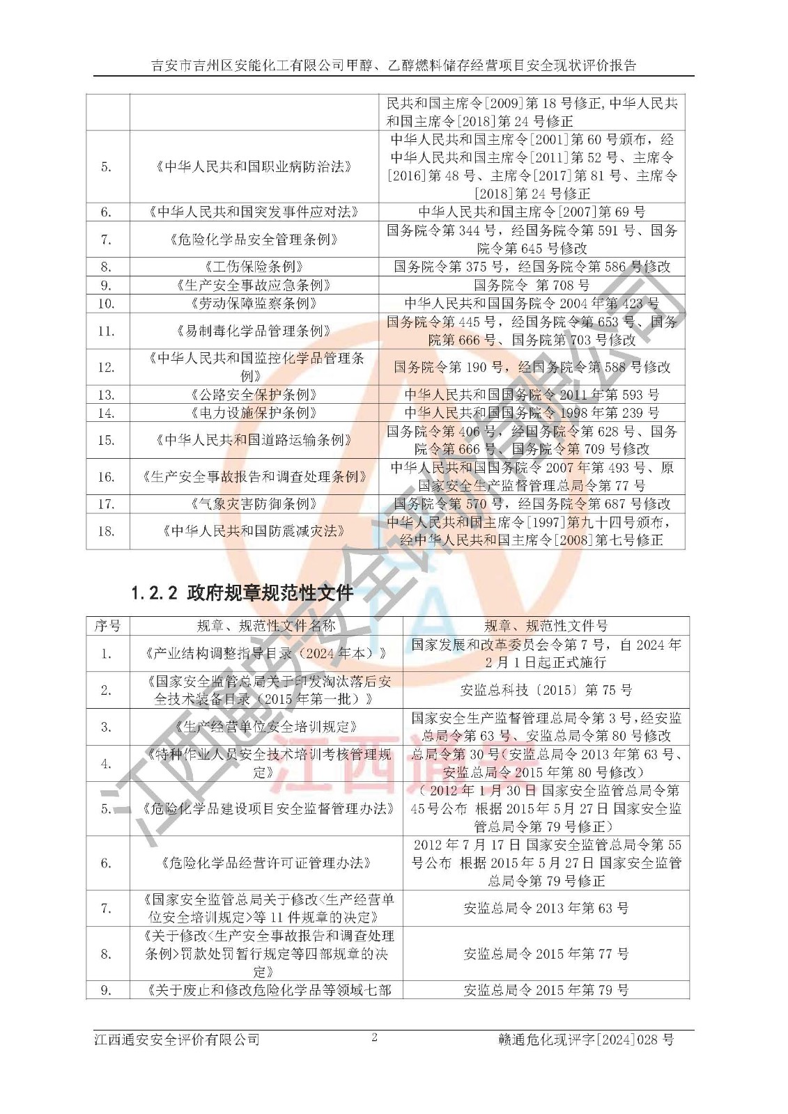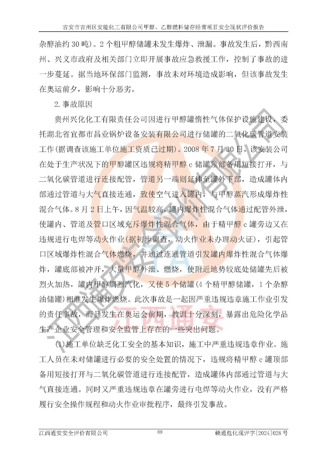 評價報告名稱 | 吉安市吉州區(qū)安能化工有限公司甲醇、乙醇燃料儲存經營項目安全現狀評價報告 | |||