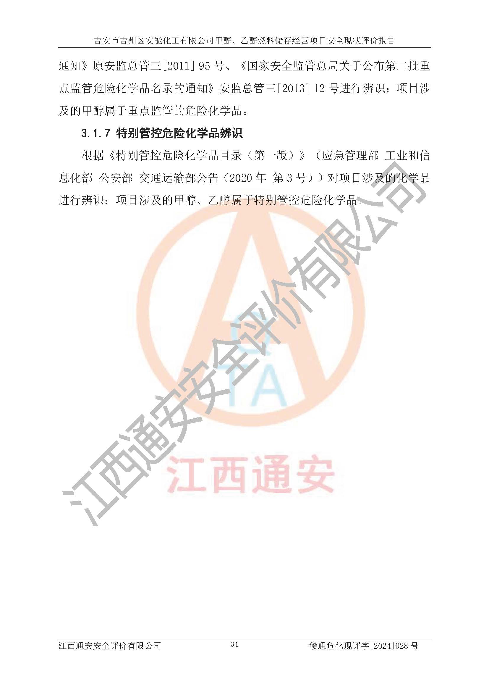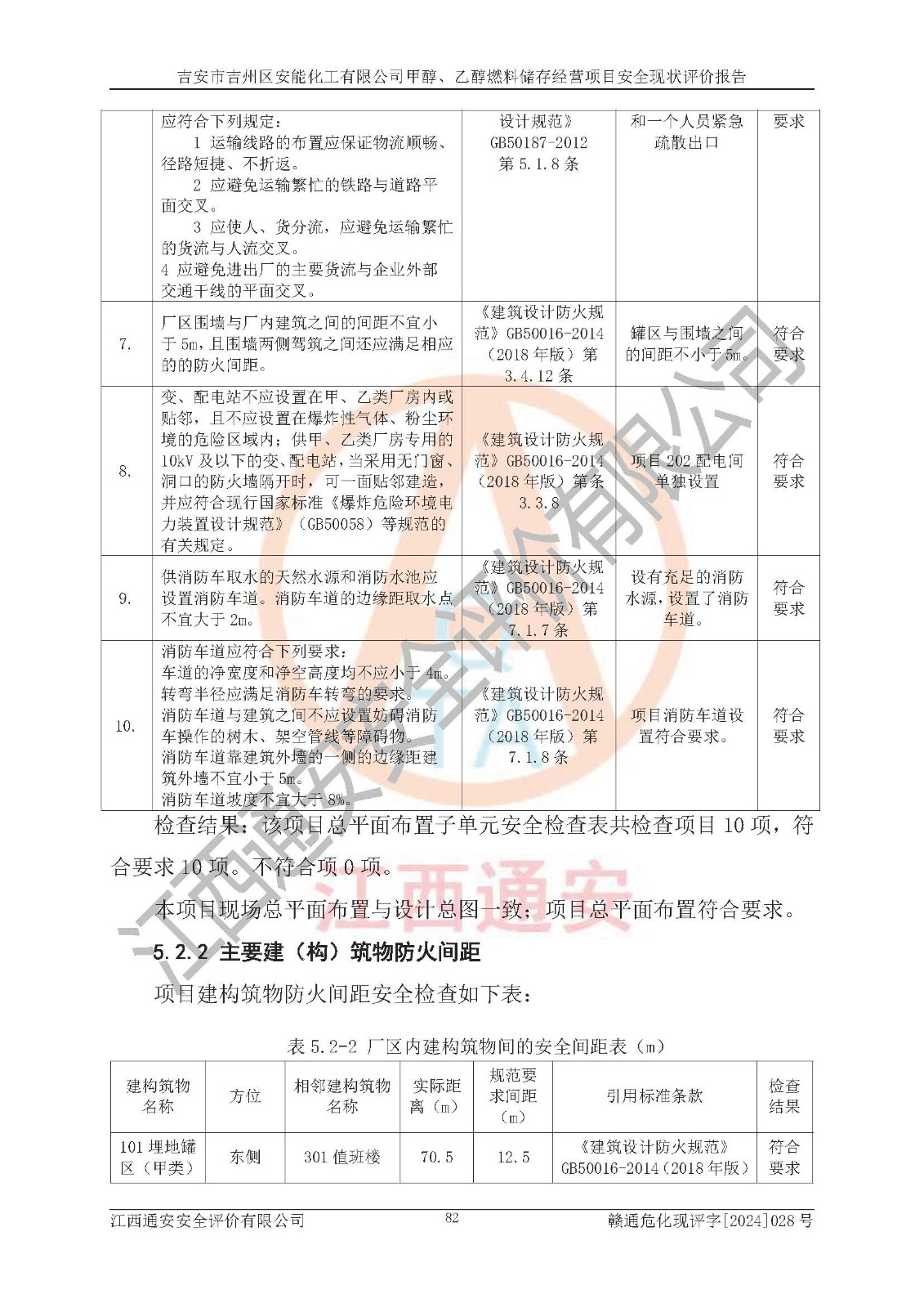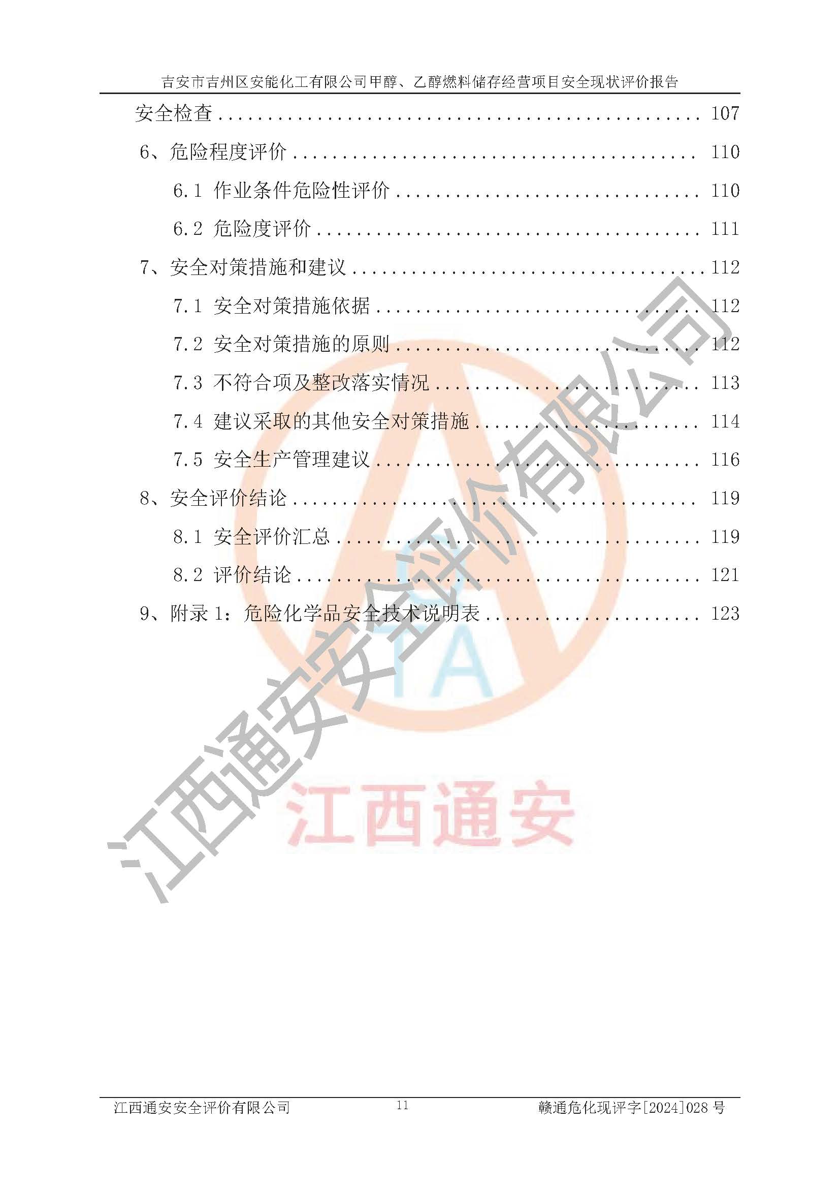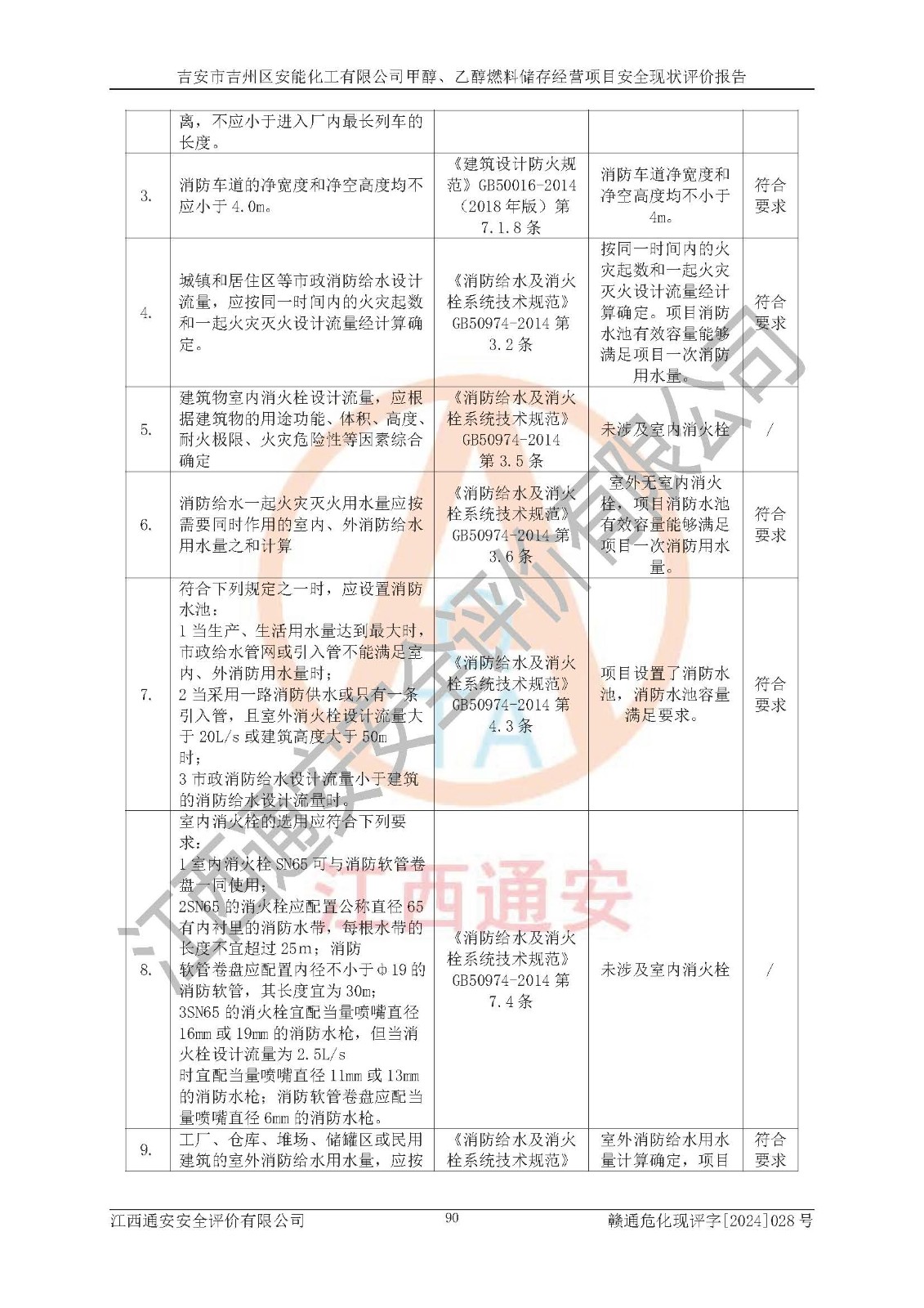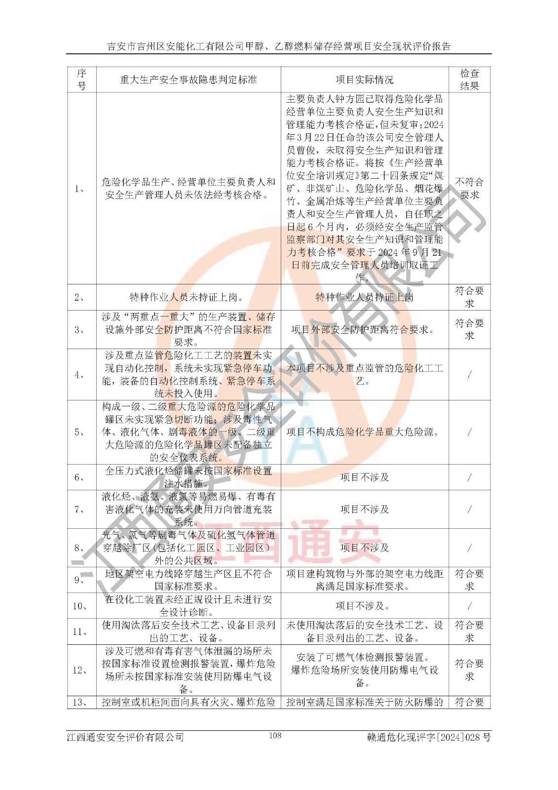 評價結論 | 吉安市吉州區(qū)安能化工有限公司甲醇、乙醇燃料儲存經營項目經營現狀滿足項目危險化學品儲存和經營的要求,安全管理**,安全風險可控,滿足危險化學品經營的安全條件。 | |||