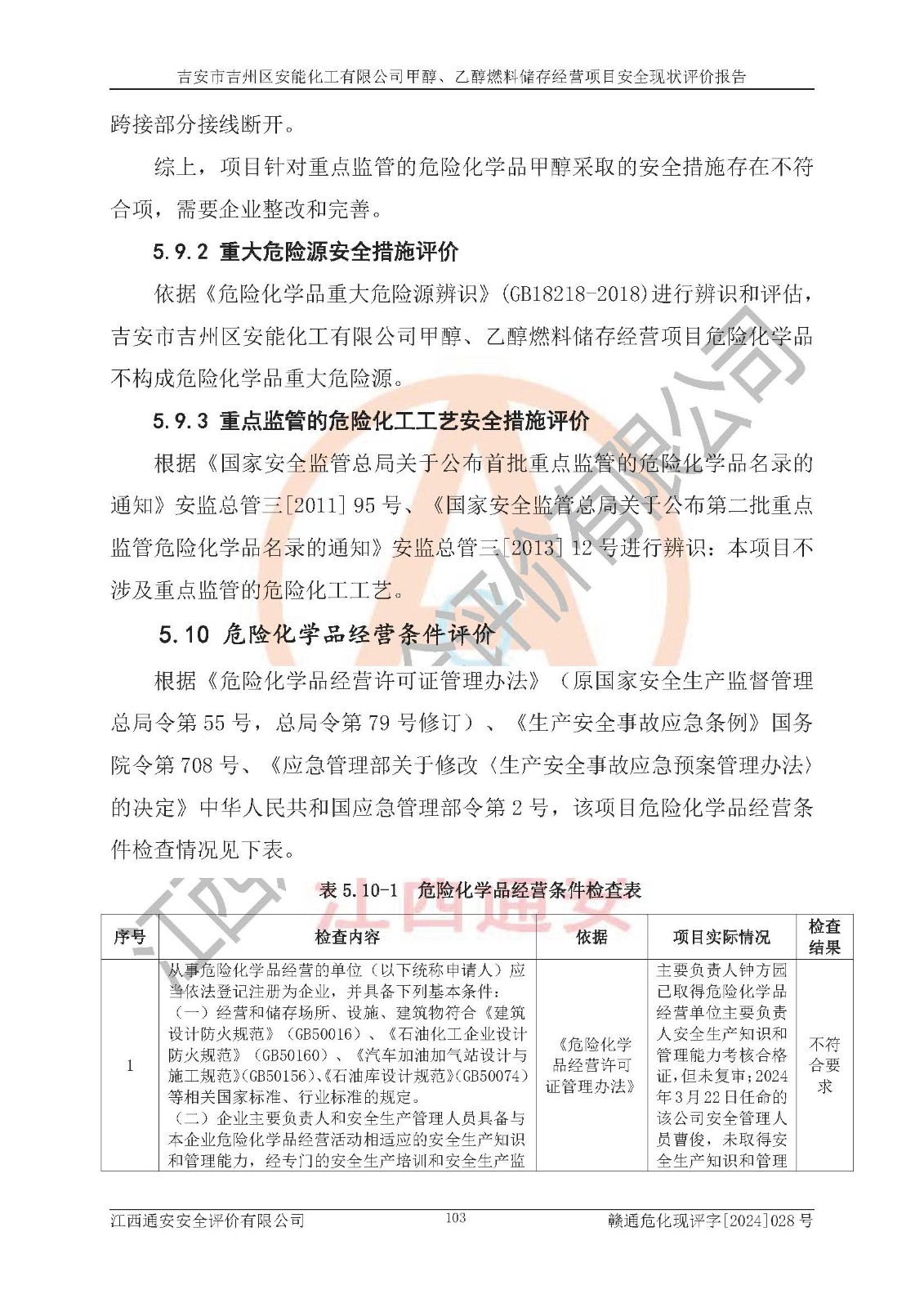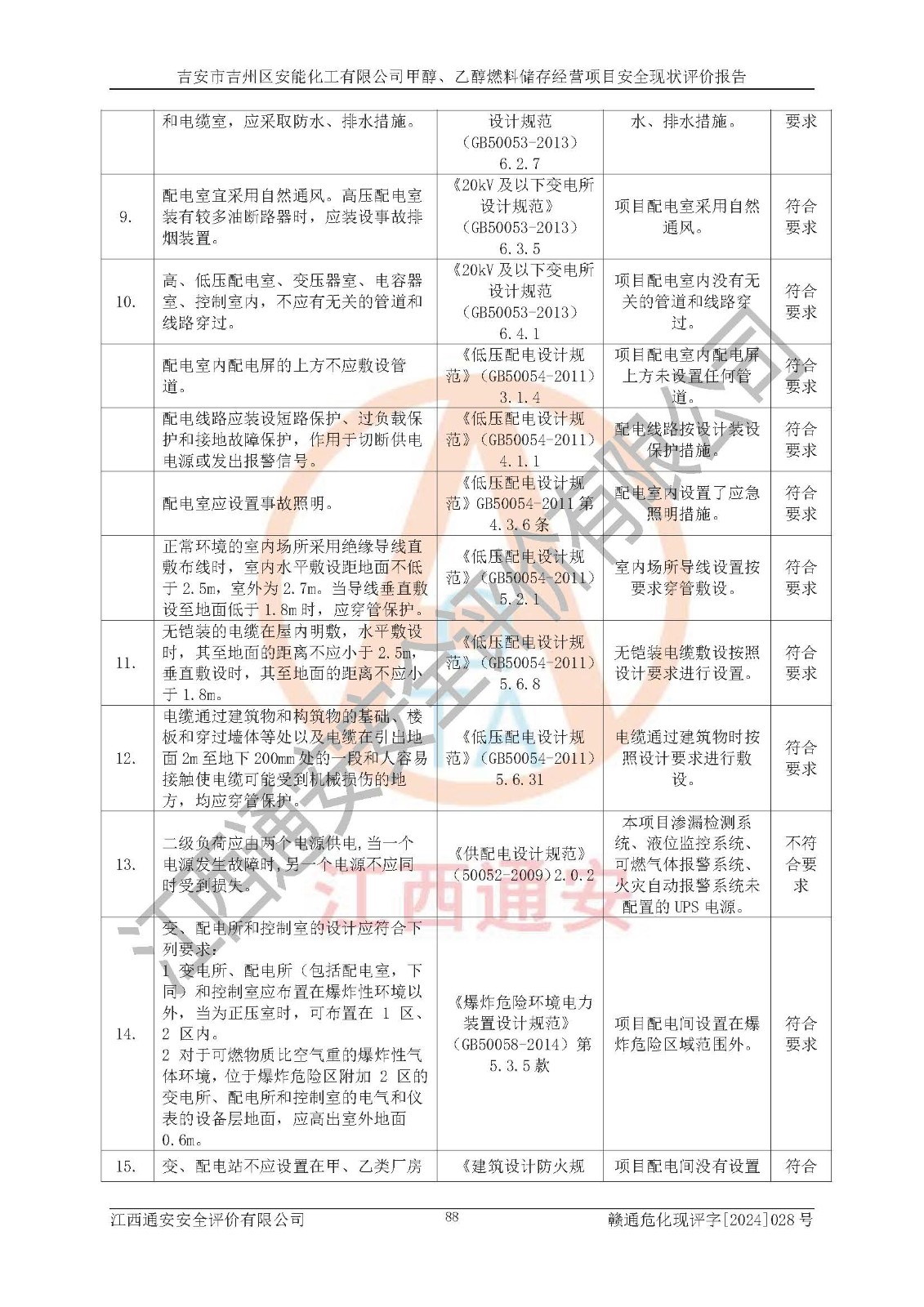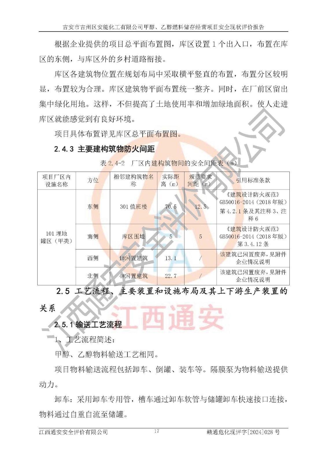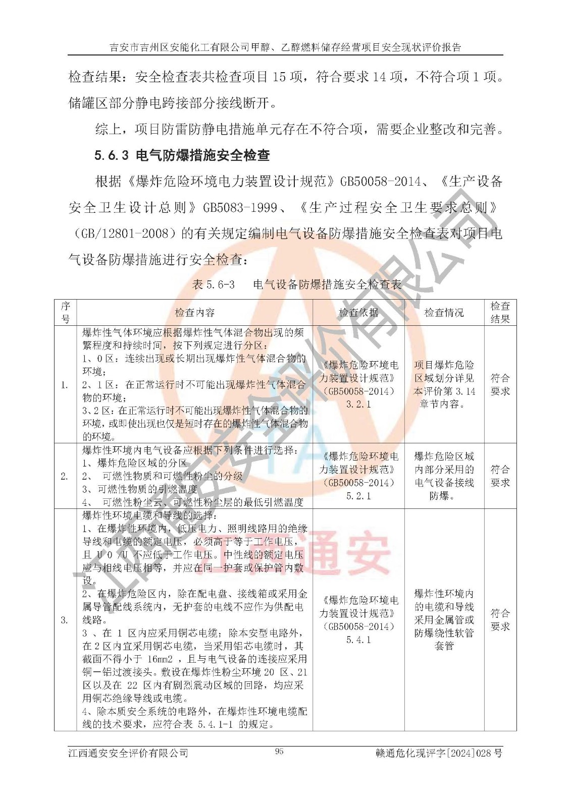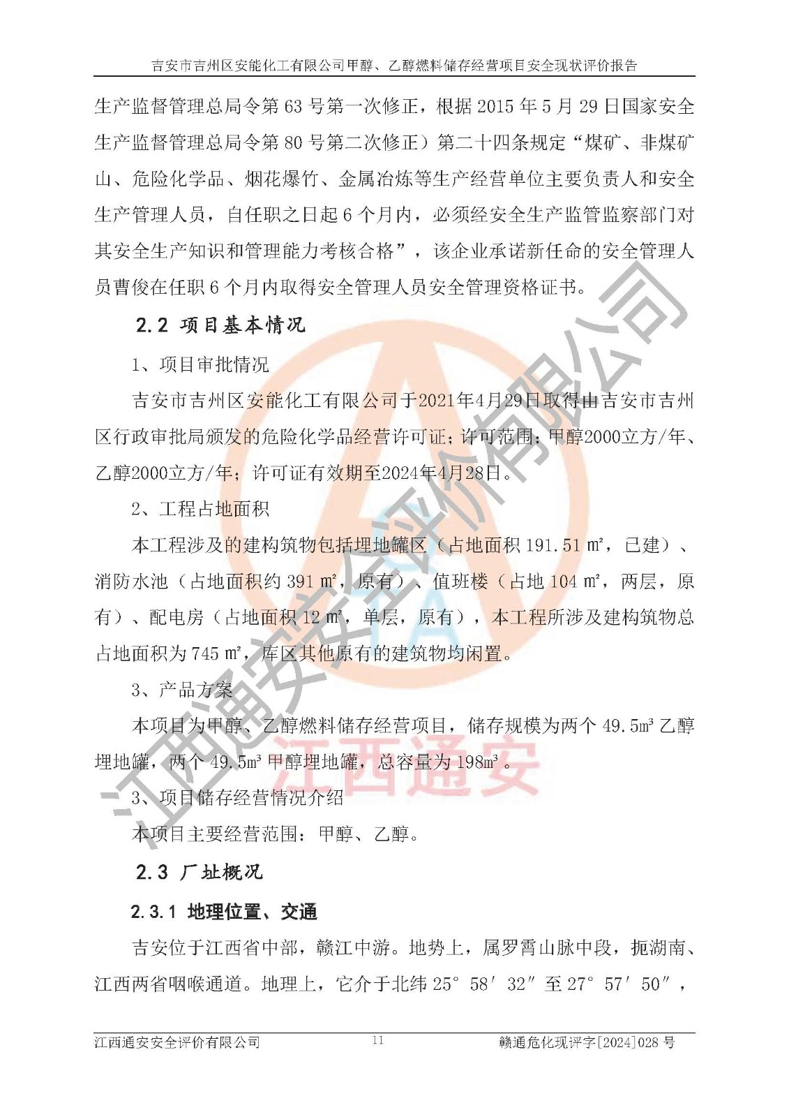 評價結論 | 吉安市吉州區(qū)安能化工有限公司甲醇、乙醇燃料儲存經營項目經營現狀滿足項目危險化學品儲存和經營的要求,安全管理**,安全風險可控,滿足危險化學品經營的安全條件。 | |||