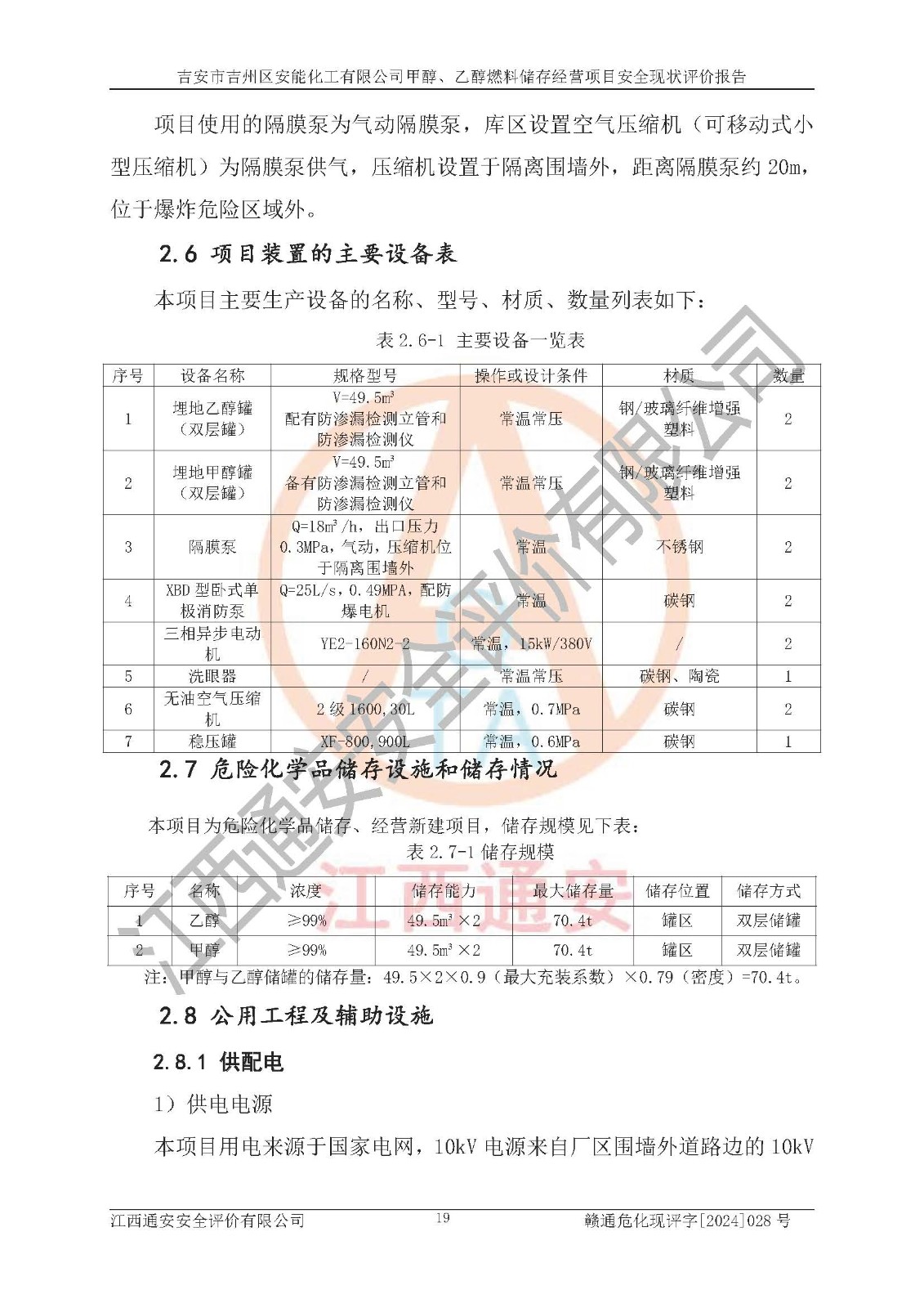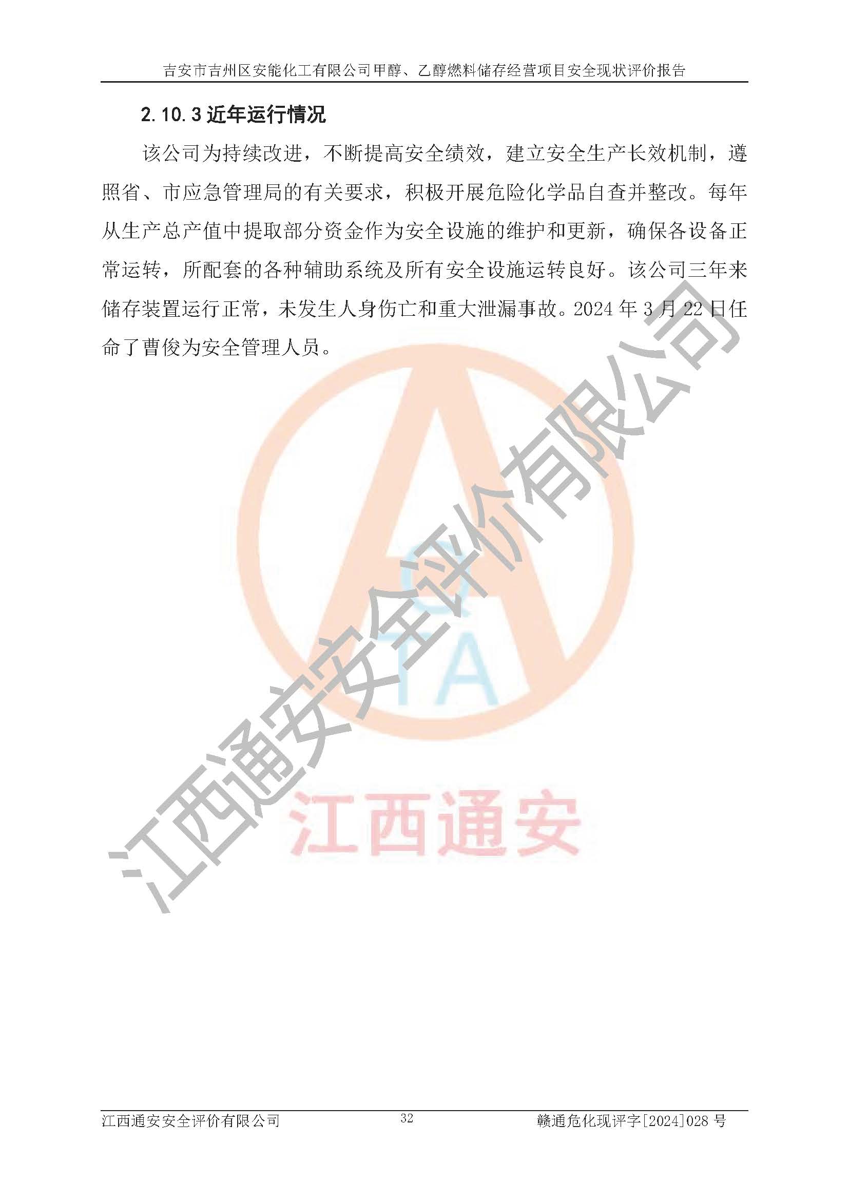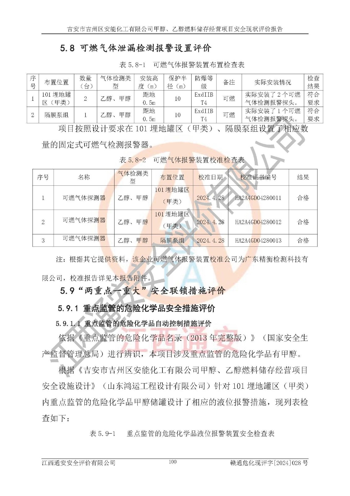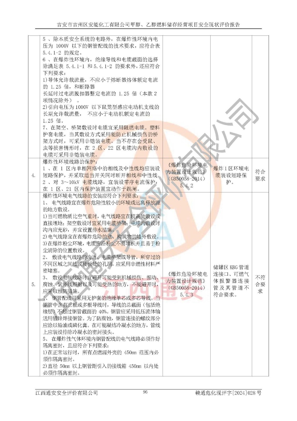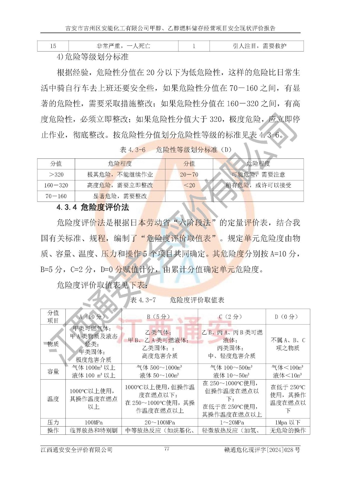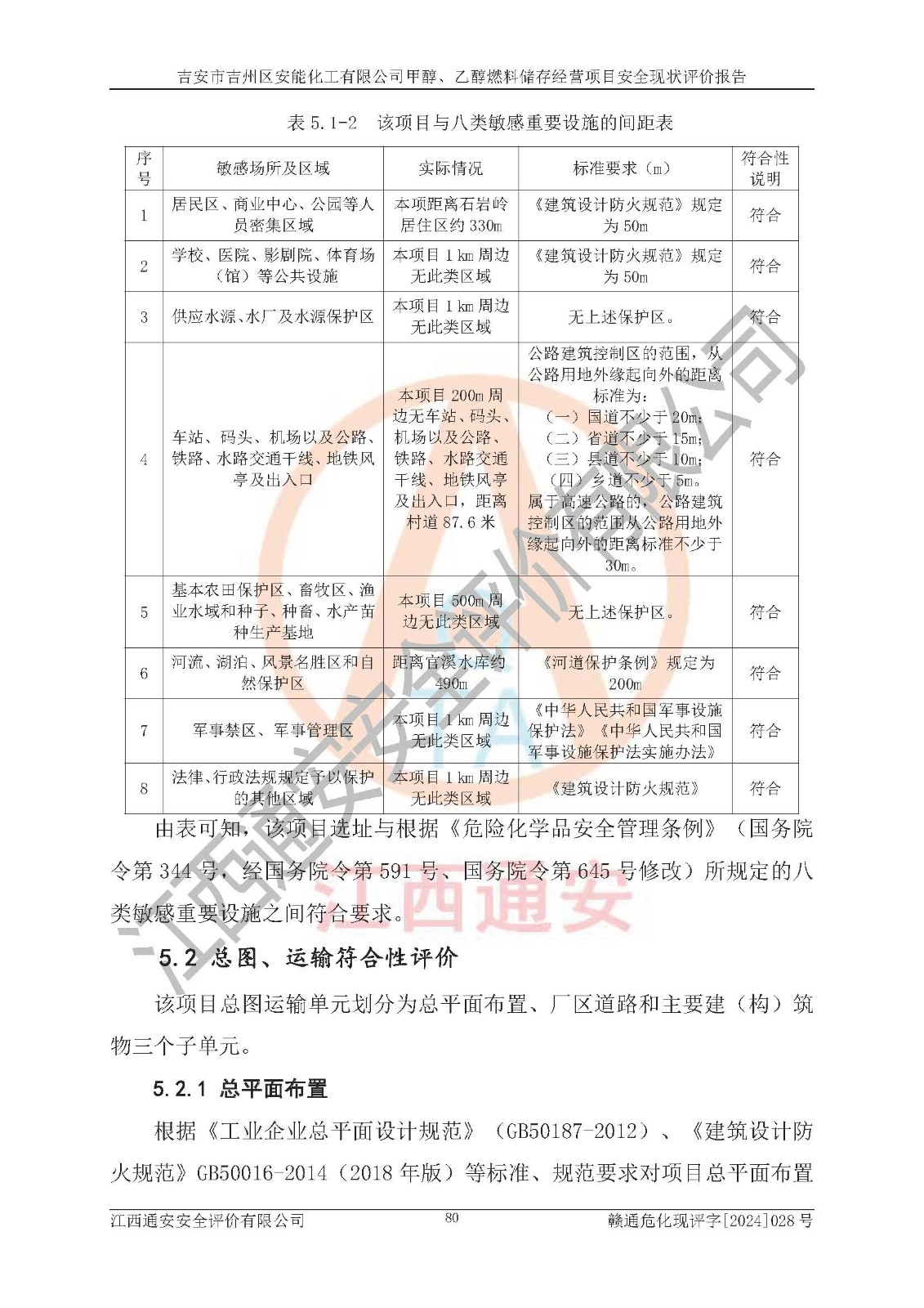 評價結論 | 吉安市吉州區(qū)安能化工有限公司甲醇、乙醇燃料儲存經營項目經營現狀滿足項目危險化學品儲存和經營的要求,安全管理**,安全風險可控,滿足危險化學品經營的安全條件。 | |||