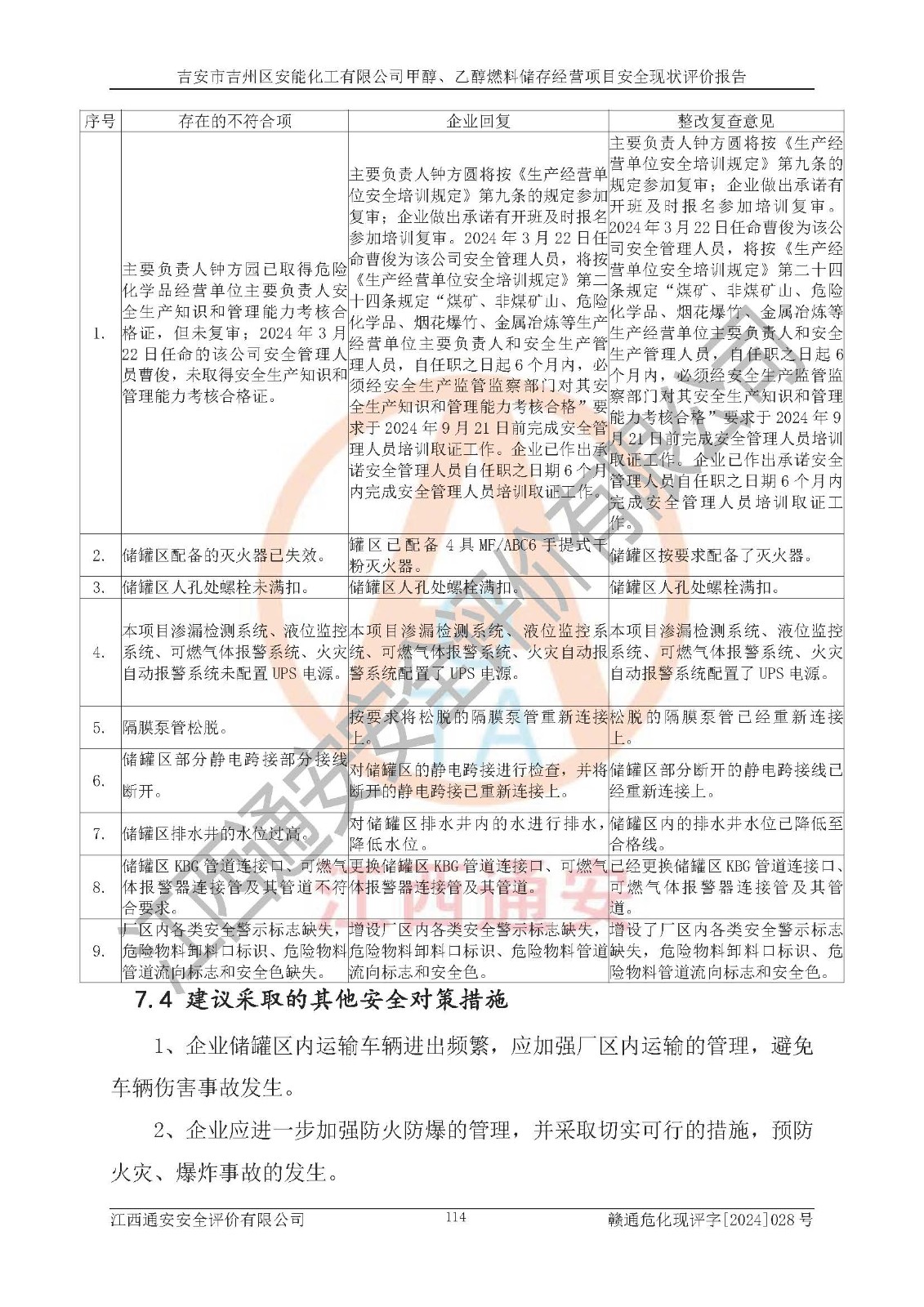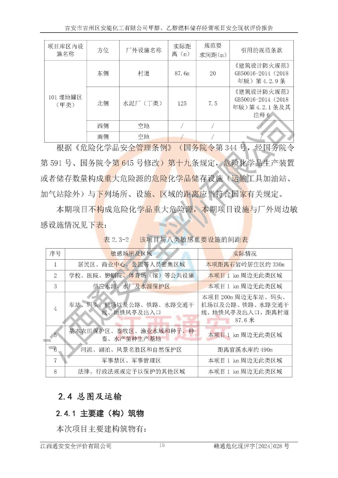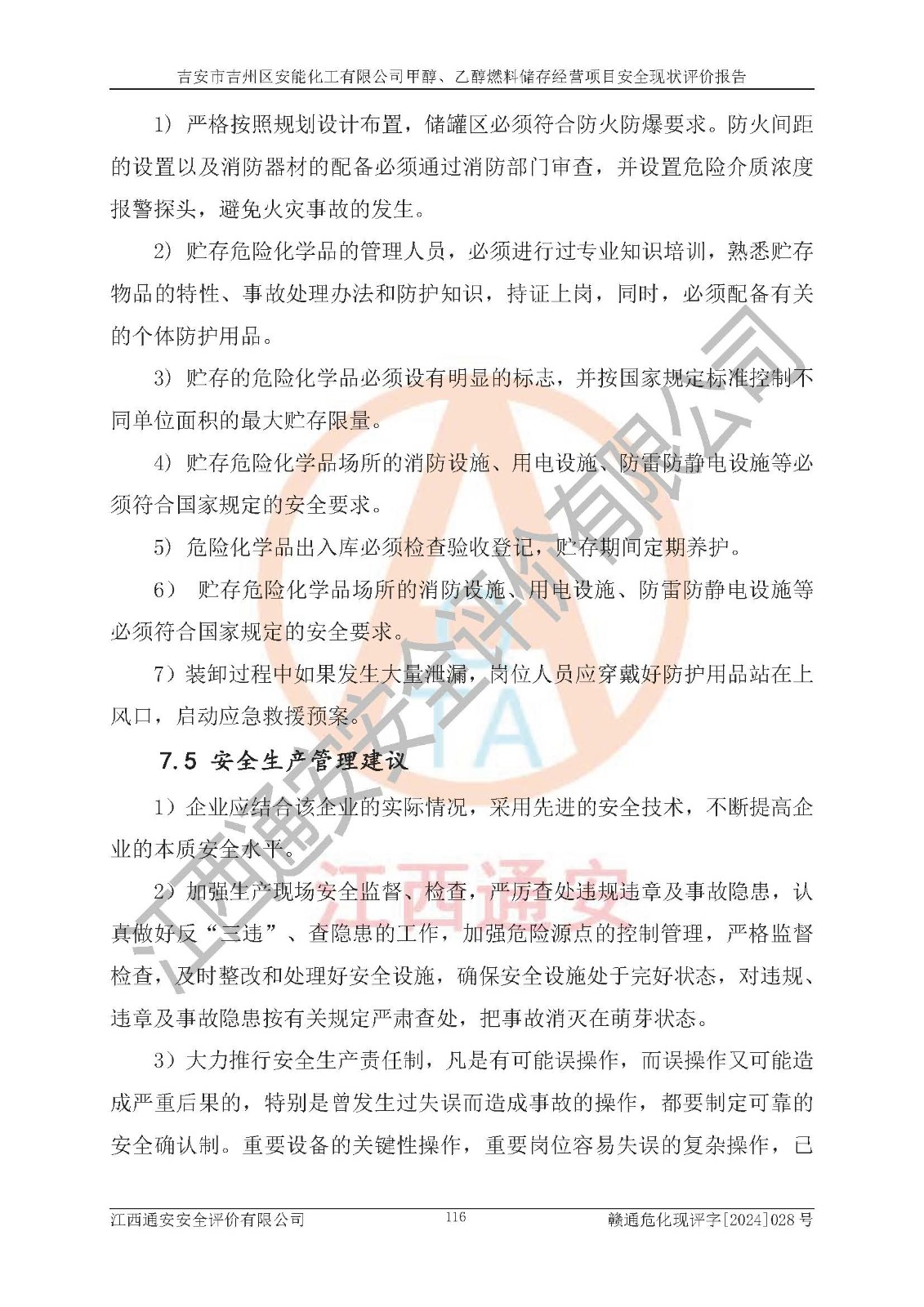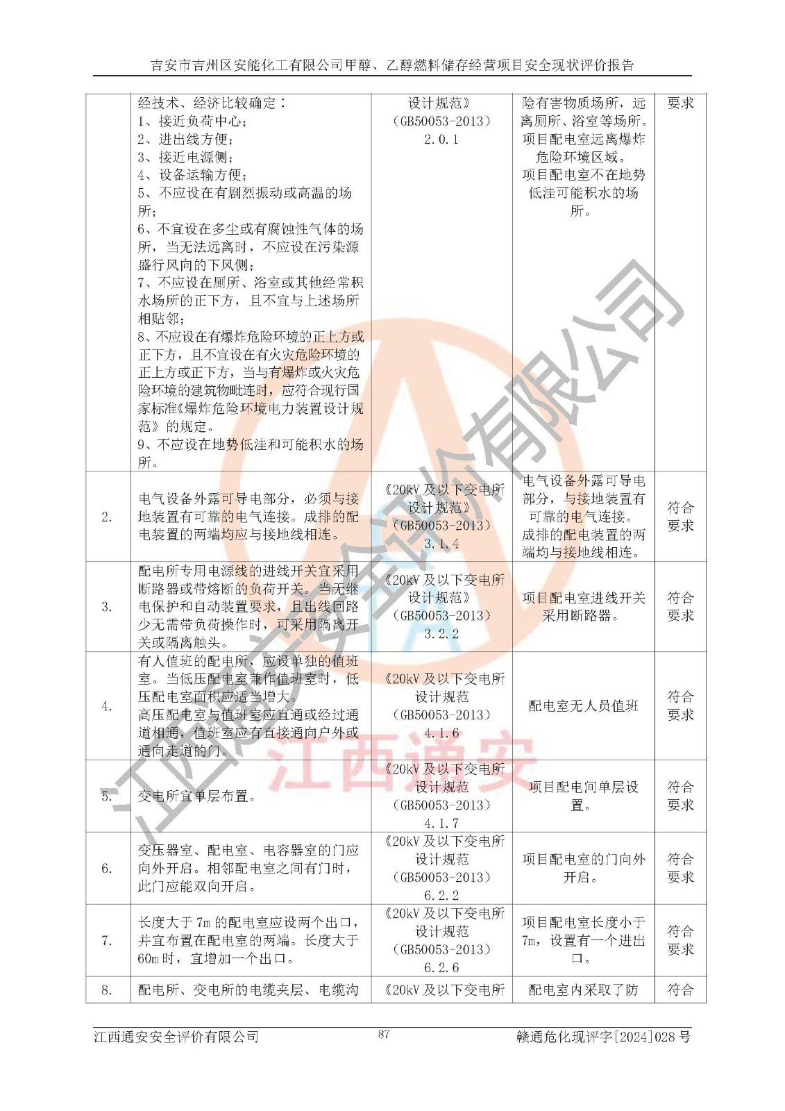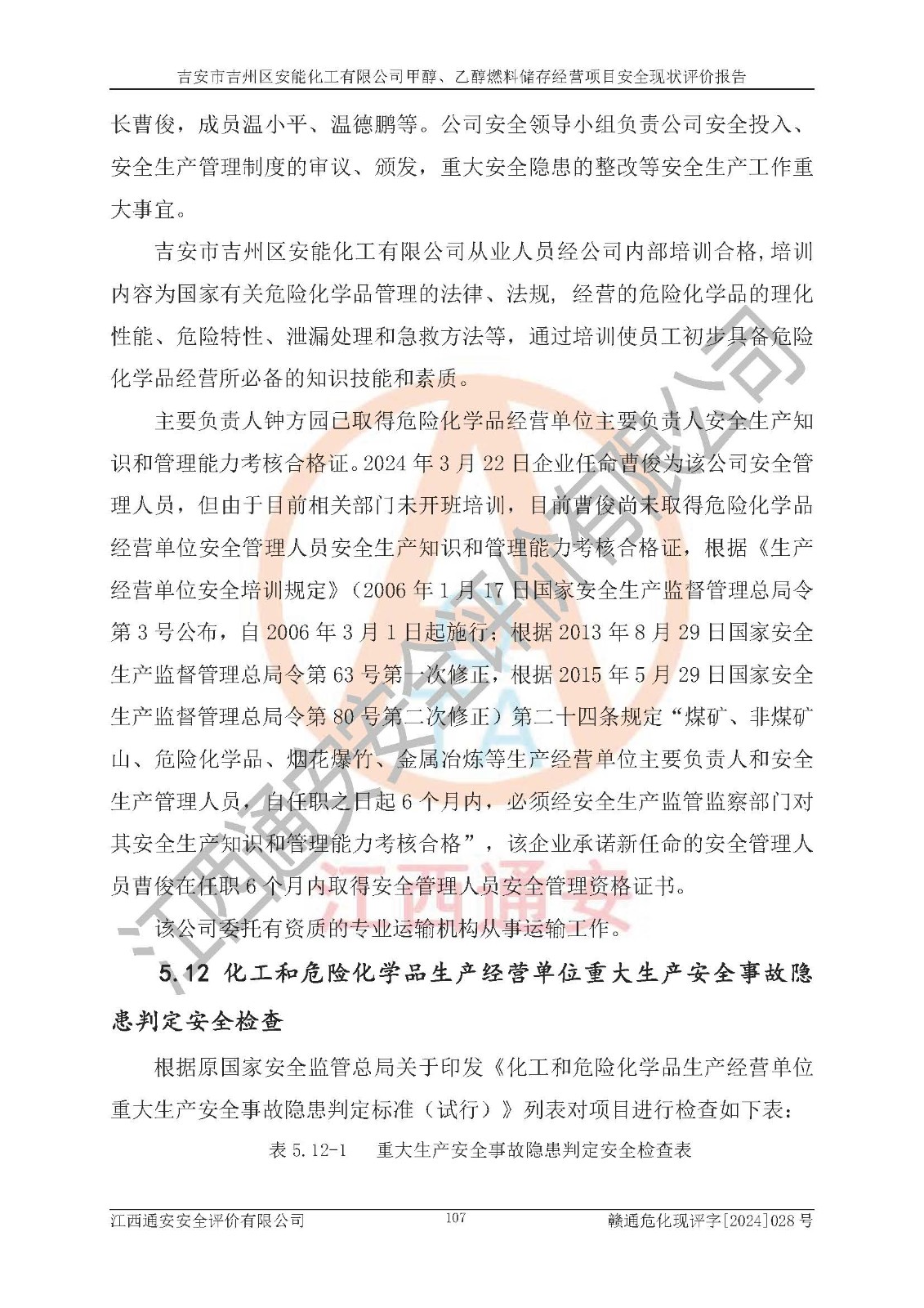 評價結論 | 吉安市吉州區(qū)安能化工有限公司甲醇、乙醇燃料儲存經營項目經營現狀滿足項目危險化學品儲存和經營的要求,安全管理**,安全風險可控,滿足危險化學品經營的安全條件。 | |||