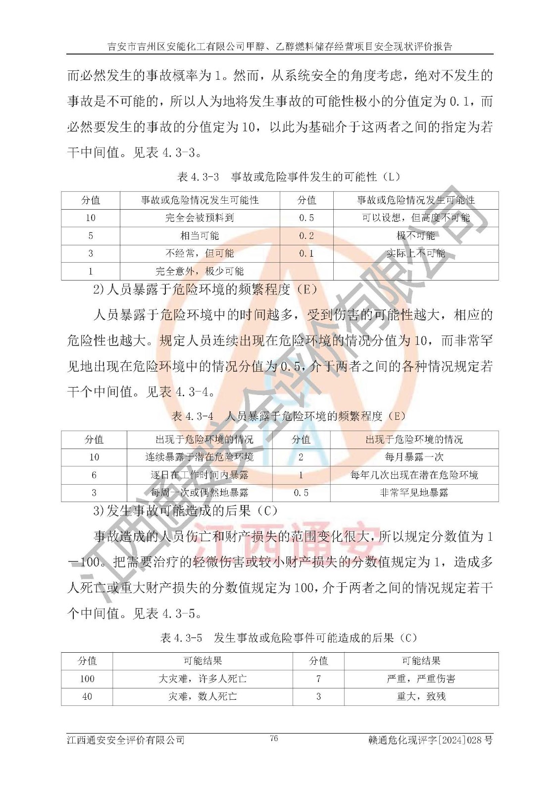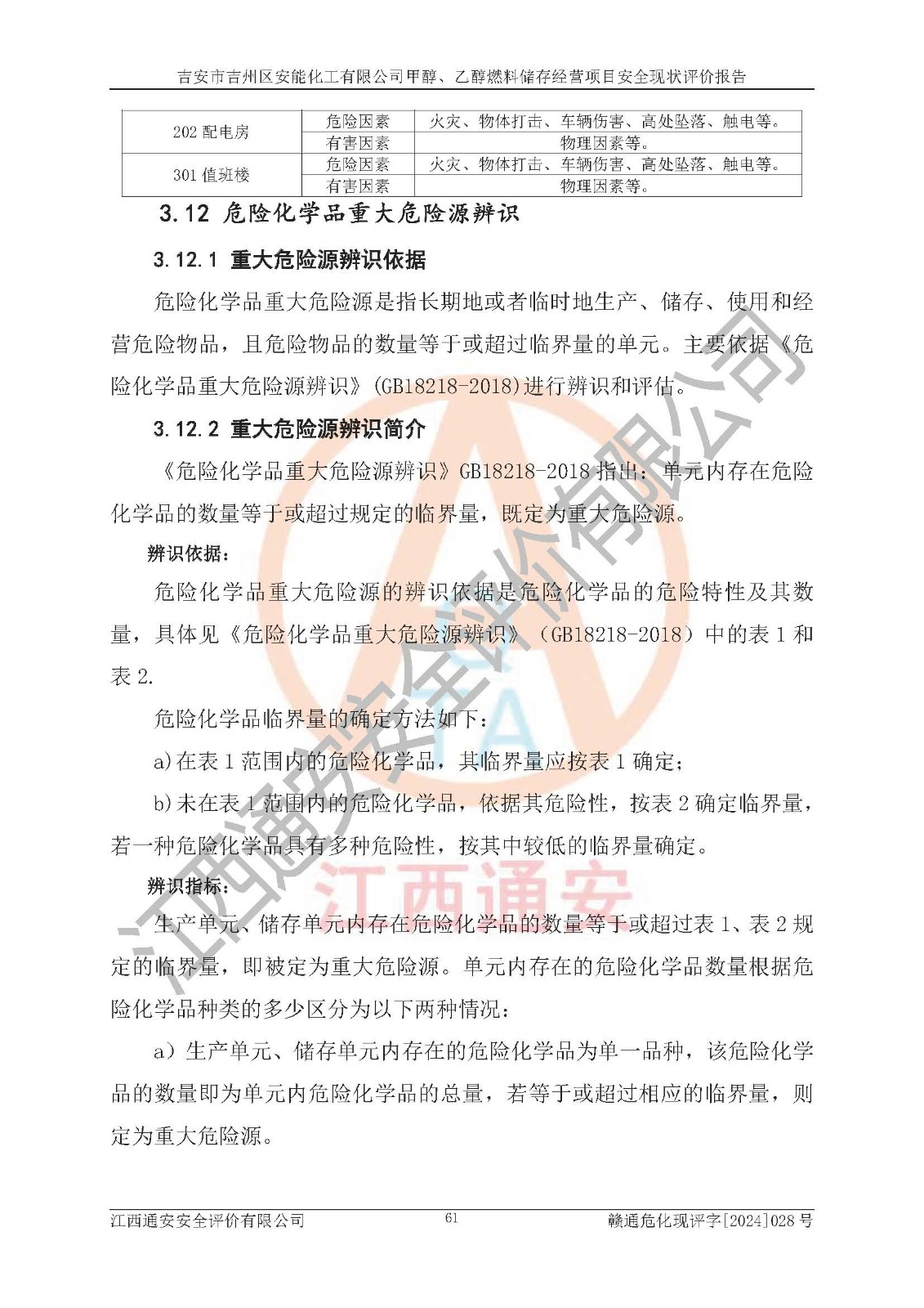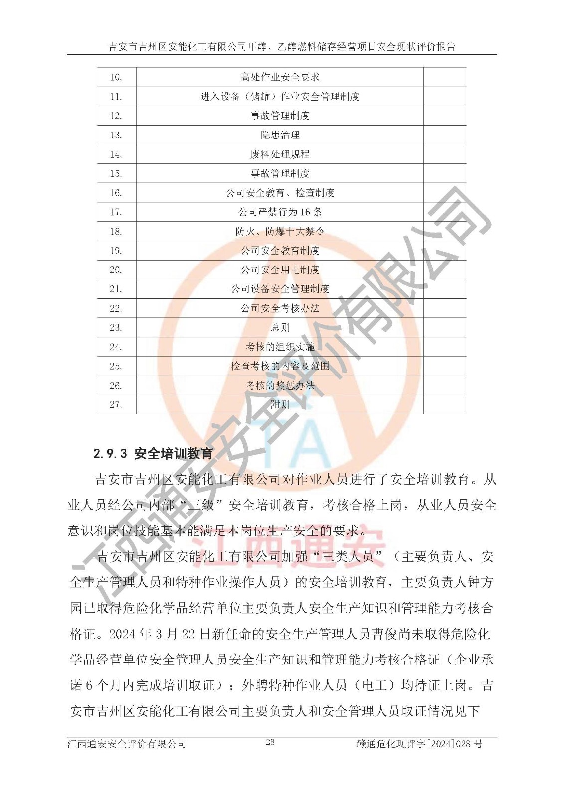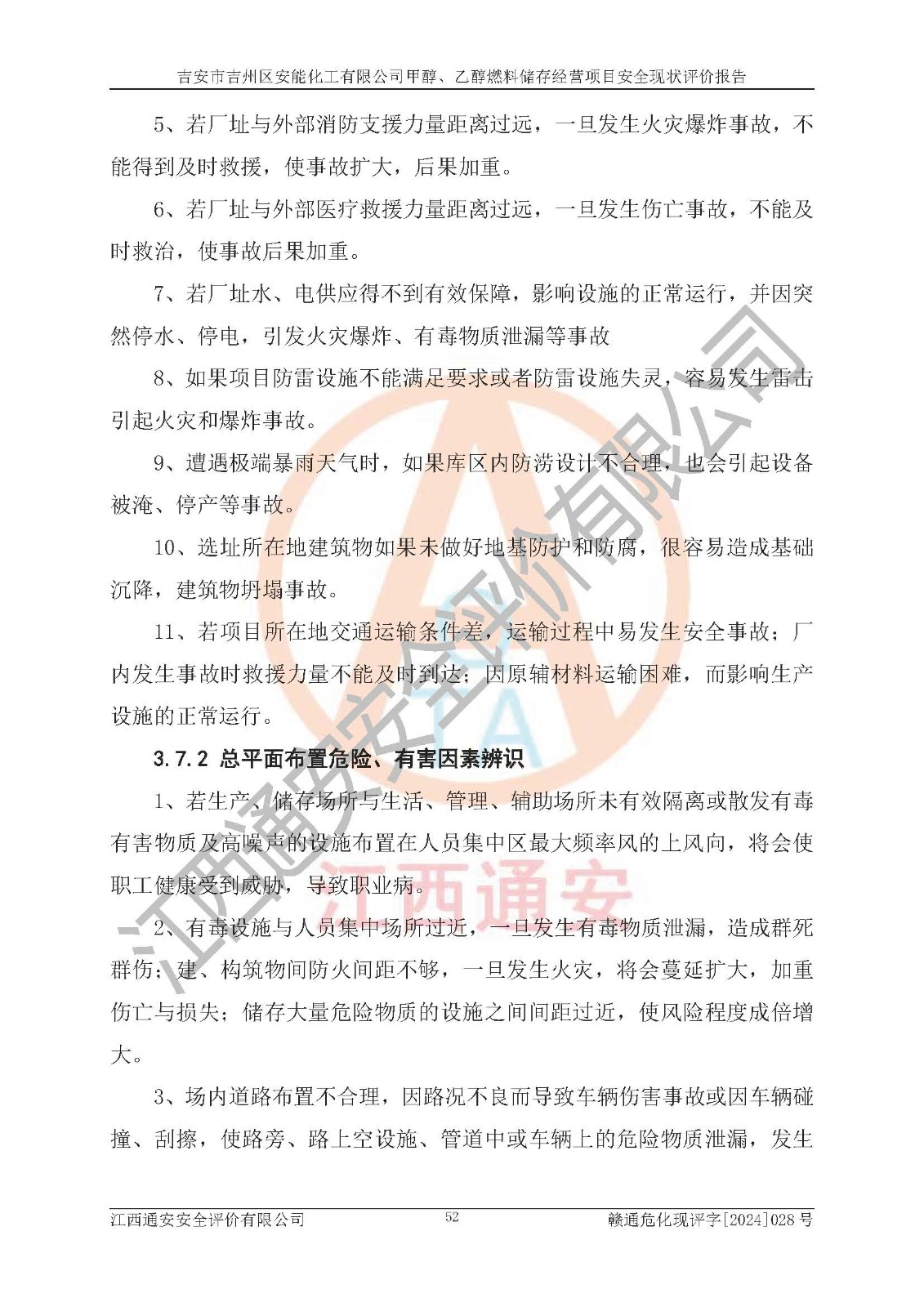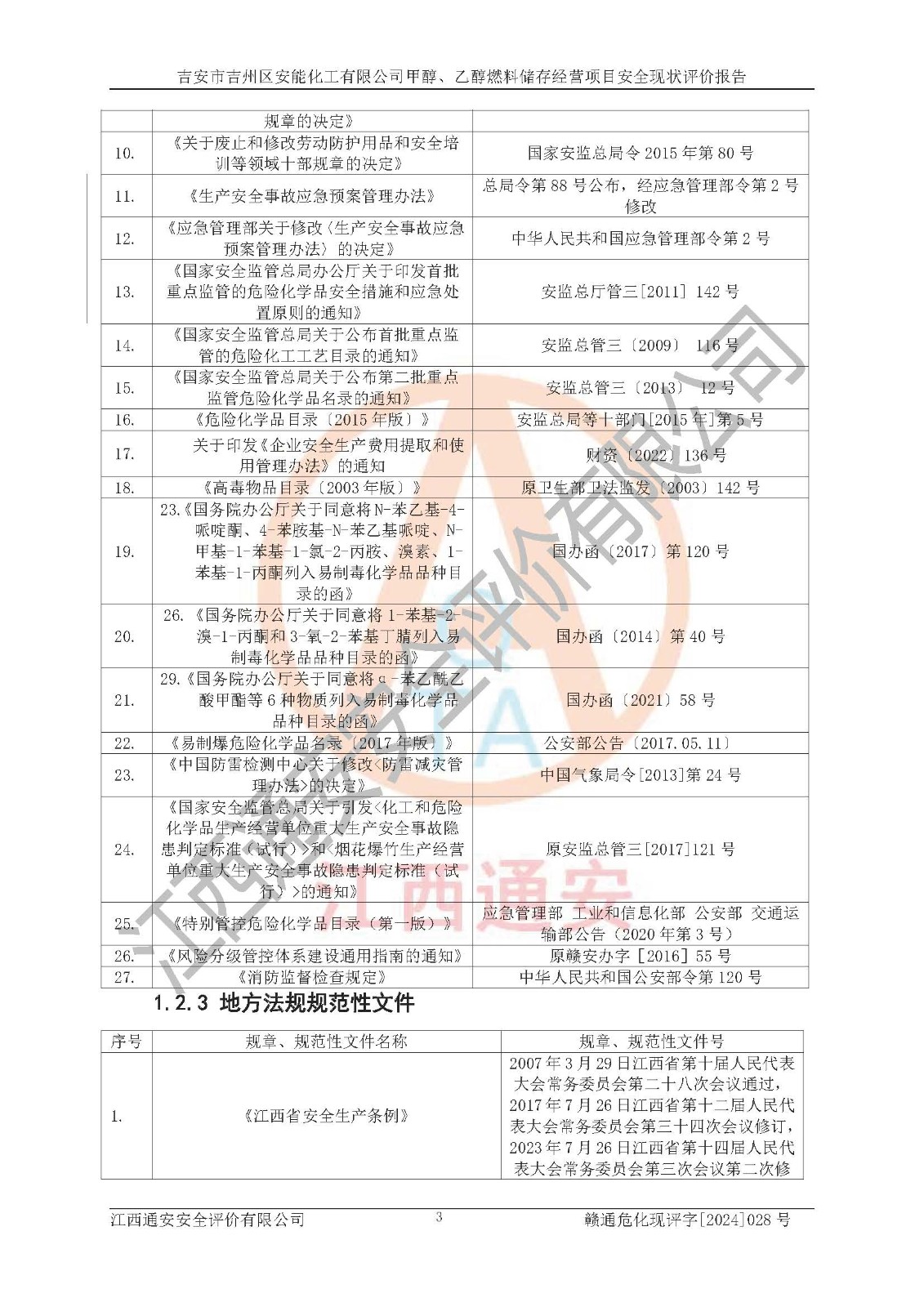 評價結論 | 吉安市吉州區(qū)安能化工有限公司甲醇、乙醇燃料儲存經營項目經營現狀滿足項目危險化學品儲存和經營的要求,安全管理**,安全風險可控,滿足危險化學品經營的安全條件。 | |||