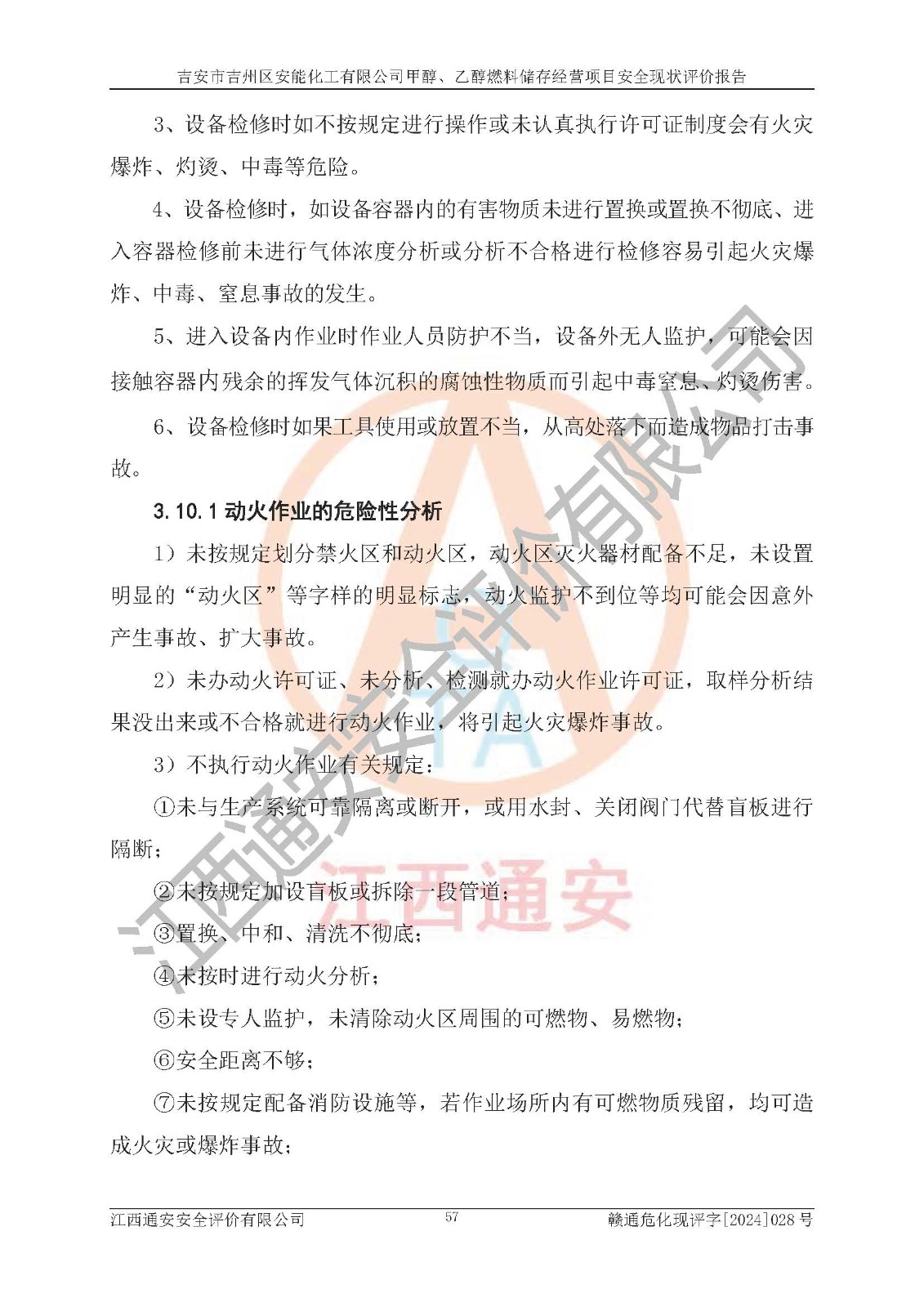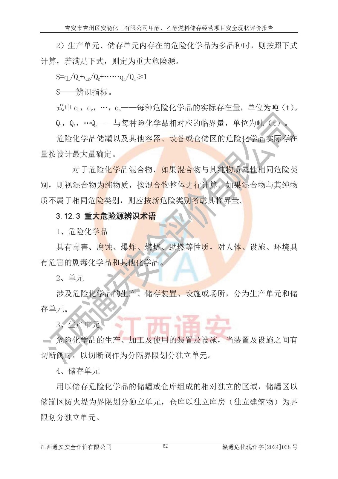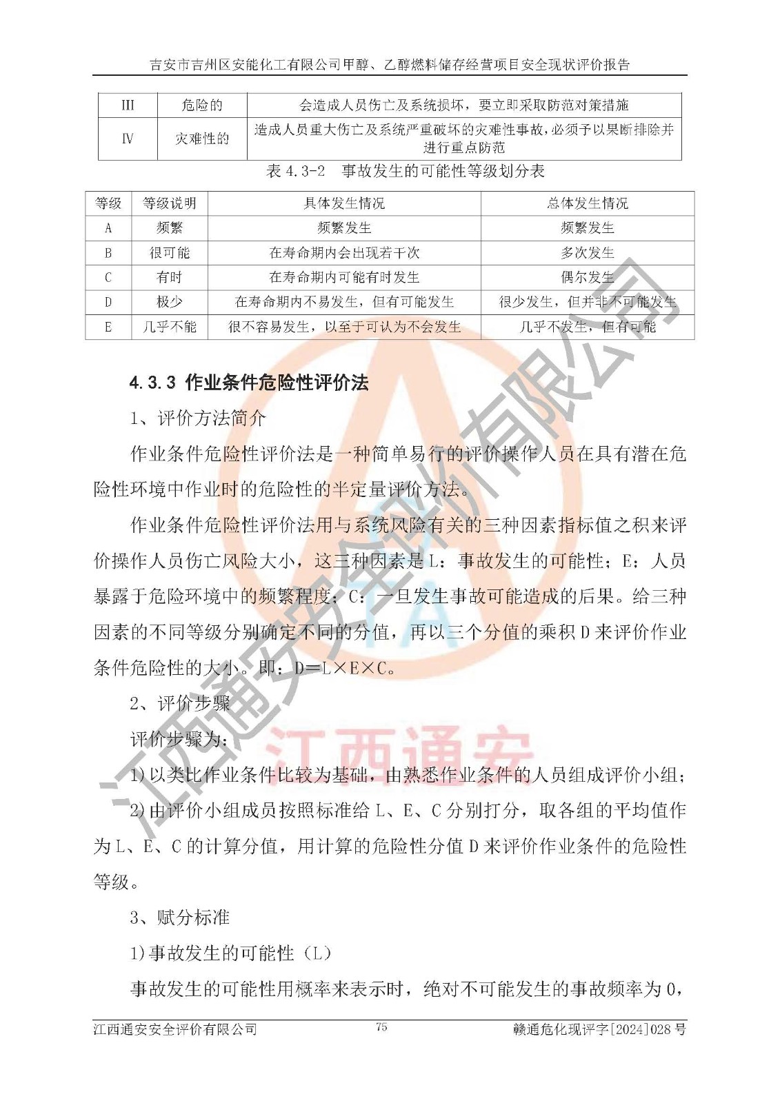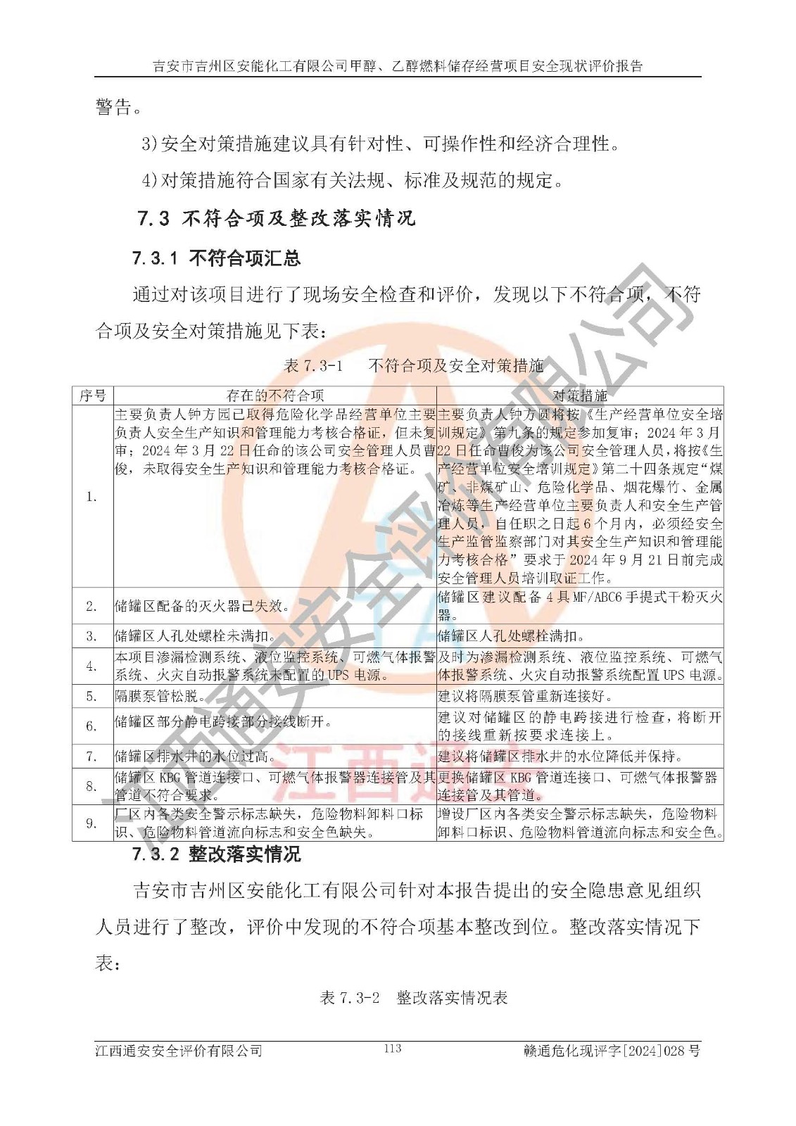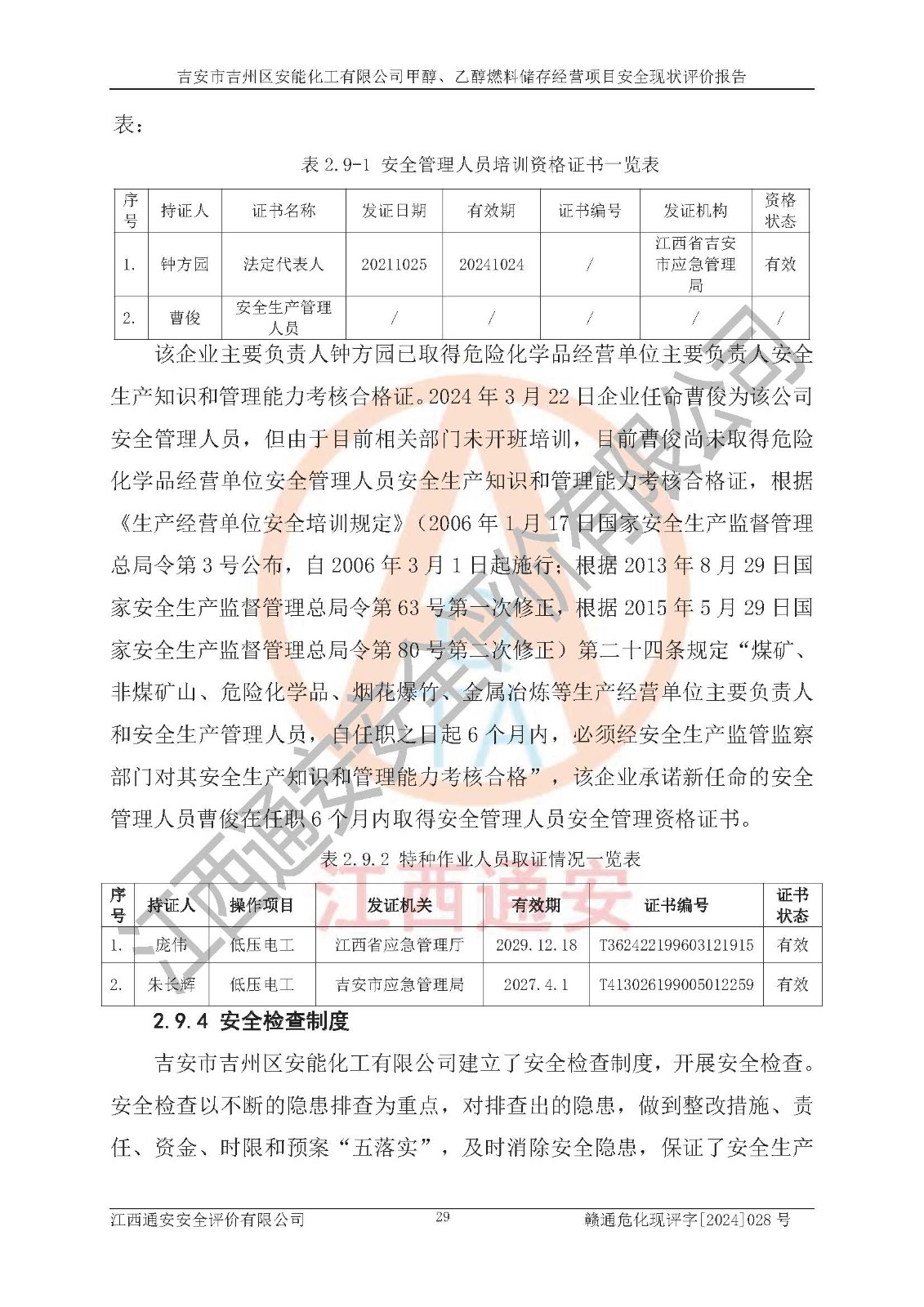 評價結論 | 吉安市吉州區(qū)安能化工有限公司甲醇、乙醇燃料儲存經營項目經營現狀滿足項目危險化學品儲存和經營的要求,安全管理**,安全風險可控,滿足危險化學品經營的安全條件。 | |||