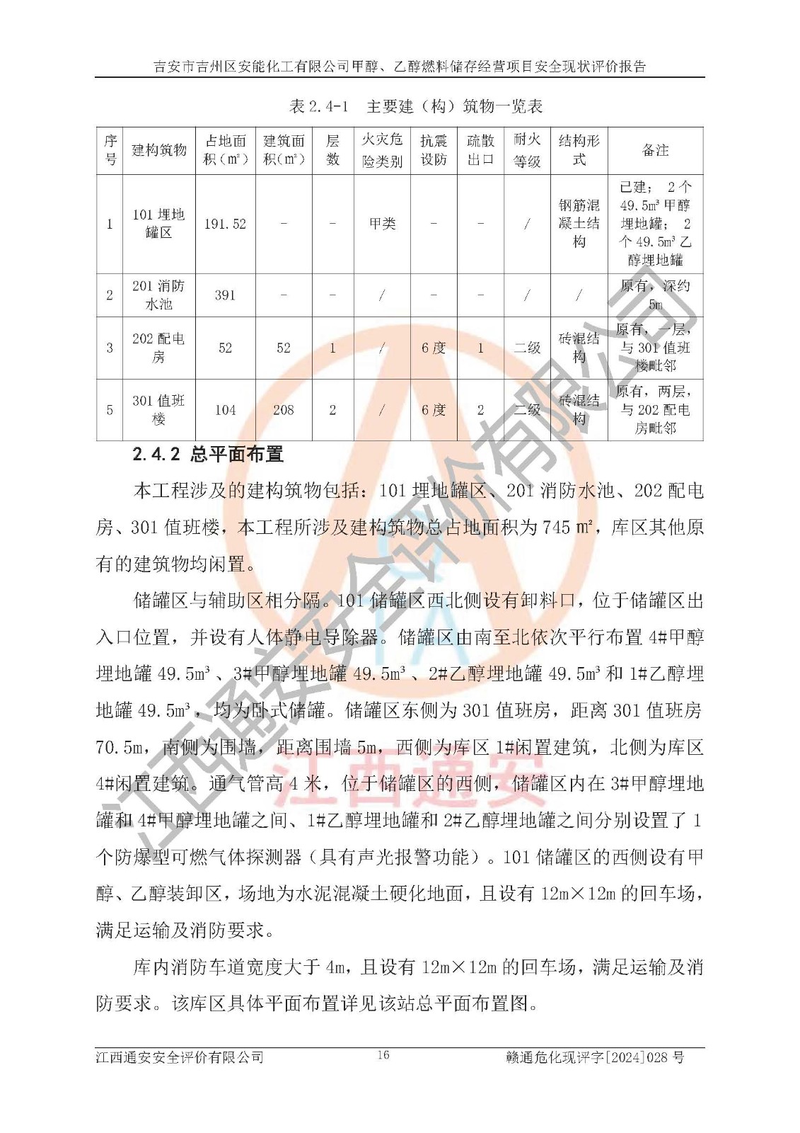 項目簡介 | 吉安市吉州區(qū)安能化工有限公司成立于2020年6月16日,注冊資本為200萬元,統(tǒng)一社會信用代碼為91360802MA398MQW1H,法定**人為鐘方園,營業(yè)執(zhí)照核準經營范圍:一般項目:化工產品生產(不含許可類化工產品)(除許可業(yè)務外,可自主依法經營法律法規(guī)非禁止或限制的項目)。 吉安市吉州區(qū)安能化工有限公司甲醇、乙醇燃料儲存經營項目,儲存規(guī)模為兩個49.5m3乙醇埋地罐,兩個49.5m3甲醇埋地罐,總容量為198m3。 項目建設地點位于吉安市吉州區(qū)長塘鎮(zhèn)荷潔村委會新陂洲村,該場地原為吉州區(qū)供銷煙花爆竹倉庫。由于**禁煙花爆竹,該倉庫已閑置多時,庫區(qū)內原有5棟閑置倉庫、一座消防水池、一棟兩層辦公樓,辦公樓毗鄰一間單層輔房。吉安市吉州區(qū)安能化工有限公司向吉安市吉州區(qū)供銷煙花爆竹批發(fā)中心租賃該場地(包括以上所有建構筑物)作為甲醇、乙醇燃料儲存經營建設項目用地,在滿足相關規(guī)范要求的前提下,充分利用原有建構筑物。該庫區(qū)產權屬于吉安市吉州區(qū)供銷煙花爆竹批發(fā)中心,在租賃期吉安市吉州區(qū)安能化工有限公司對該5棟閑置倉庫、一座消防水池、一棟兩層辦公樓,辦公樓及輔房有**管理權。 由于本項目在原有供銷煙花爆竹倉庫建設,不增加用地,本項目已經過備案,詳見附件投資項目基本信息表。 吉安市吉州區(qū)安能化工有限公司于2021年4月29日取得由吉安市吉州區(qū)行政審批局頒發(fā)的危險化學品經營許可證;許可范圍:甲醇2000立方/年、乙醇2000立方/年;許可證**期至2024年4月28日。 項目生產過程中涉及的危險化學品有:甲醇、乙醇等。 項目各單元均不構成危險化學品重大危險源。 | |||