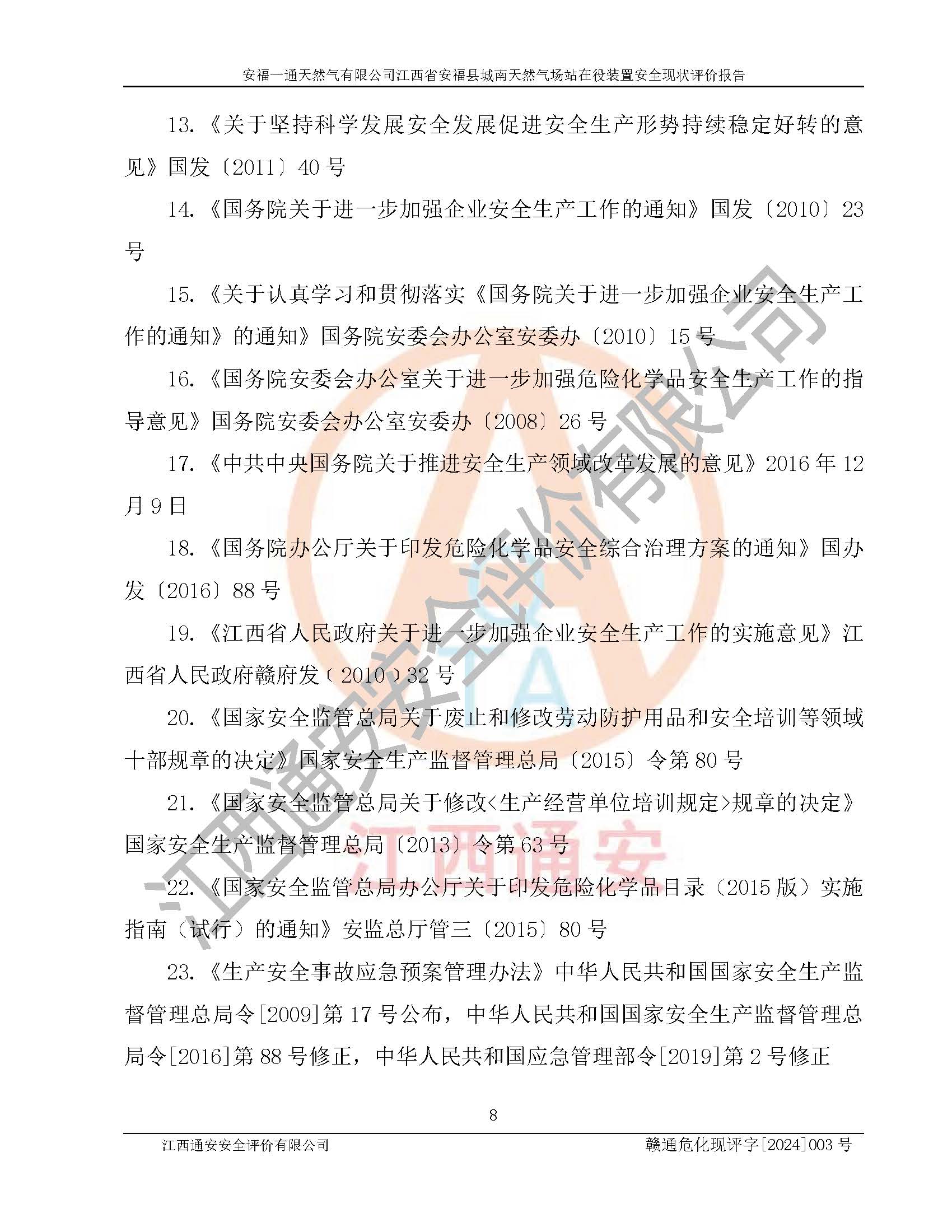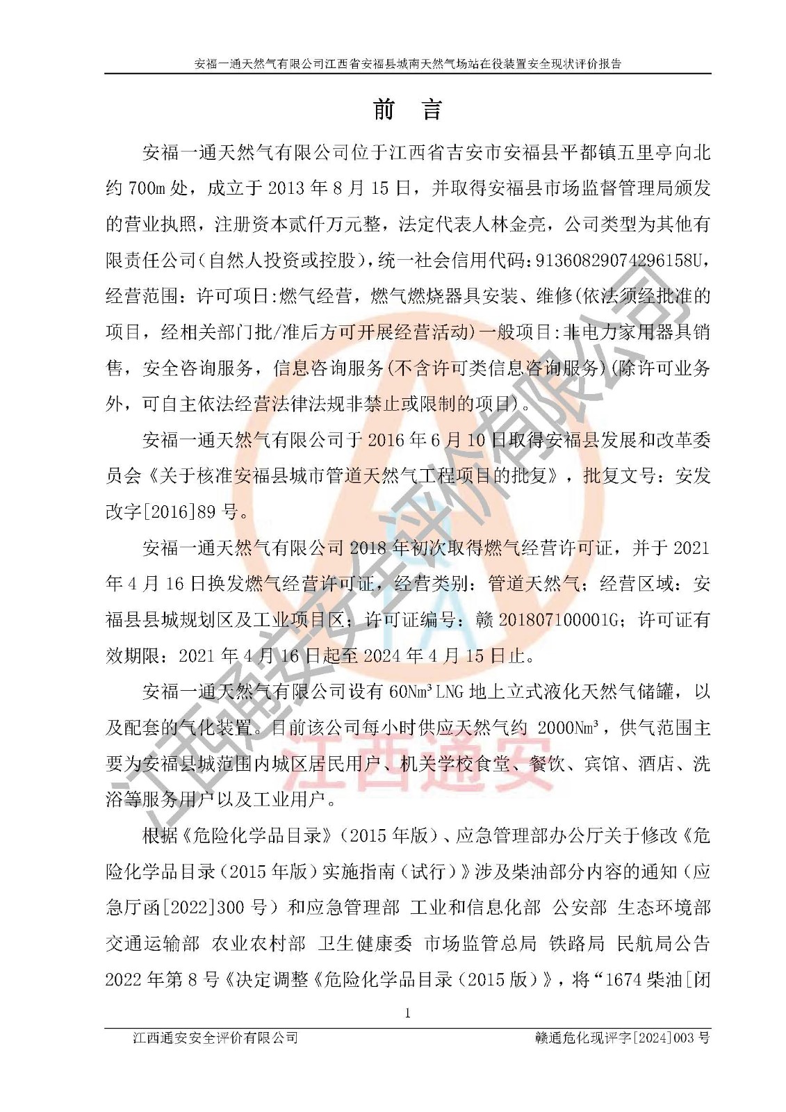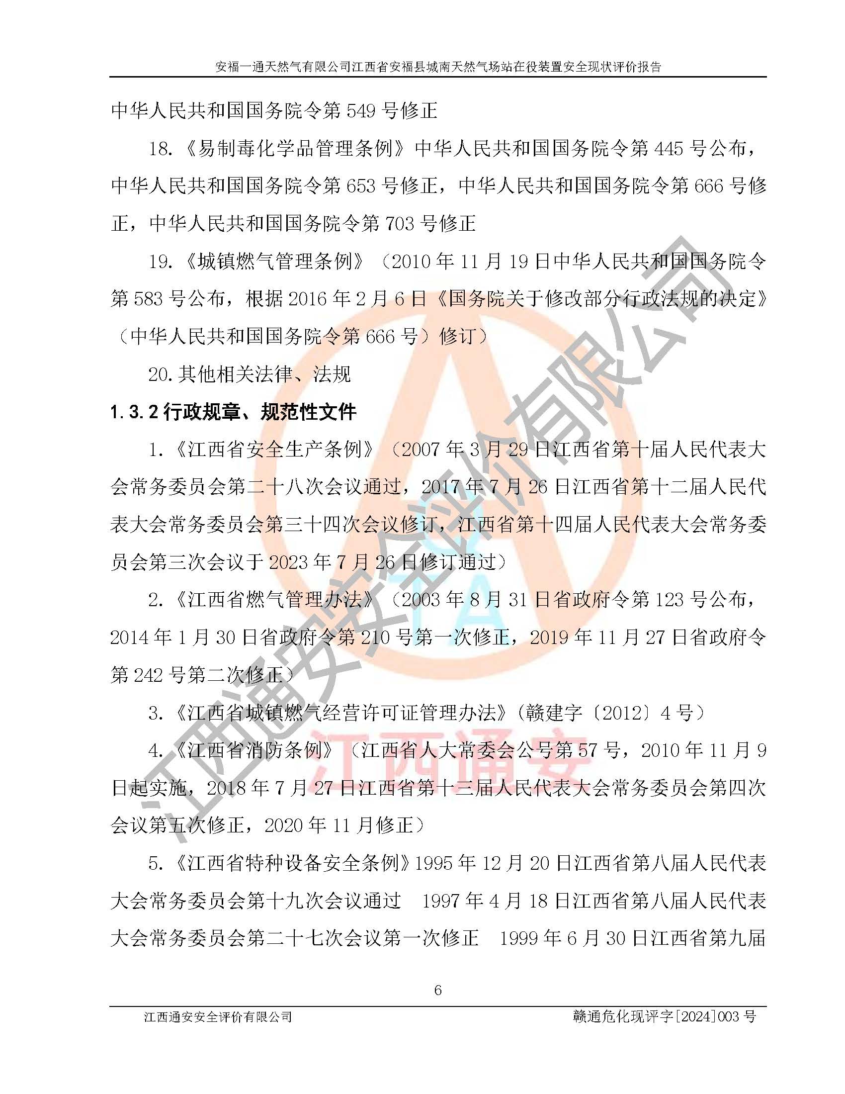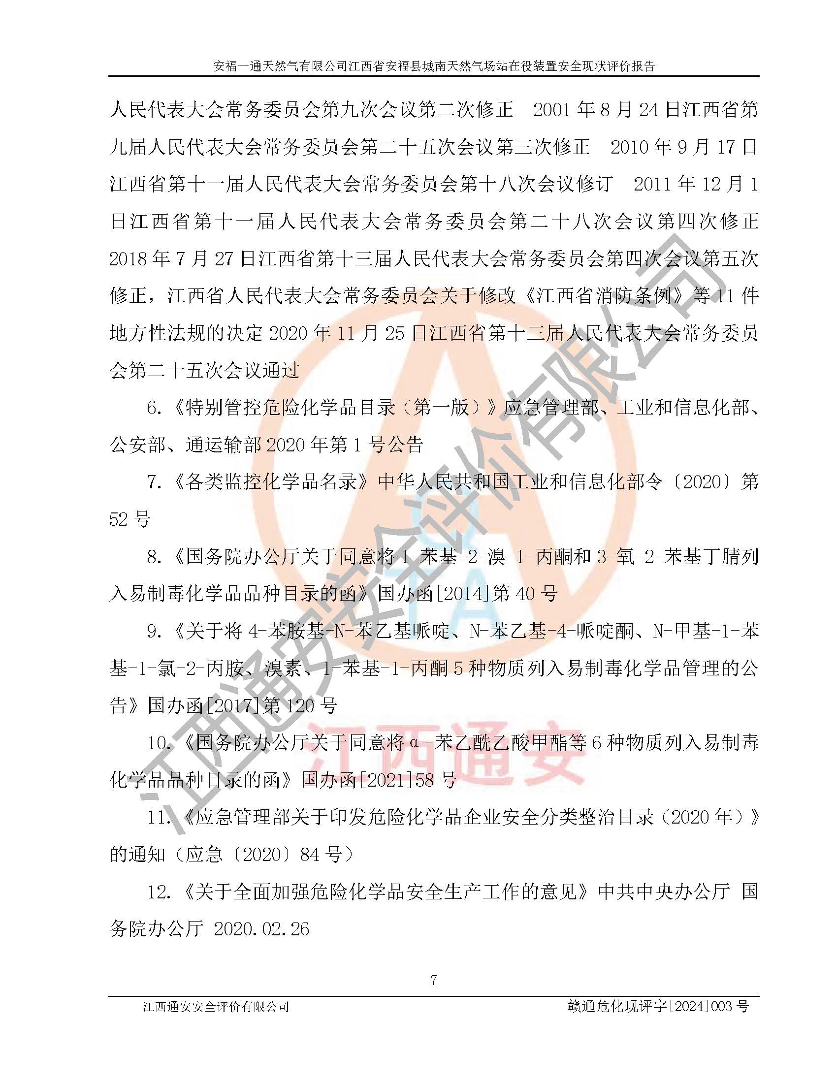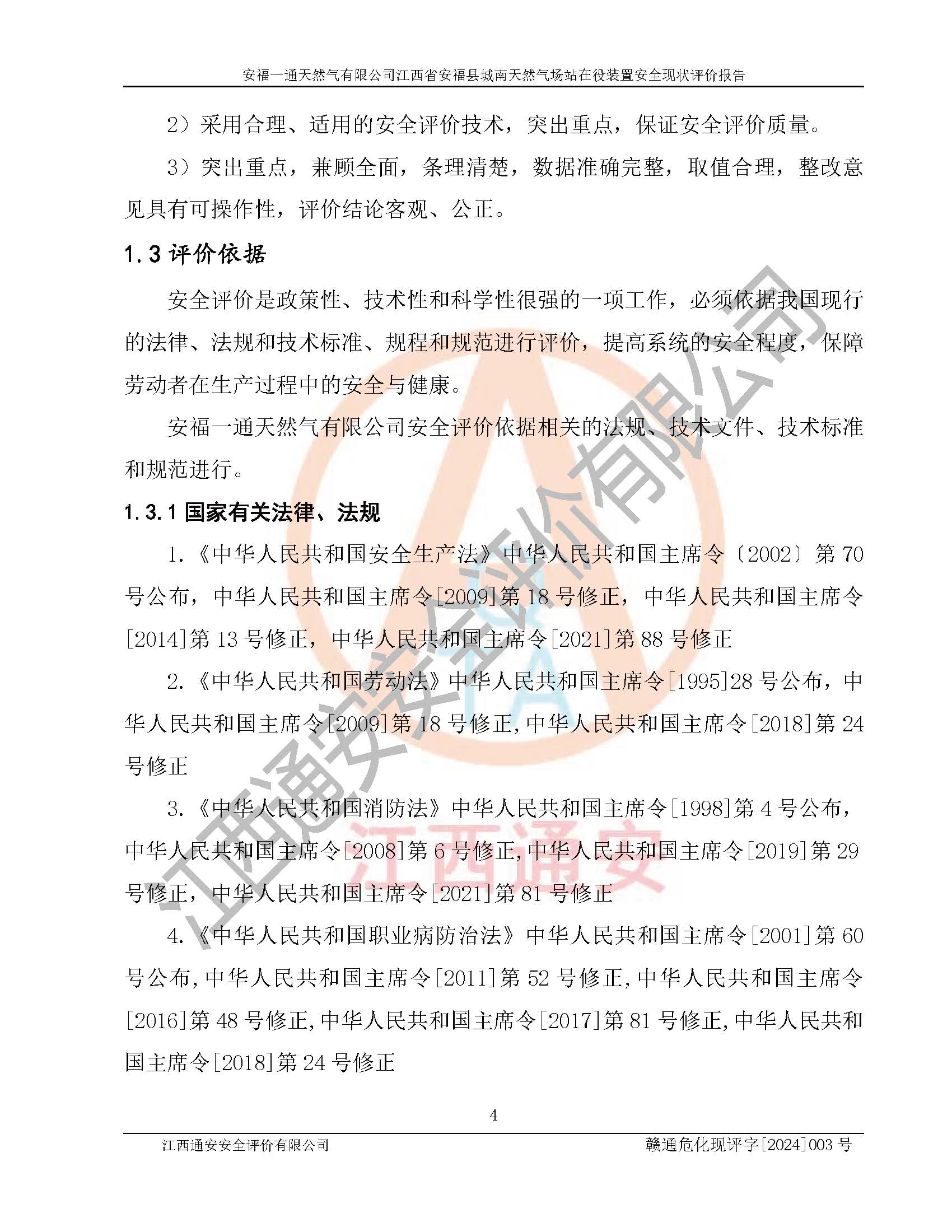 評價報告名稱 | 安福一通天然氣有限公司江西省安??h城南天然氣場站在役裝置安全現(xiàn)狀評價報告 | |||