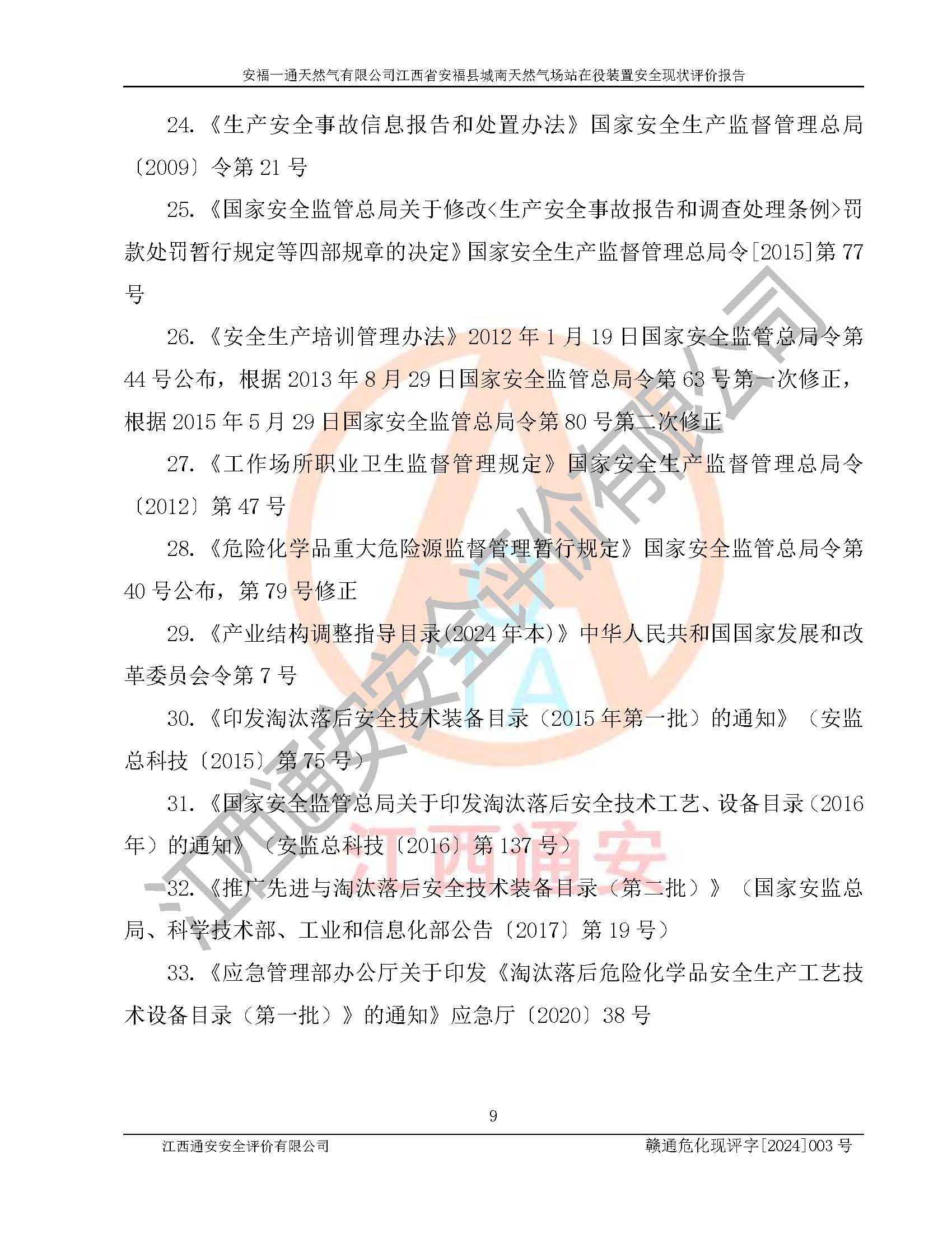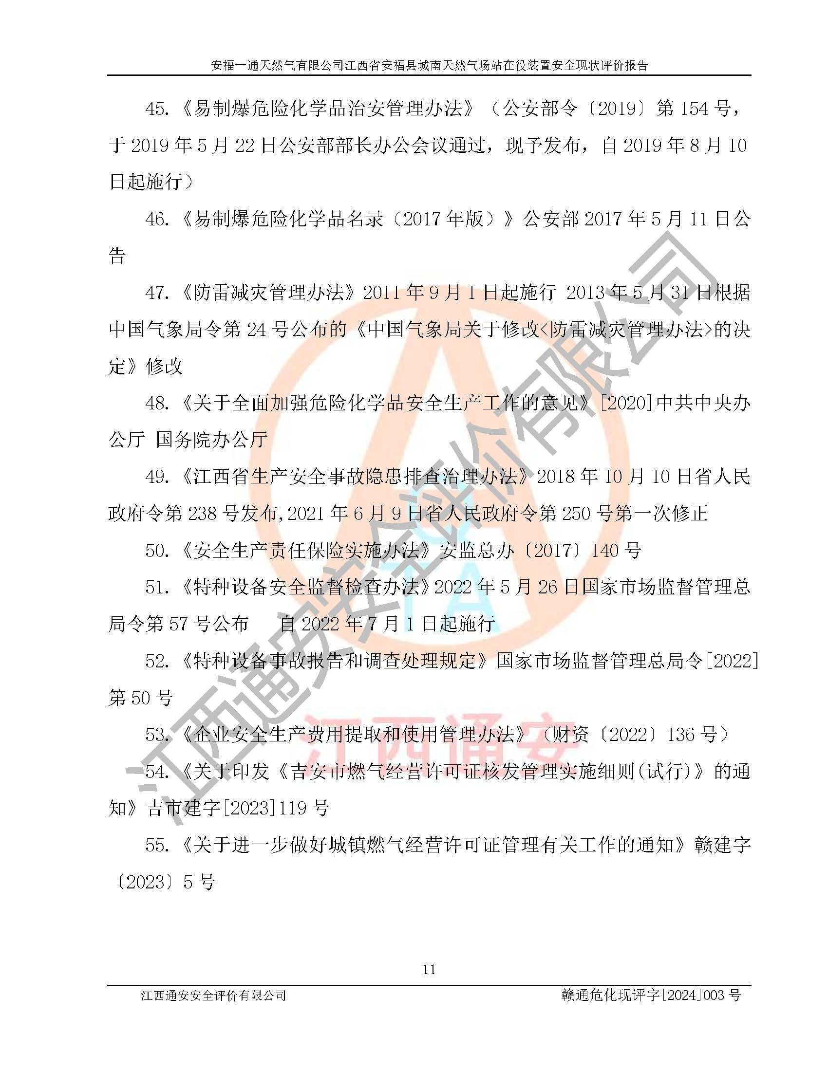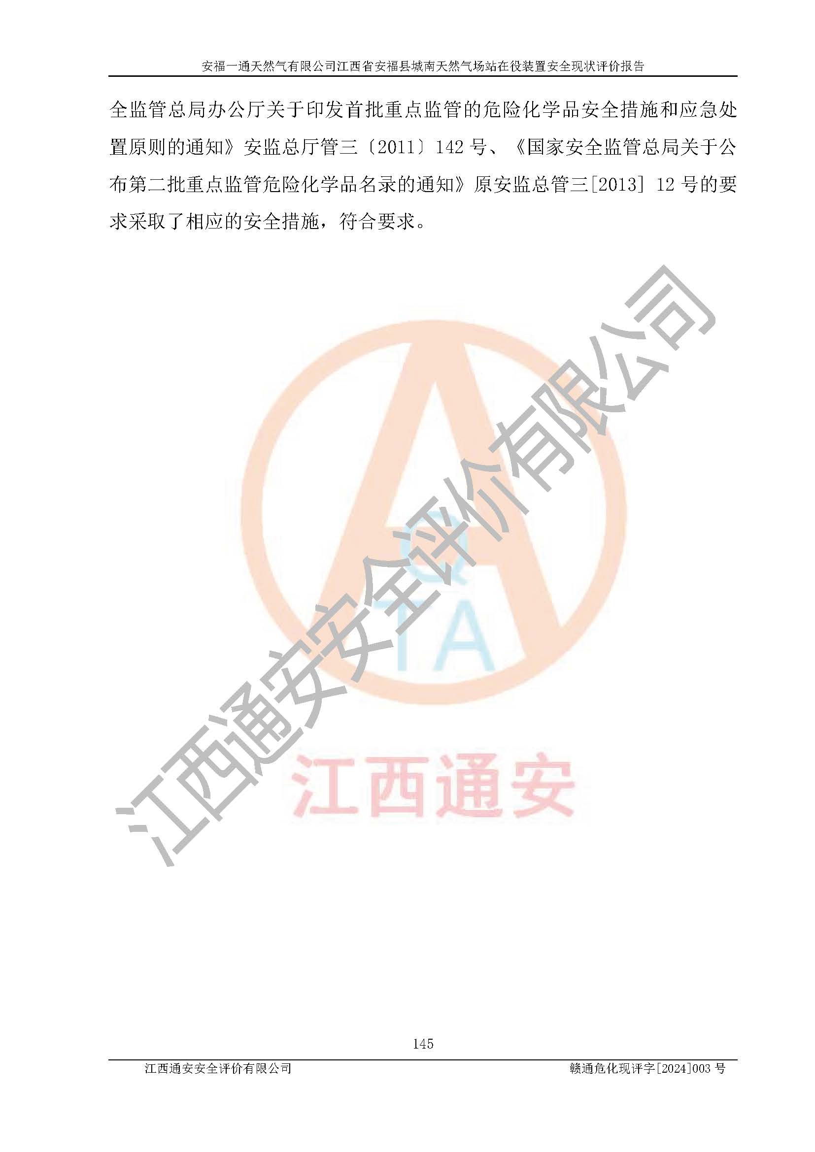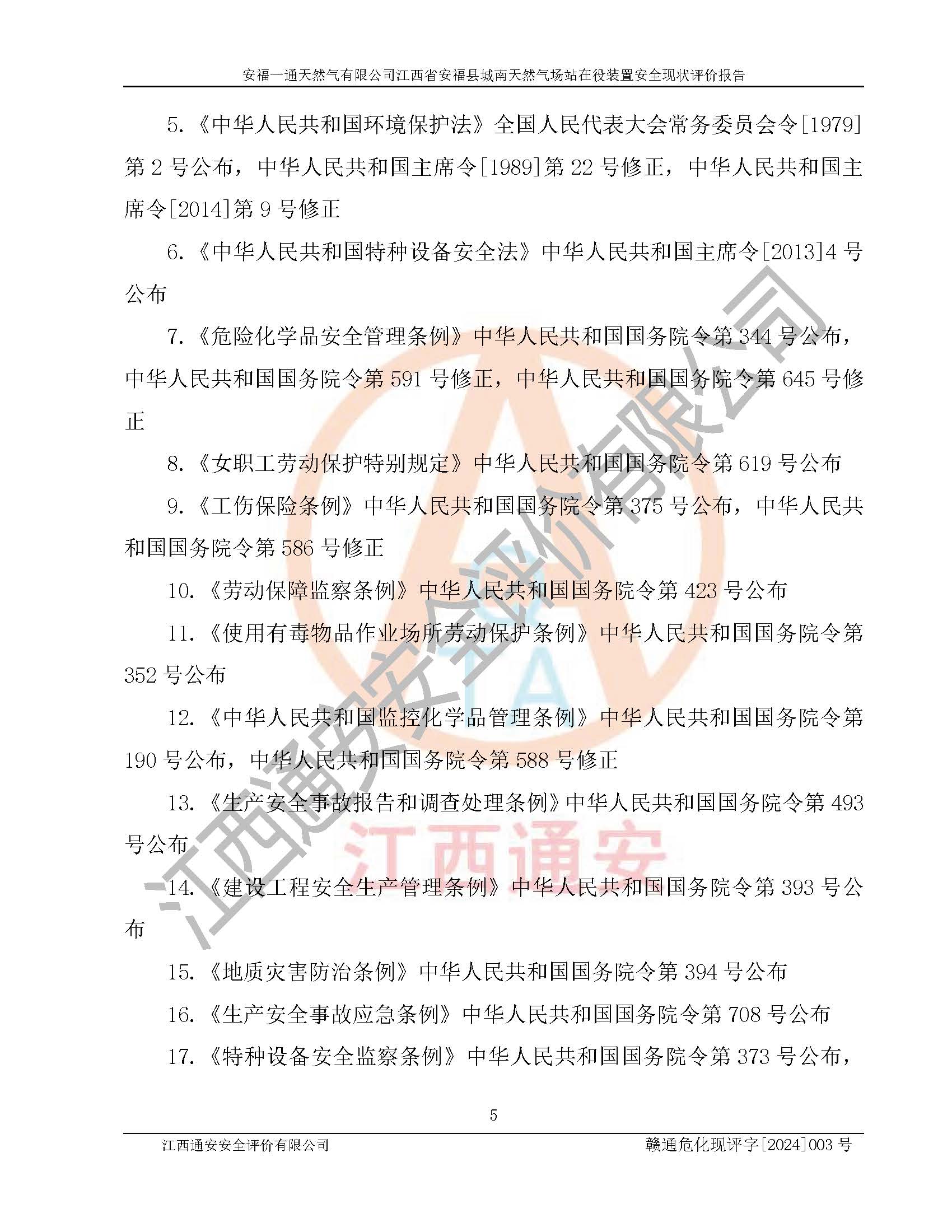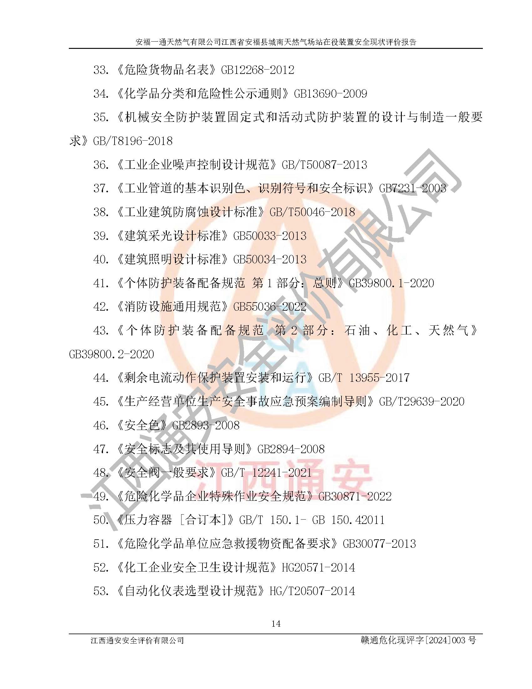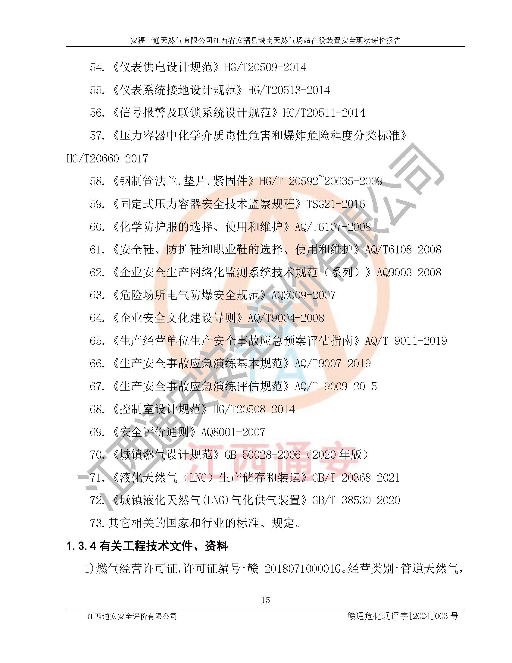 評價報告名稱 | 安福一通天然氣有限公司江西省安??h城南天然氣場站在役裝置安全現(xiàn)狀評價報告 | |||