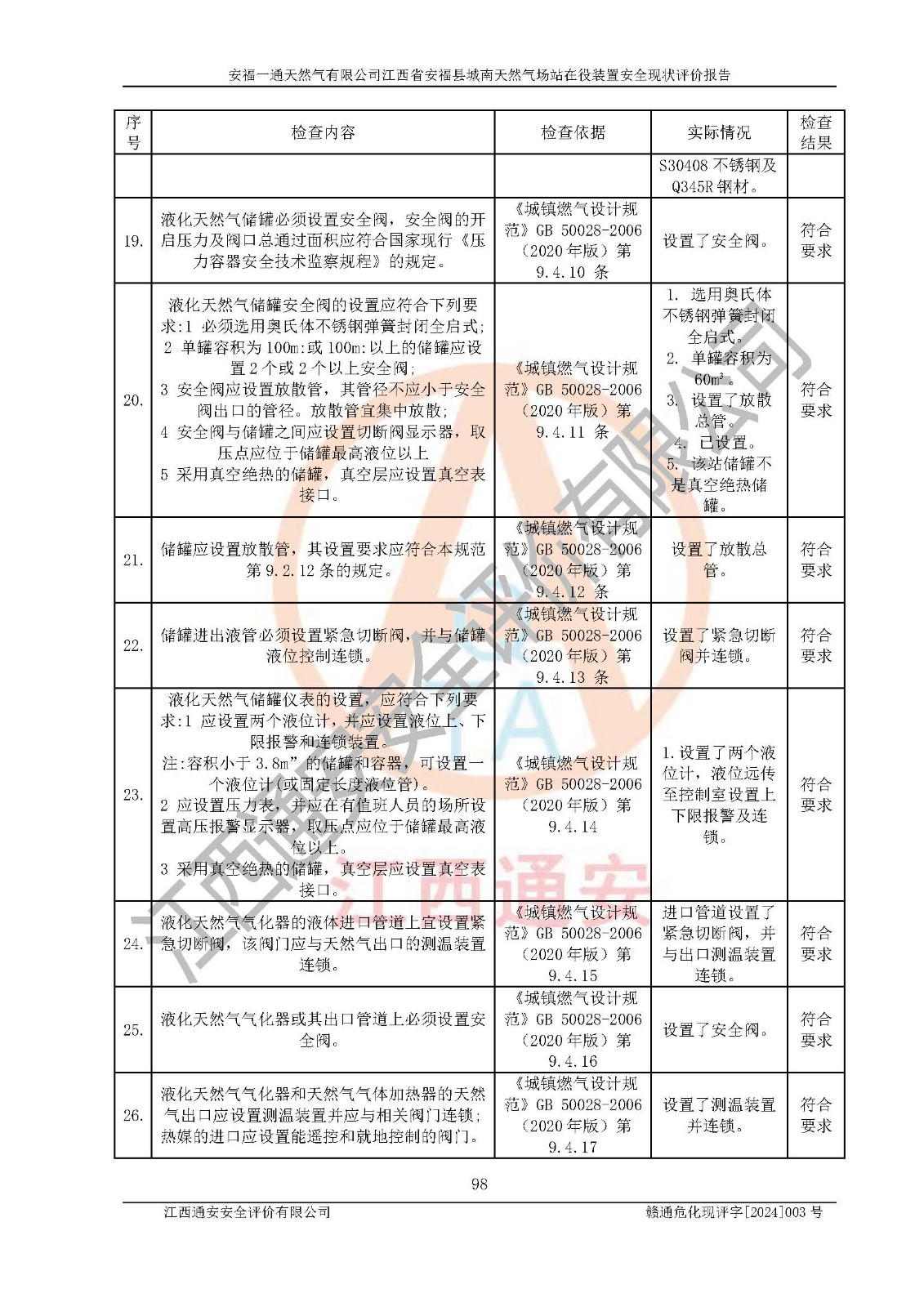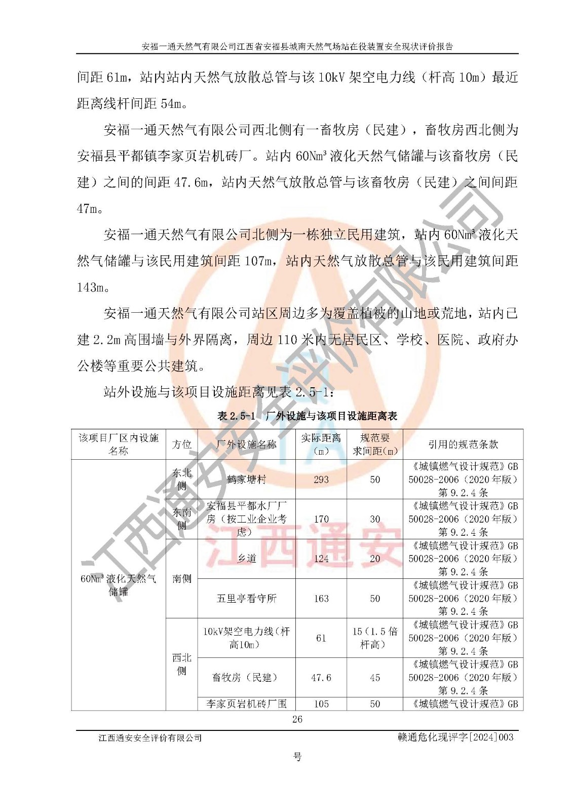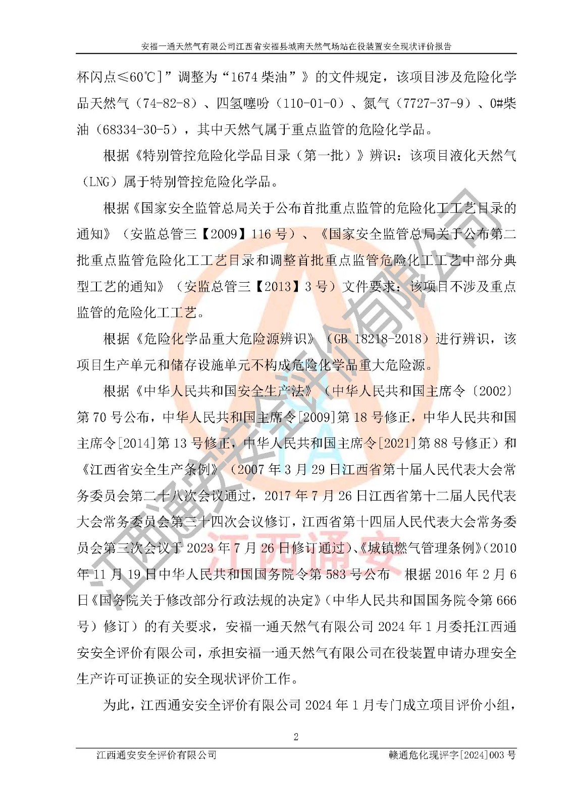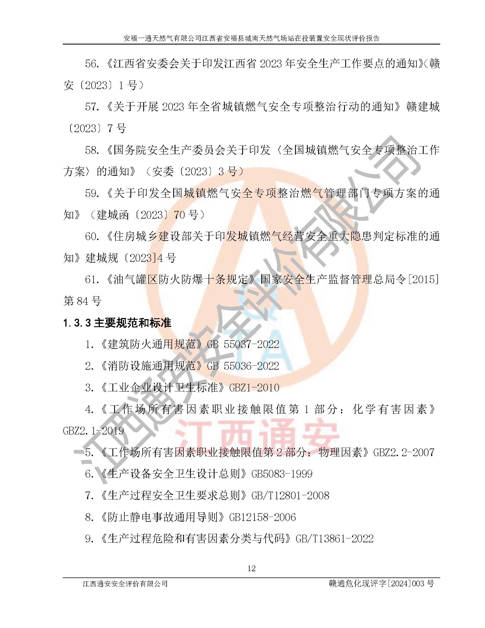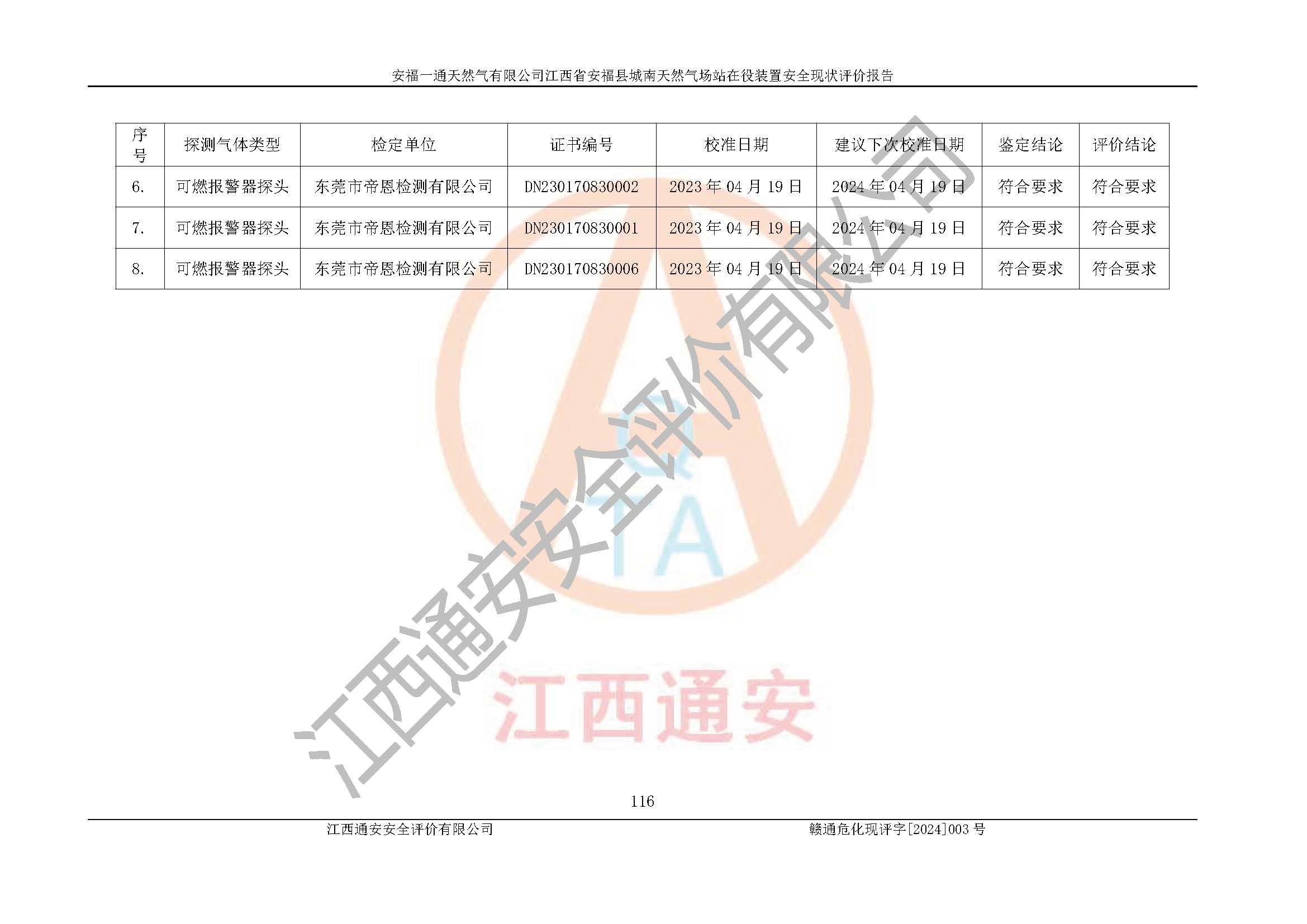 評價報告名稱 | 安福一通天然氣有限公司江西省安??h城南天然氣場站在役裝置安全現(xiàn)狀評價報告 | |||