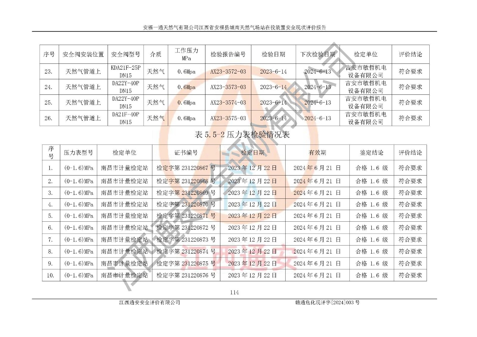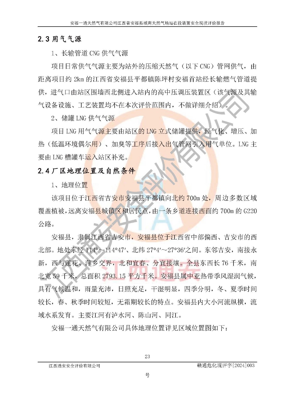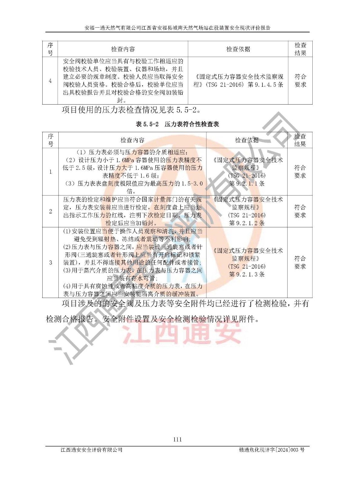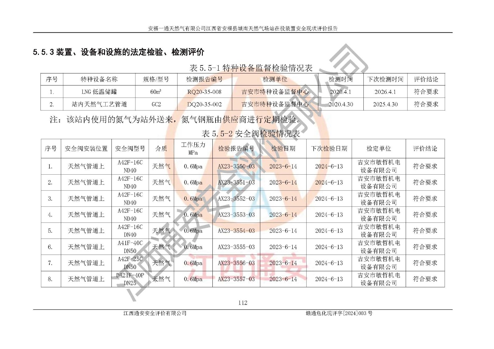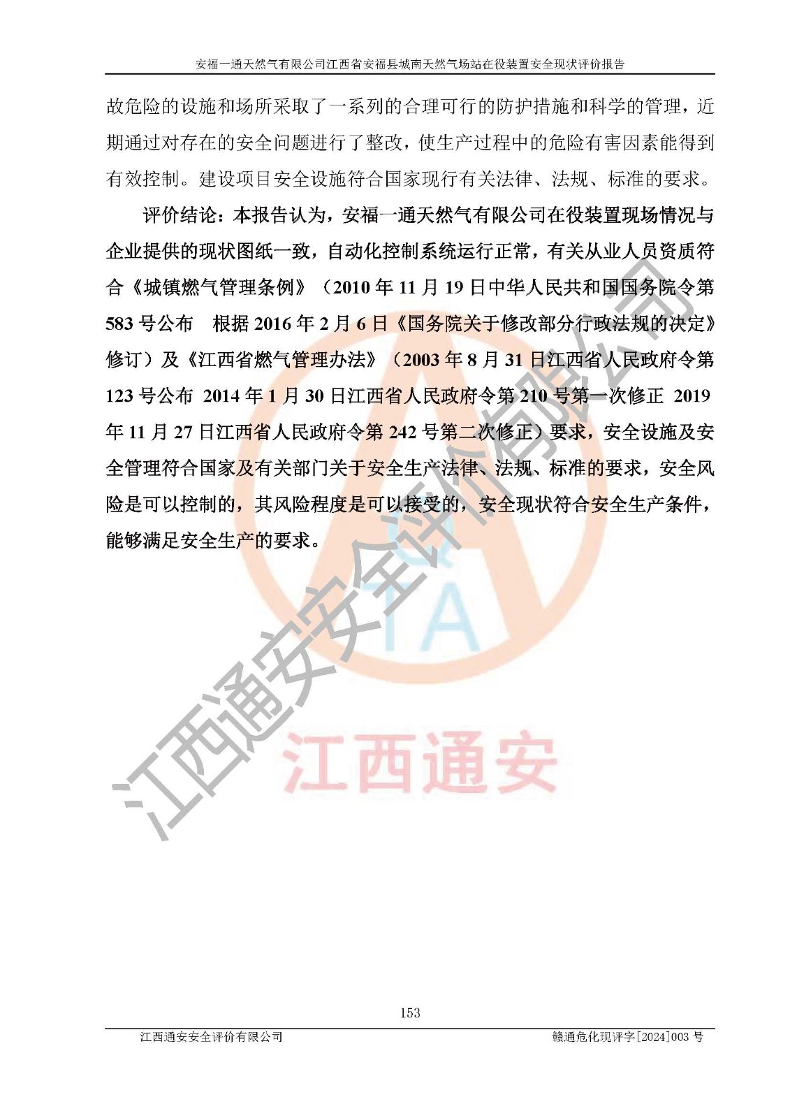 評價報告名稱 | 安福一通天然氣有限公司江西省安??h城南天然氣場站在役裝置安全現(xiàn)狀評價報告 | |||