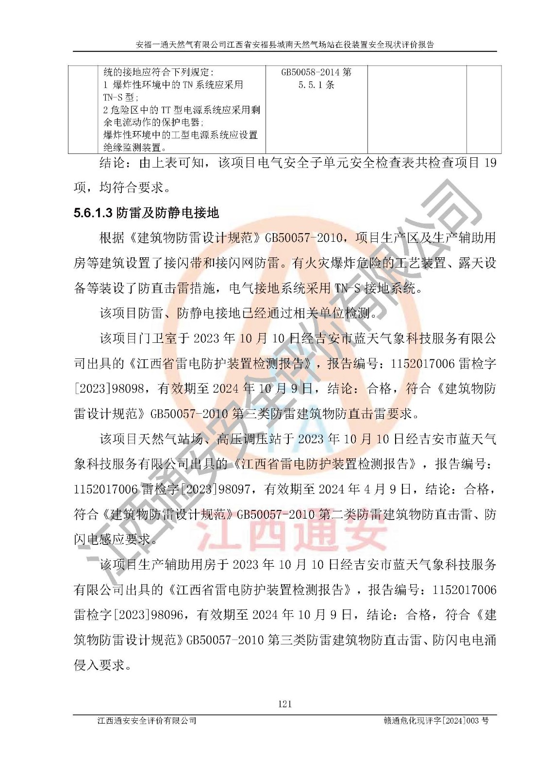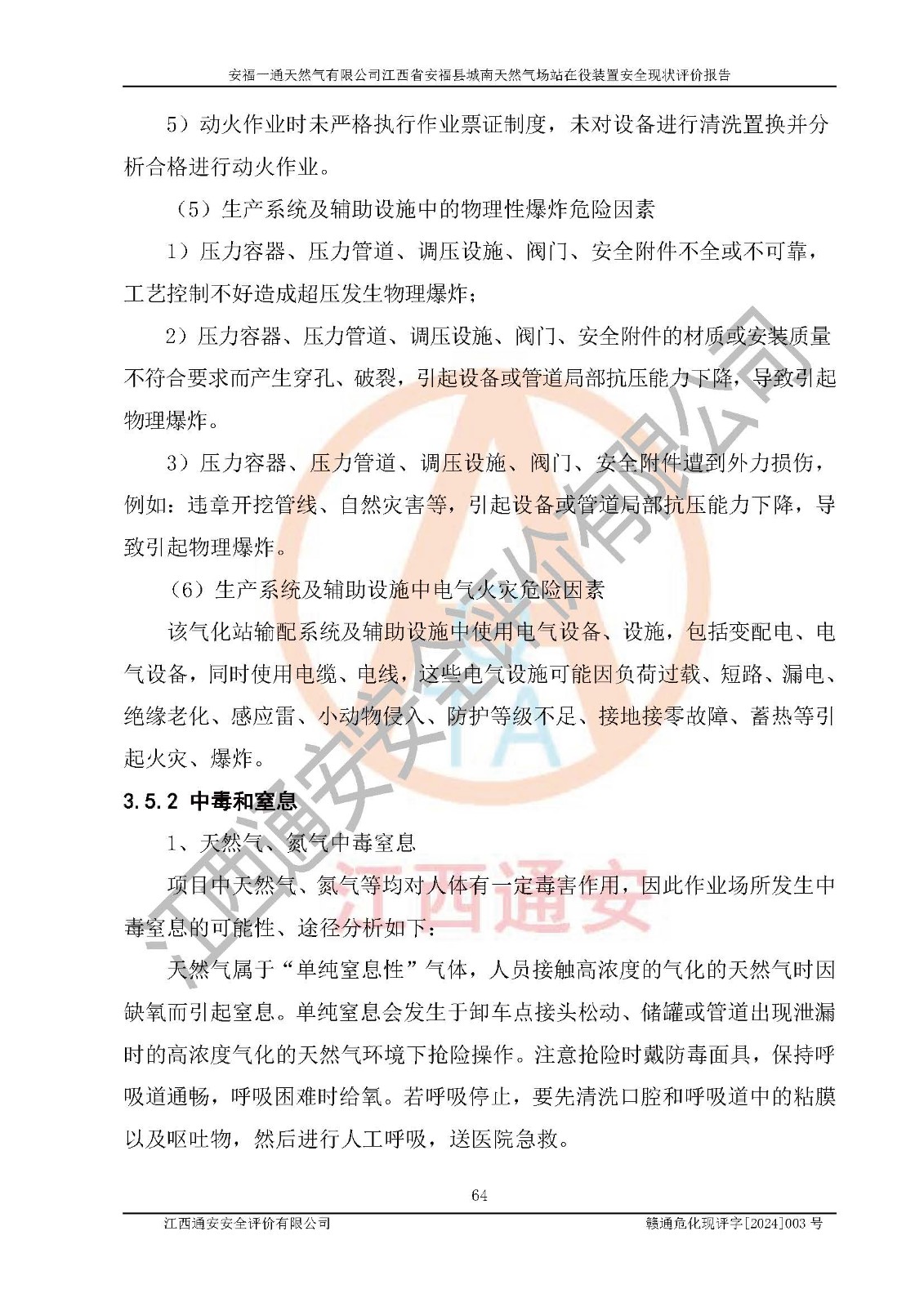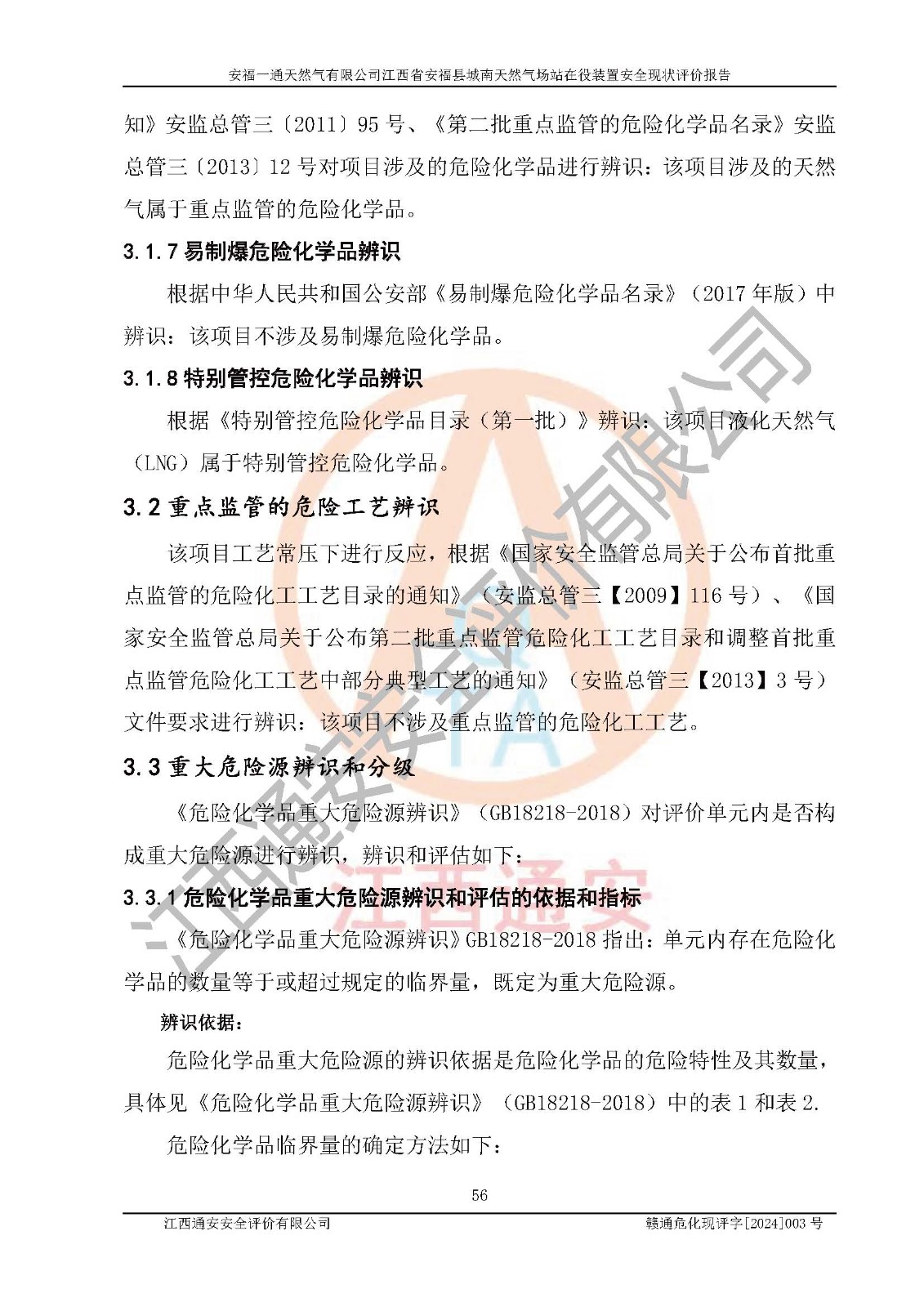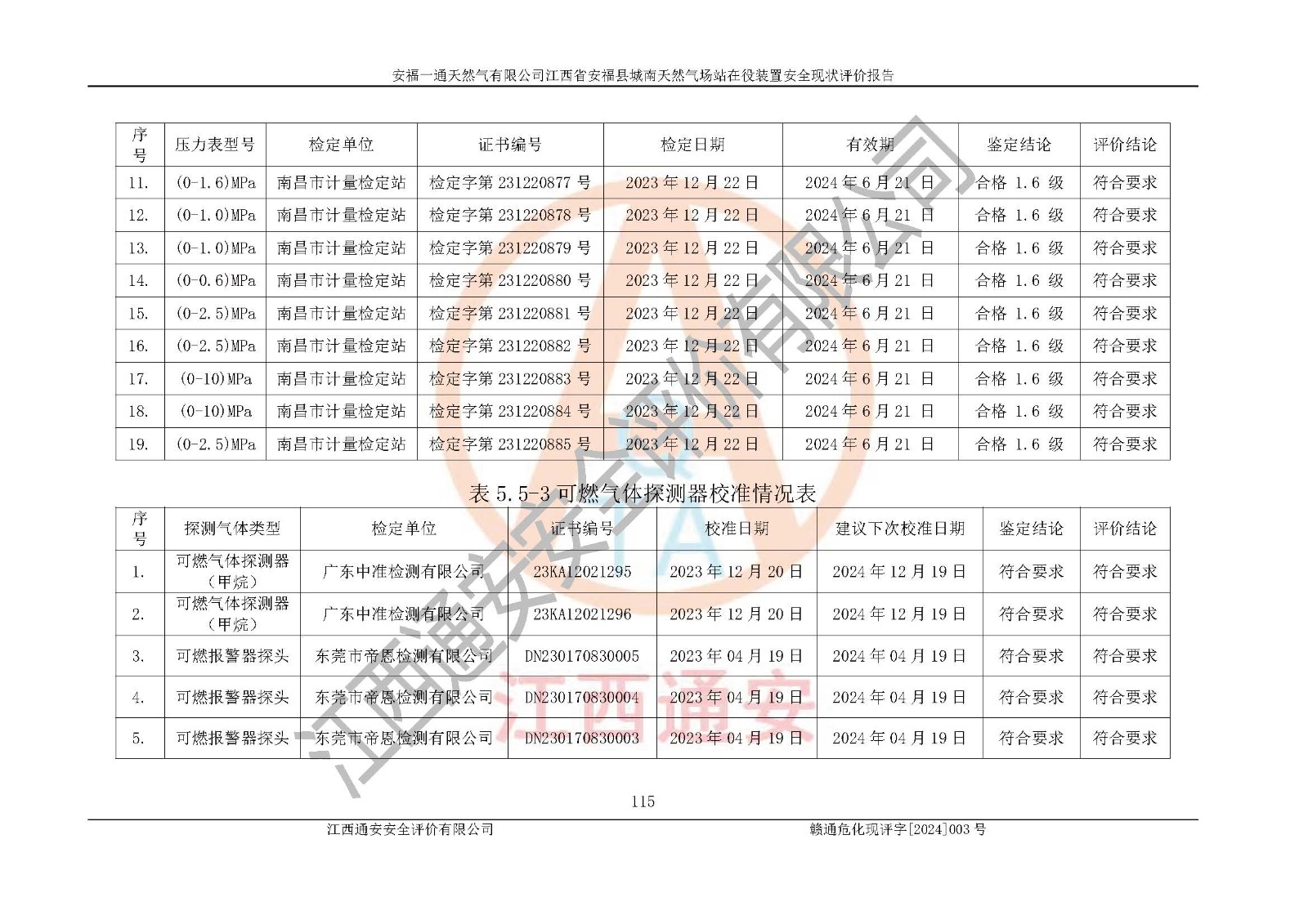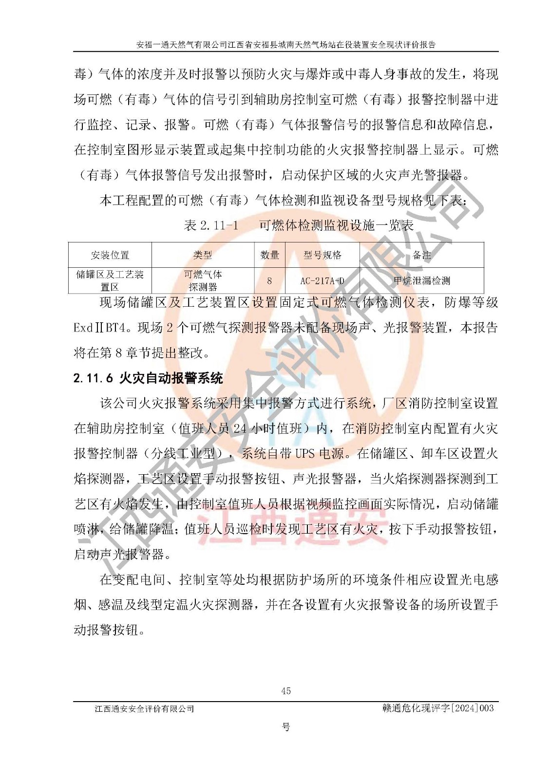 評價報告名稱 | 安福一通天然氣有限公司江西省安??h城南天然氣場站在役裝置安全現(xiàn)狀評價報告 | |||