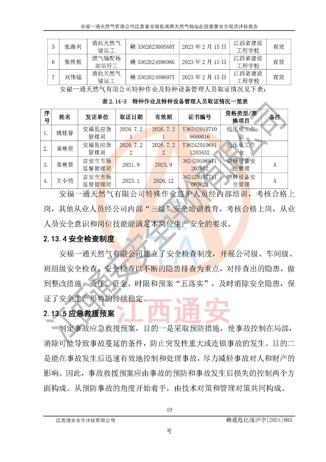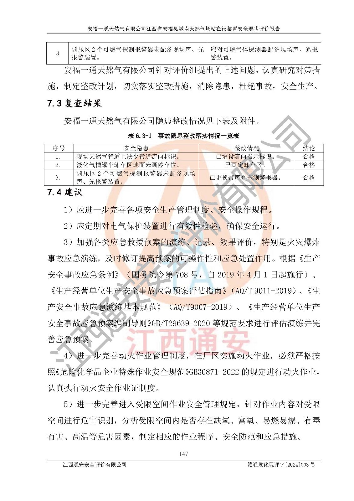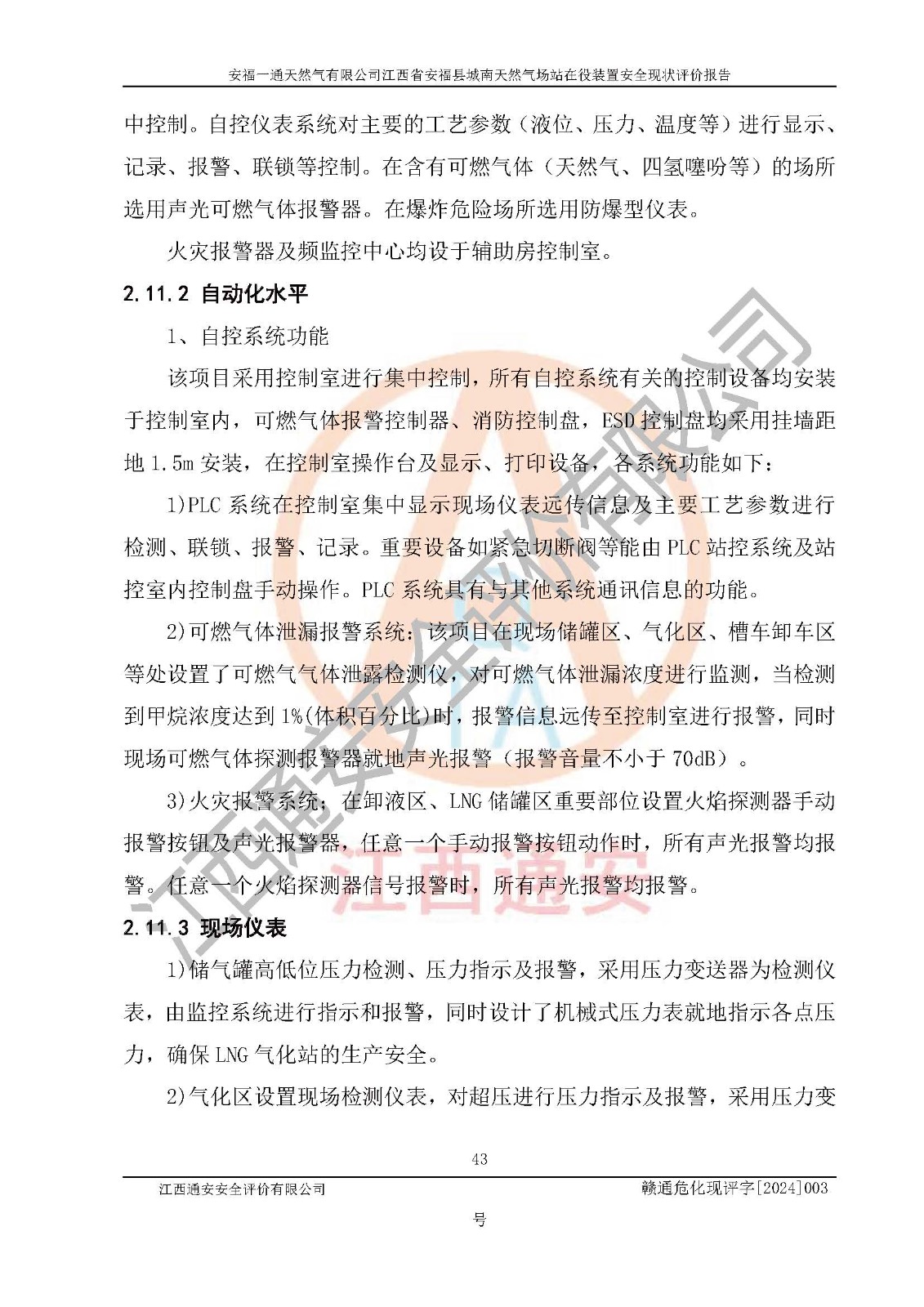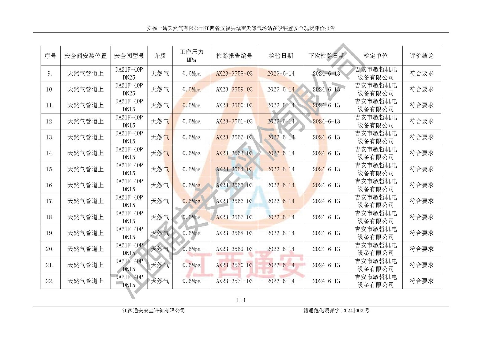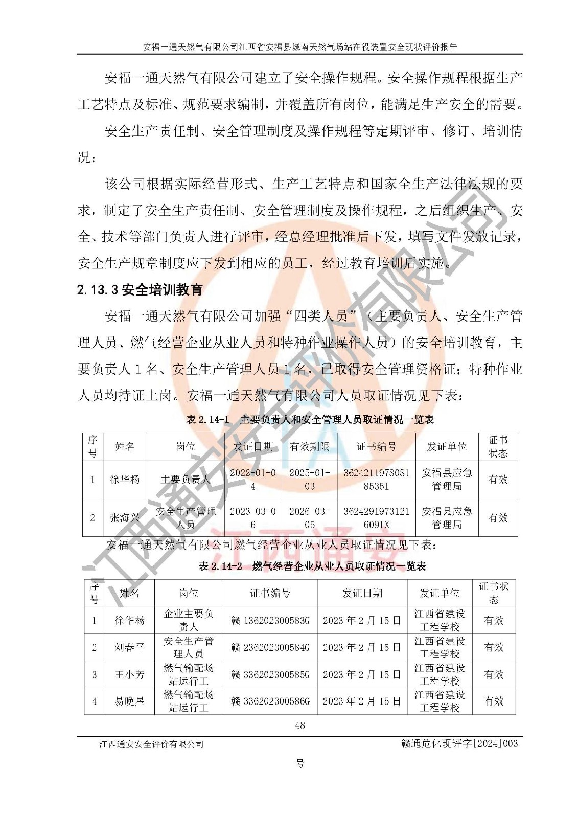 評價報告名稱 | 安福一通天然氣有限公司江西省安??h城南天然氣場站在役裝置安全現(xiàn)狀評價報告 | |||
