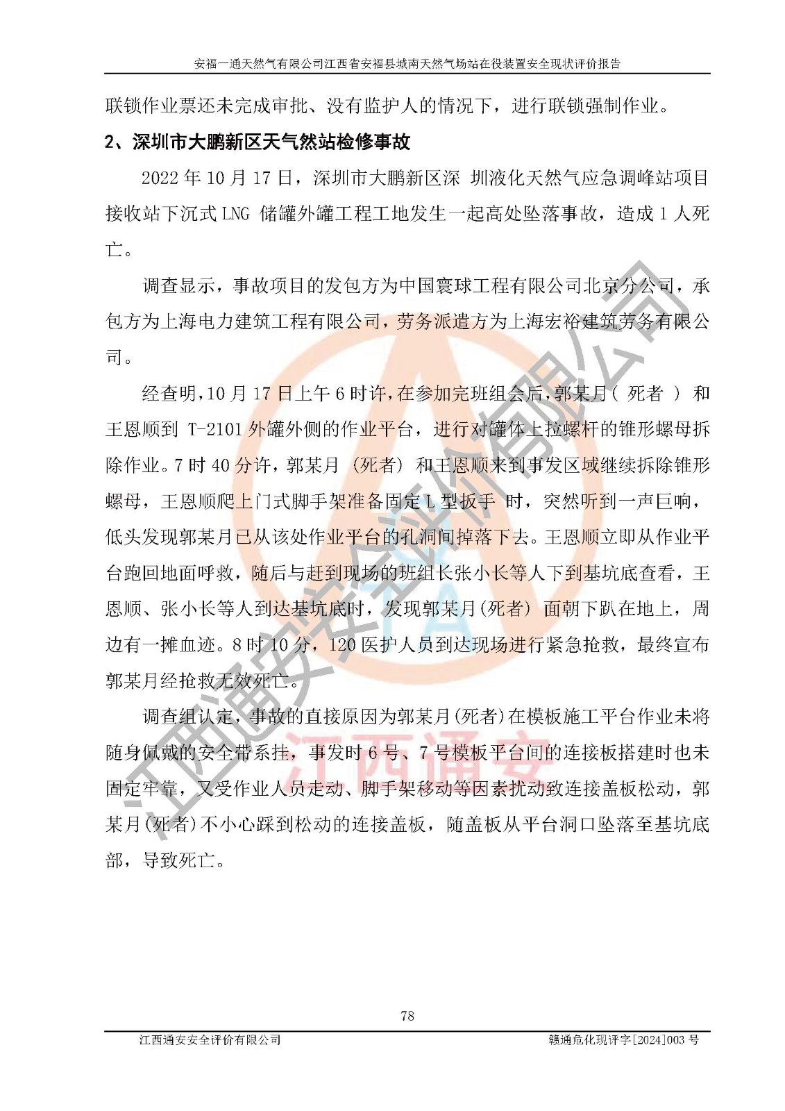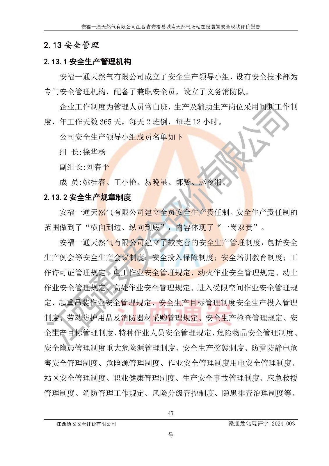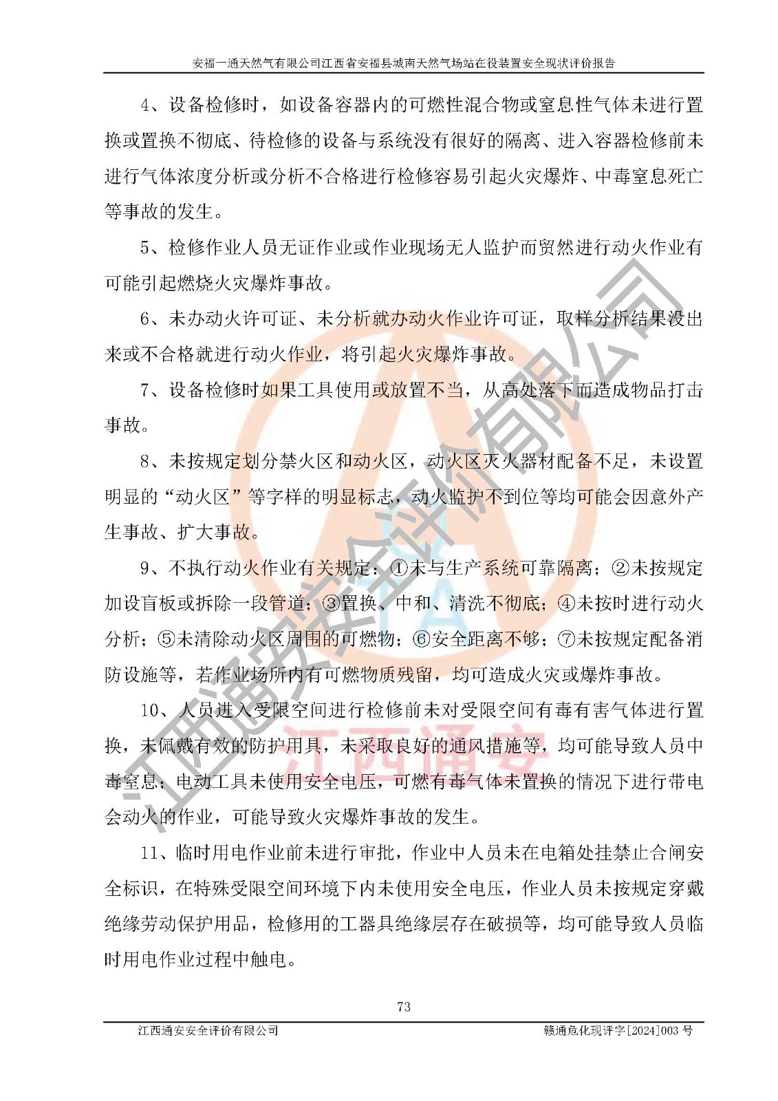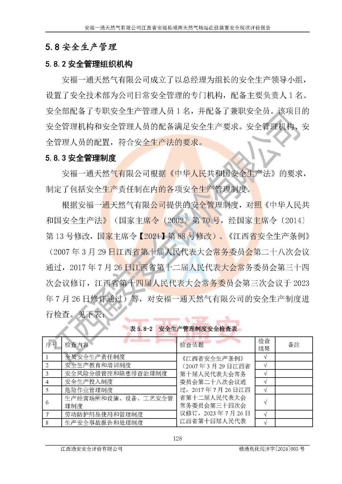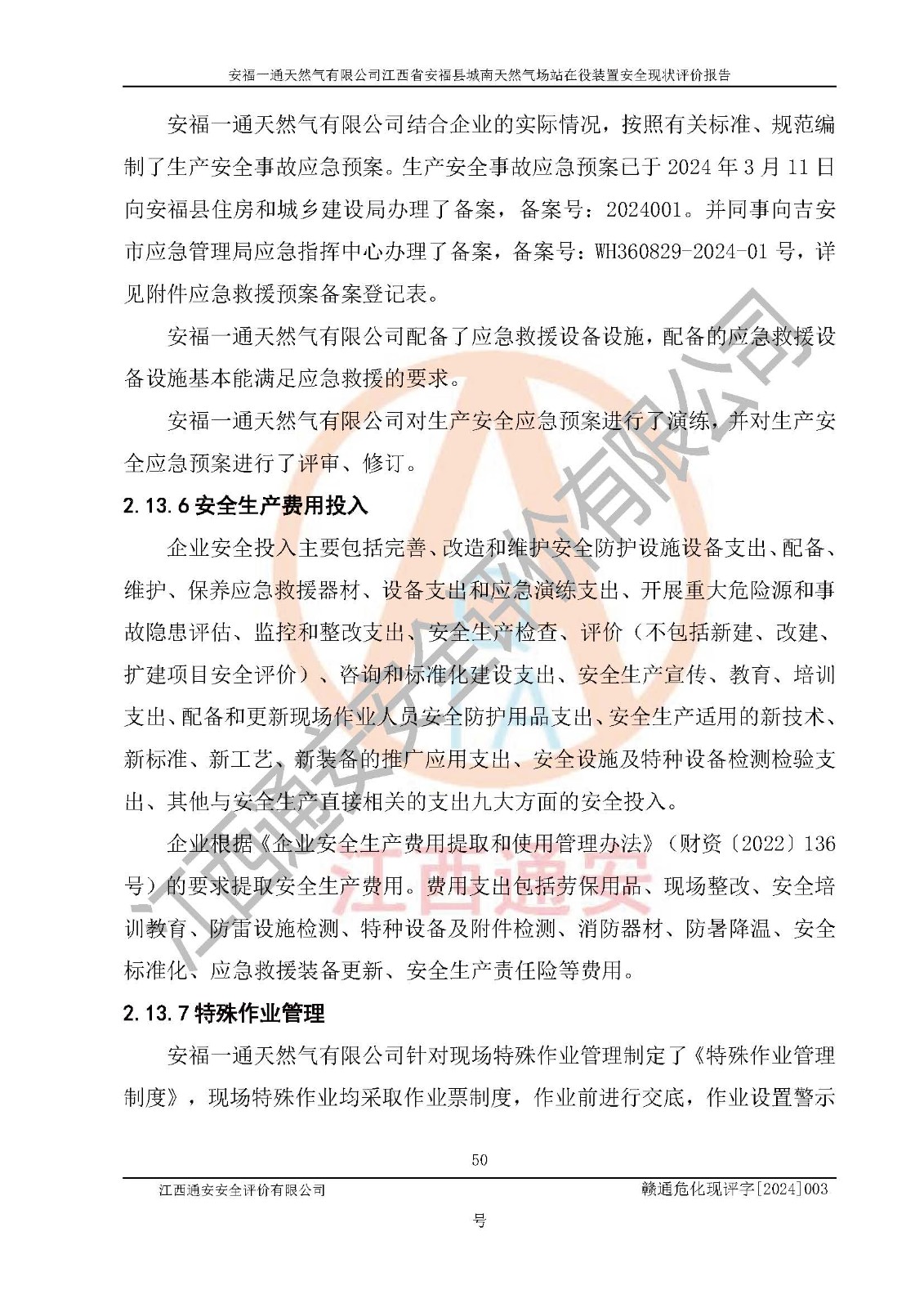 評價報告名稱 | 安福一通天然氣有限公司江西省安??h城南天然氣場站在役裝置安全現(xiàn)狀評價報告 | |||