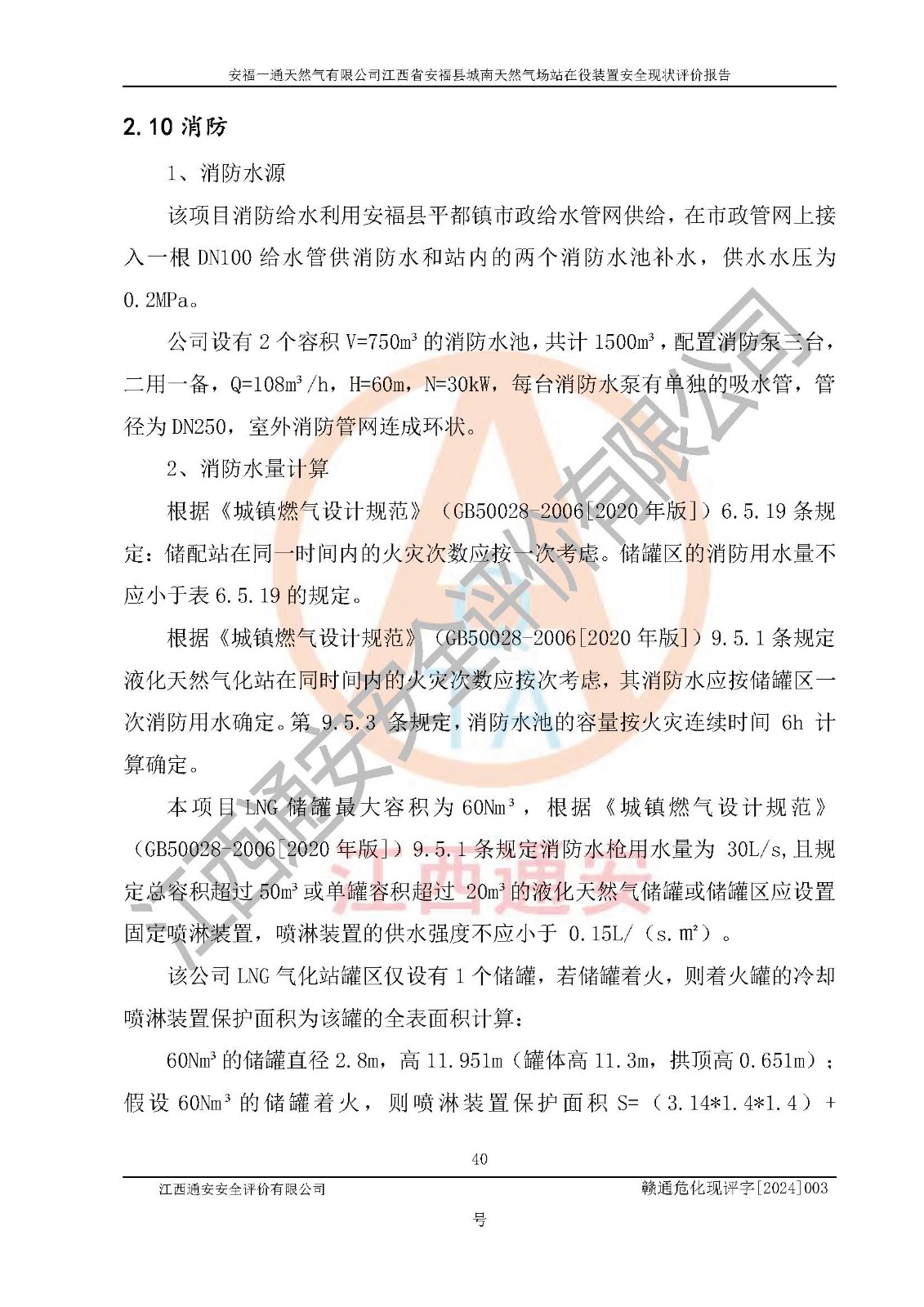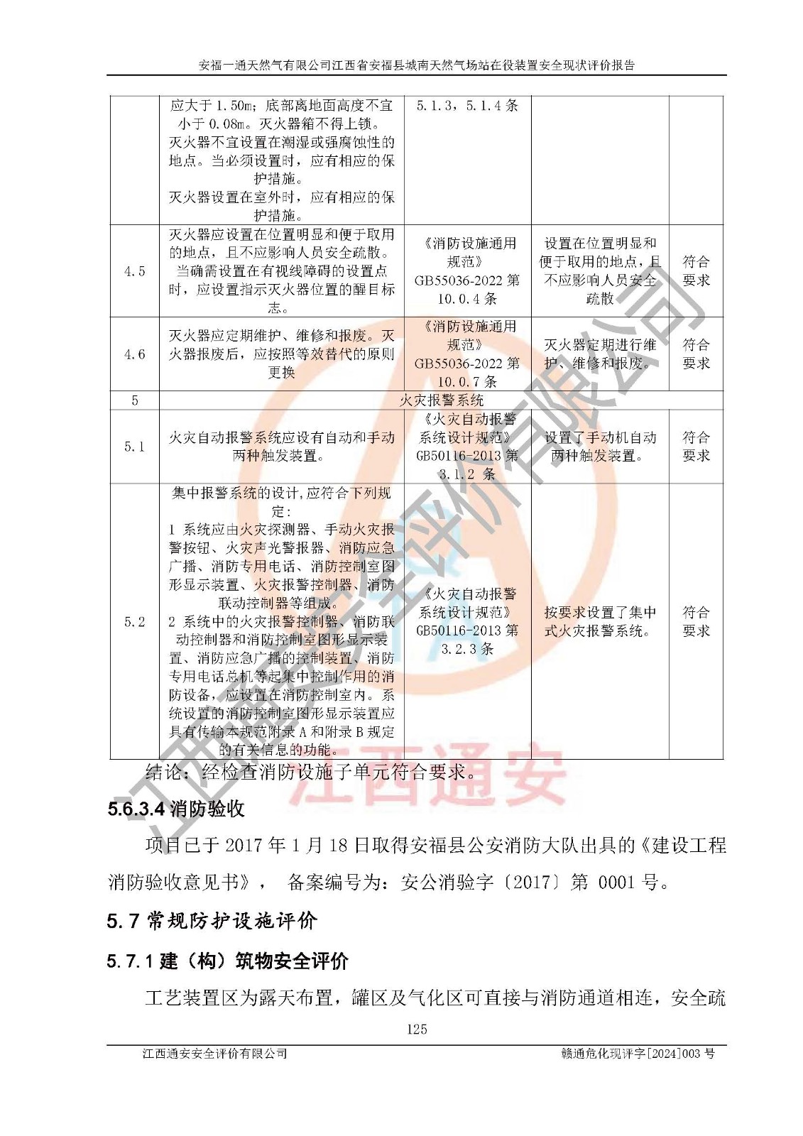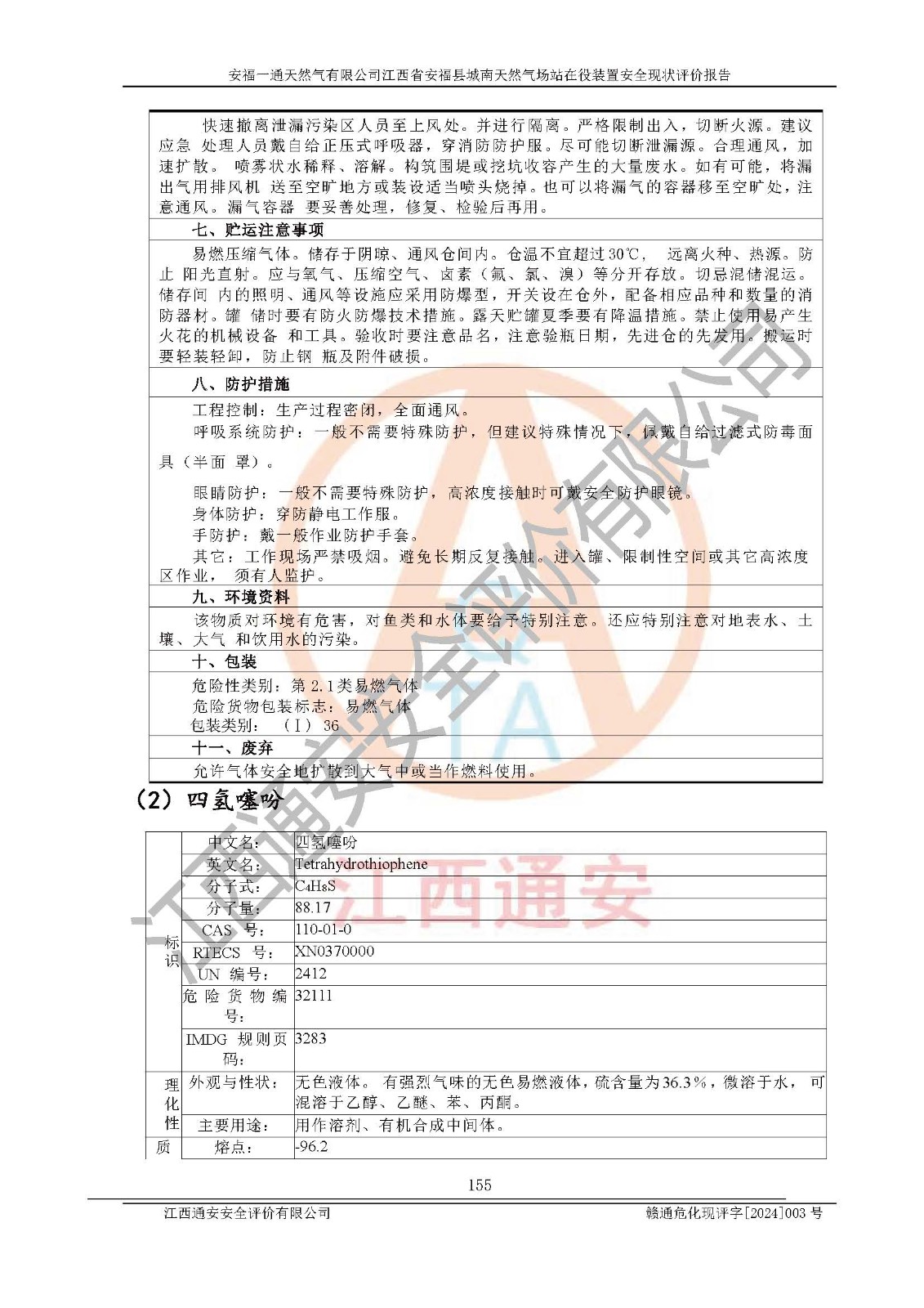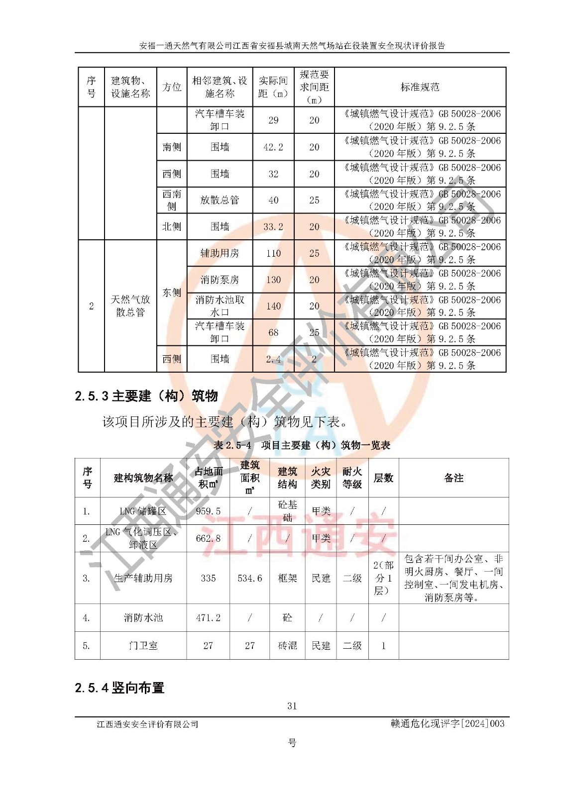 評價結(jié)論 | 安福一通天然氣有限公司在役裝置符安福縣規(guī)劃;總平面布置符合《城鎮(zhèn)燃?xì)庠O(shè)計規(guī)范》GB 50028-2006(2020年版)等標(biāo)準(zhǔn)、規(guī)范的要求;項(xiàng)目采用成熟的生產(chǎn)工藝和設(shè)備,本質(zhì)安全程度較高;同時對生產(chǎn)過程中存在事故危險的設(shè)施和場所采取了一系列的合理可行的防護(hù)措施和科學(xué)的管理,近期通過對存在的安全問題進(jìn)行了整改,使生產(chǎn)過程中的危險有害因素能得到**控制。建設(shè)項(xiàng)目安全設(shè)施符合**現(xiàn)行有關(guān)法律、法規(guī)、標(biāo)準(zhǔn)的要求。 評價結(jié)論:本報告認(rèn)為,安福一通天然氣有限公司在役裝置現(xiàn)場情況與企業(yè)提供的現(xiàn)狀圖紙一致,自動化控制系統(tǒng)運(yùn)行正常,有關(guān)從業(yè)人員資質(zhì)符合《城鎮(zhèn)燃?xì)夤芾項(xiàng)l例》(2010年11月19日中華人民共和國***令第583號公布 根據(jù)2016年2月6日《***關(guān)于修改部分行政法規(guī)的決定》修訂)及《江西省燃?xì)夤芾磙k法》(2003年8月31日江西省人民**令**23號公布 2014年1月30日江西省人民**令第210號**次修正 2019年11月27日江西省人民**令第242號第二次修正)要求,安全設(shè)施及安全管理符合**及有關(guān)部門關(guān)于安全生產(chǎn)法律、法規(guī)、標(biāo)準(zhǔn)的要求,安全風(fēng)險是可以控制的,其風(fēng)險程度是可以接受的,安全現(xiàn)狀符合安全生產(chǎn)條件,能夠滿足安全生產(chǎn)的要求。 | |||
