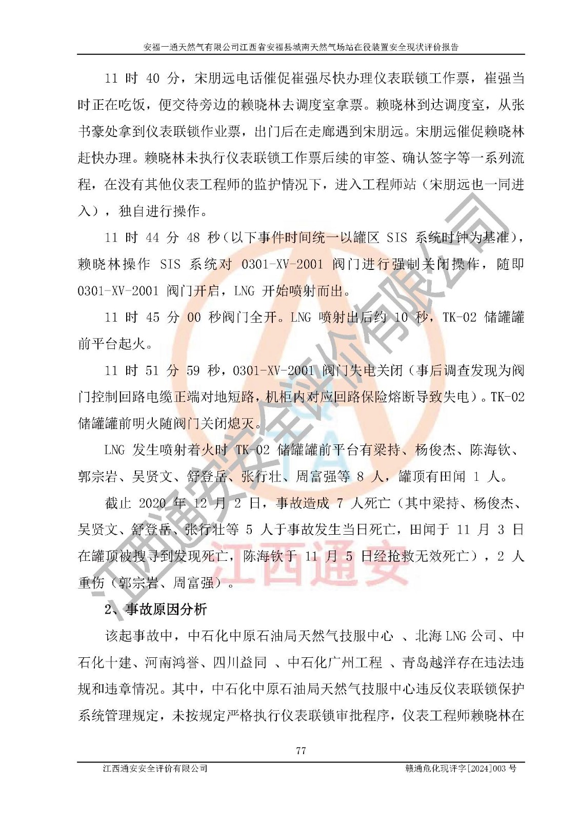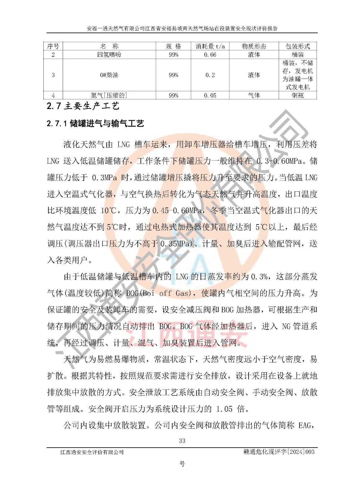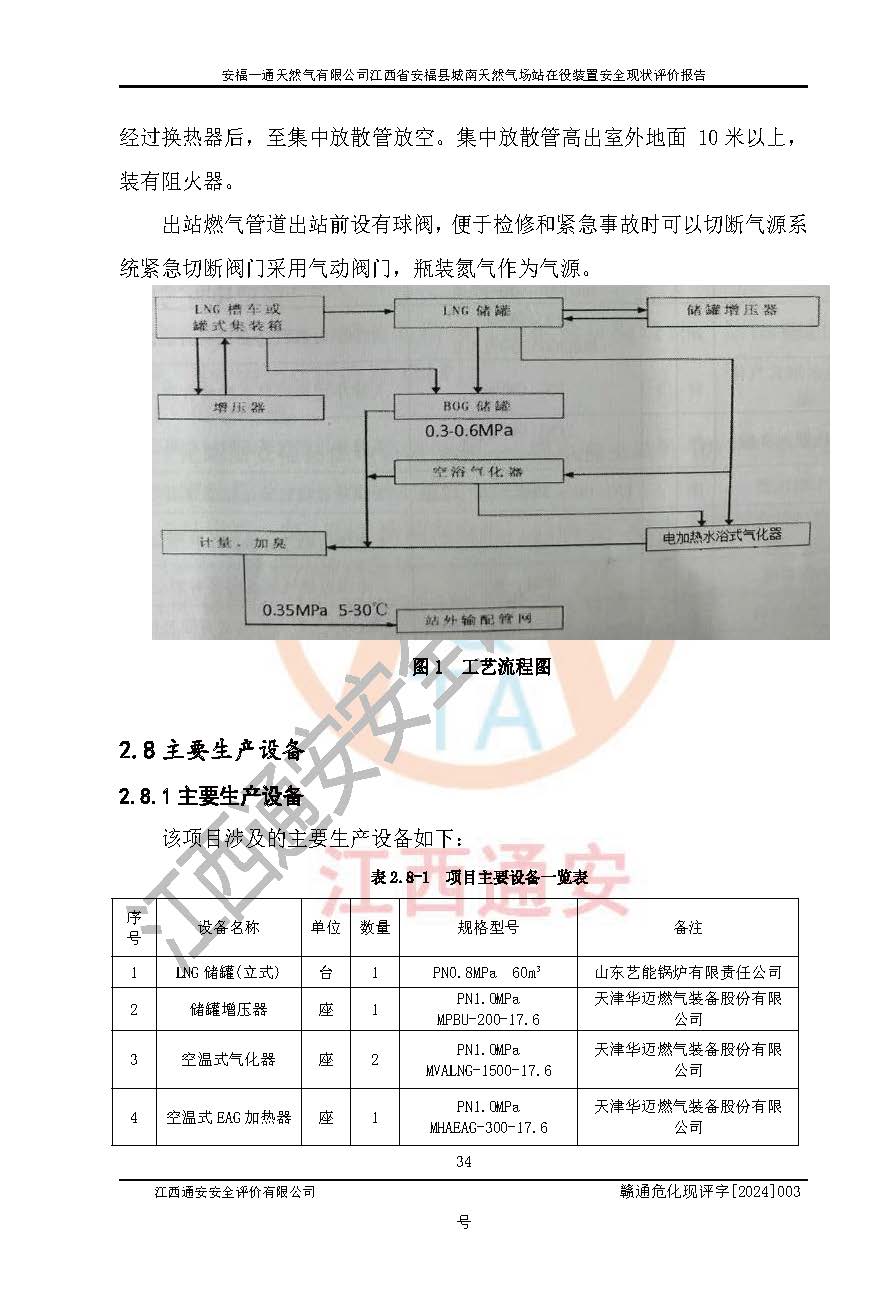 項(xiàng)目簡介 | 安福一通天然氣有限公司位于江西省吉安市安??h平都鎮(zhèn)五里亭向北約700m處,成立于2013年8月15日,并取得安??h市場監(jiān)督管理局頒發(fā)的營業(yè)執(zhí)照,注冊資本貳仟萬元整,法定**人林金亮,公司類型為其他有限責(zé)任公司(自然人投資或控股),統(tǒng)一社會信用代碼:91360829074296158U,經(jīng)營范圍:許可項(xiàng)日:燃?xì)饨?jīng)營,燃?xì)馊紵骶甙惭b、維修(依法須經(jīng)批準(zhǔn)的項(xiàng)目,經(jīng)相關(guān)部門批/準(zhǔn)后方可開展經(jīng)營活動)一般項(xiàng)目:非電力家用器具銷售,安全咨詢服務(wù),信息咨詢服務(wù)(不含許可類信息咨詢服務(wù))(除許可業(yè)務(wù)外,可自主依法經(jīng)營法律法規(guī)非禁止或限制的項(xiàng)目)。 安福一通天然氣有限公司于2016年6月10日取得安??h發(fā)展和改革委員會《關(guān)于核準(zhǔn)安??h城市管道天然氣工程項(xiàng)目的批復(fù)》,批復(fù)文號:安發(fā)改字[2016]89號。 安福一通天然氣有限公司2018年初次取得燃?xì)饨?jīng)營許可證,并于2021年4月16日換發(fā)燃?xì)饨?jīng)營許可證,經(jīng)營類別:管道天然氣;經(jīng)營區(qū)域:安??h縣城規(guī)劃區(qū)及工業(yè)項(xiàng)目區(qū);許可證編號:贛201807100001G;許可證**期限:2021年4月16日起至2024年4月15日止。 安福一通天然氣有限公司設(shè)有60Nm3LNG地上立式液化天然氣儲罐,以及配套的氣化裝置。目前該公司每小時供應(yīng)天然氣約 2000Nm3,供氣范圍主要為安福縣城范圍內(nèi)城區(qū)居民用戶、機(jī)關(guān)學(xué)校食堂、餐飲、賓館、酒店、洗浴等服務(wù)用戶以及工業(yè)用戶。 根據(jù)《危險化學(xué)品目錄》(2015年版)、應(yīng)急管理部辦公廳關(guān)于修改《危險化學(xué)品目錄(2015年版)實(shí)施指南(試行)》涉及柴油部分內(nèi)容的通知(應(yīng)急廳函[2022]300號)和應(yīng)急管理部 工業(yè)和信息化部 公安部 生態(tài)環(huán)境部 交通運(yùn)輸部 農(nóng)業(yè)農(nóng)村部 衛(wèi)生健康委 市場監(jiān)管總局 鐵路局 民航局公告2022年第8號《決定調(diào)整《危險化學(xué)品目錄(2015版)》,將“1674柴油[閉杯閃點(diǎn)≤60℃]”調(diào)整為“1674柴油”》的文件規(guī)定,該項(xiàng)目涉及危險化學(xué)品天然氣(74-82-8)、四氫噻吩(110-01-0)、氮?dú)猓?727-37-9)、0#柴油(68334-30-5),其中天然氣屬于重點(diǎn)監(jiān)管的危險化學(xué)品。 根據(jù)《特別管控危險化學(xué)品目錄(**批)》辨識:該項(xiàng)目液化天然氣(LNG)屬于特別管控危險化學(xué)品。 安福一通天然氣有限公司三年來給安福縣城提供穩(wěn)定的天然氣供應(yīng)服務(wù),未發(fā)生輕傷以上的人身傷亡事故,生產(chǎn)設(shè)備設(shè)施及安全設(shè)施運(yùn)行良好,安全運(yùn)行。 | |||