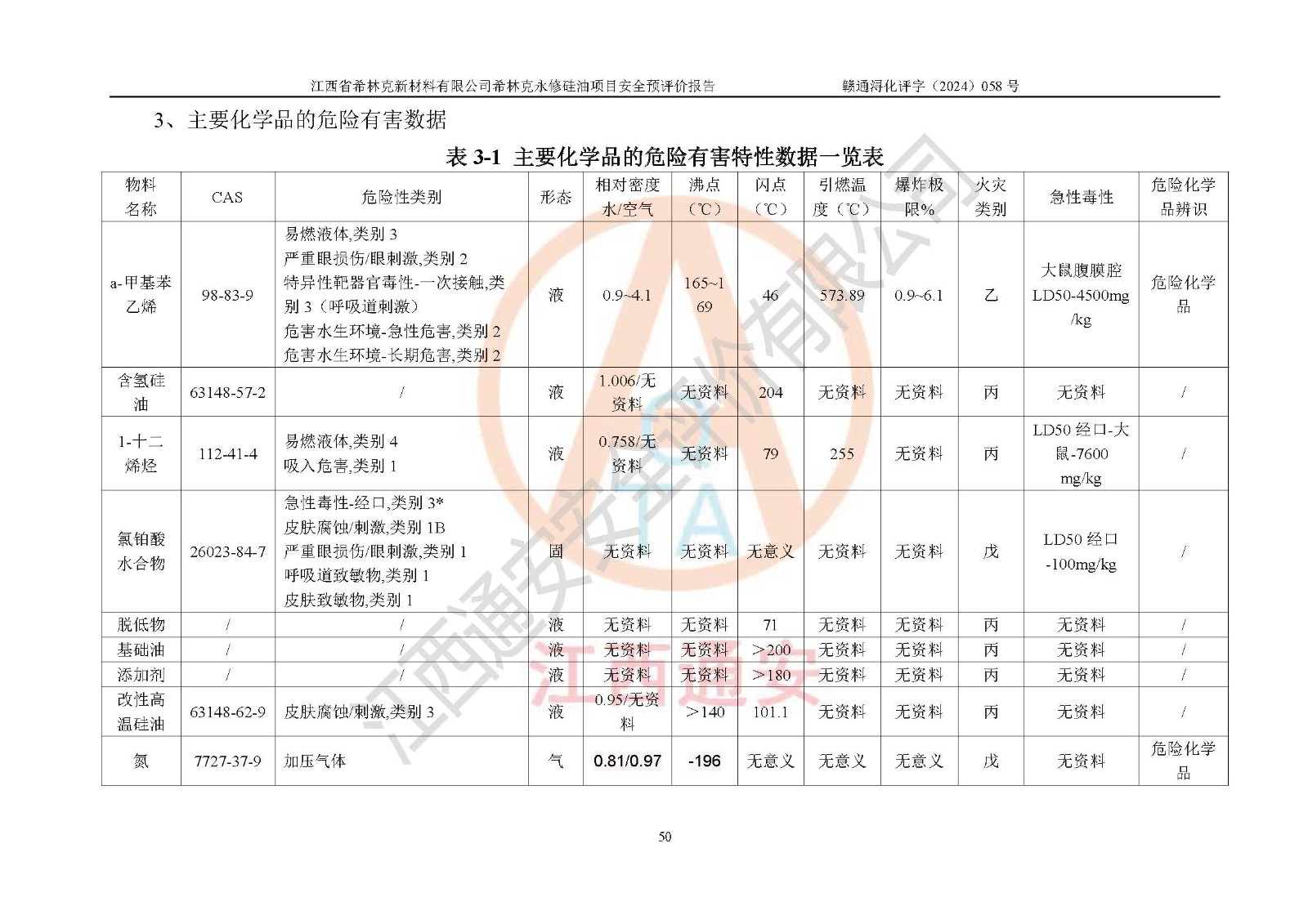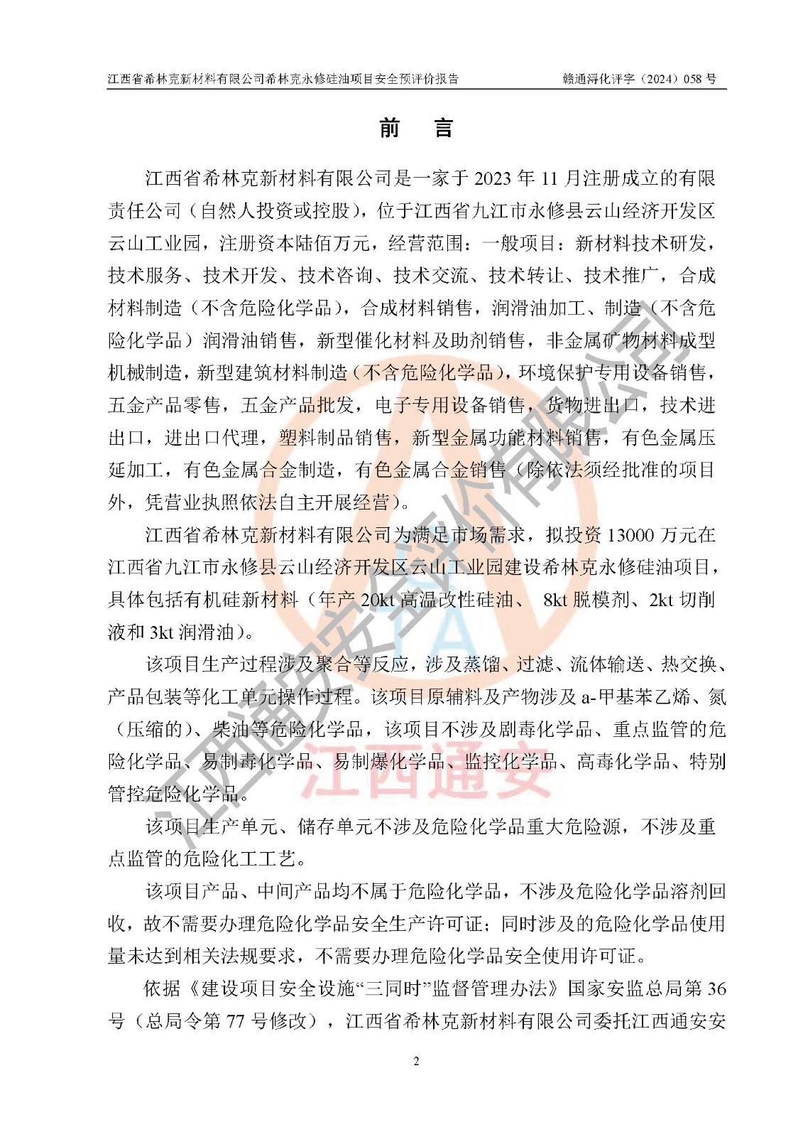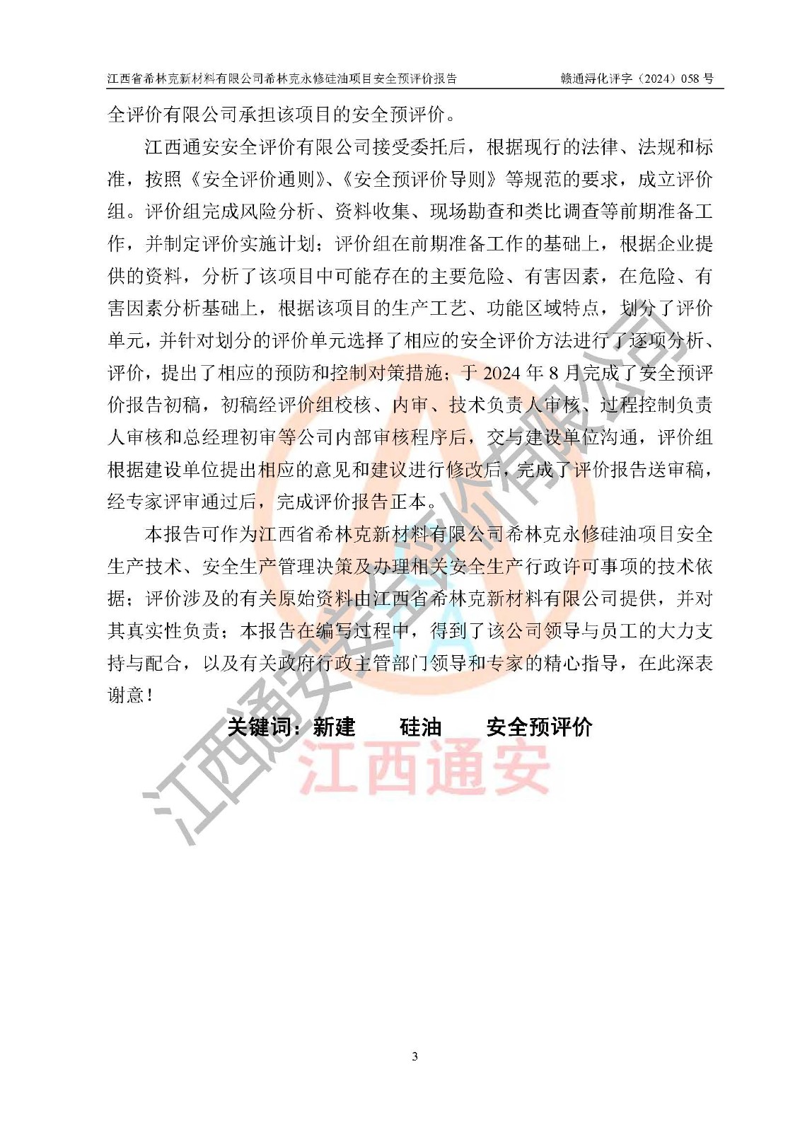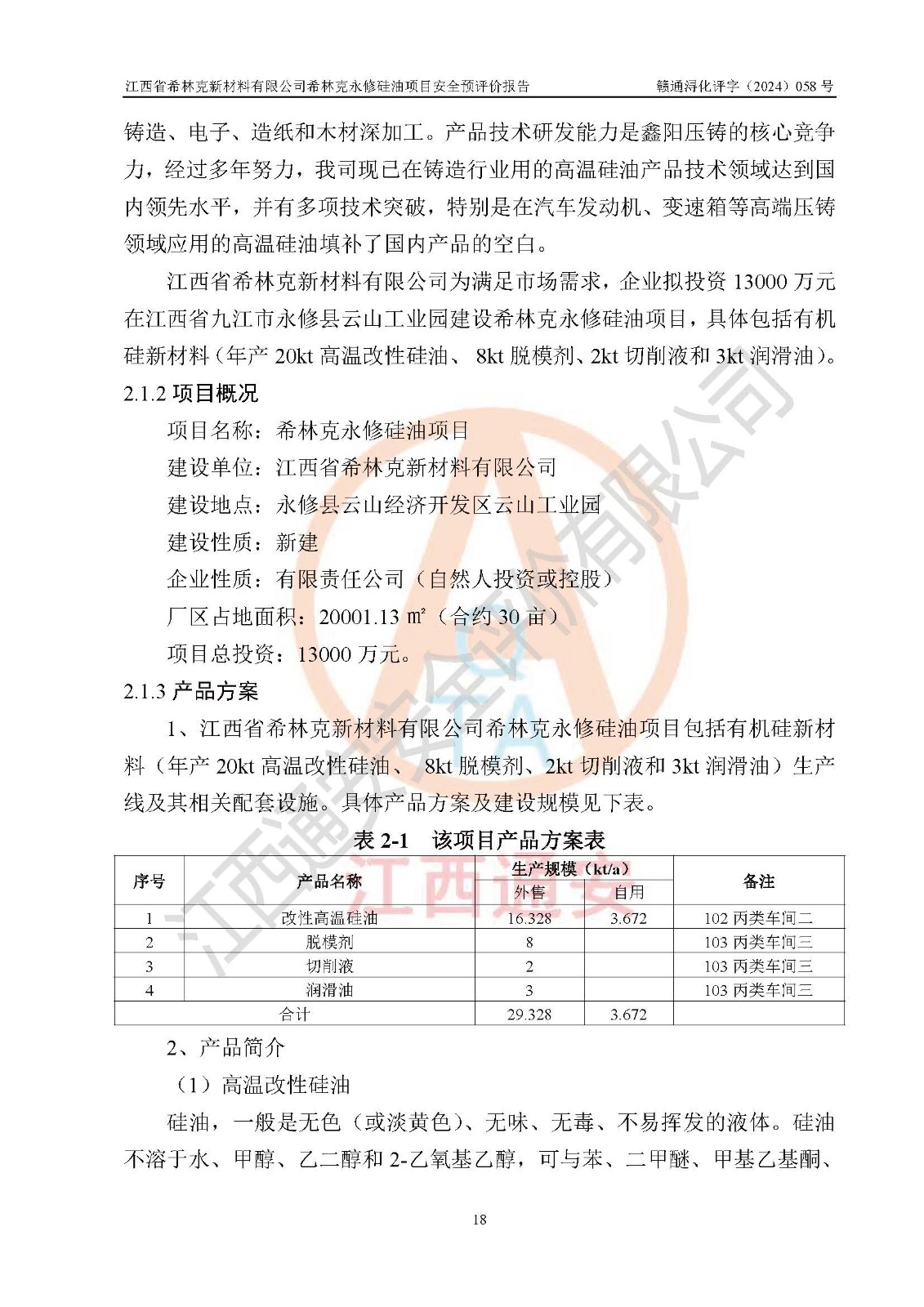 評價報告名稱 | 江西省希林克新材料有限公司 希林克永修硅油項目安全預(yù)評價 | |||||