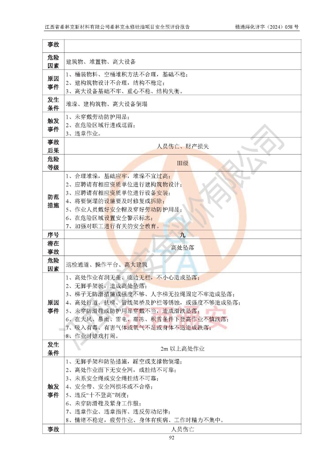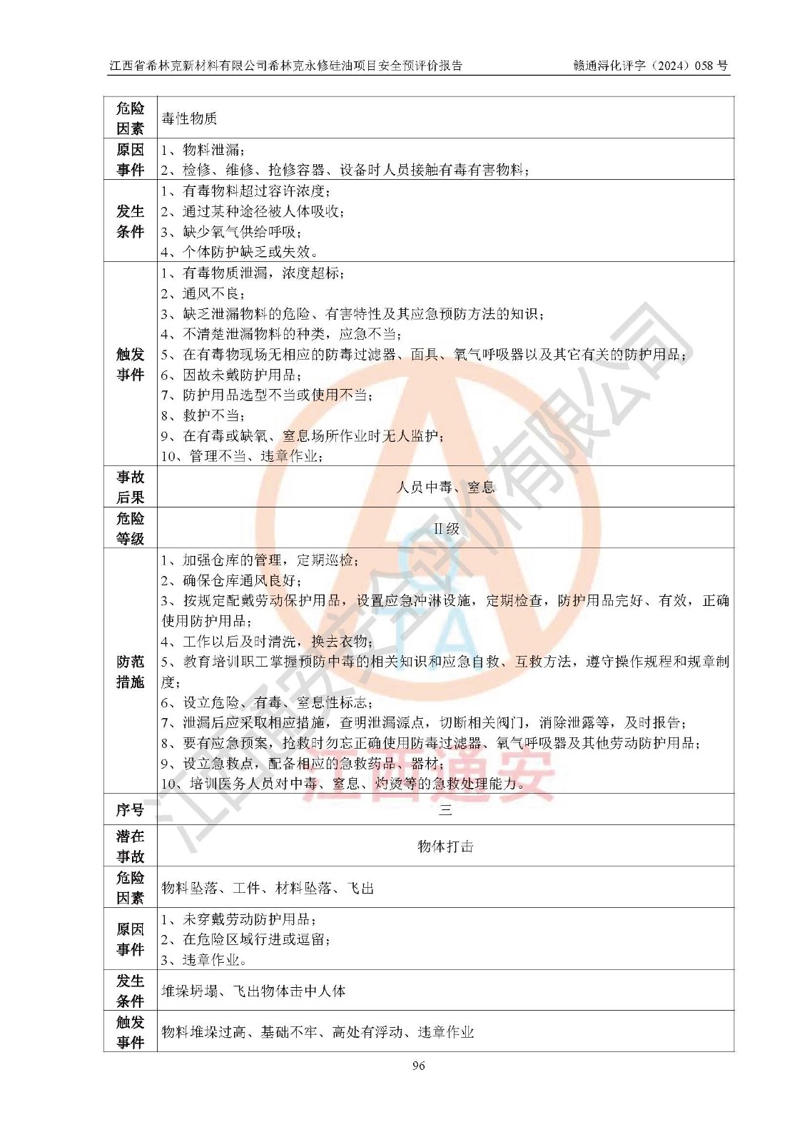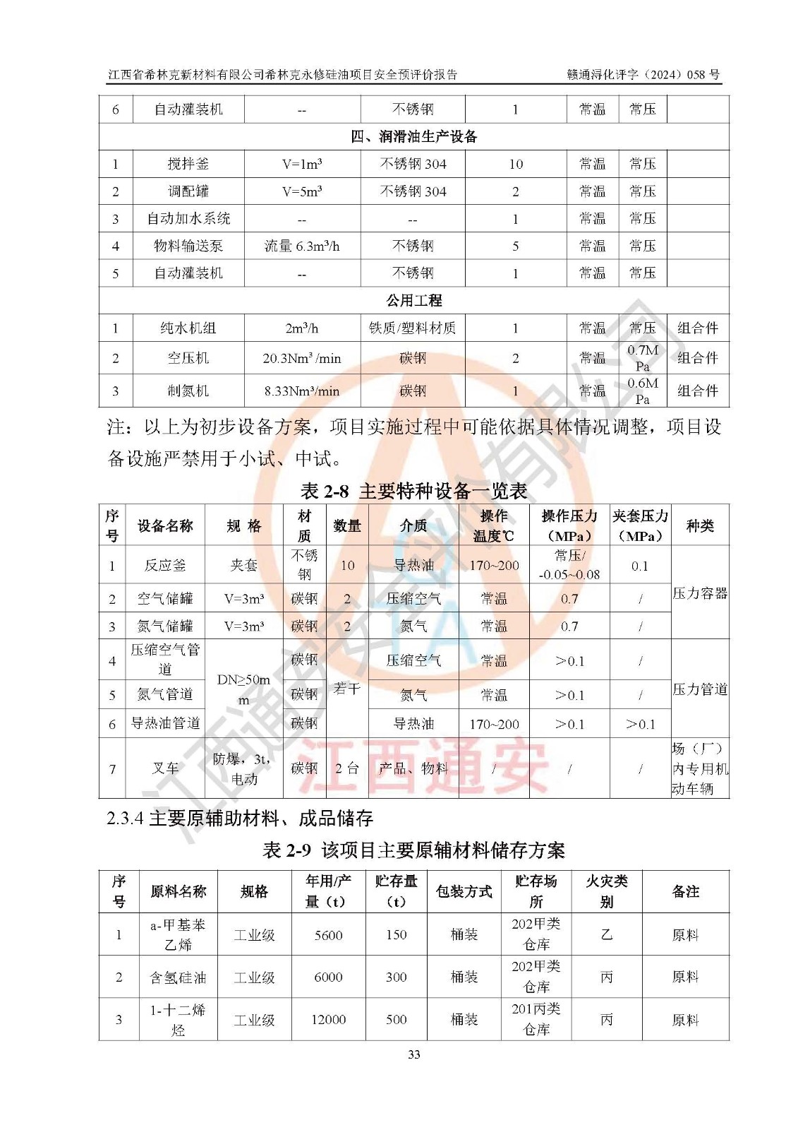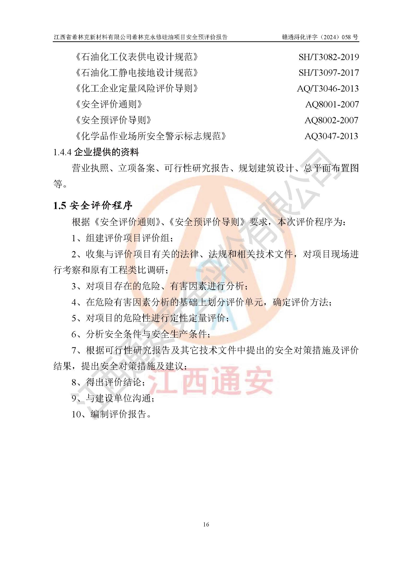 評價報告名稱 | 江西省希林克新材料有限公司 希林克永修硅油項目安全預(yù)評價 | |||||