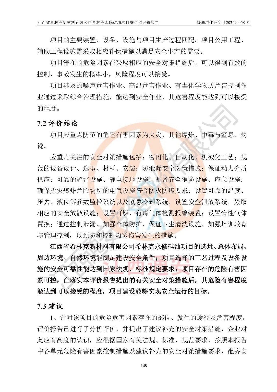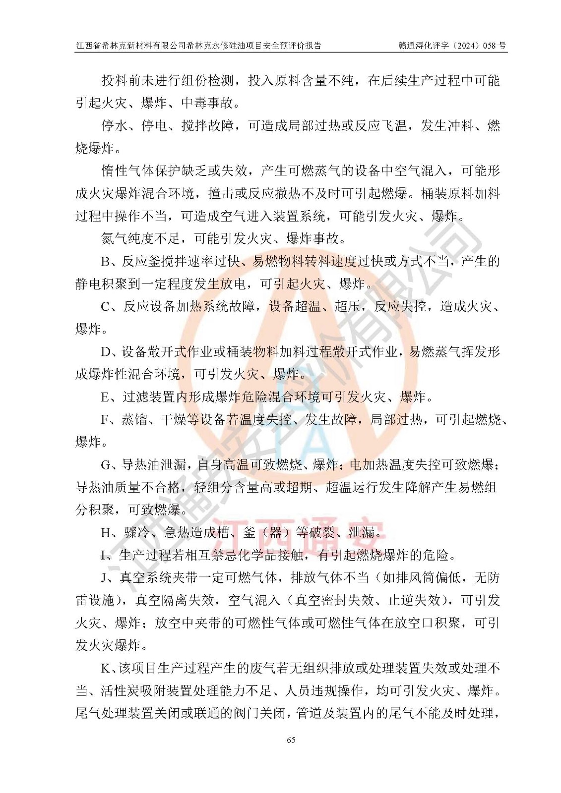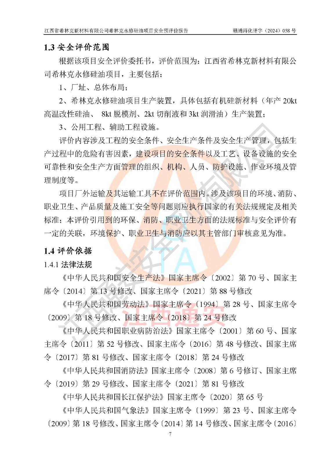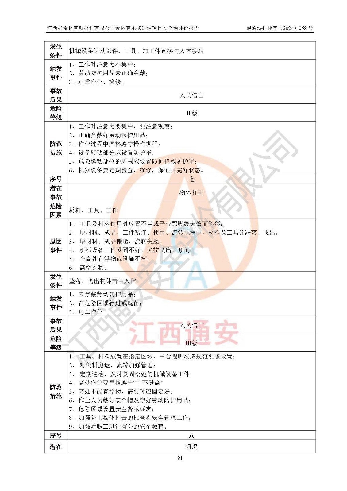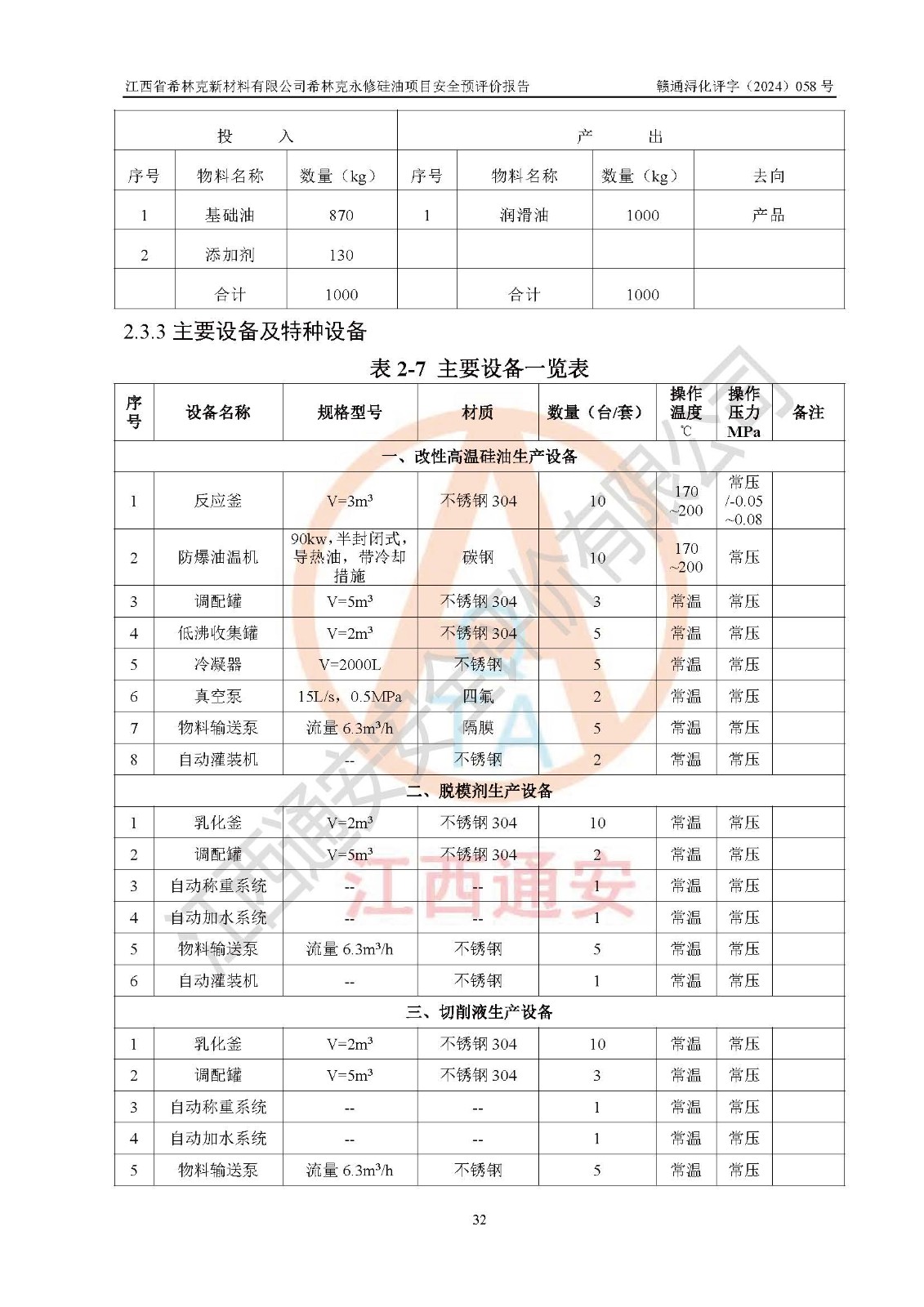 評價報告名稱 | 江西省希林克新材料有限公司 希林克永修硅油項目安全預(yù)評價 | |||||