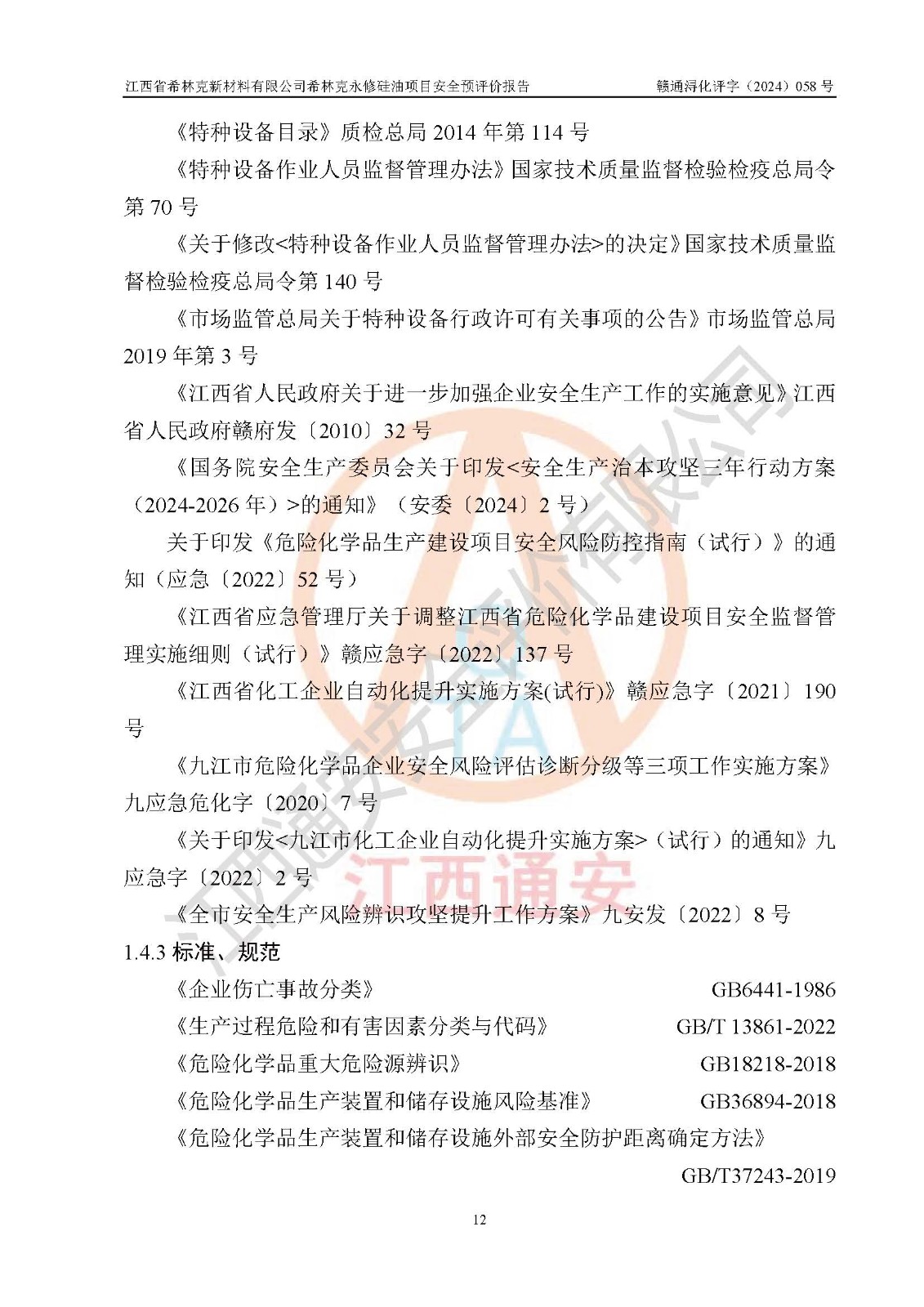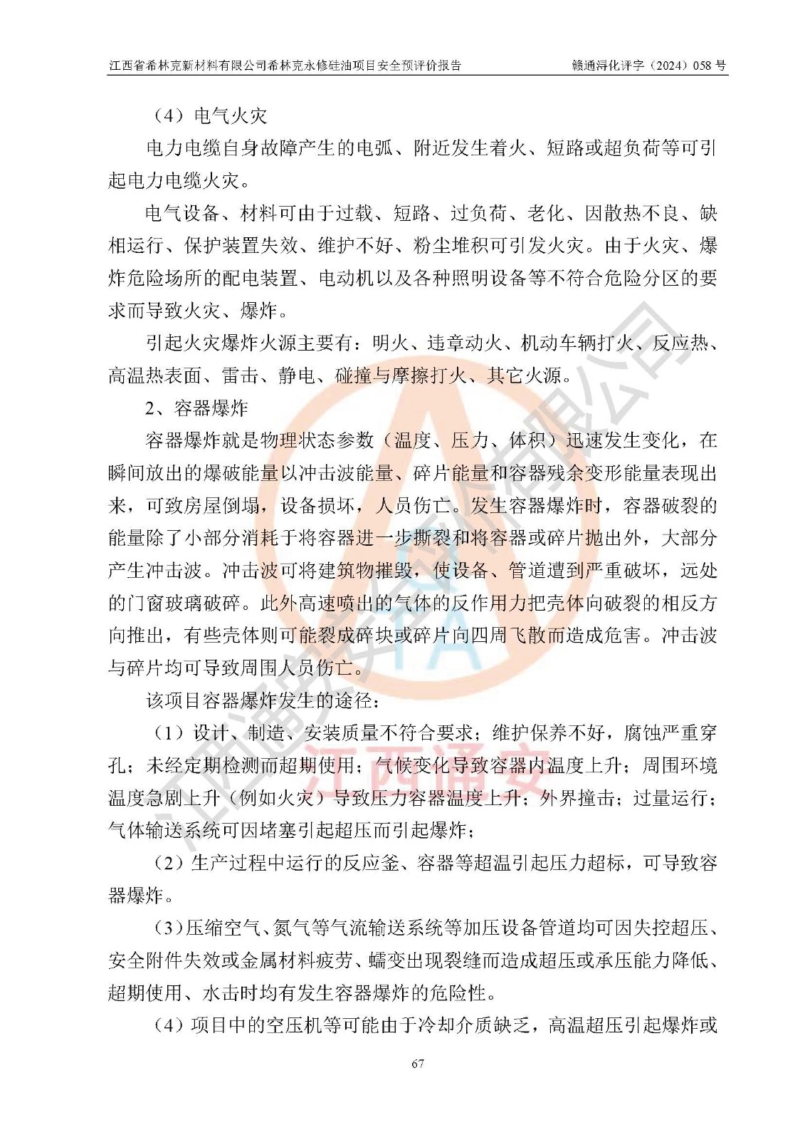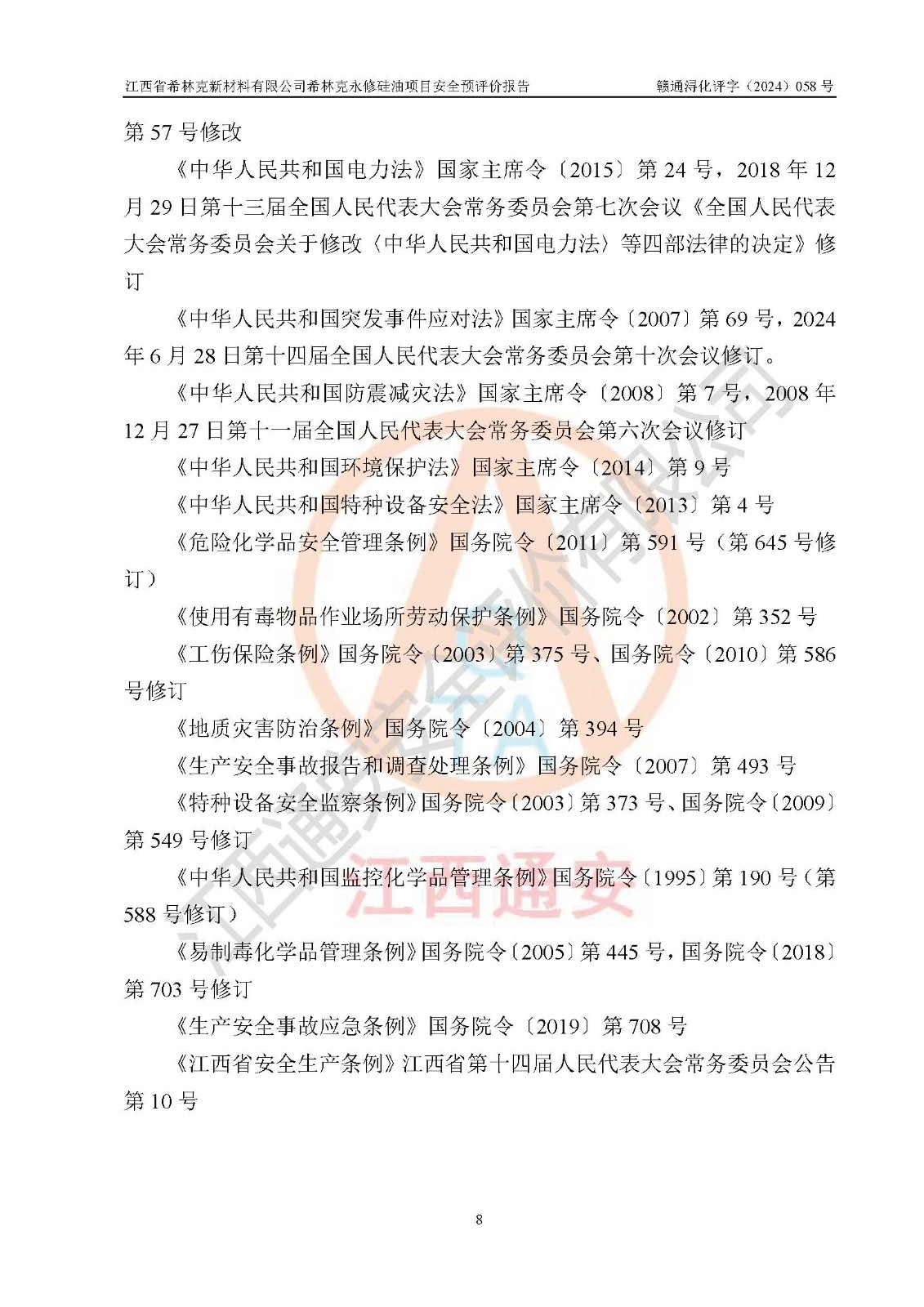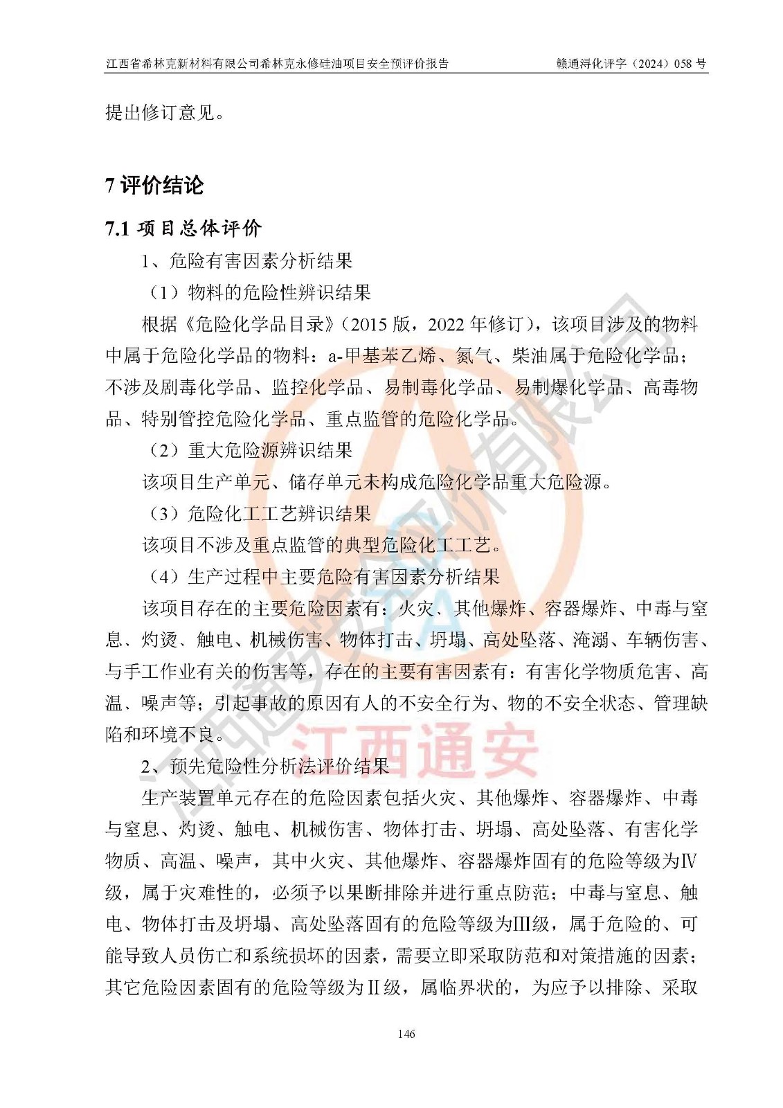 評價報告名稱 | 江西省希林克新材料有限公司 希林克永修硅油項目安全預(yù)評價 | |||||