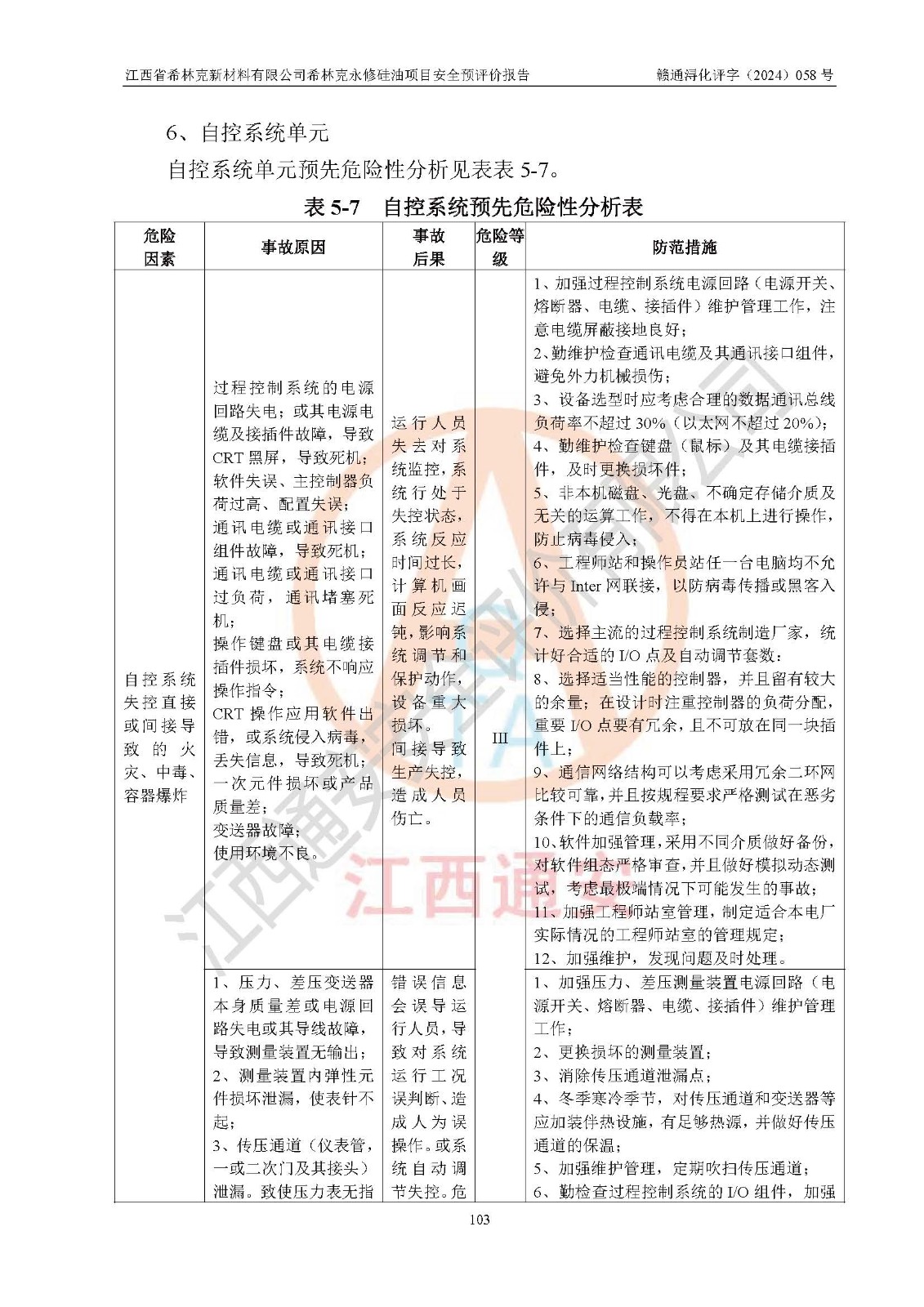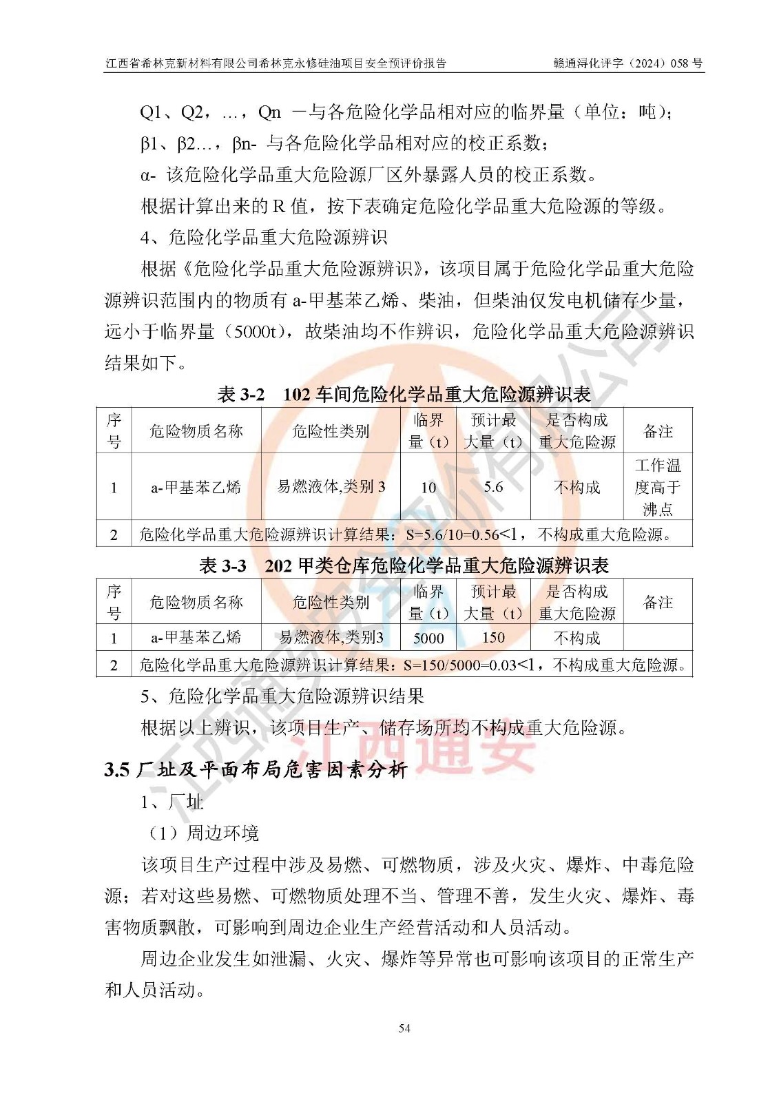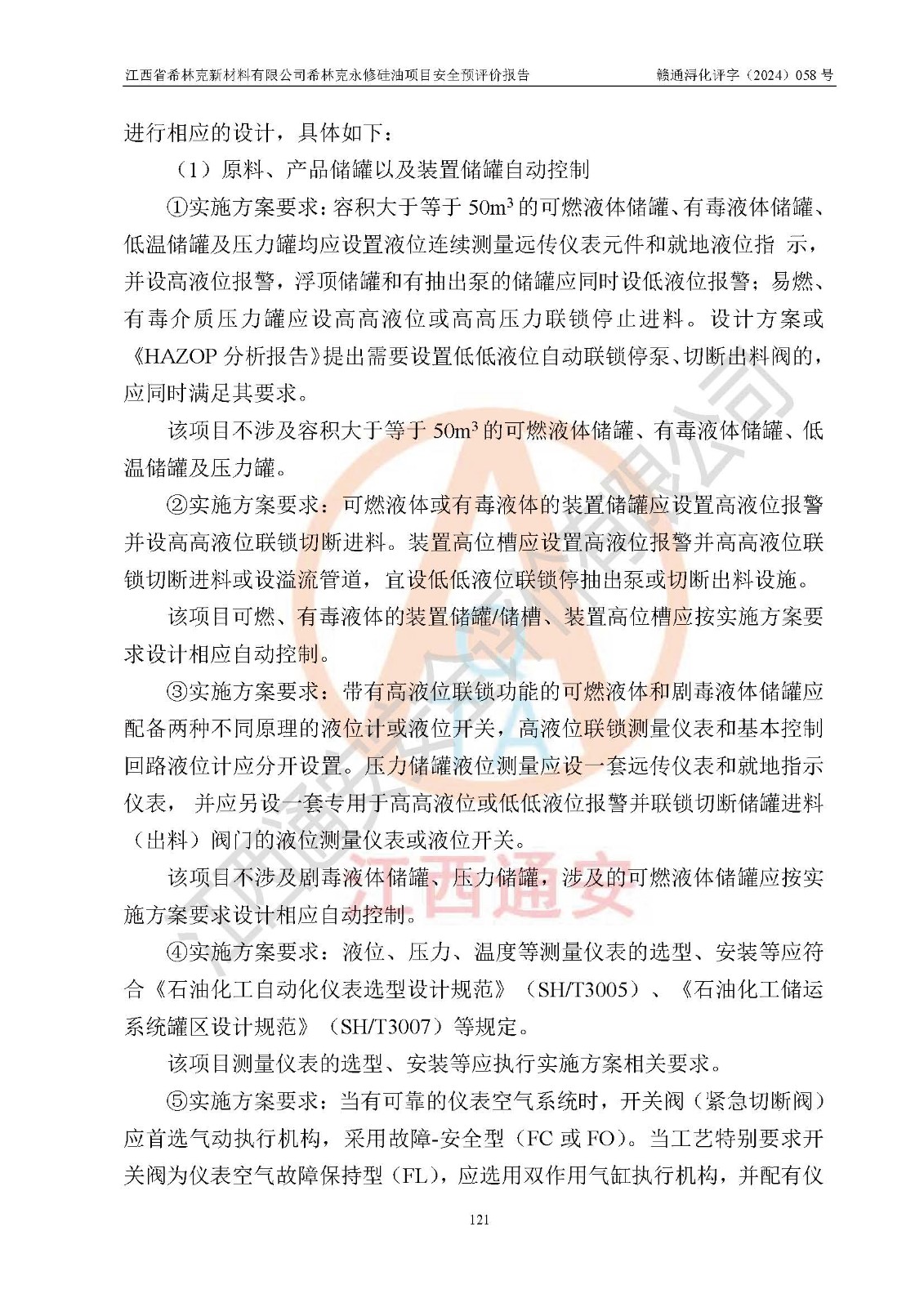 評價結(jié)論 | 江西省希林克新材料有限公司希林克永修硅油項目的選址、總體布局、周邊環(huán)境、自然環(huán)境能滿足建設(shè)安全條件;項目選擇的工藝過程及設(shè)備設(shè)施的安全可靠性能達到**法規(guī)、標(biāo)準(zhǔn)規(guī)定要求;項目存在的危險有害因素可控,在落實本評價報告提出的有關(guān)安全對策措施后,其危險有害程度能達到可以接受的程度,項目建設(shè)能夠?qū)崿F(xiàn)安全運行的目標(biāo)。 | |||||