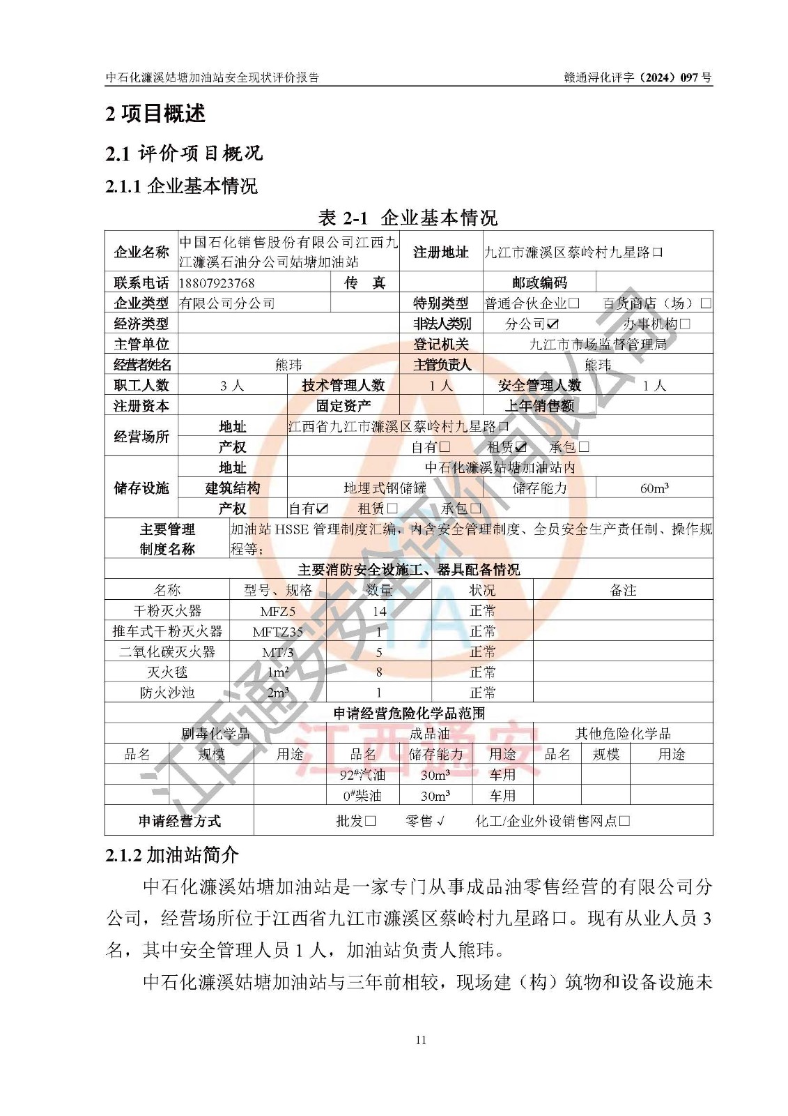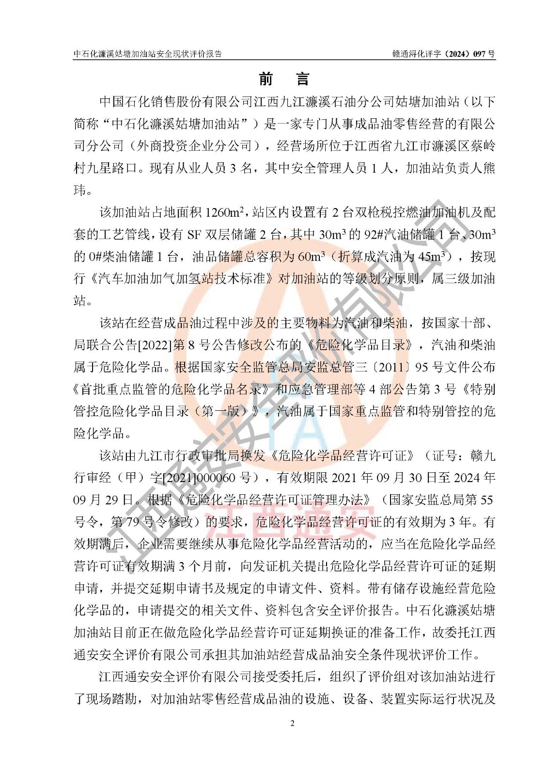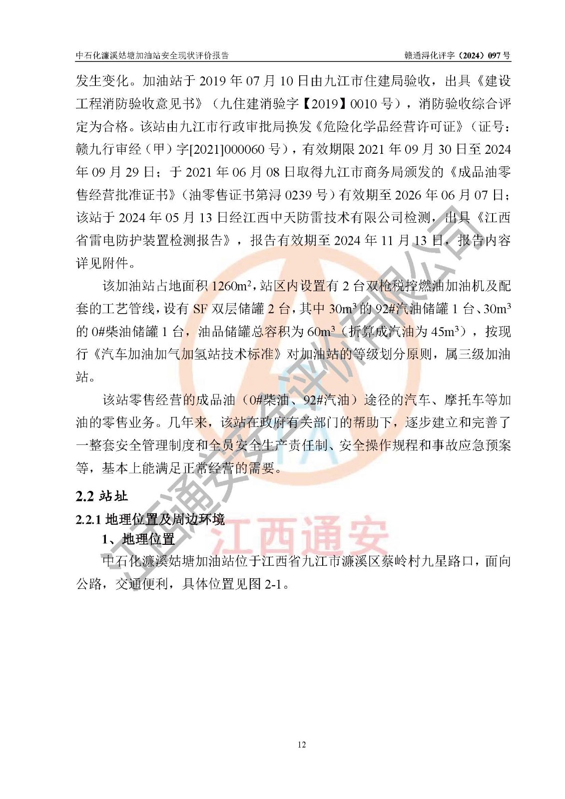 評價報告名稱 | 中國石化銷售股份有限公司江西九江濂溪石油分公司姑塘加油站安全現(xiàn)狀評價報告 | |||