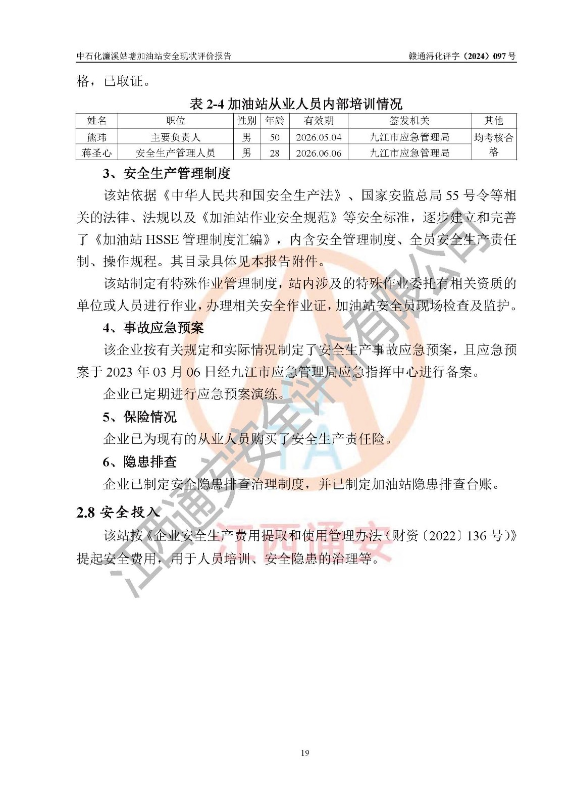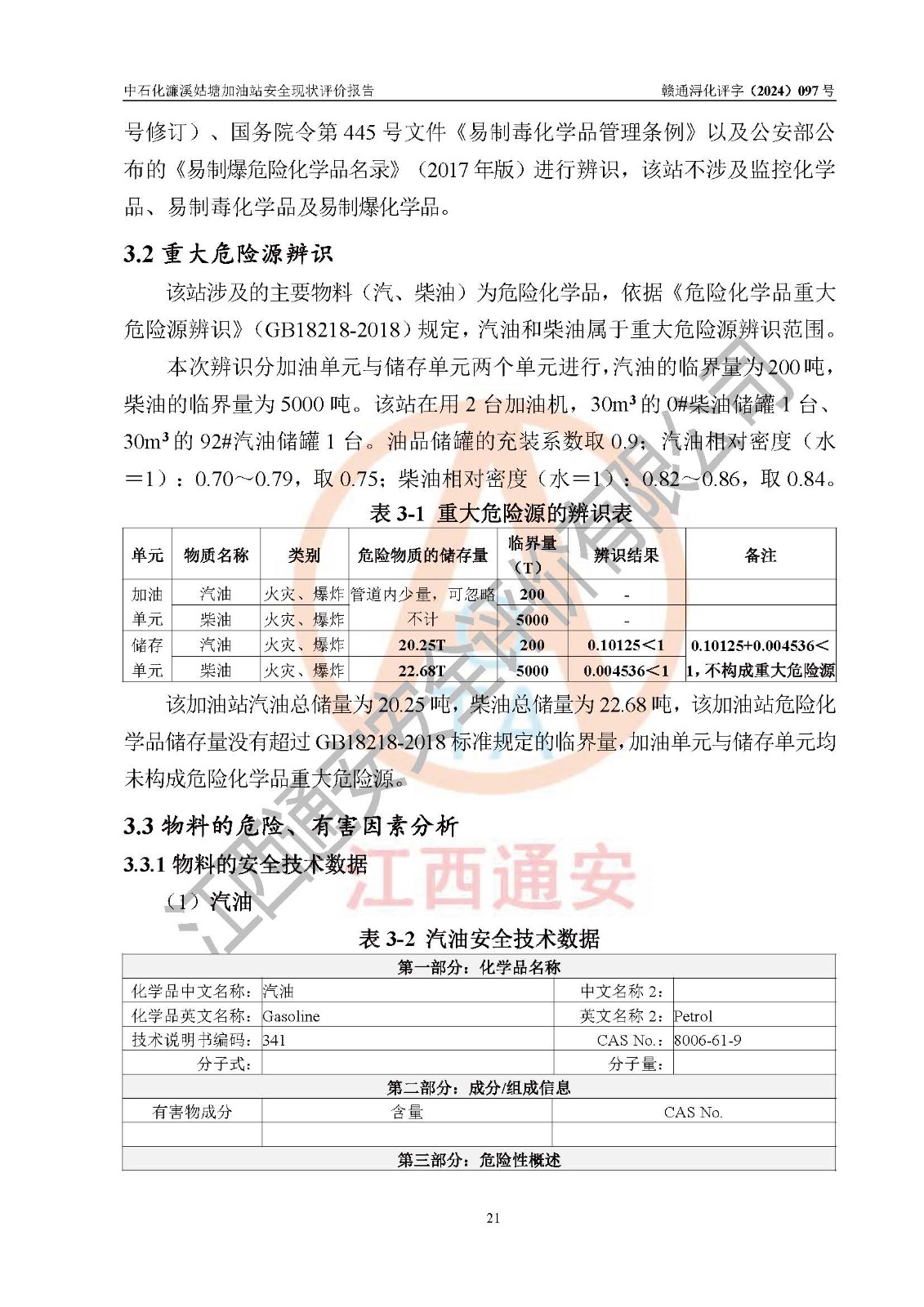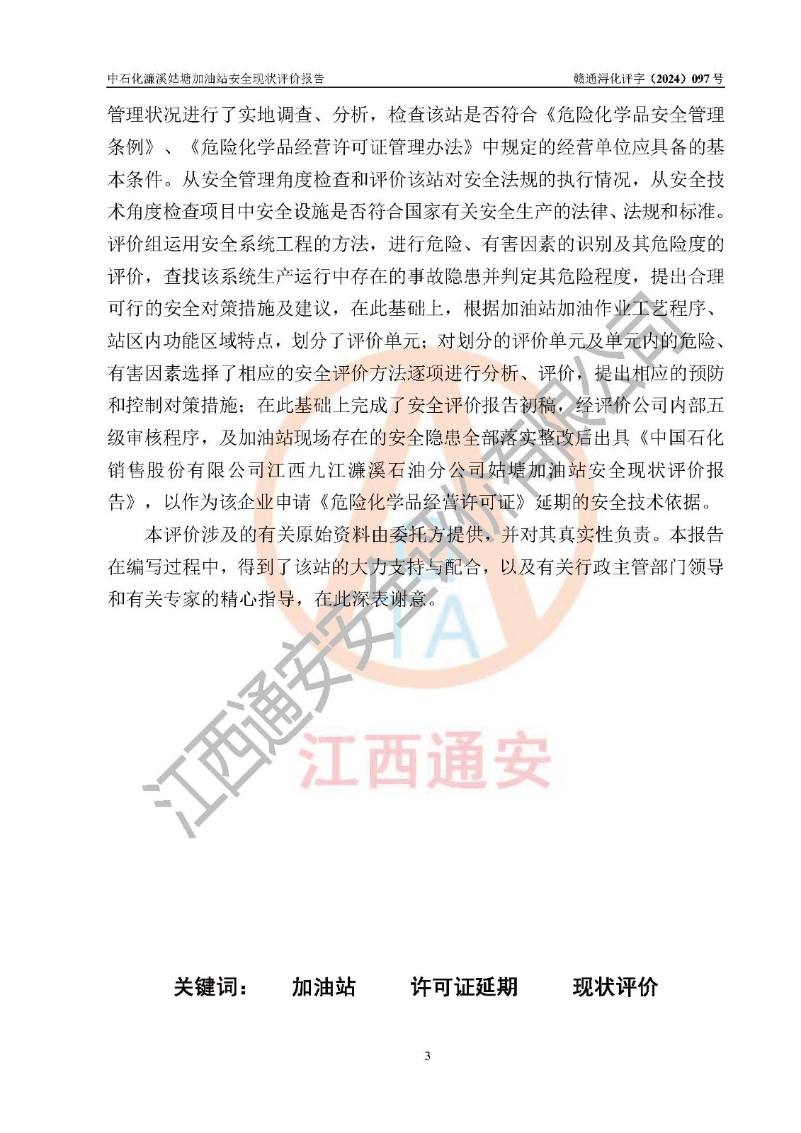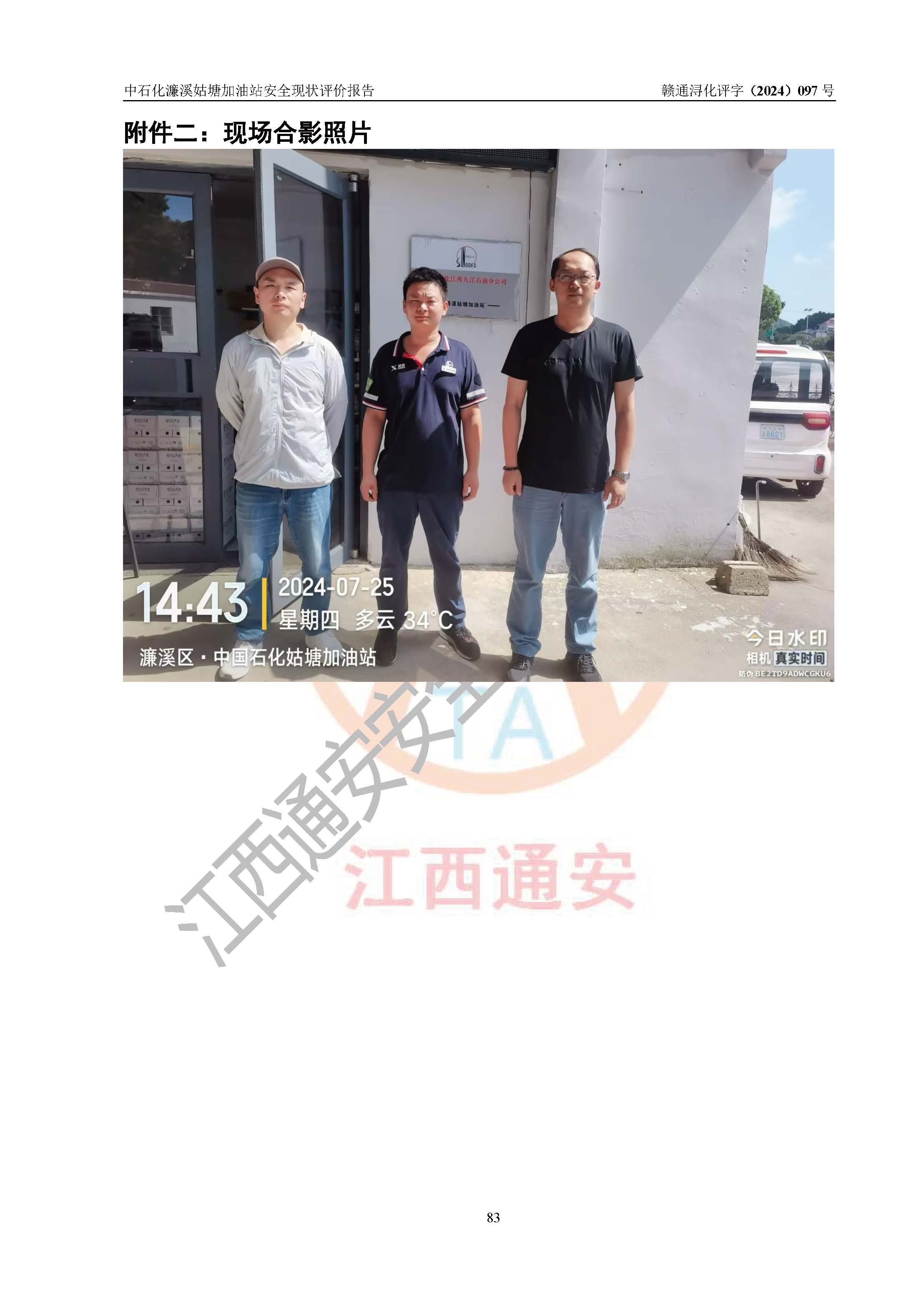 評價報告名稱 | 中國石化銷售股份有限公司江西九江濂溪石油分公司姑塘加油站安全現(xiàn)狀評價報告 | |||