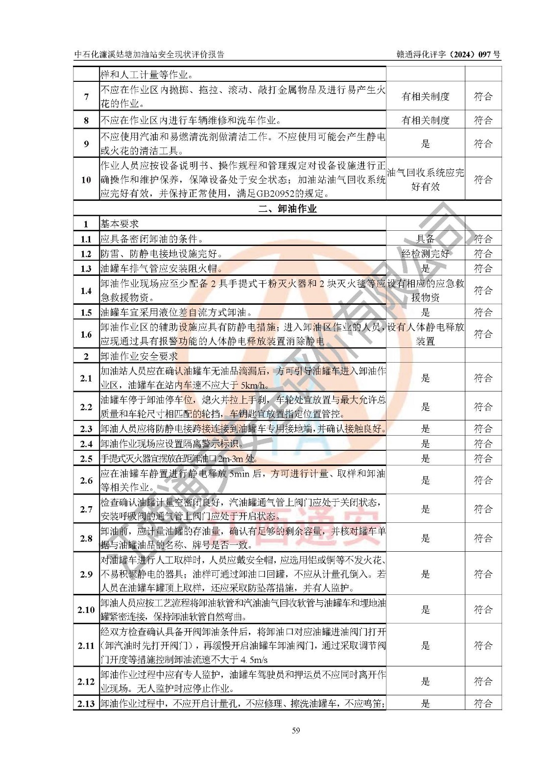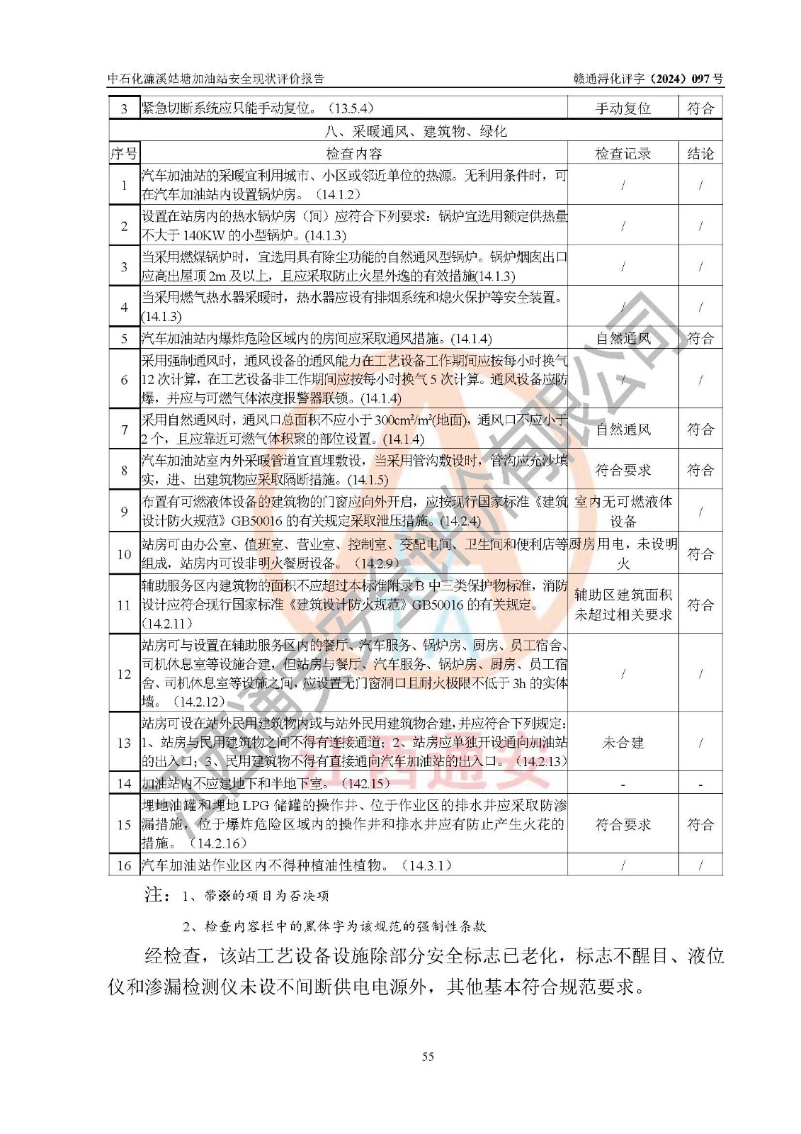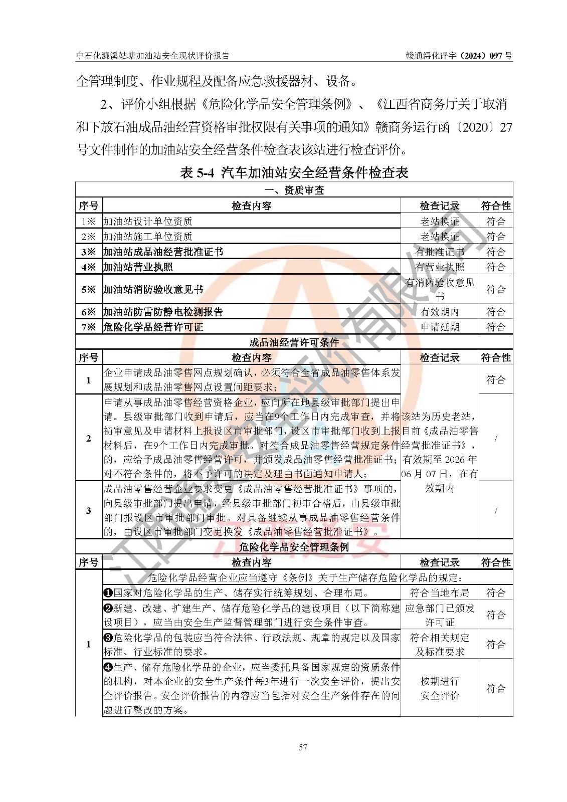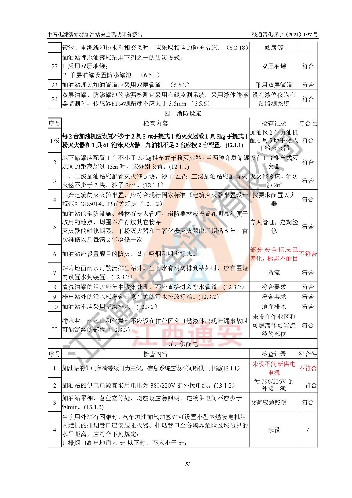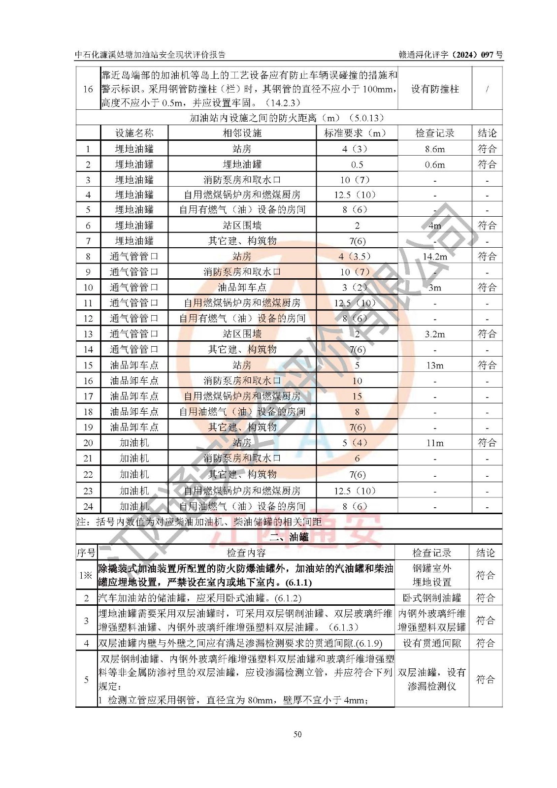 評價結(jié)論 | 中國石化銷售股份有限公司江西九江濂溪石油分公司姑塘加油站涉及的安全條件、安全經(jīng)營條件、安全生產(chǎn)管理符合《危險化學品經(jīng)營許可證管理辦法》、《汽車加油加氣加氫站技術(shù)標準》等**有關(guān)法規(guī)、標準、規(guī)范要求,能滿足危險化學品經(jīng)營安全條件。 | |||