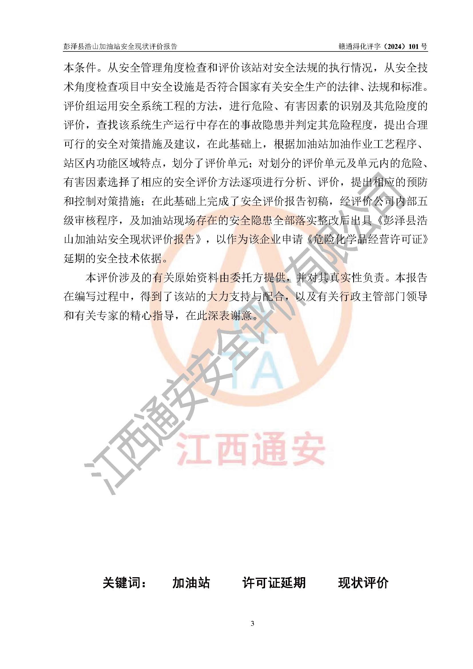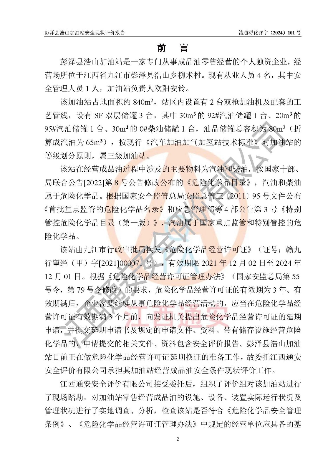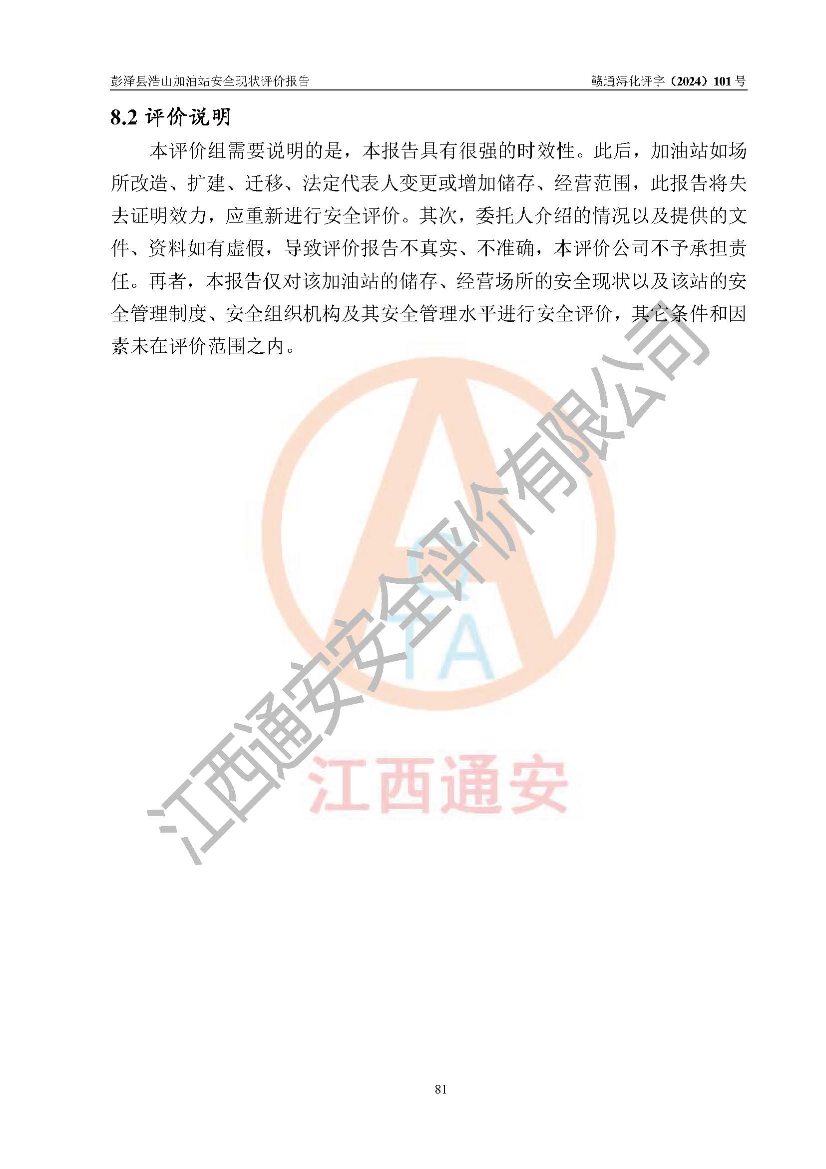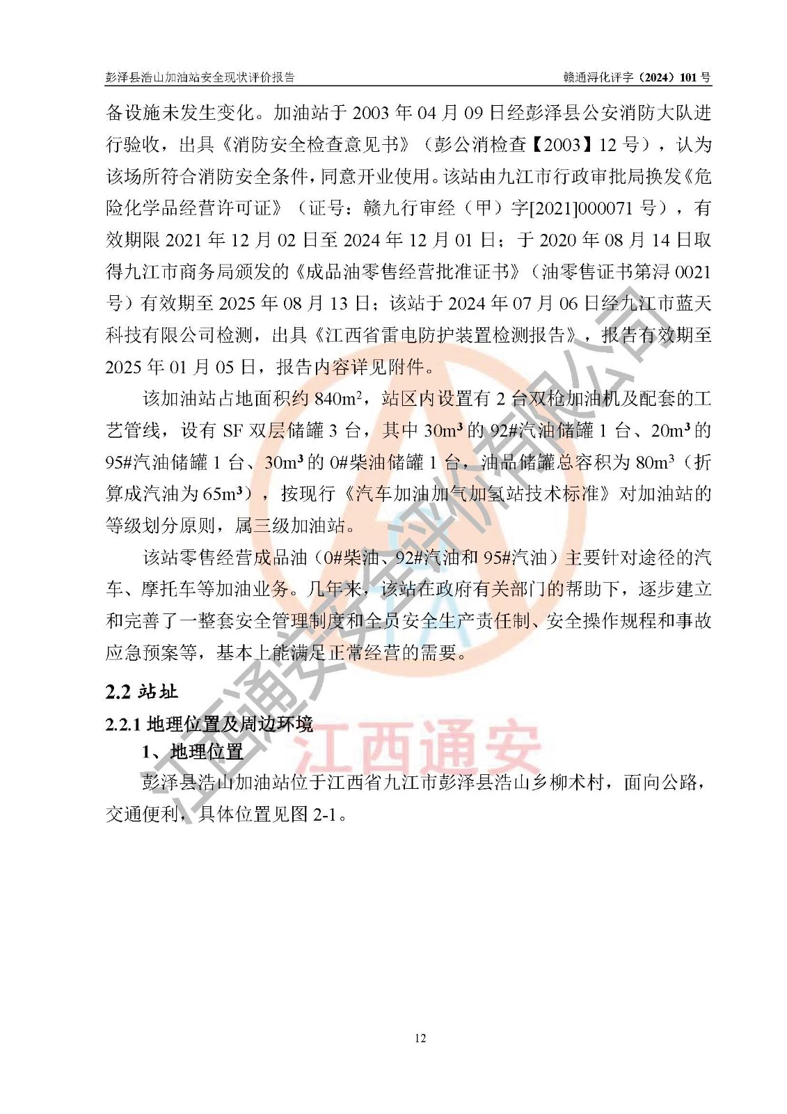 評價報告名稱 | 彭澤縣浩山加油站安全現(xiàn)狀評價報告 | |||