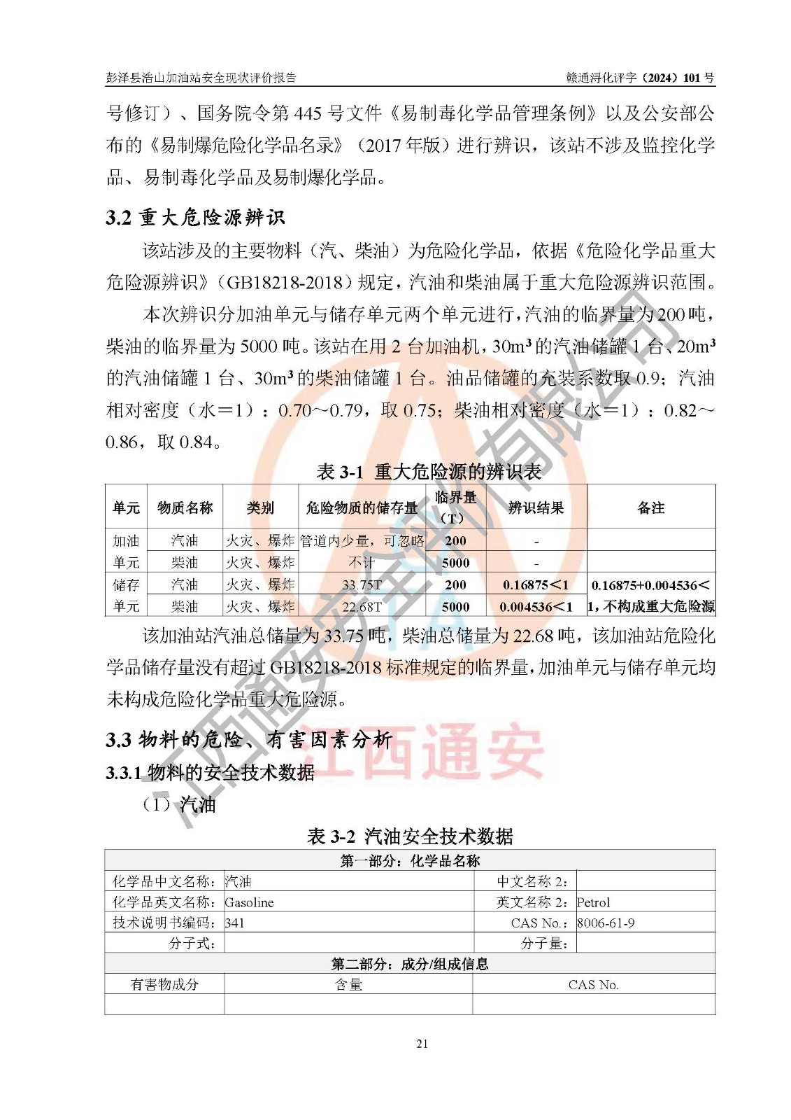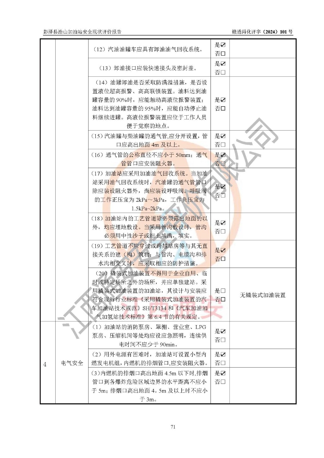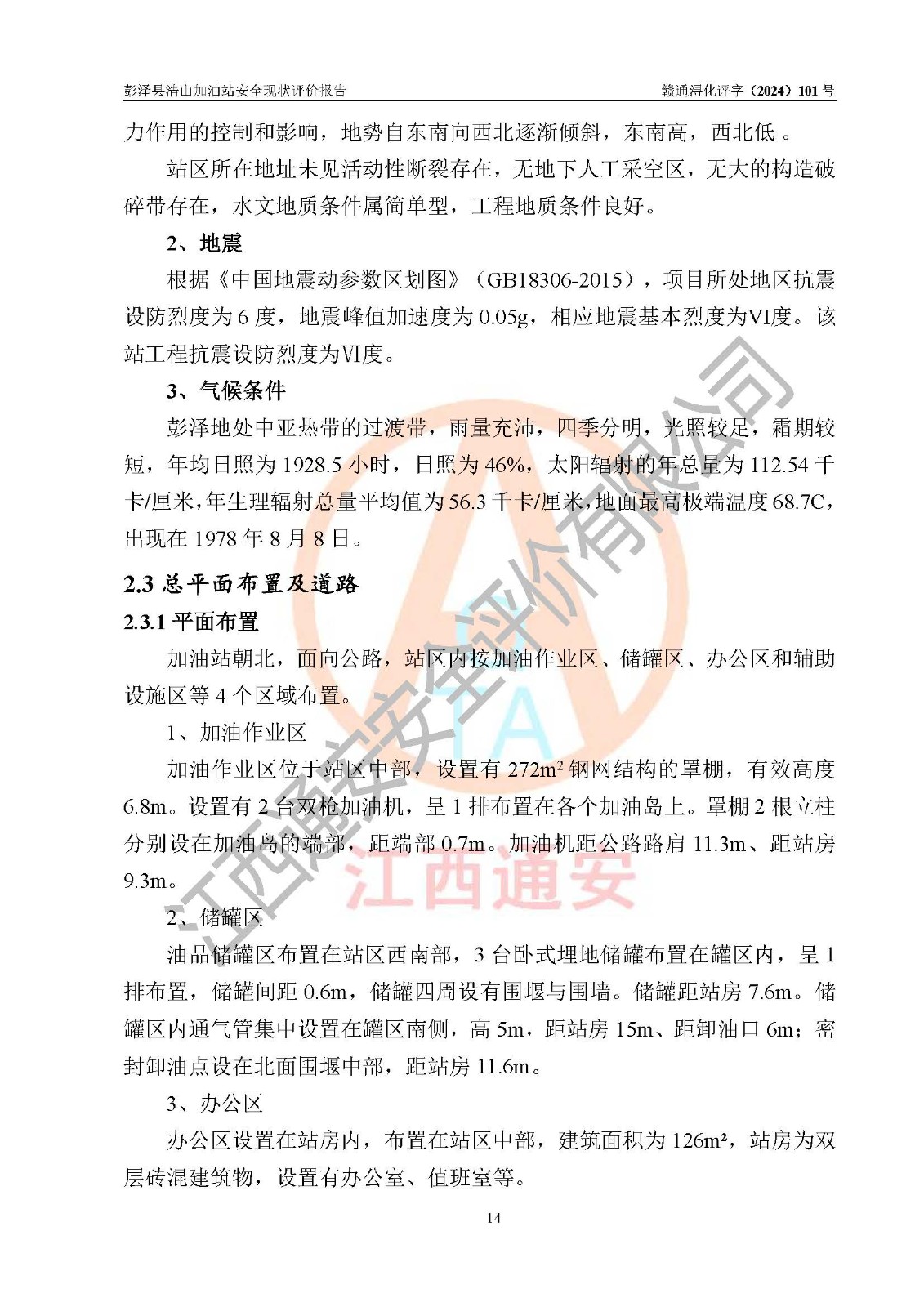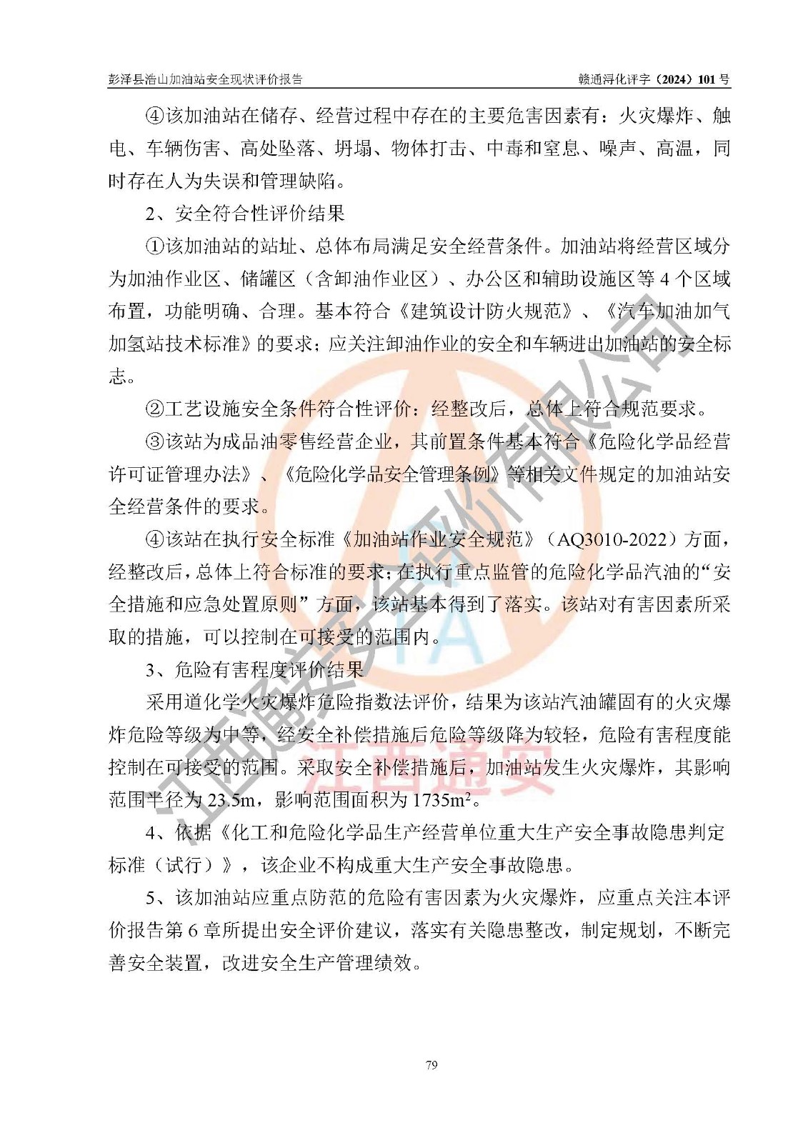評價報告名稱 | 彭澤縣浩山加油站安全現(xiàn)狀評價報告 | |||