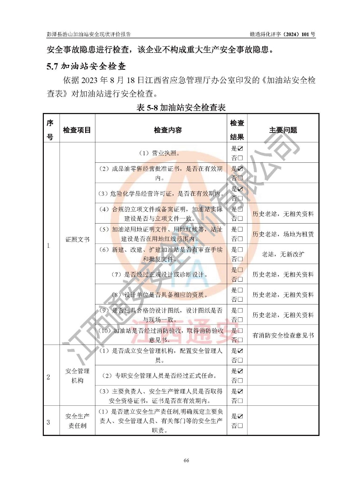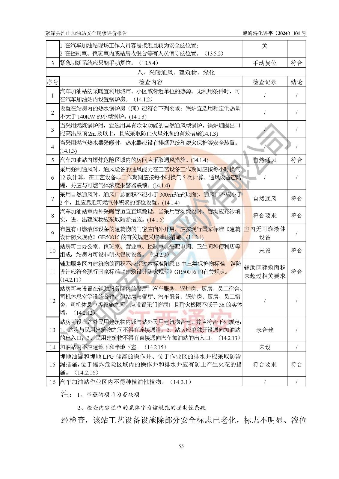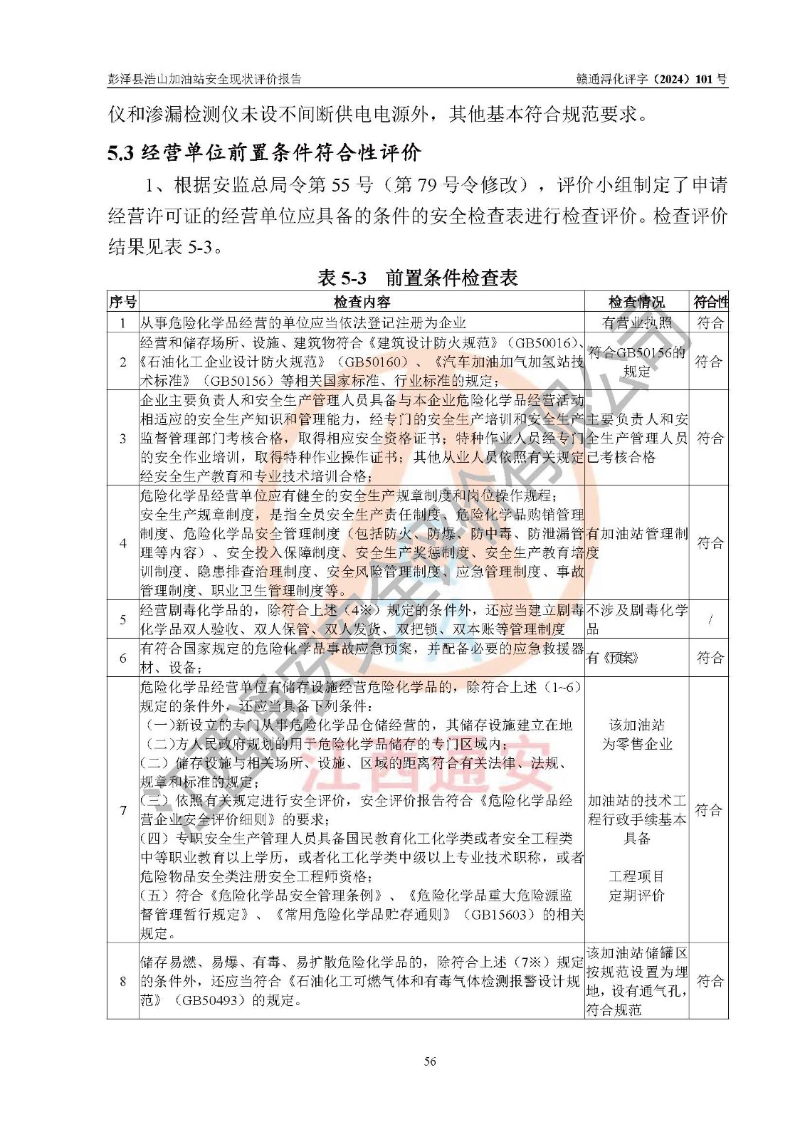 評價結論 | 彭澤縣浩山加油站涉及的安全條件、安全經營條件、安全生產管理符合《危險化學品經營許可證管理辦法》、《汽車加油加氣加氫站技術標準》等**有關法規(guī)、標準、規(guī)范要求,能滿足危險化學品經營安全條件。 | |||