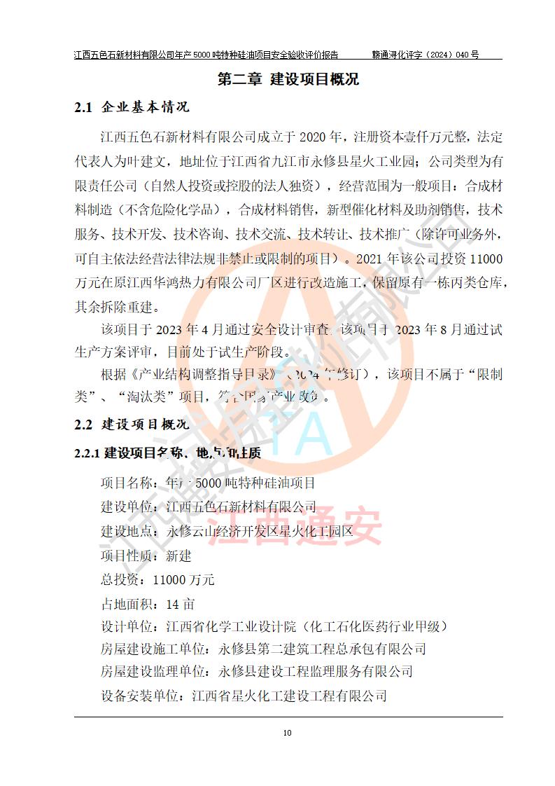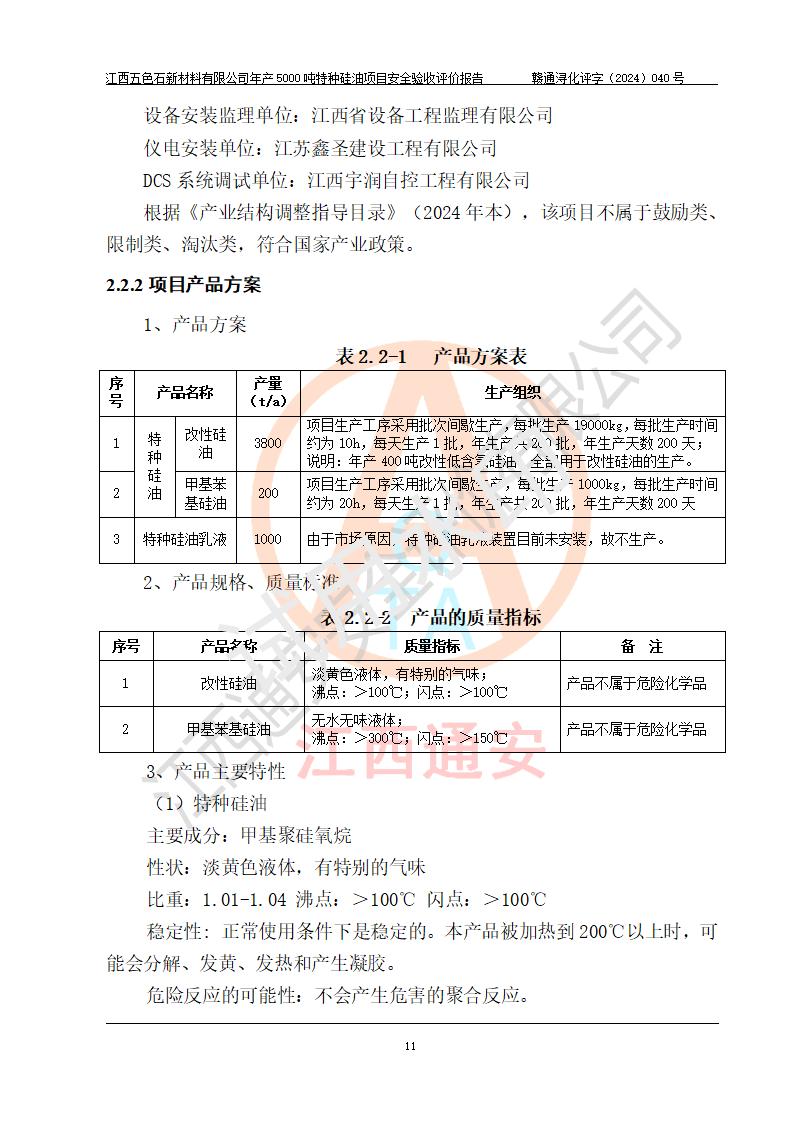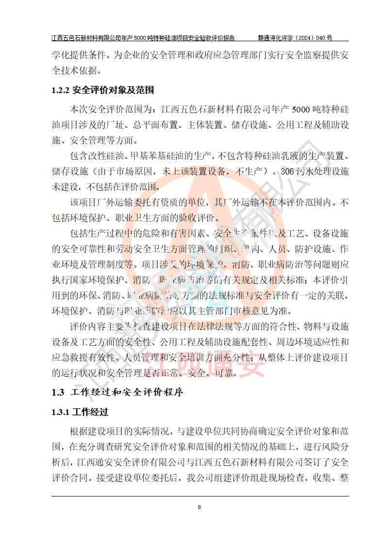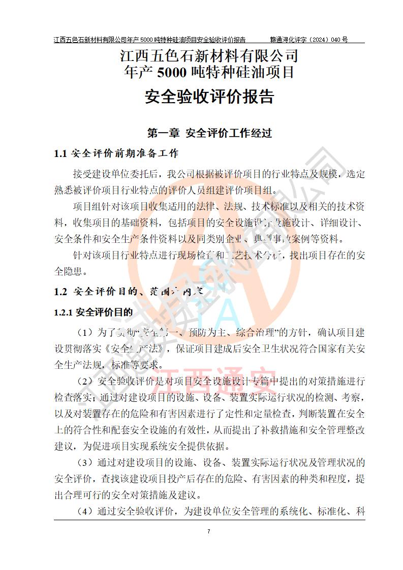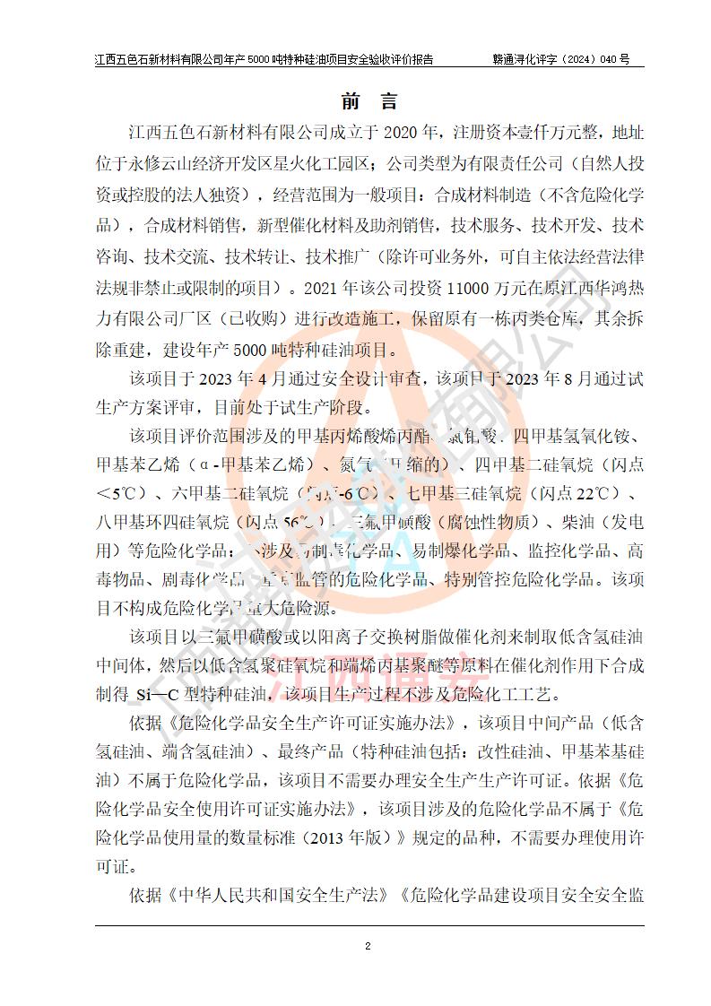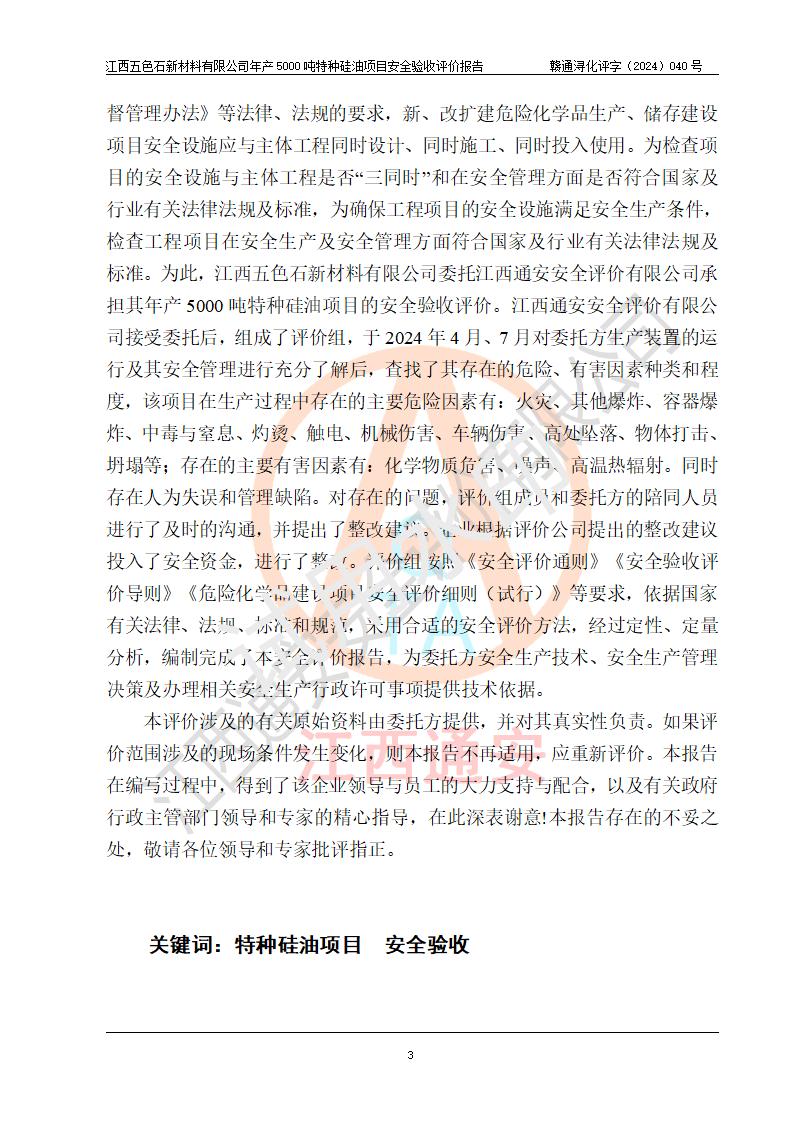 評(píng)價(jià)報(bào)告名稱 | 江西五色石新材料有限公司年產(chǎn)5000噸特種硅油項(xiàng)目安全驗(yàn)收評(píng)價(jià)報(bào)告 | ||||