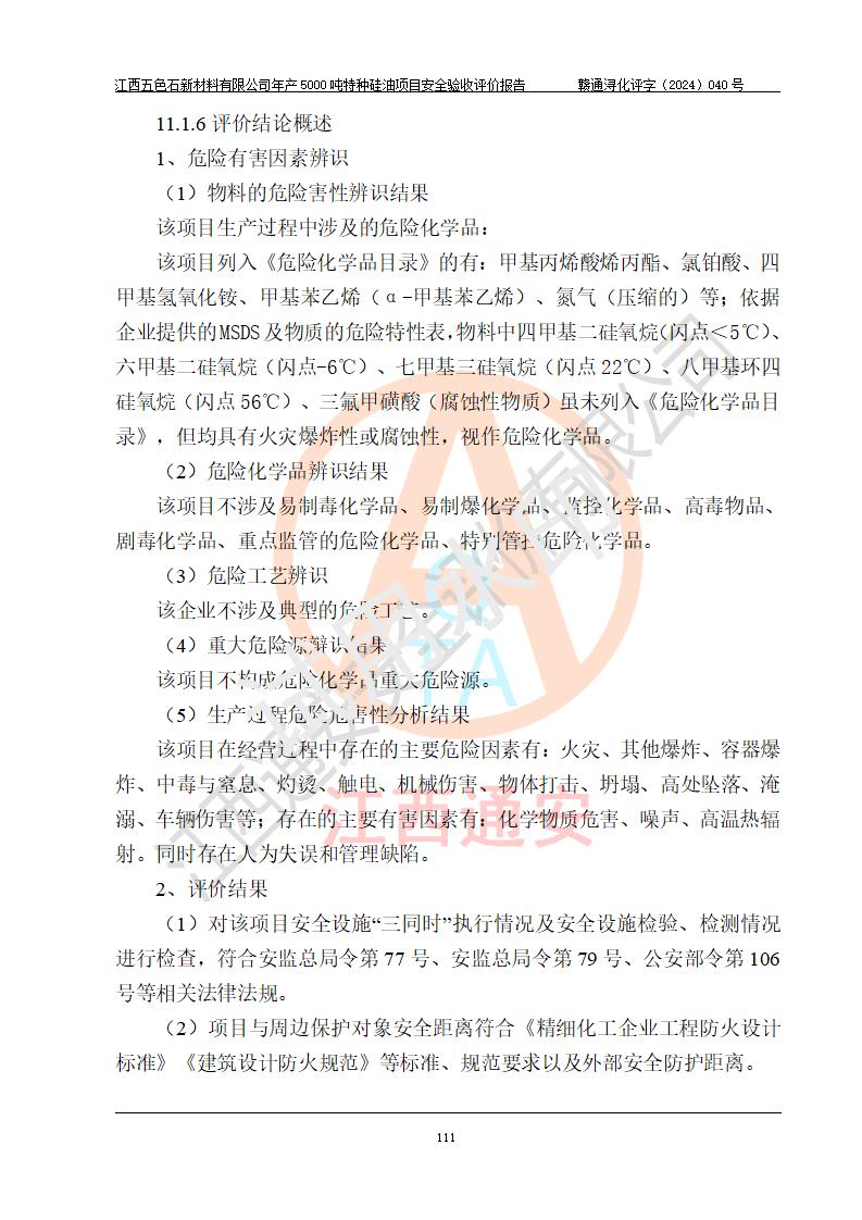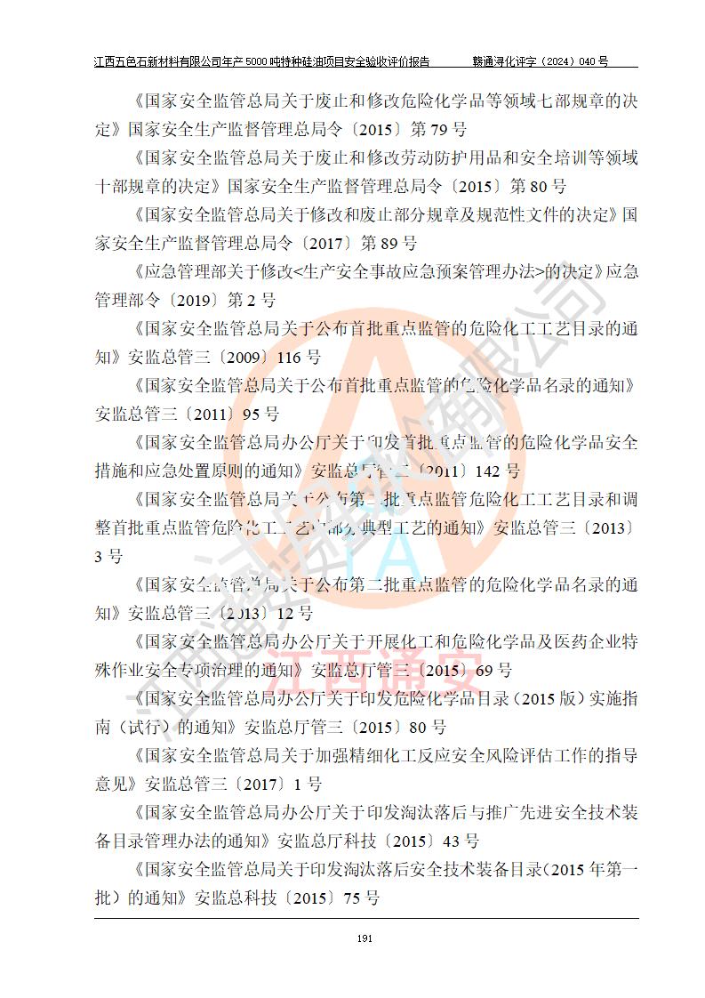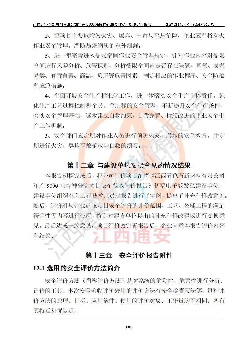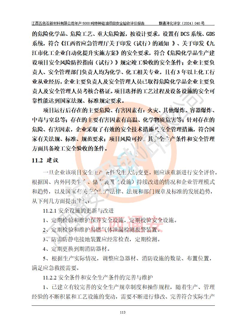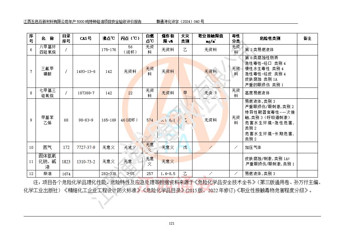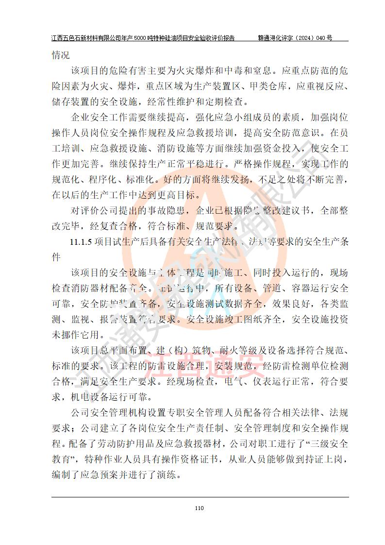 評(píng)價(jià)報(bào)告名稱 | 江西五色石新材料有限公司年產(chǎn)5000噸特種硅油項(xiàng)目安全驗(yàn)收評(píng)價(jià)報(bào)告 | ||||