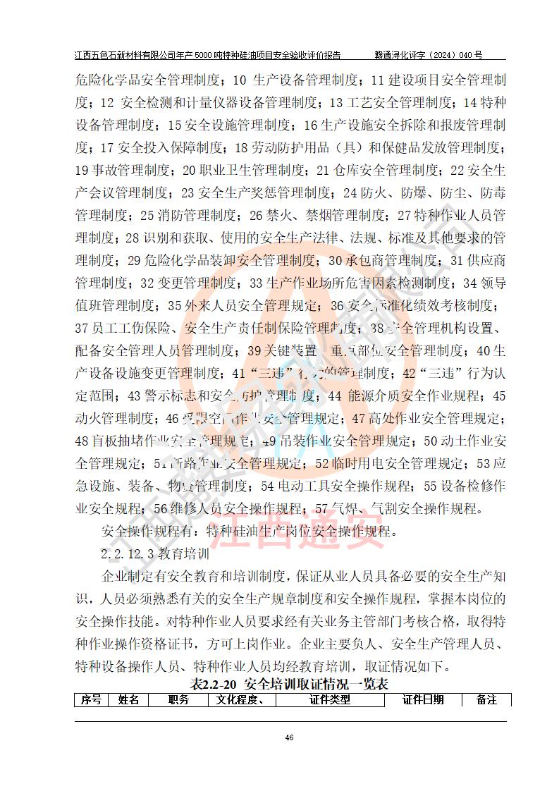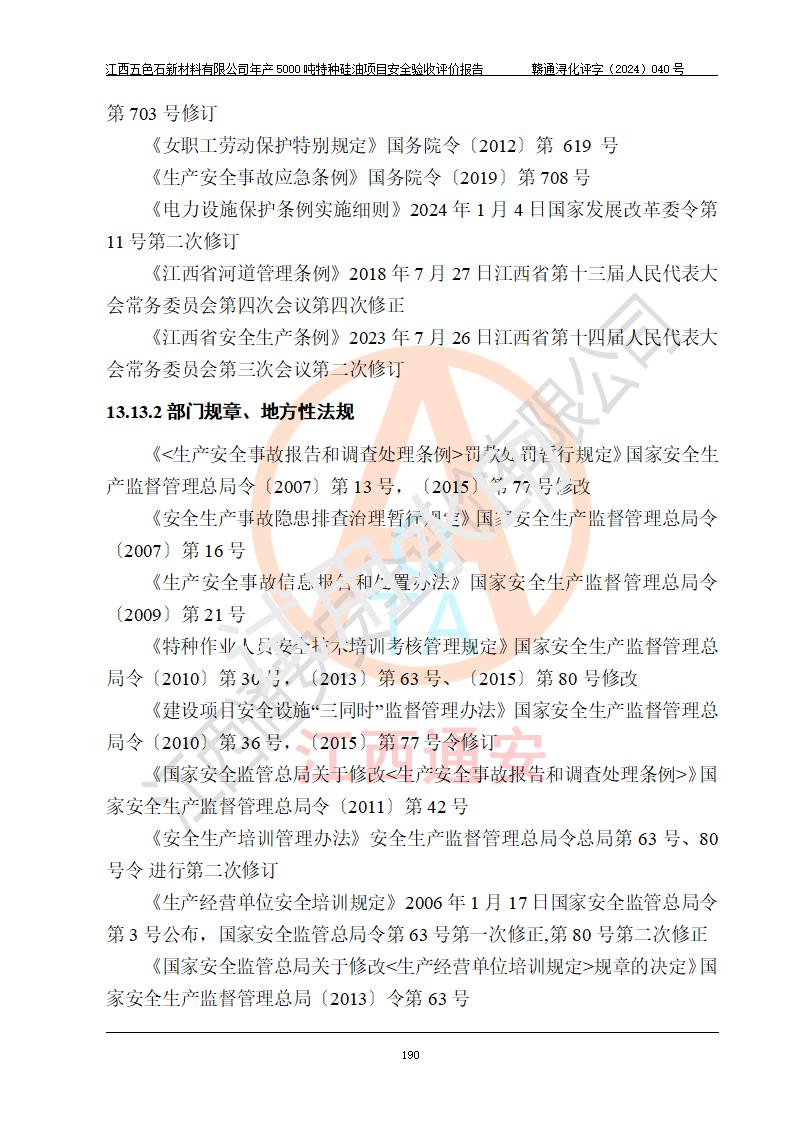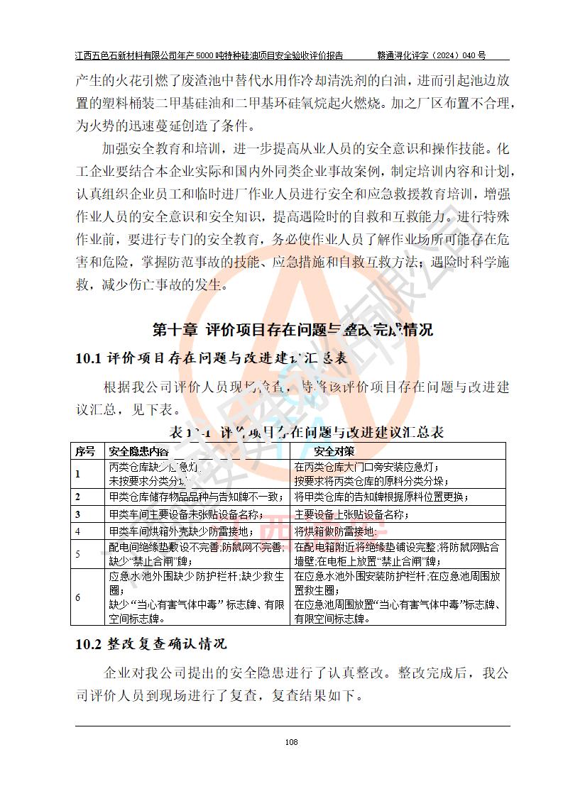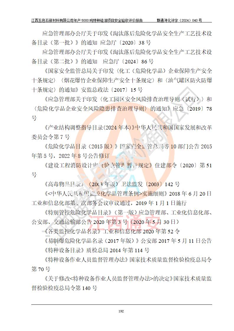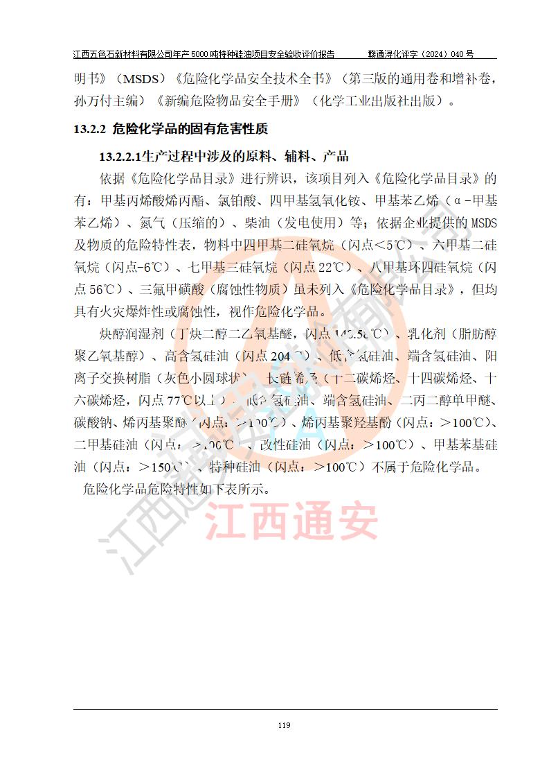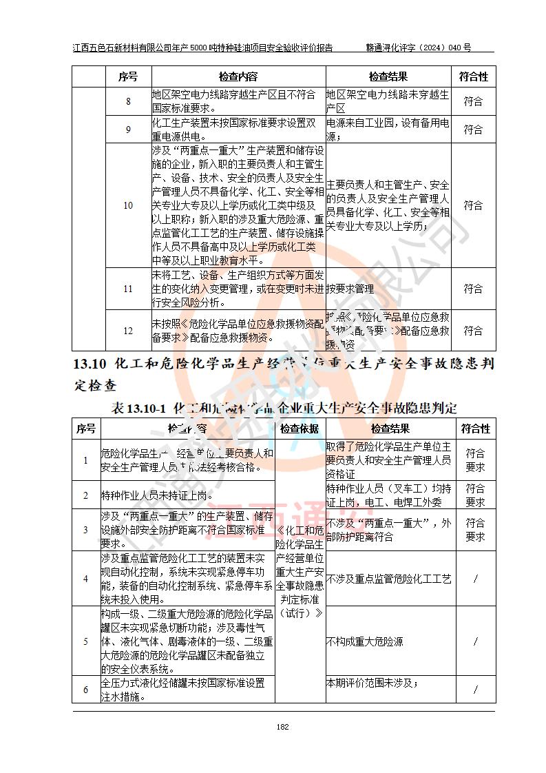 評(píng)價(jià)報(bào)告名稱 | 江西五色石新材料有限公司年產(chǎn)5000噸特種硅油項(xiàng)目安全驗(yàn)收評(píng)價(jià)報(bào)告 | ||||