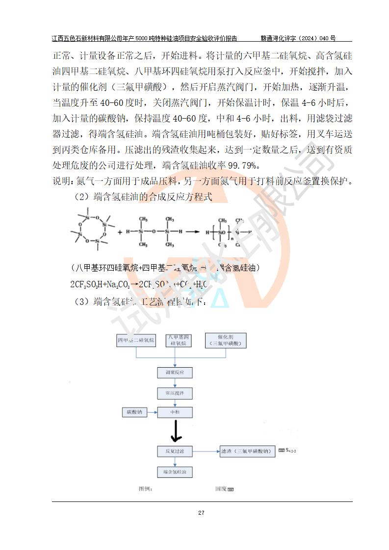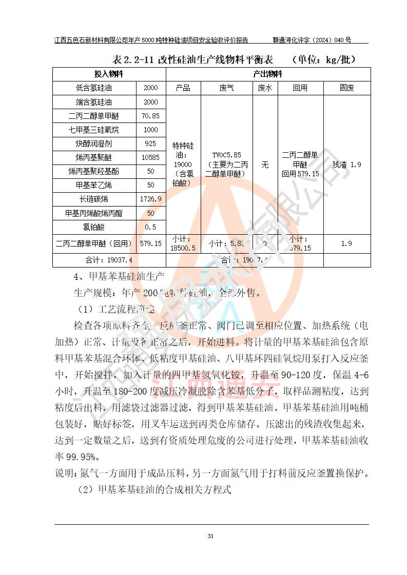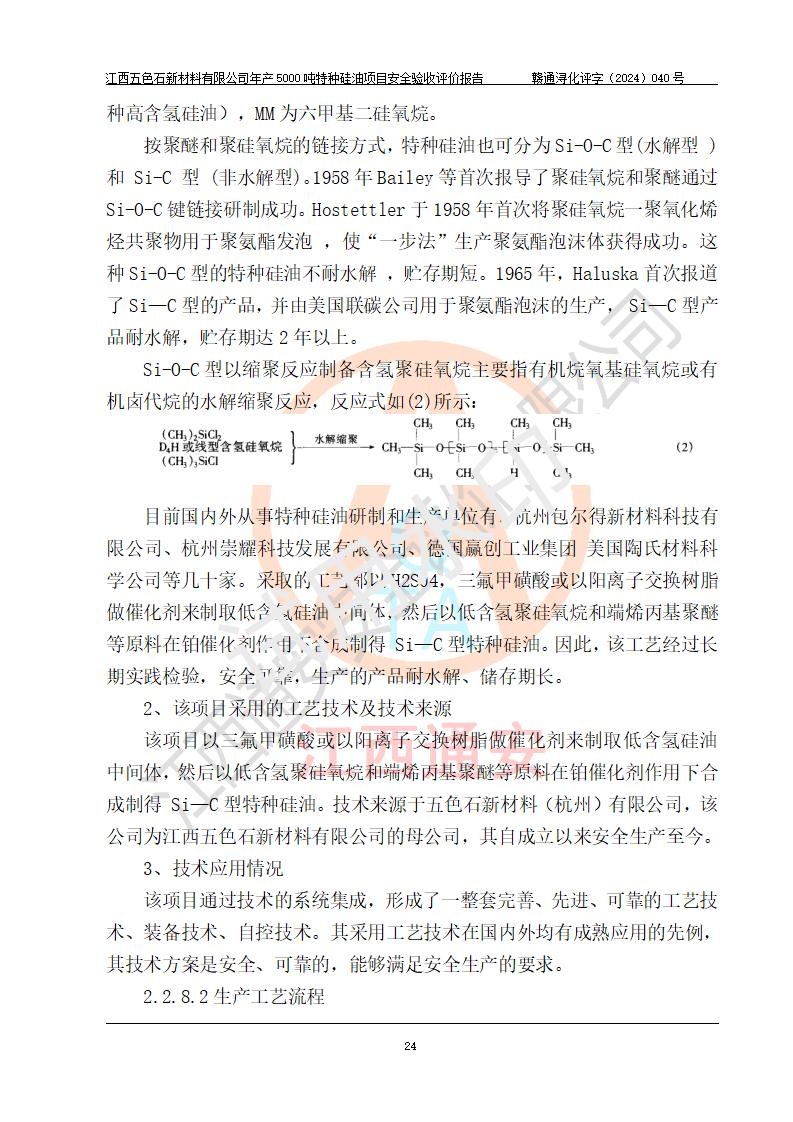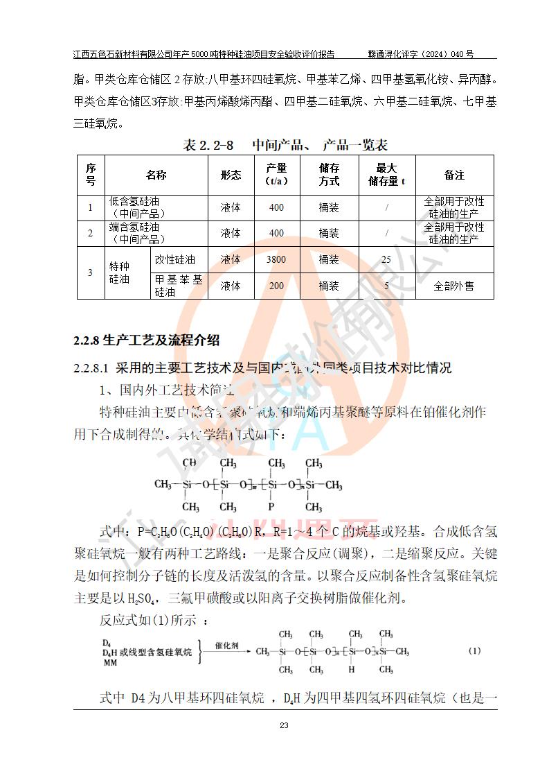 項(xiàng)目簡(jiǎn)介 | 江西五色石新材料有限公司成立于2020年,地址位于江西省九江市永修縣星火工業(yè)園;2021年該公司投資11000萬元在原江西華鴻熱力有限公司廠區(qū)進(jìn)行改造施工,建成年產(chǎn)5000噸特種硅油項(xiàng)目。該項(xiàng)目于2023年4月通過安全設(shè)計(jì)審查,該項(xiàng)目于2023年8月通過試生產(chǎn)方案評(píng)審,目前處于試生產(chǎn)階段。 | ||||