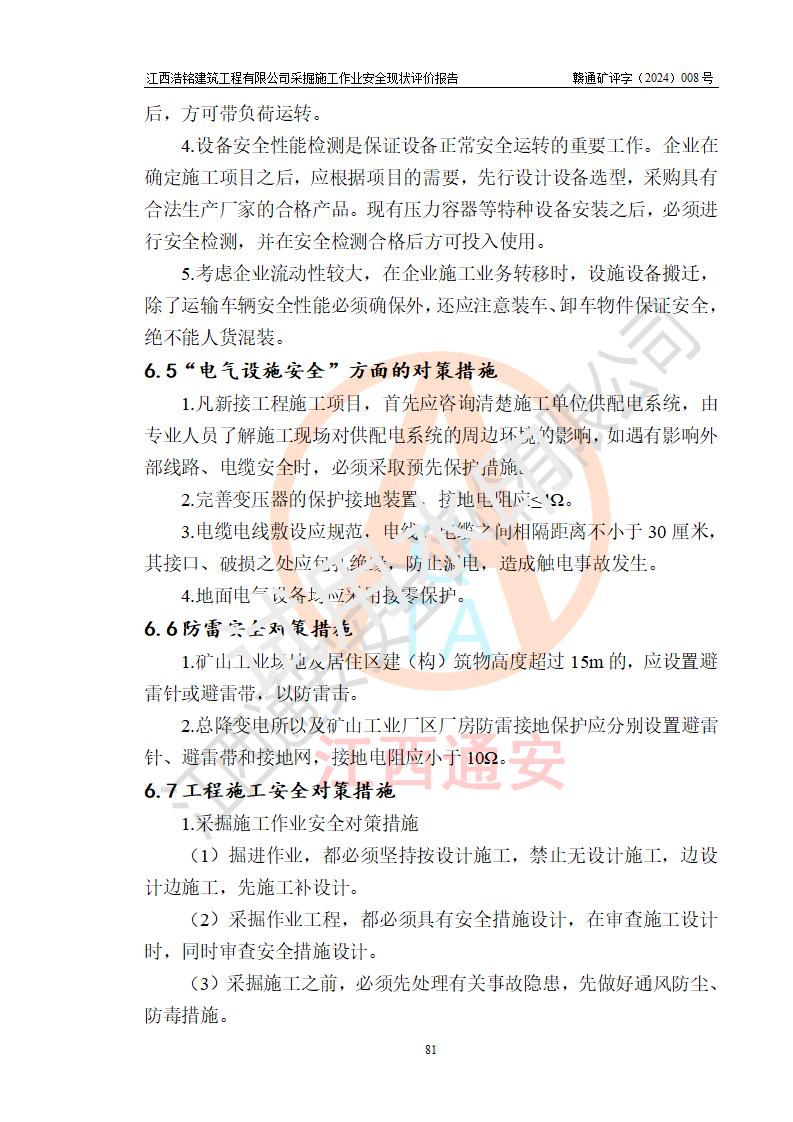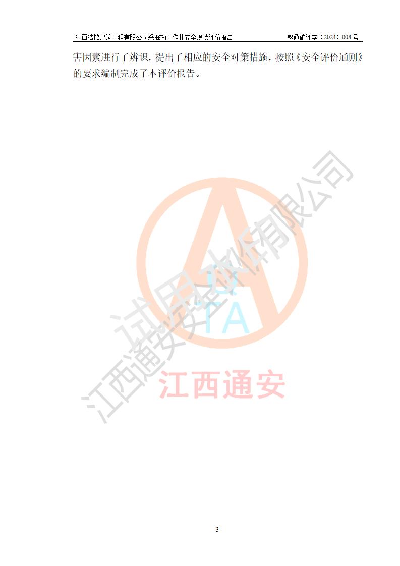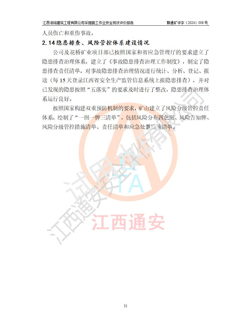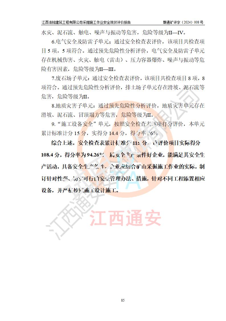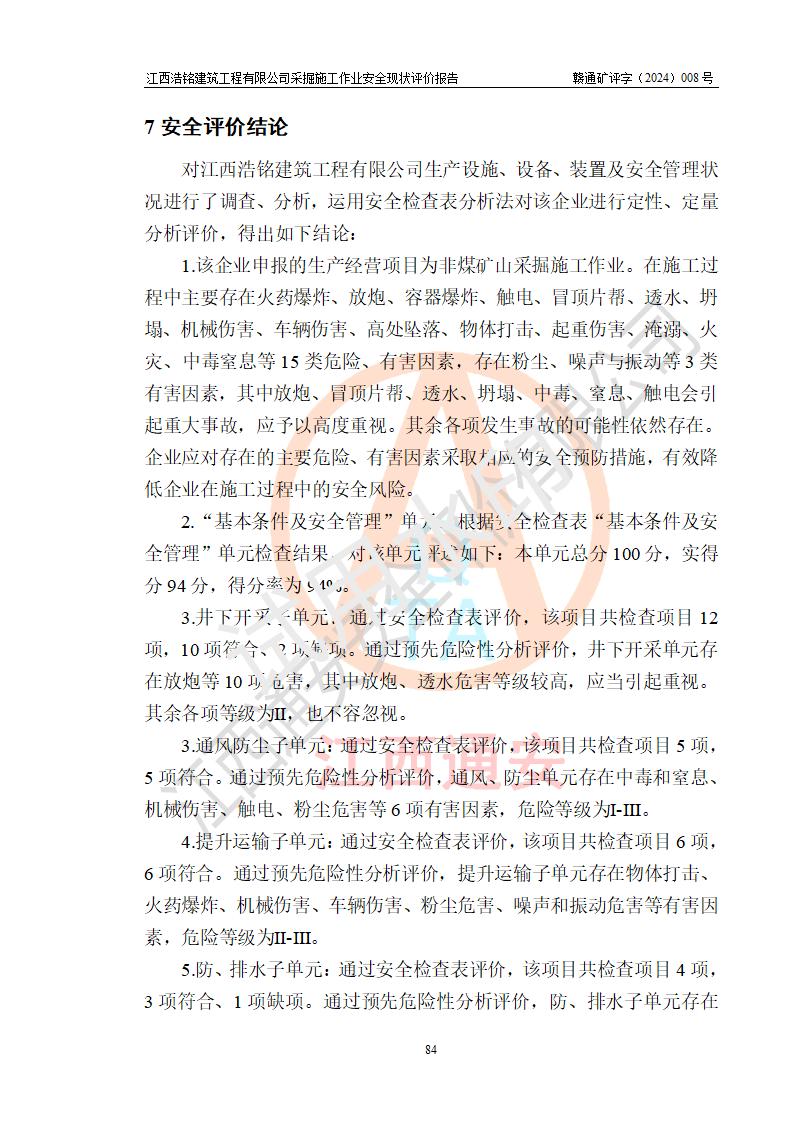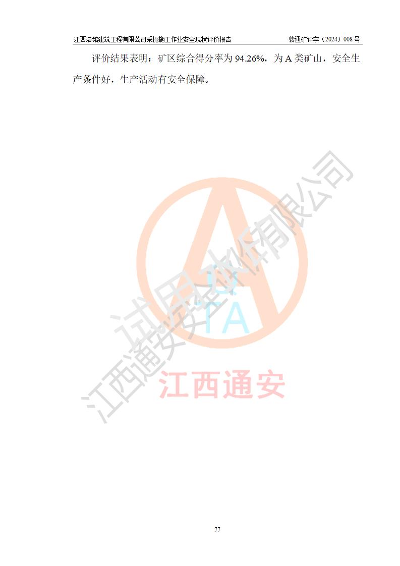 報(bào)告名稱 | 江西浩銘建筑工程有限公司采掘施工作業(yè)安全現(xiàn)狀評(píng)價(jià)報(bào)告 | |||||
