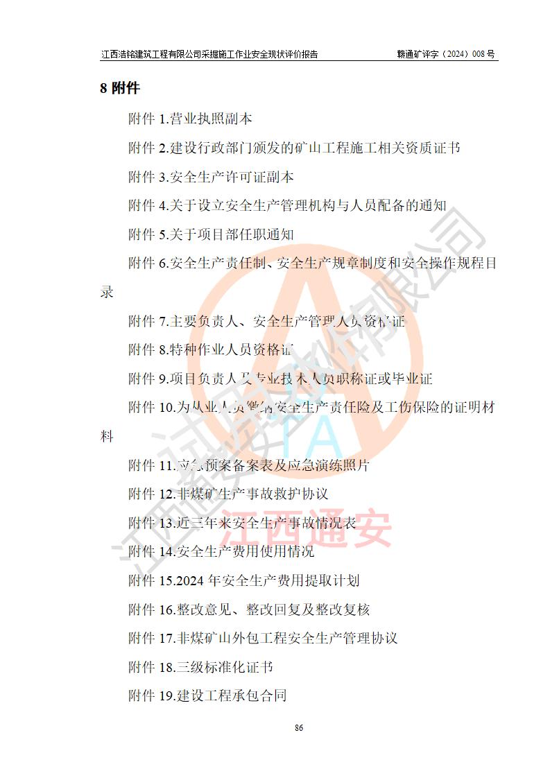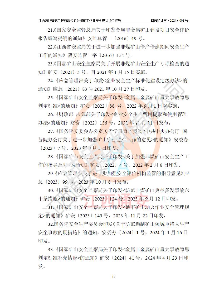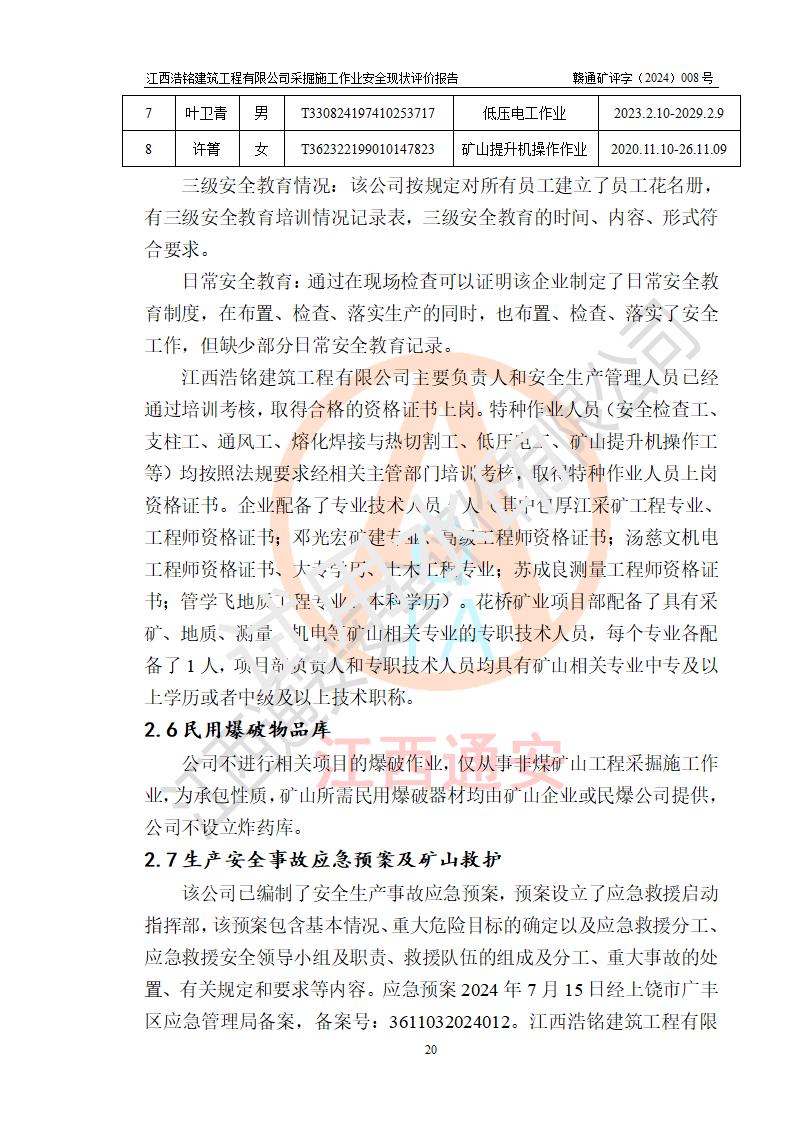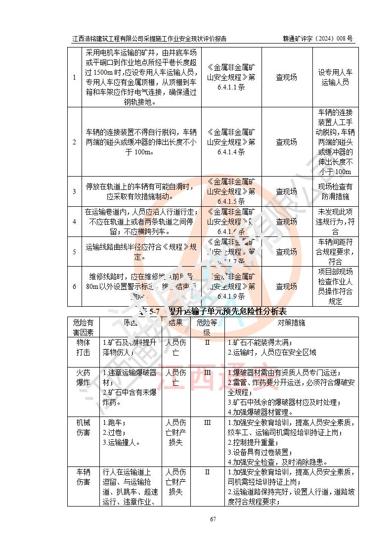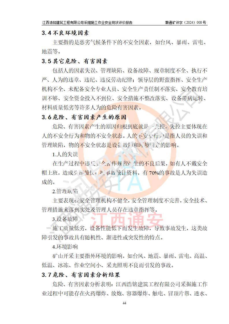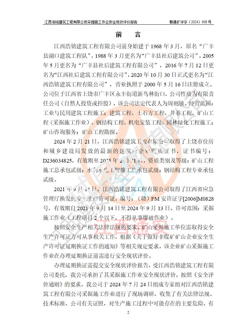 報(bào)告名稱 | 江西浩銘建筑工程有限公司采掘施工作業(yè)安全現(xiàn)狀評(píng)價(jià)報(bào)告 | |||||