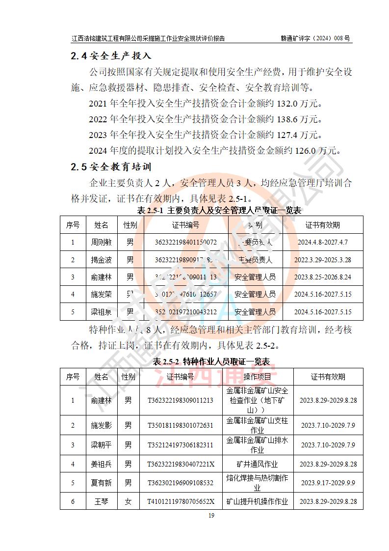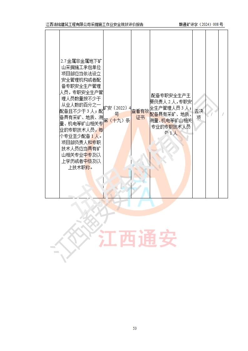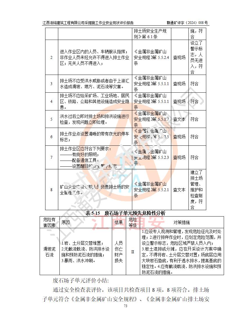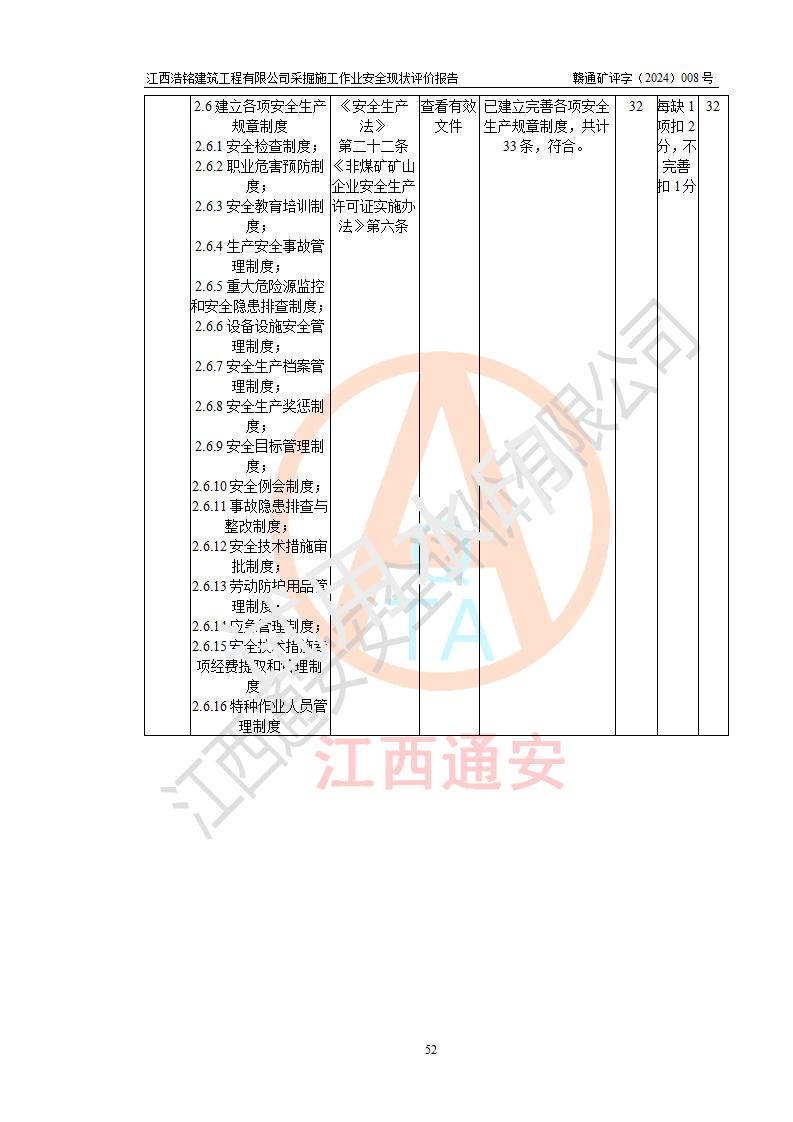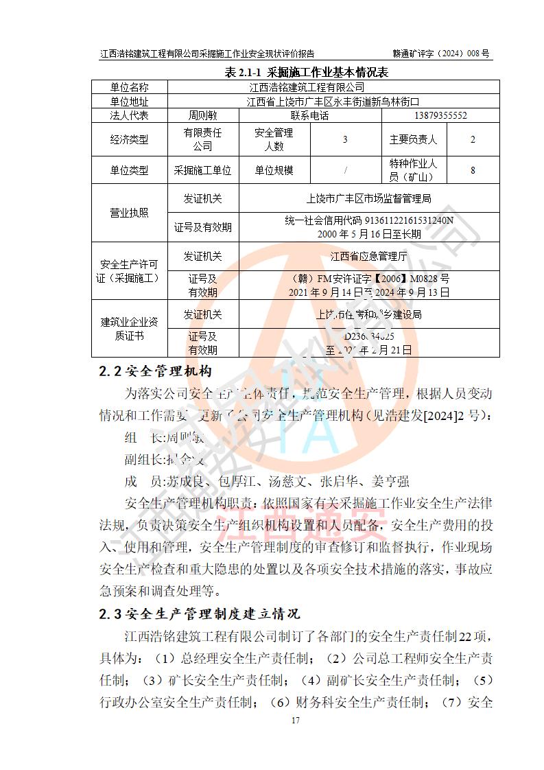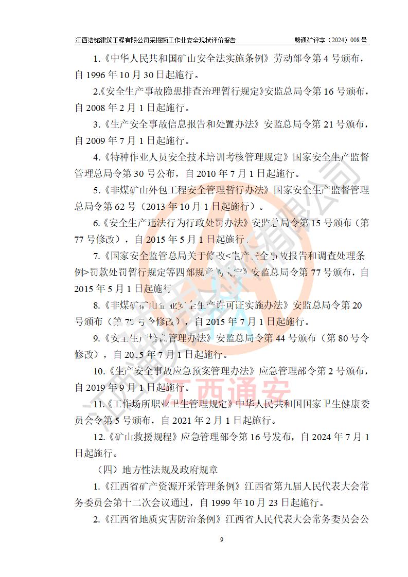 報(bào)告名稱 | 江西浩銘建筑工程有限公司采掘施工作業(yè)安全現(xiàn)狀評(píng)價(jià)報(bào)告 | |||||