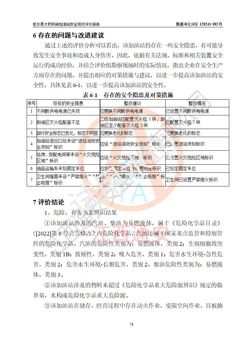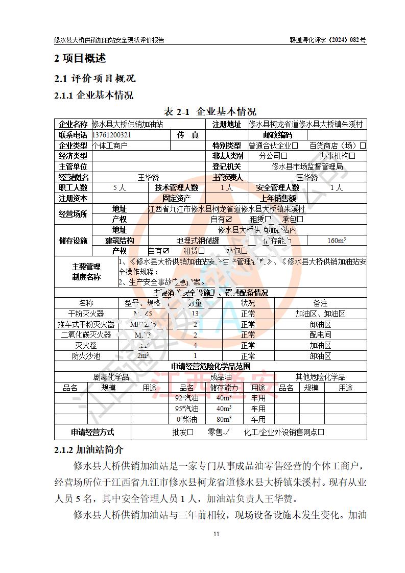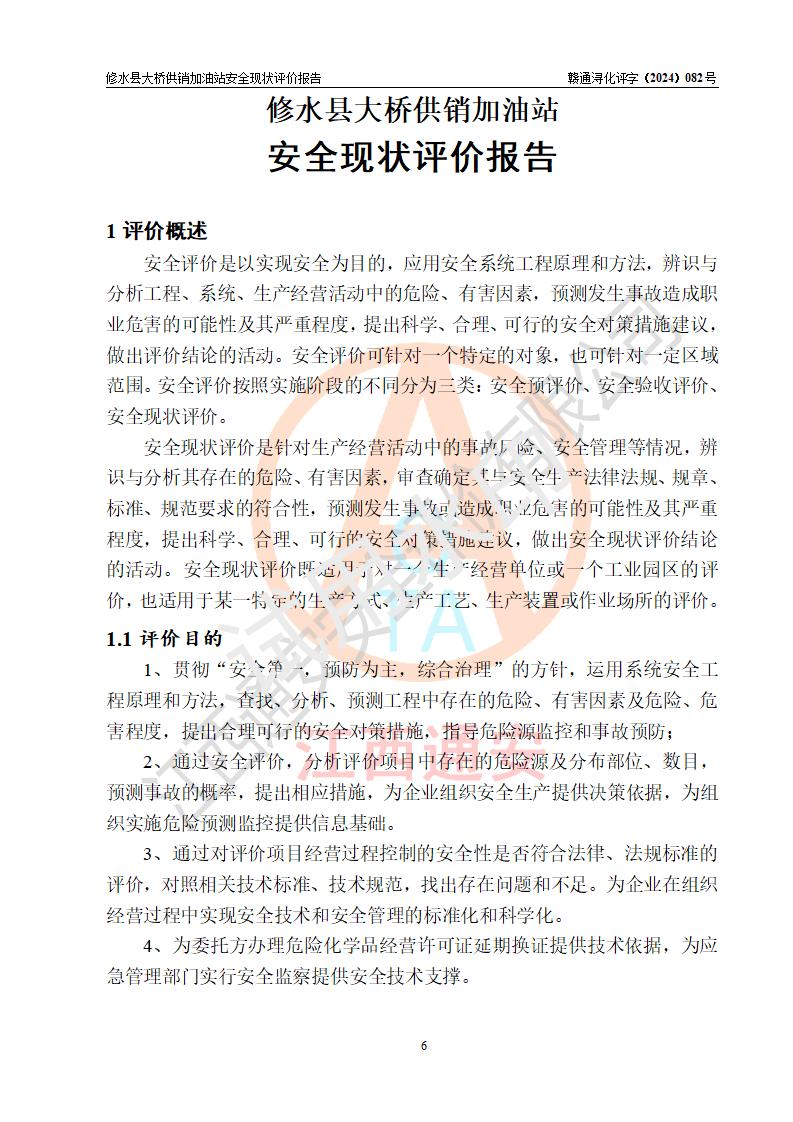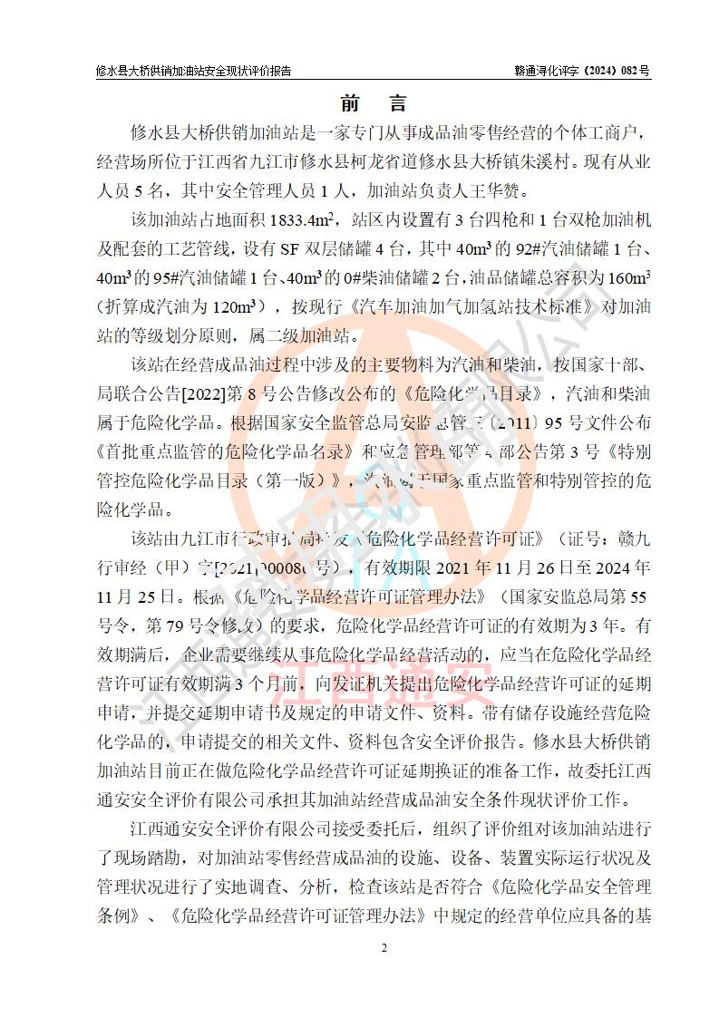 評價(jià)報(bào)告名稱 | 修水縣大橋供銷加油站安全現(xiàn)狀評價(jià)報(bào)告 | |||