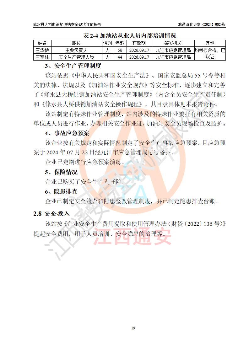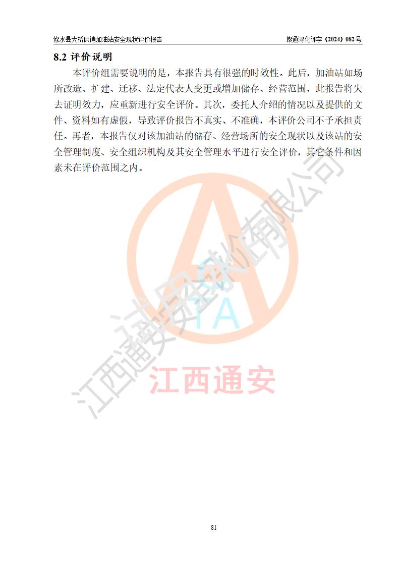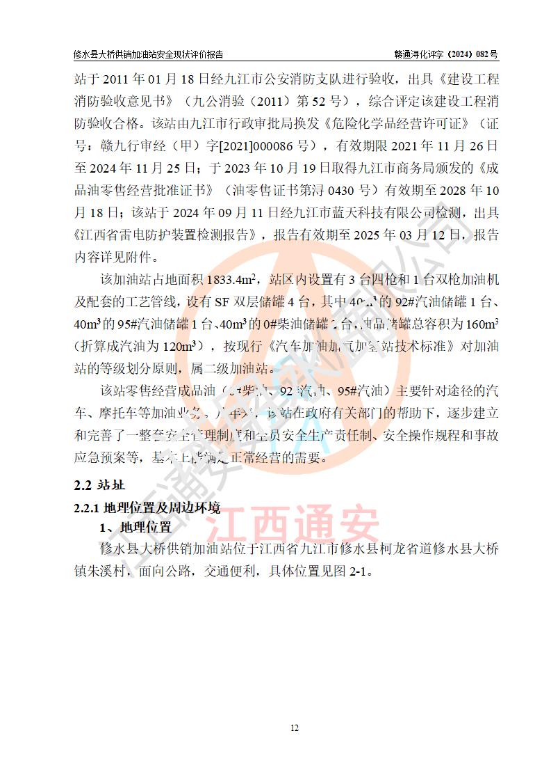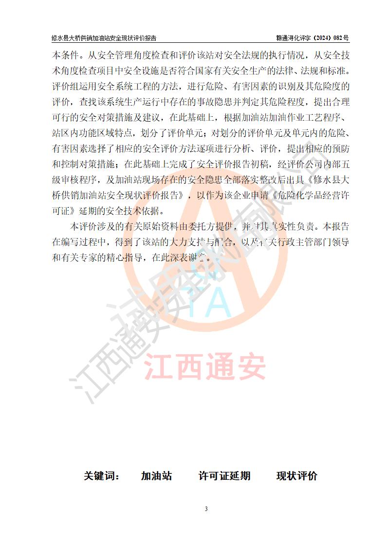 評價(jià)報(bào)告名稱 | 修水縣大橋供銷加油站安全現(xiàn)狀評價(jià)報(bào)告 | |||