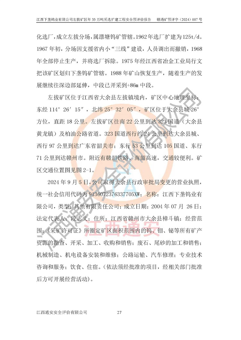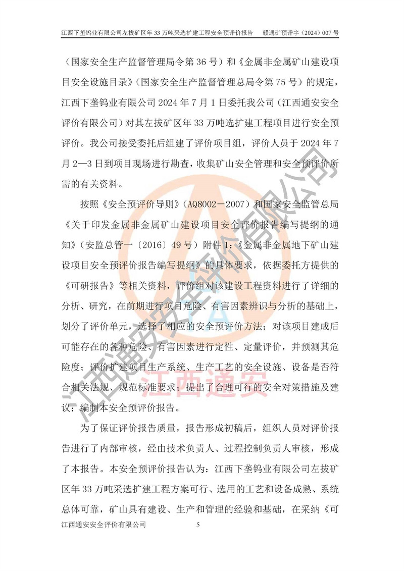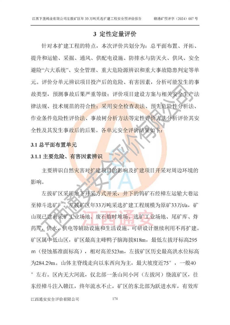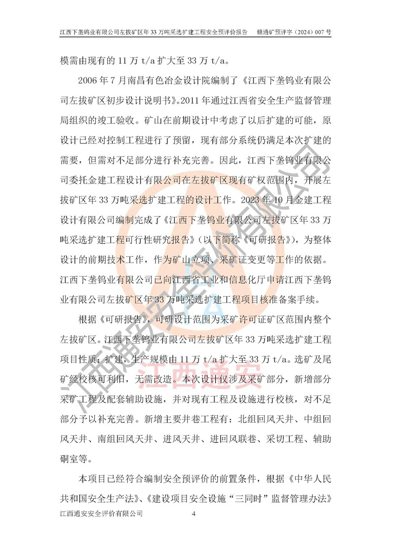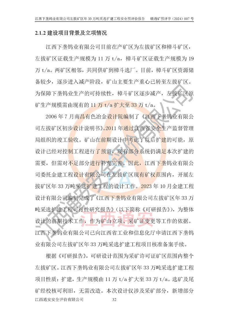 項(xiàng)目名稱 | 江西下壟鎢業(yè)有限公司左拔礦區(qū)年33萬噸采選擴(kuò)建工程項(xiàng)目安全預(yù)評(píng)價(jià)報(bào)告 | ||||