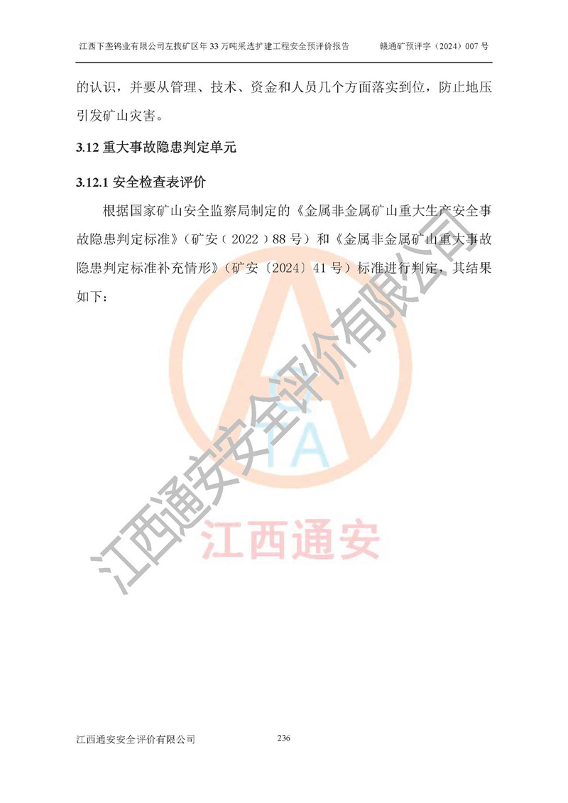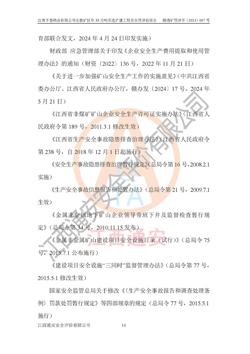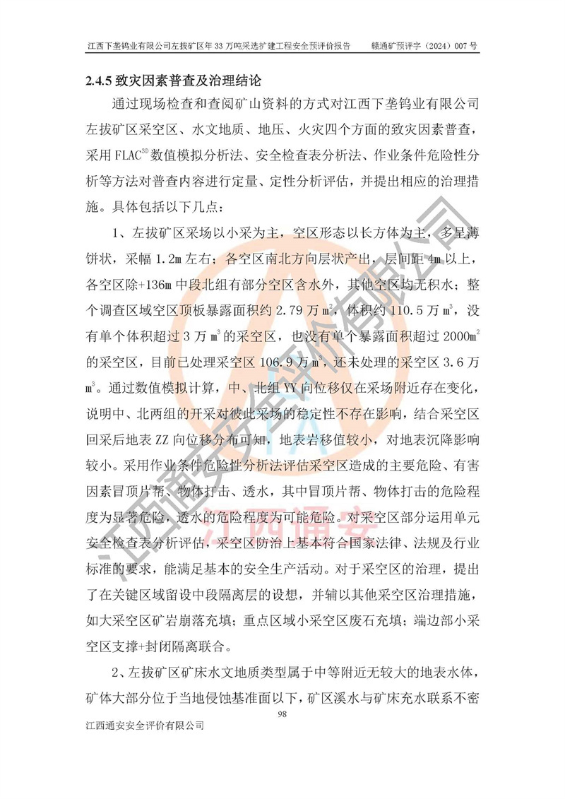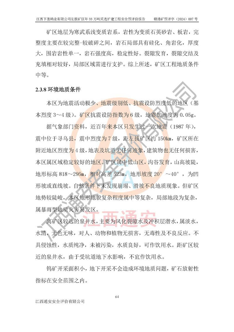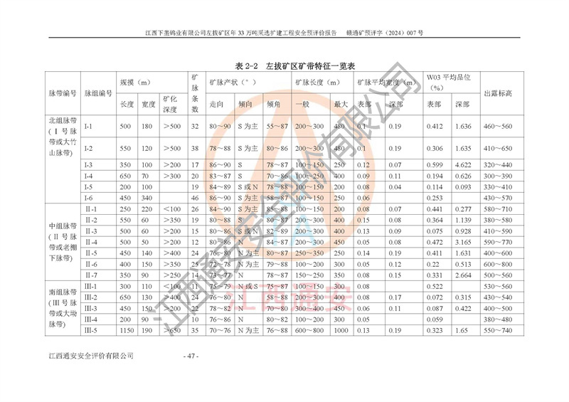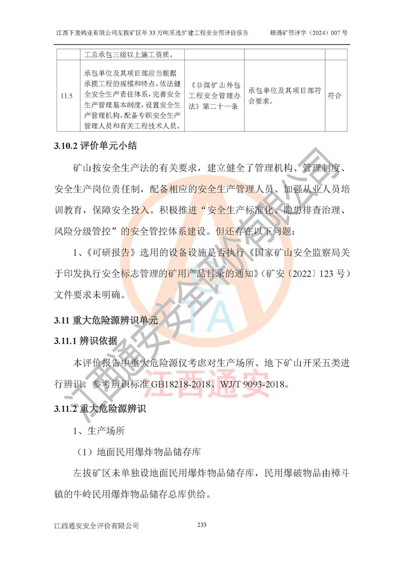 項(xiàng)目名稱 | 江西下壟鎢業(yè)有限公司左拔礦區(qū)年33萬噸采選擴(kuò)建工程項(xiàng)目安全預(yù)評(píng)價(jià)報(bào)告 | ||||