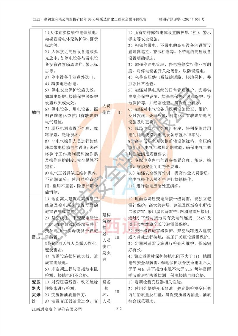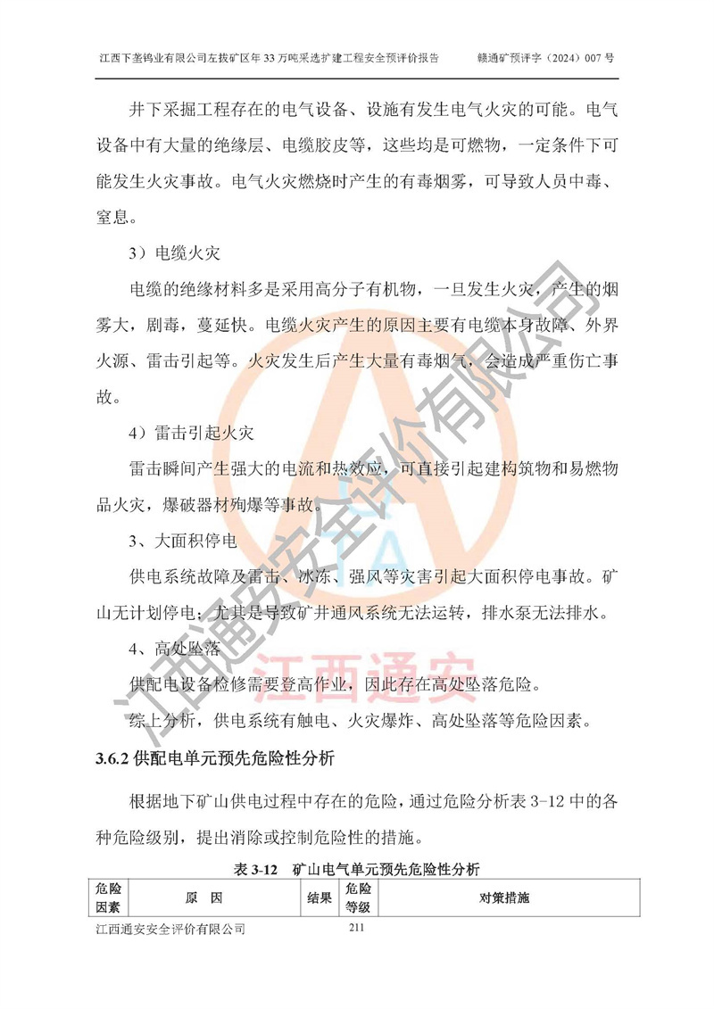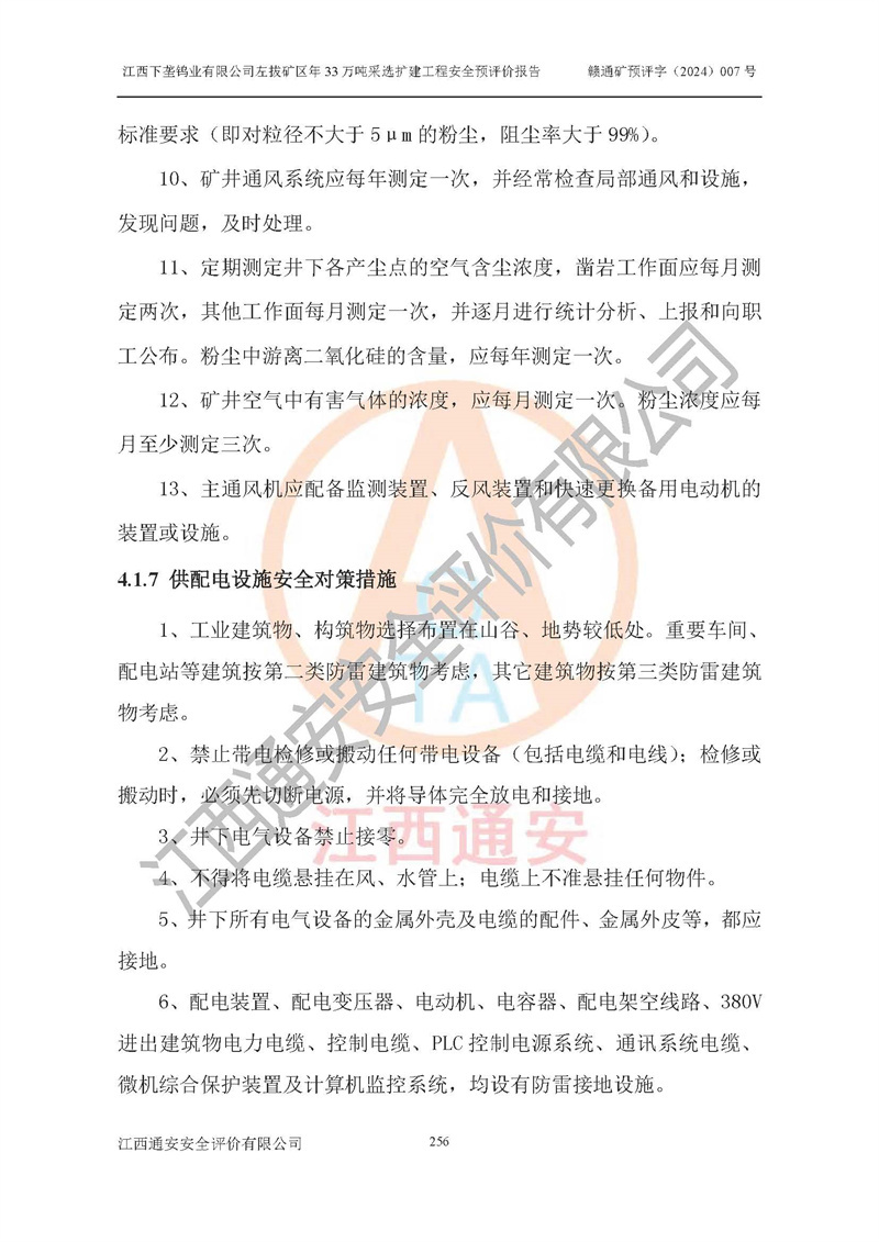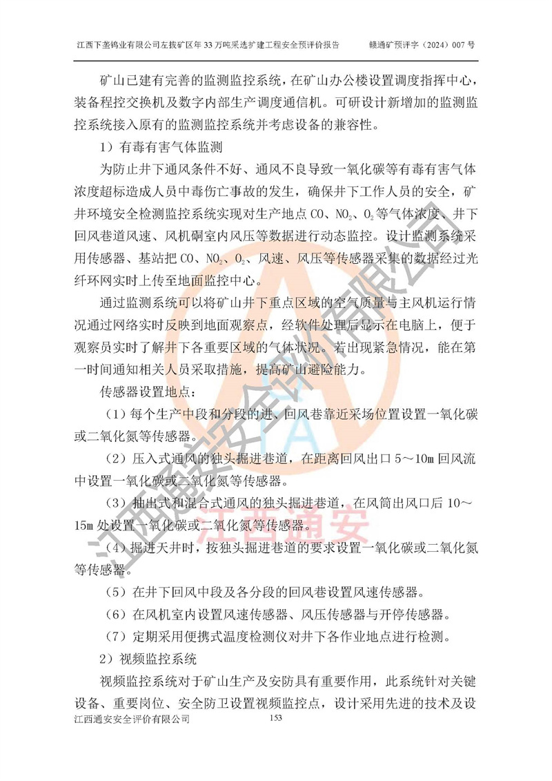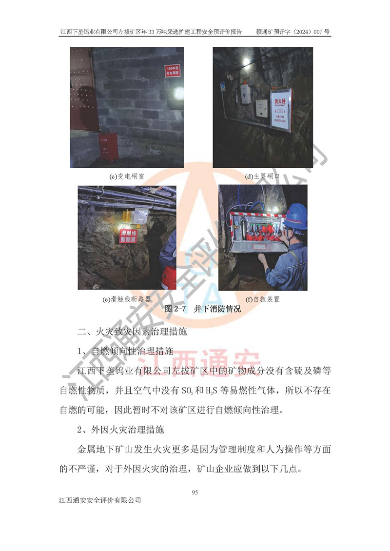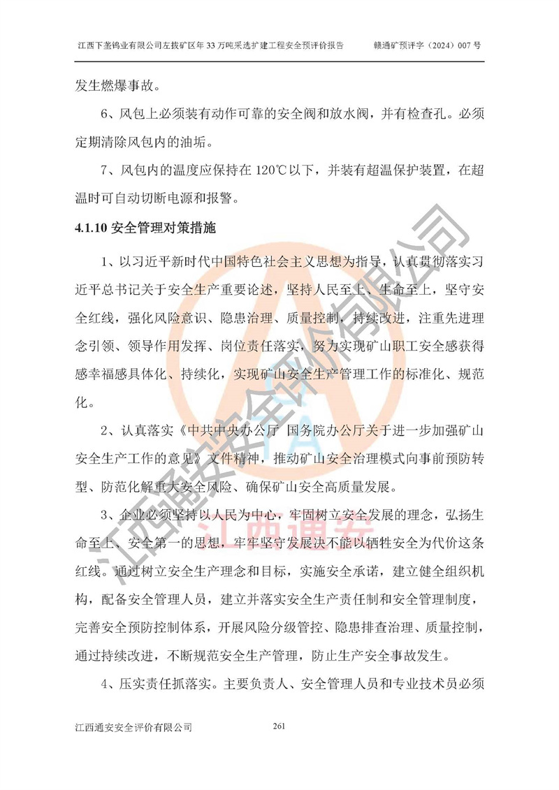 其它 | 江西下壟鎢業(yè)有限公司左拔礦區(qū)年33萬噸采選擴(kuò)建工程方案可行、選用的工藝和設(shè)備成熟、系統(tǒng)總體可靠,礦山具有建設(shè)、生產(chǎn)和管理的經(jīng)驗(yàn)和基礎(chǔ),在采納《可研報(bào)告》和本安全預(yù)評(píng)價(jià)報(bào)告提出的安全對(duì)策措施的基礎(chǔ)上,嚴(yán)把工程建設(shè)質(zhì)量關(guān)和現(xiàn)場(chǎng)安全管理,安全設(shè)施做到與主體工程同時(shí)設(shè)計(jì)、同時(shí)施工、同時(shí)投產(chǎn)使用,該擴(kuò)建工程安全風(fēng)險(xiǎn)處在可控制的范圍,符合**有關(guān)安全生產(chǎn)法律、法規(guī)、規(guī)章、標(biāo)準(zhǔn)和規(guī)范的要求。 | ||||